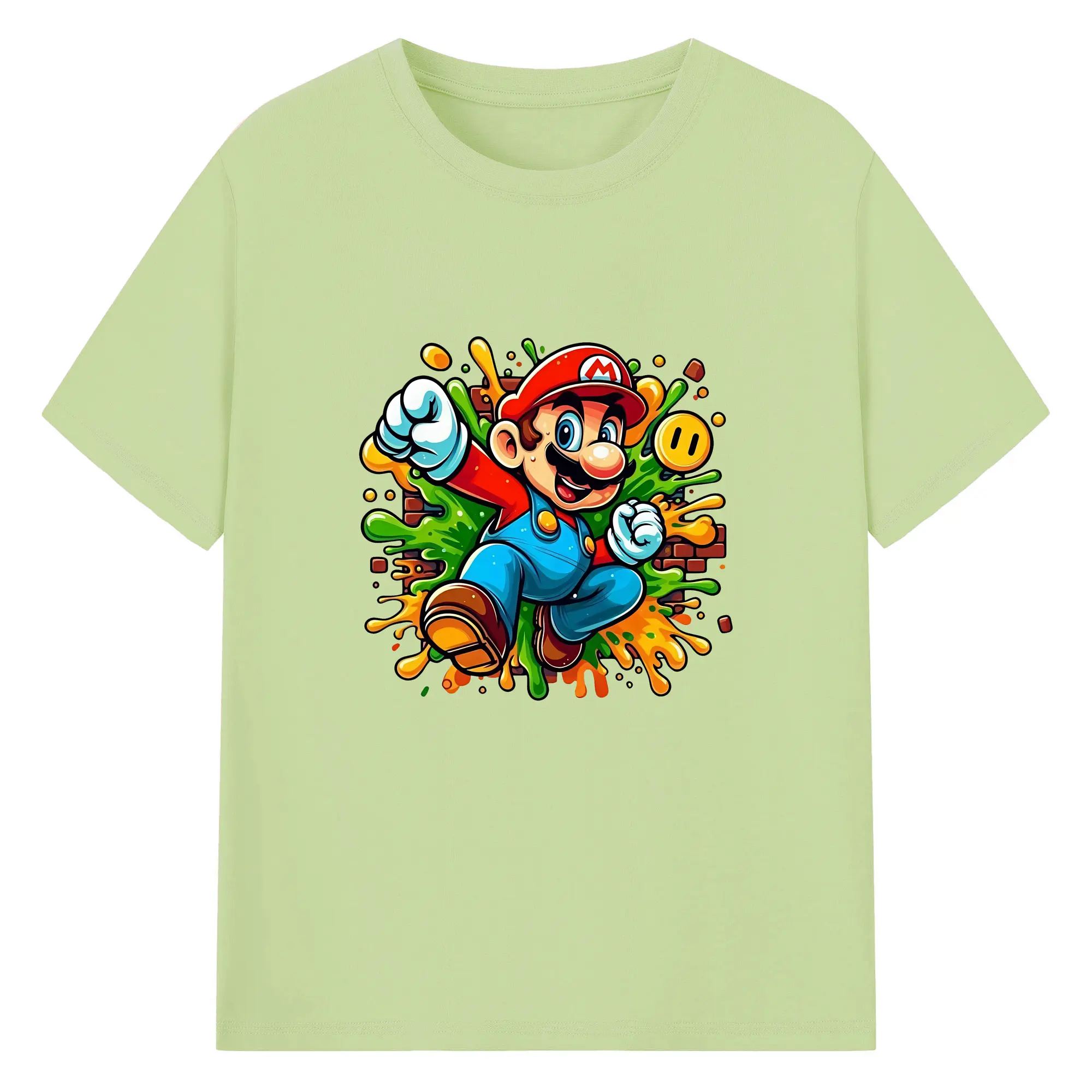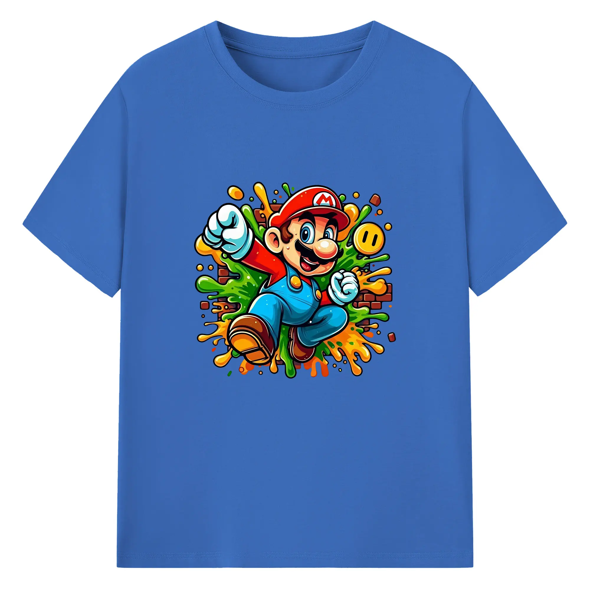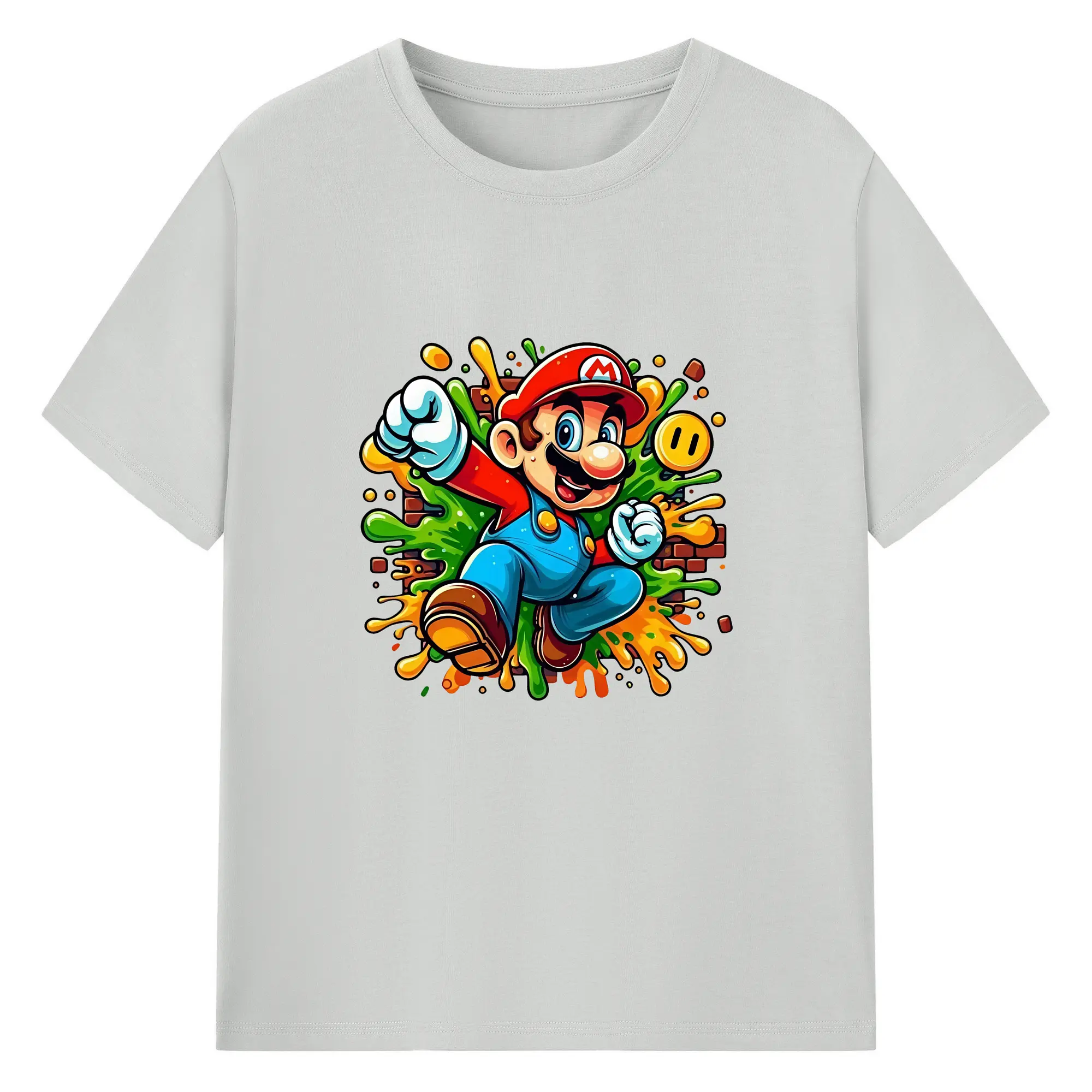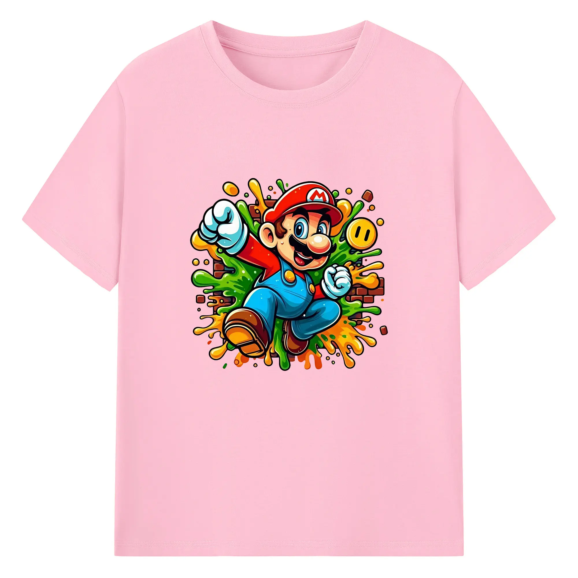 マリオ グッズ マリオ - 綿100% 半袖Tシャツ ・ バックプリント ・ 快適 通気性 ・ 日常使い 散歩 スポーツ用