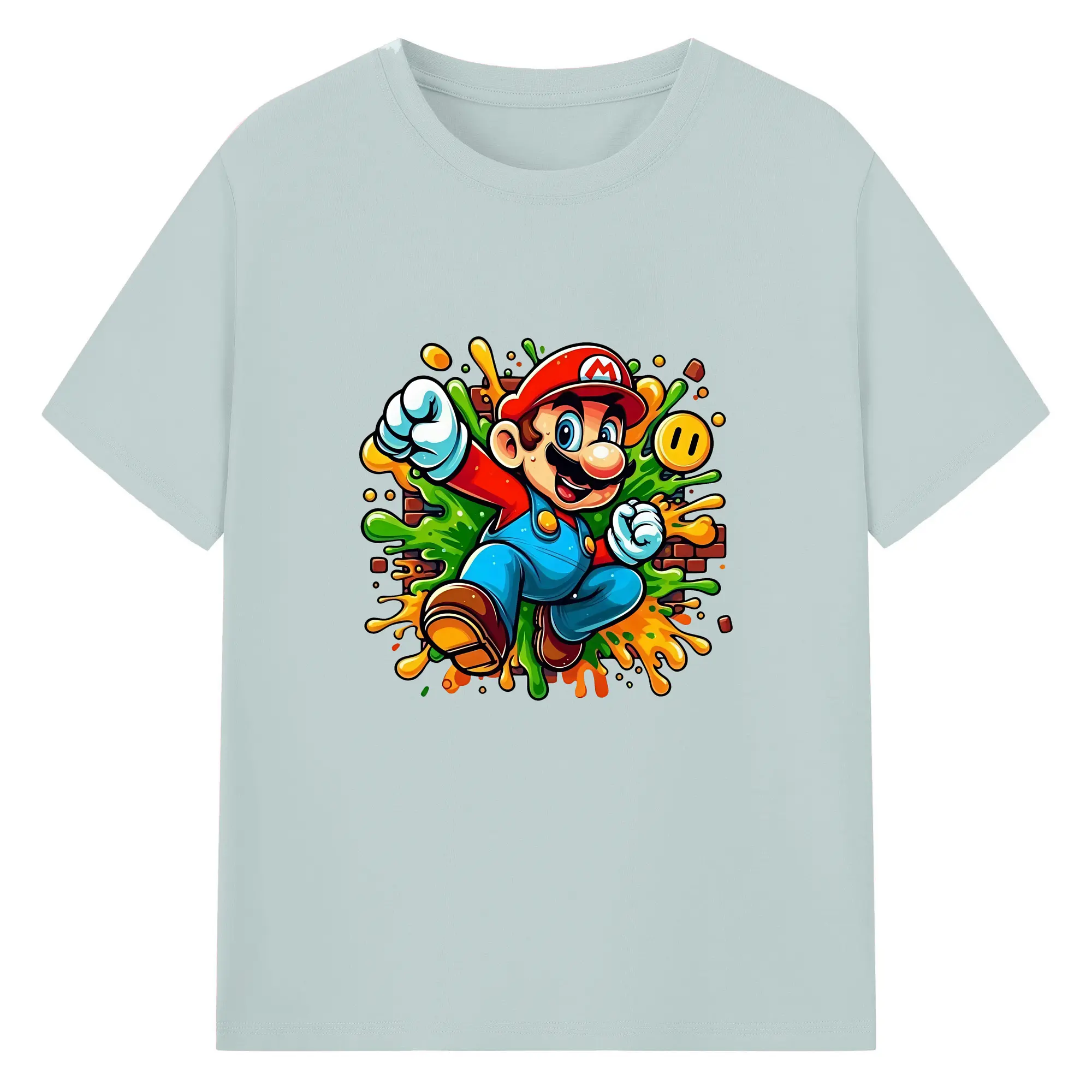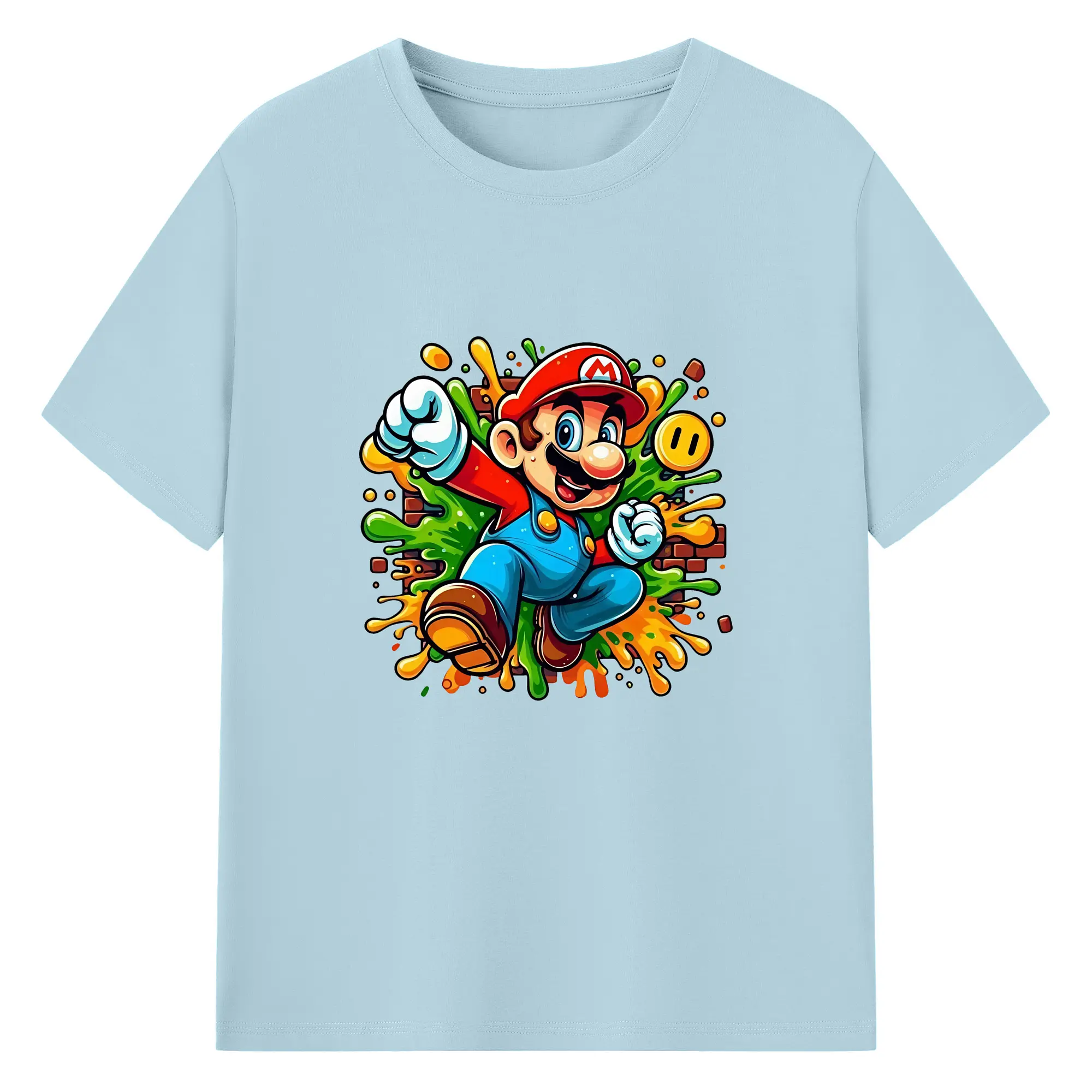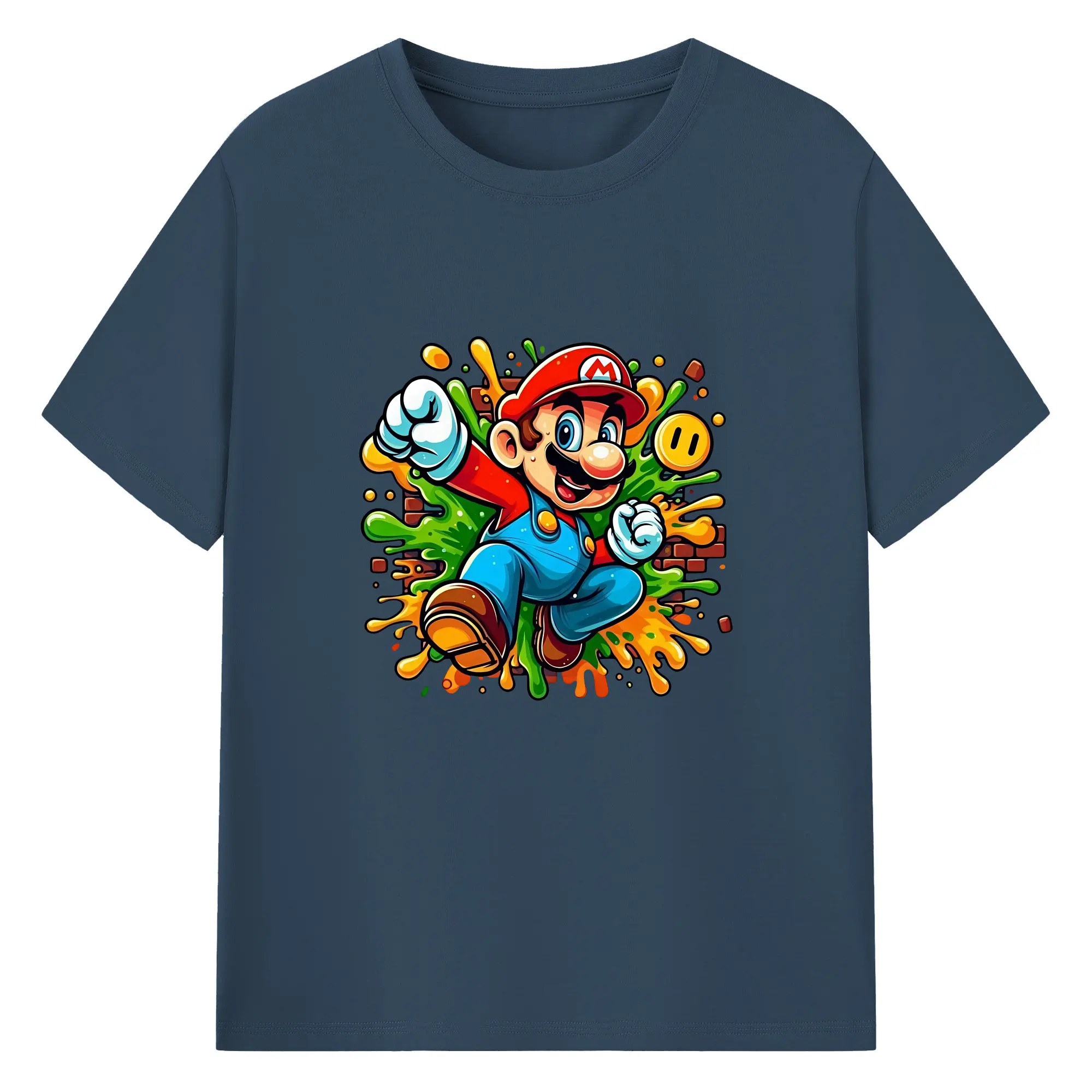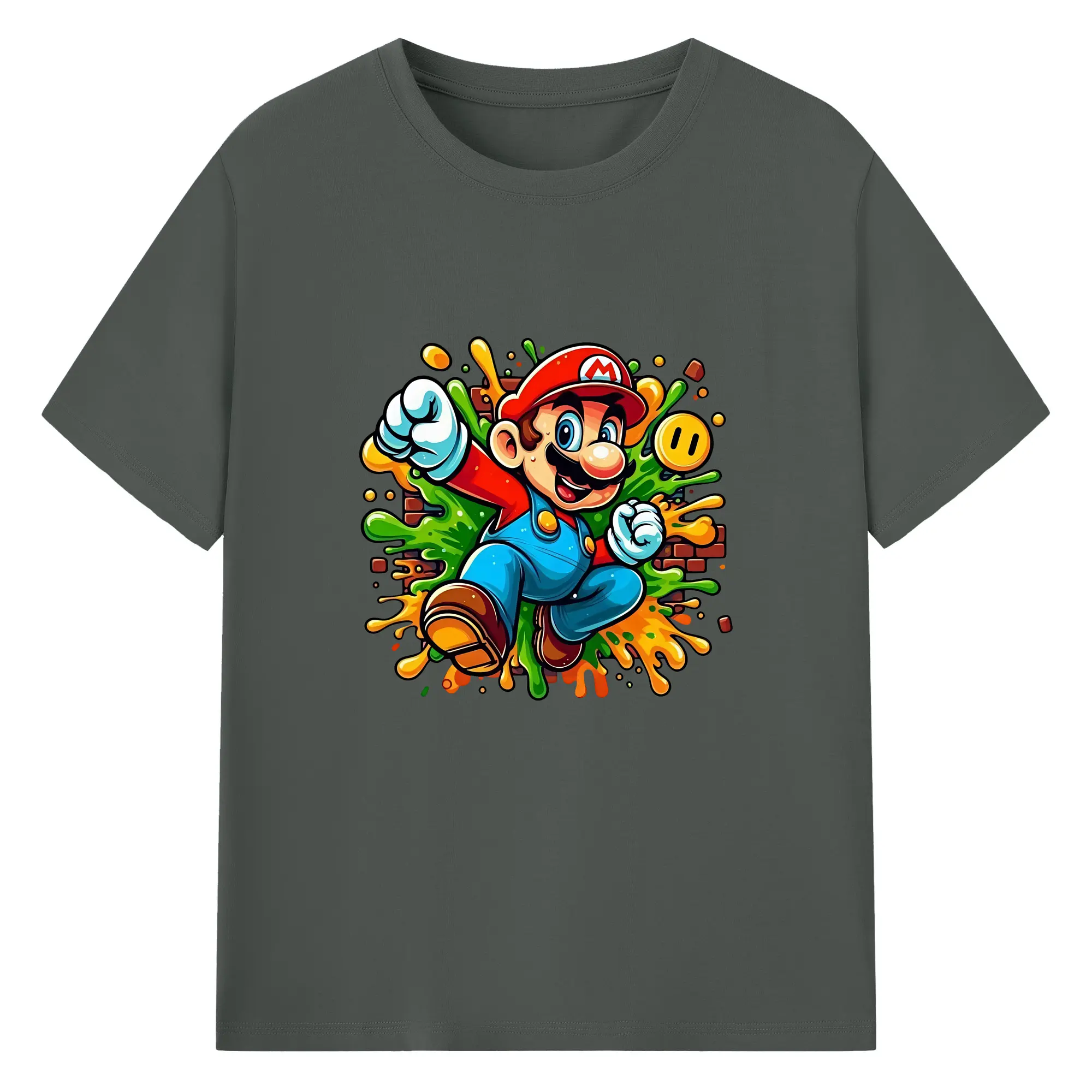 マリオ グッズ マリオ - 綿100% 半袖Tシャツ ・ バックプリント ・ 快適 通気性 ・ 日常使い 散歩 スポーツ用