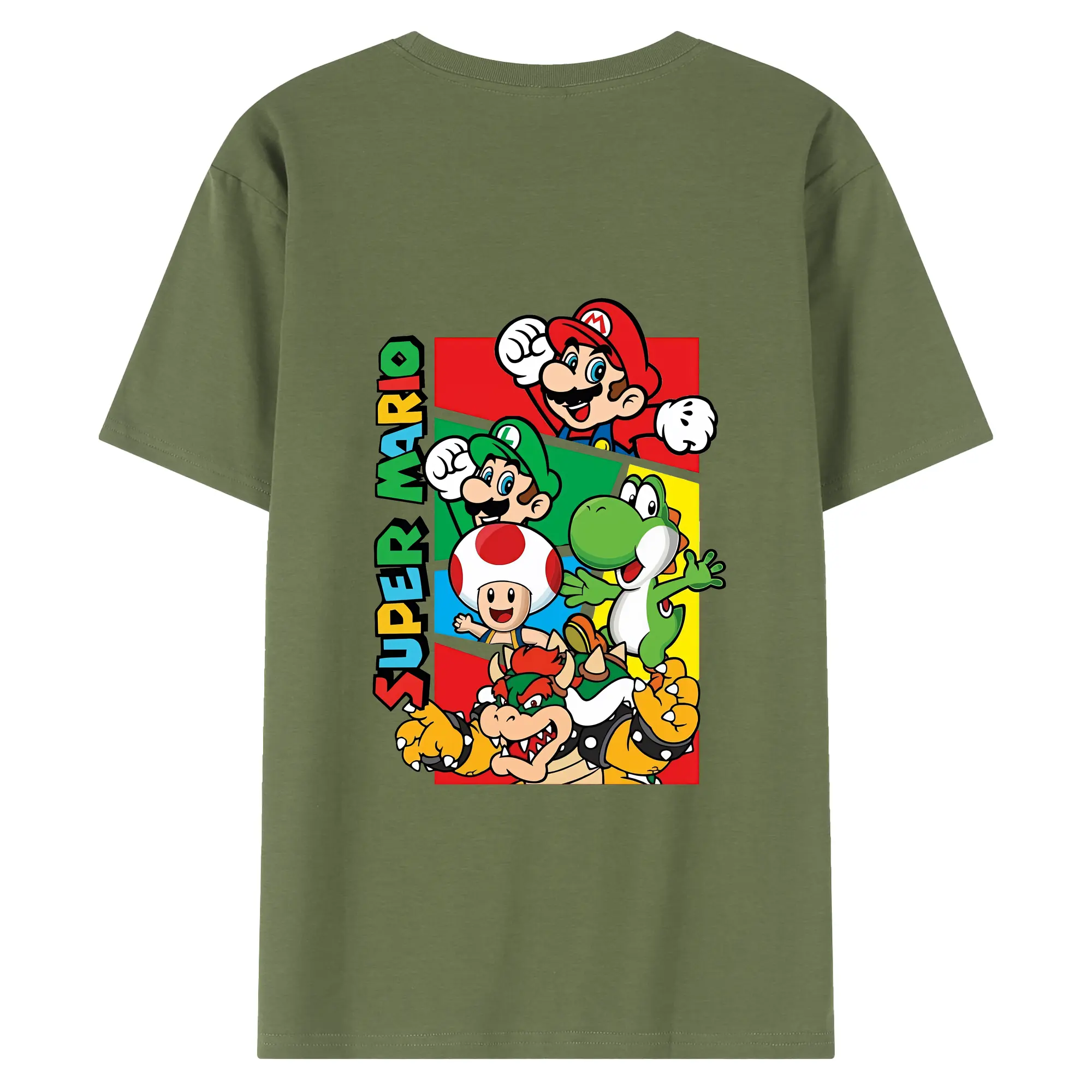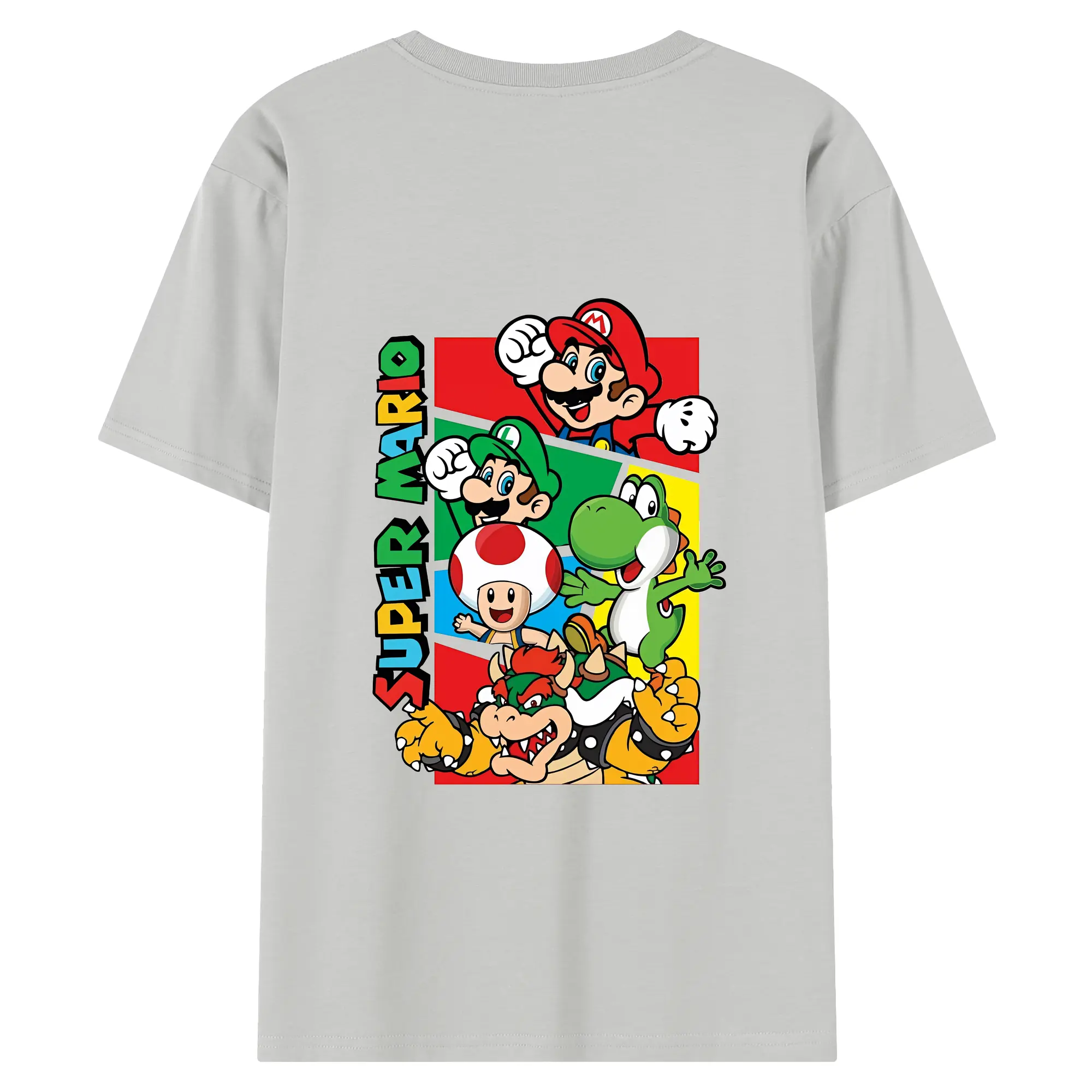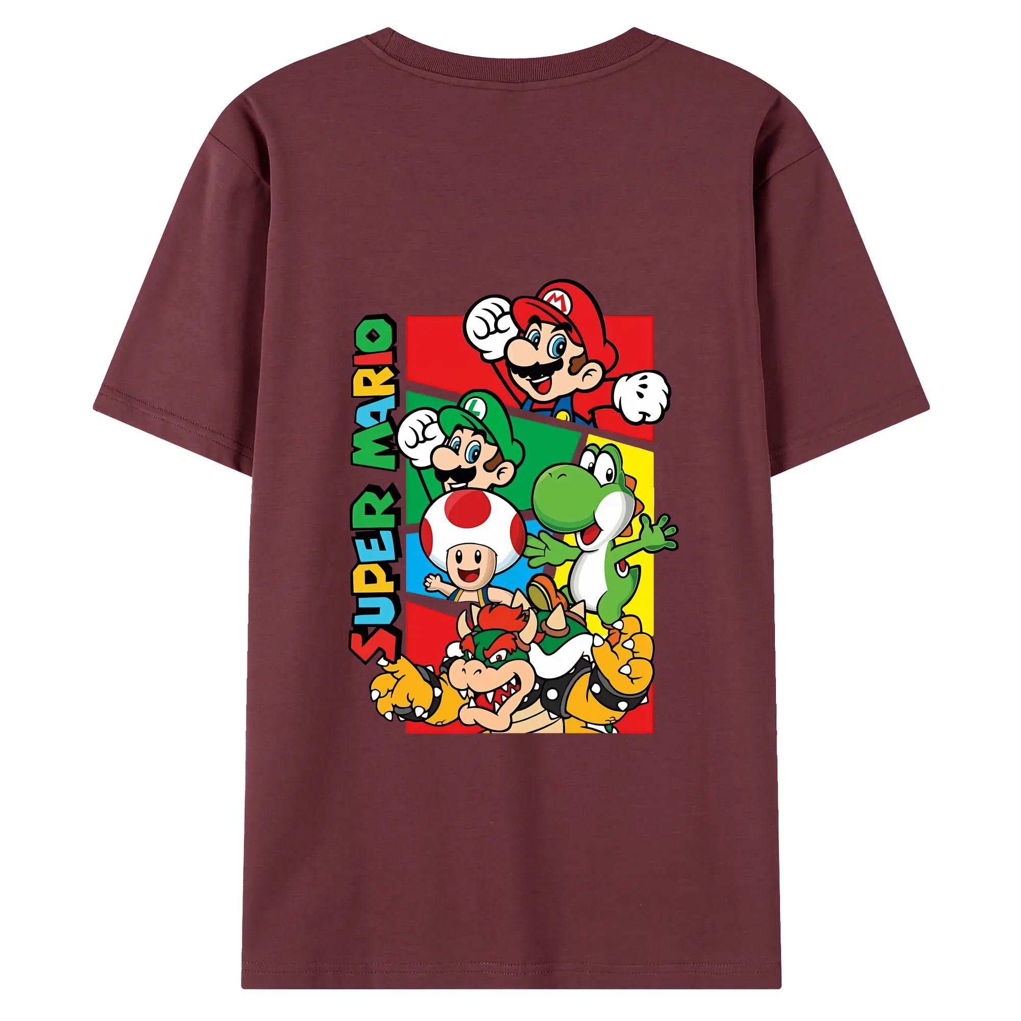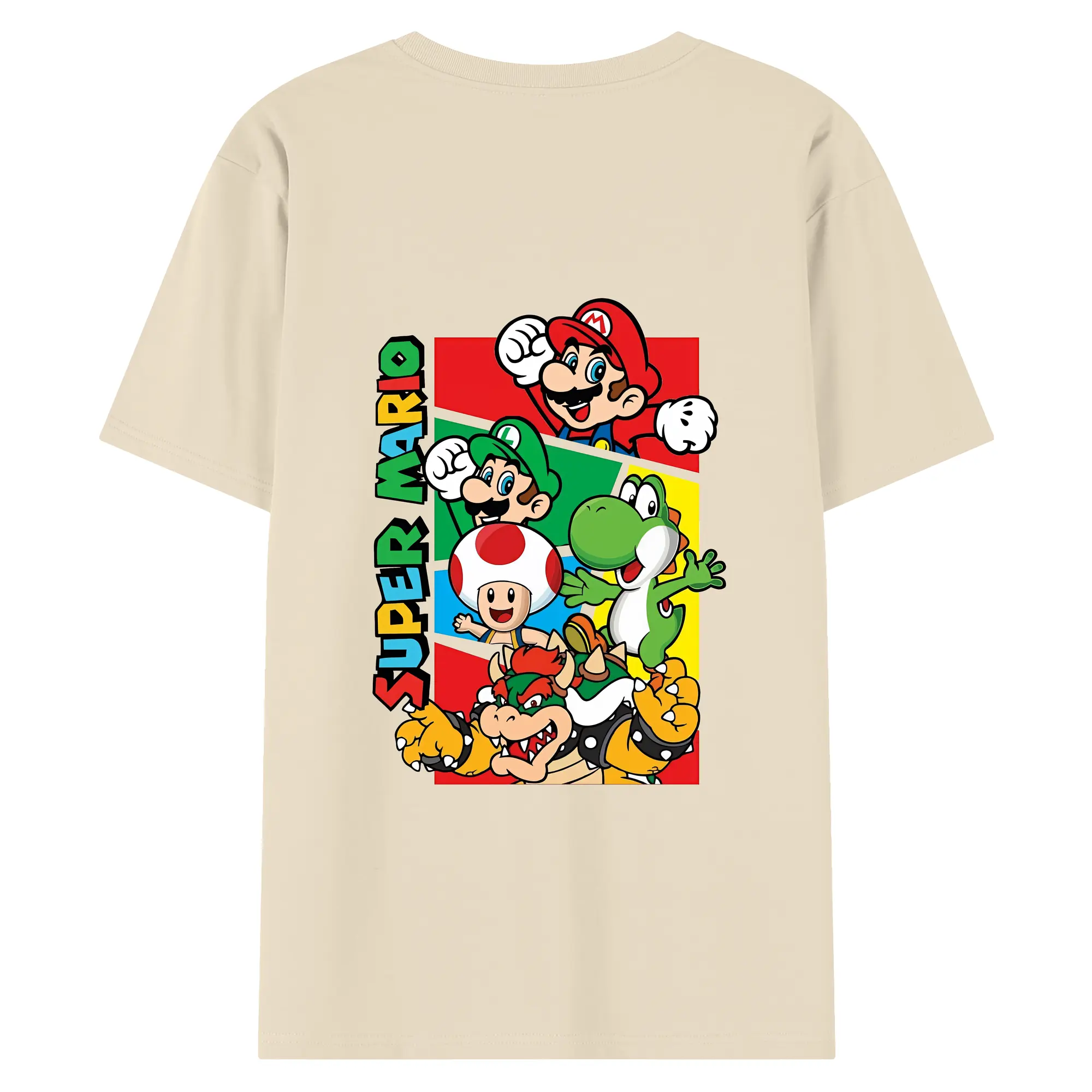 マリオ グッズ マリオ - 綿100% ヴィンテージ風 半袖Tシャツ ・ 背面プリント ・ 柔らか肌触り ・ 通気性 快適 ・ スポーツ カジュアル 外出用
