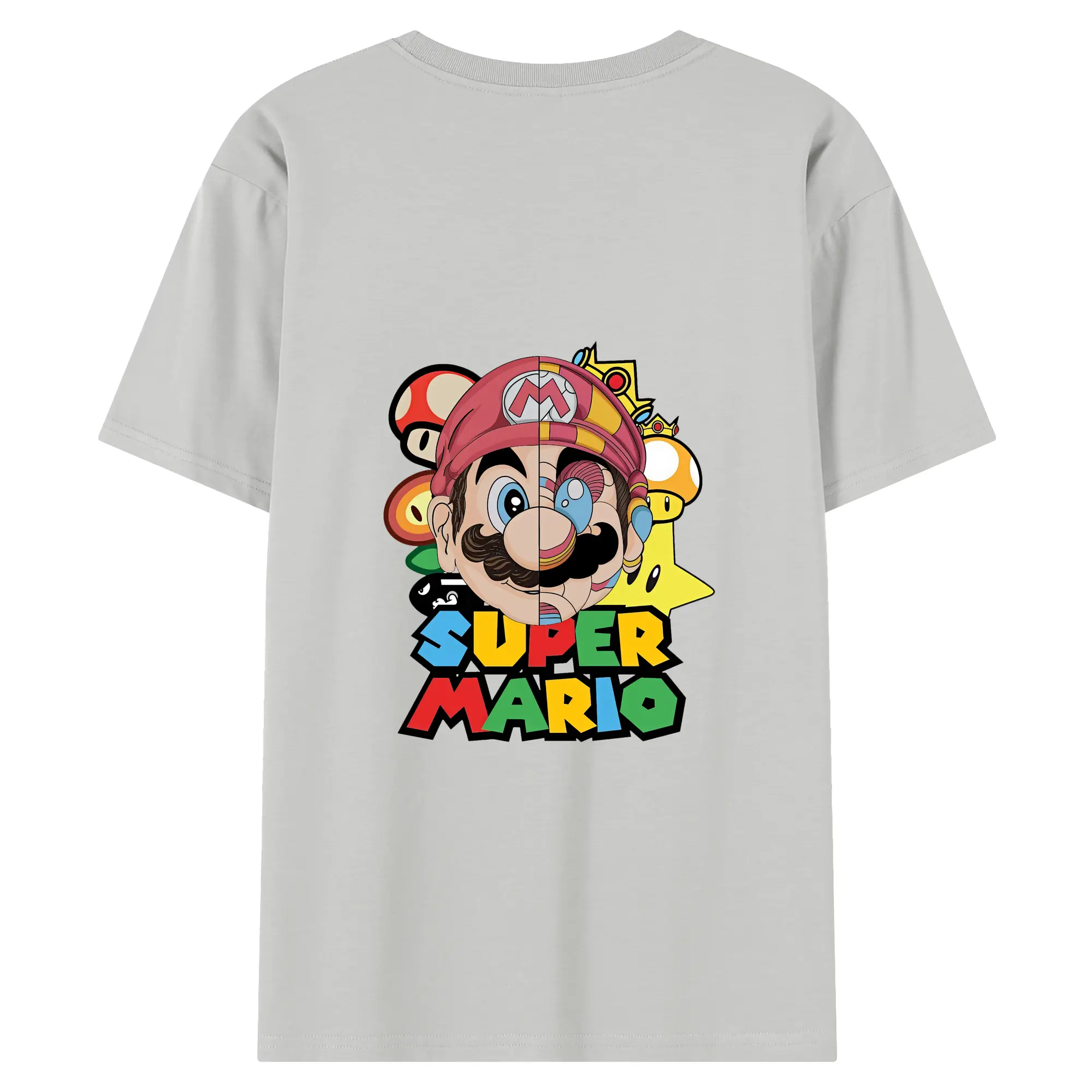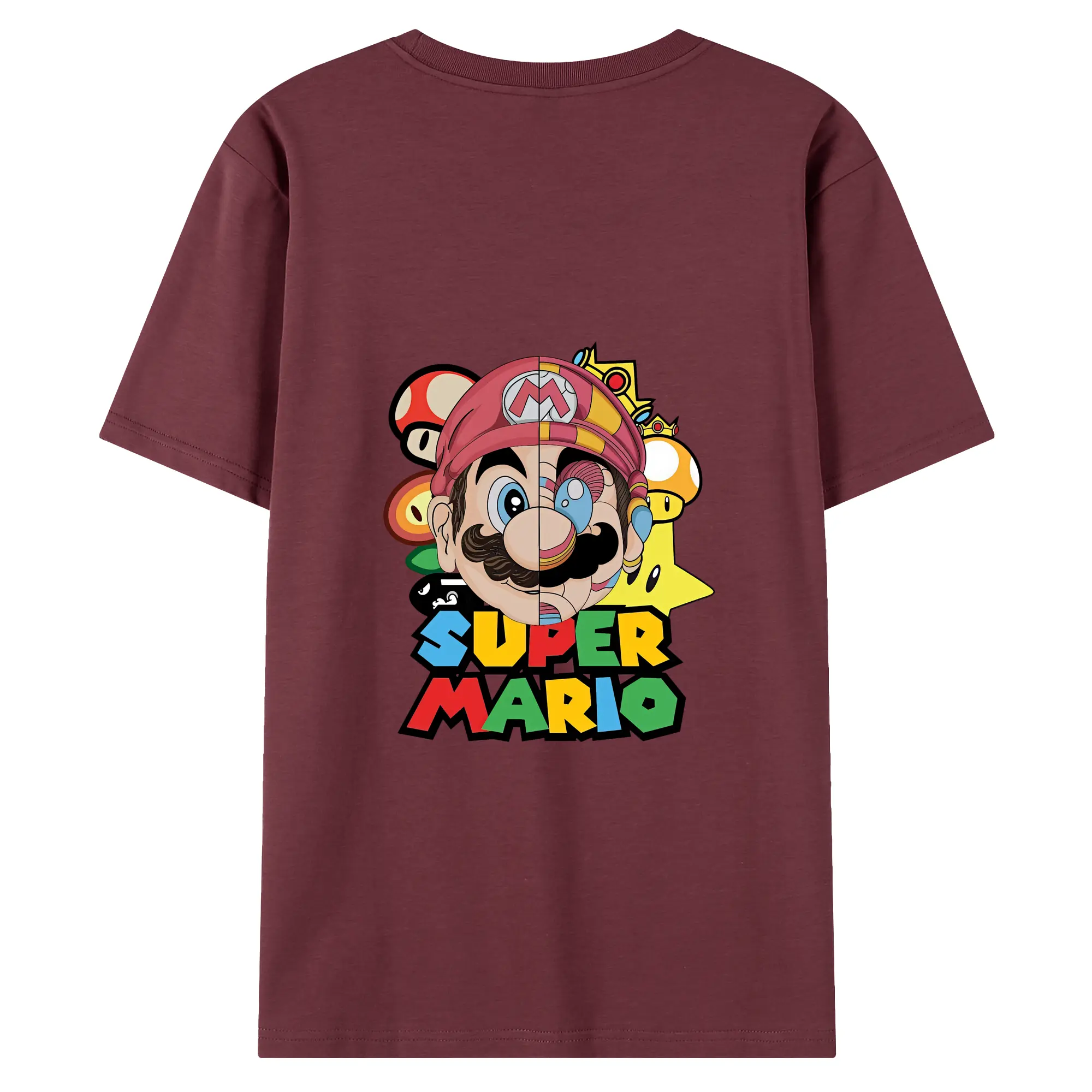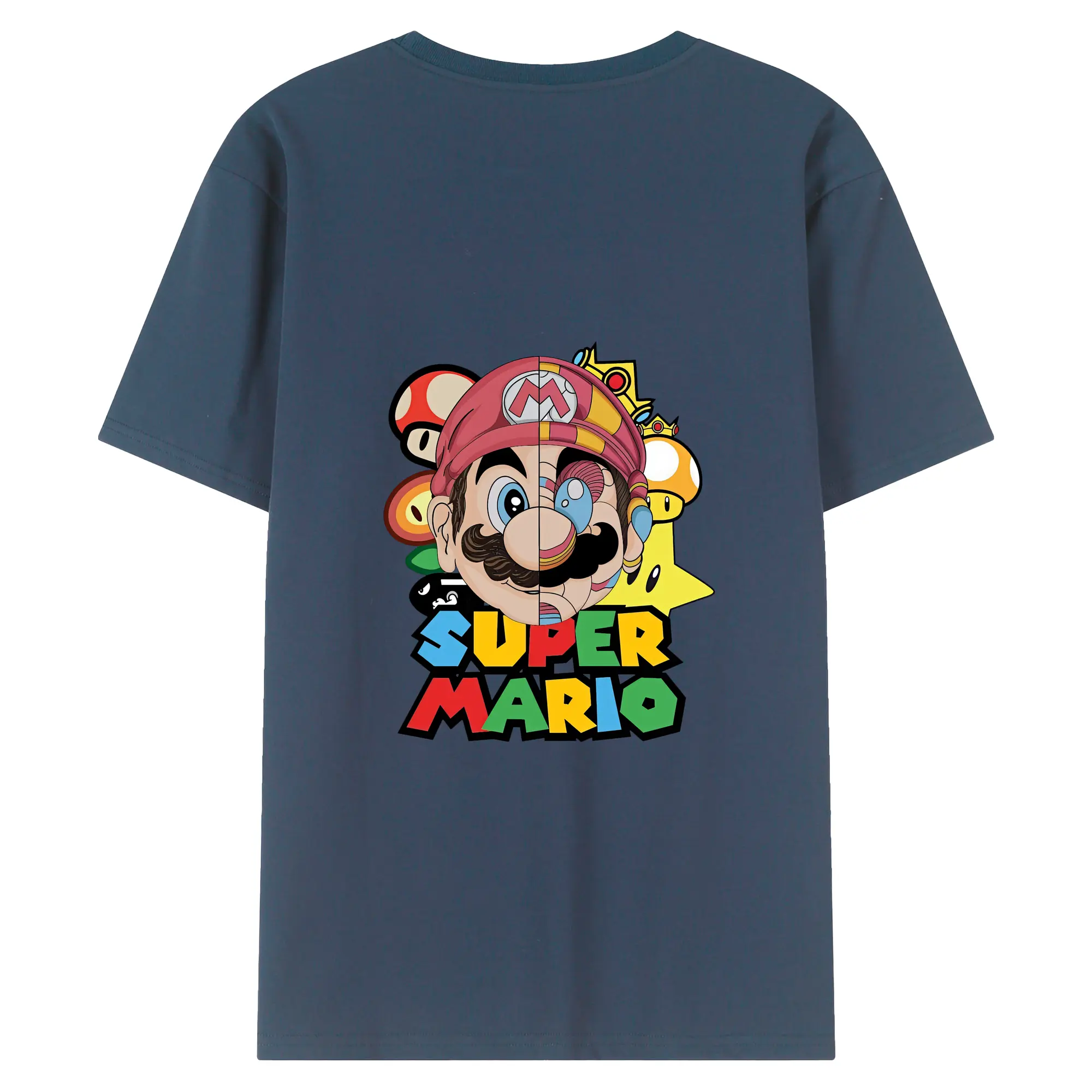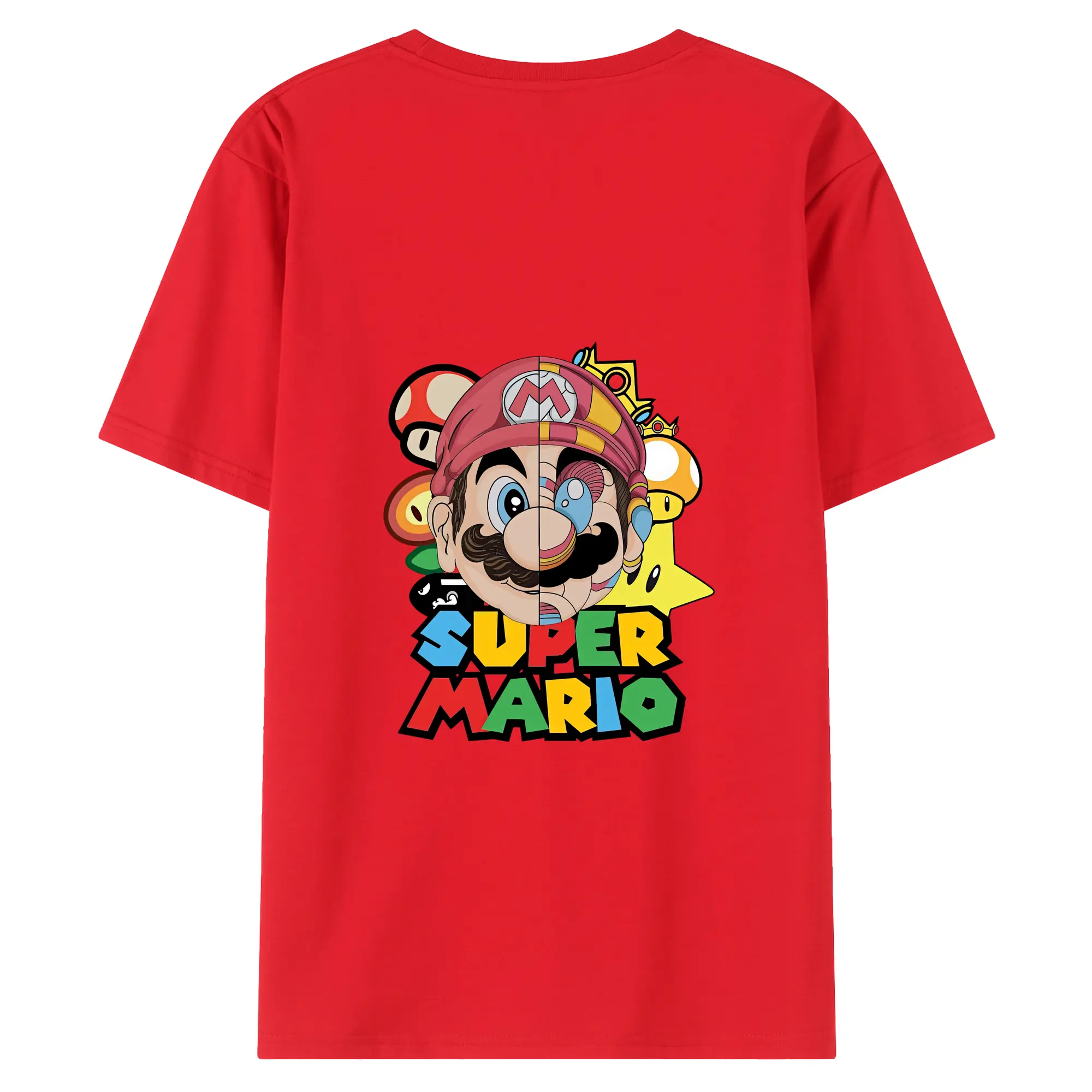 マリオ グッズ マリオ - 綿100% ヴィンテージ風 半袖Tシャツ ・ 背面プリント ・ 柔らか肌触り ・ 通気性 快適 ・ スポーツ カジュアル 外出用