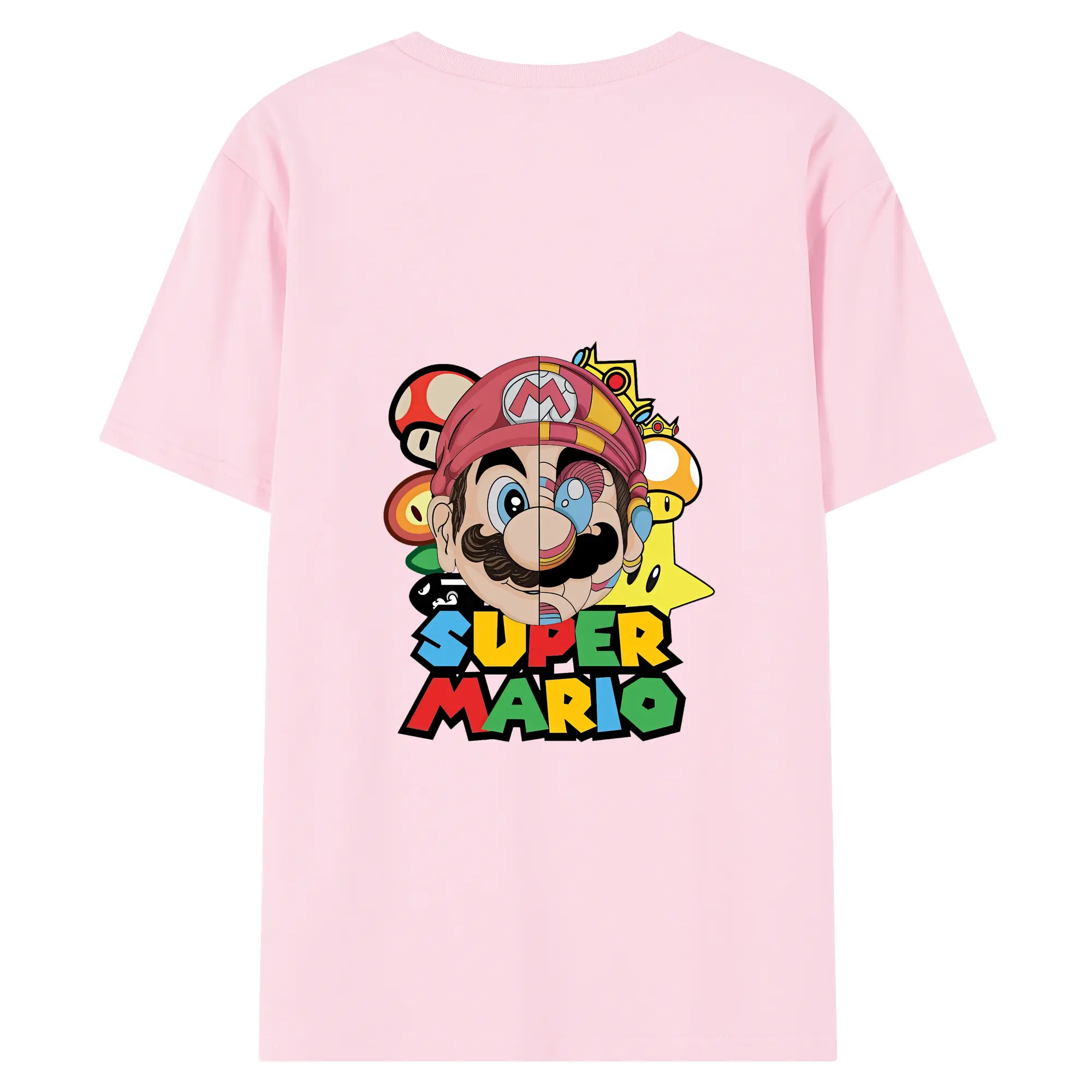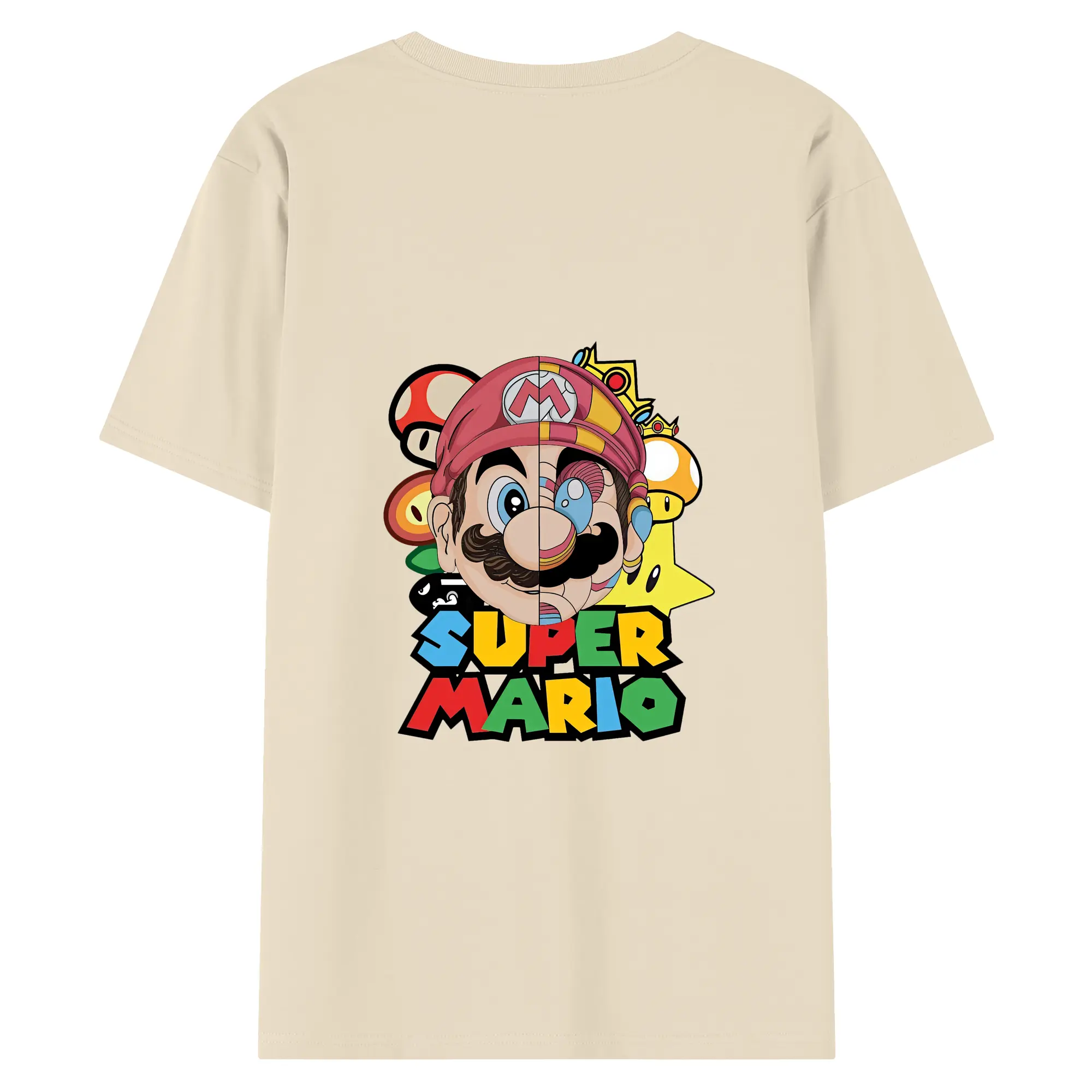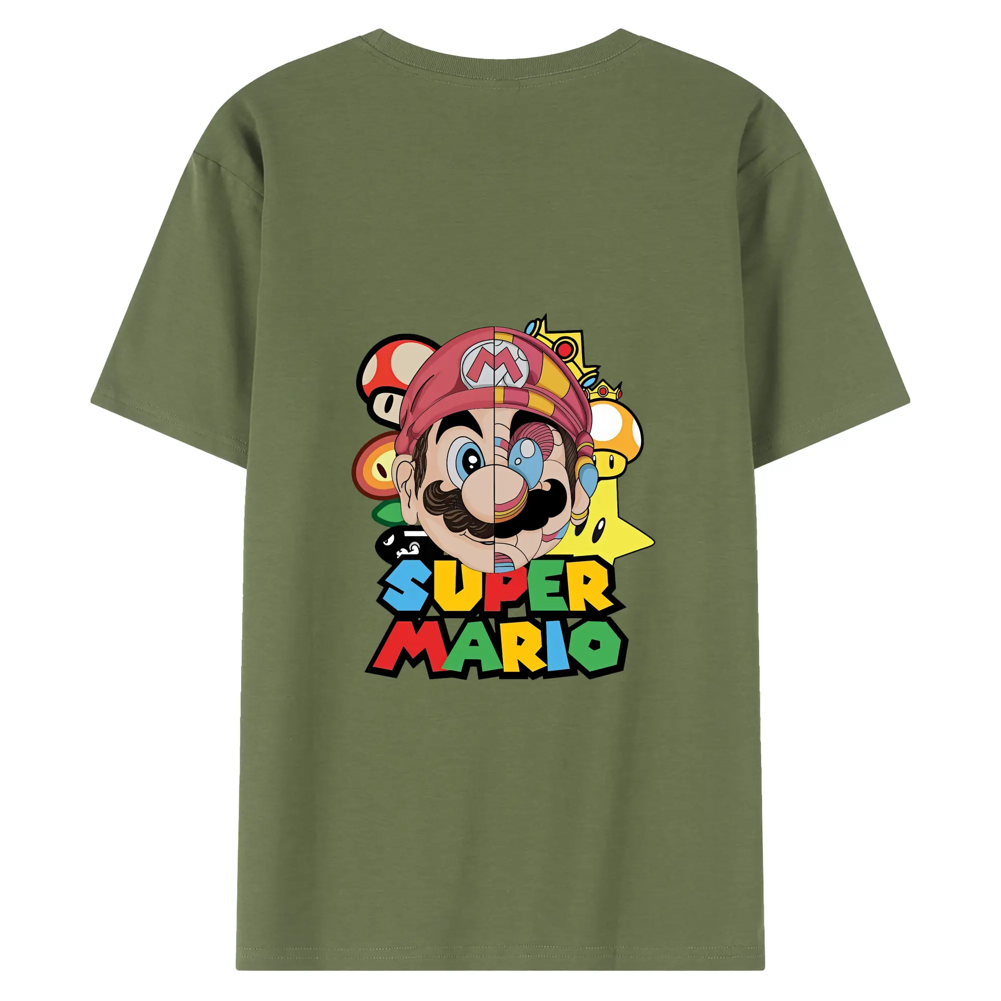 マリオ グッズ マリオ - 綿100% ヴィンテージ風 半袖Tシャツ ・ 背面プリント ・ 柔らか肌触り ・ 通気性 快適 ・ スポーツ カジュアル 外出用