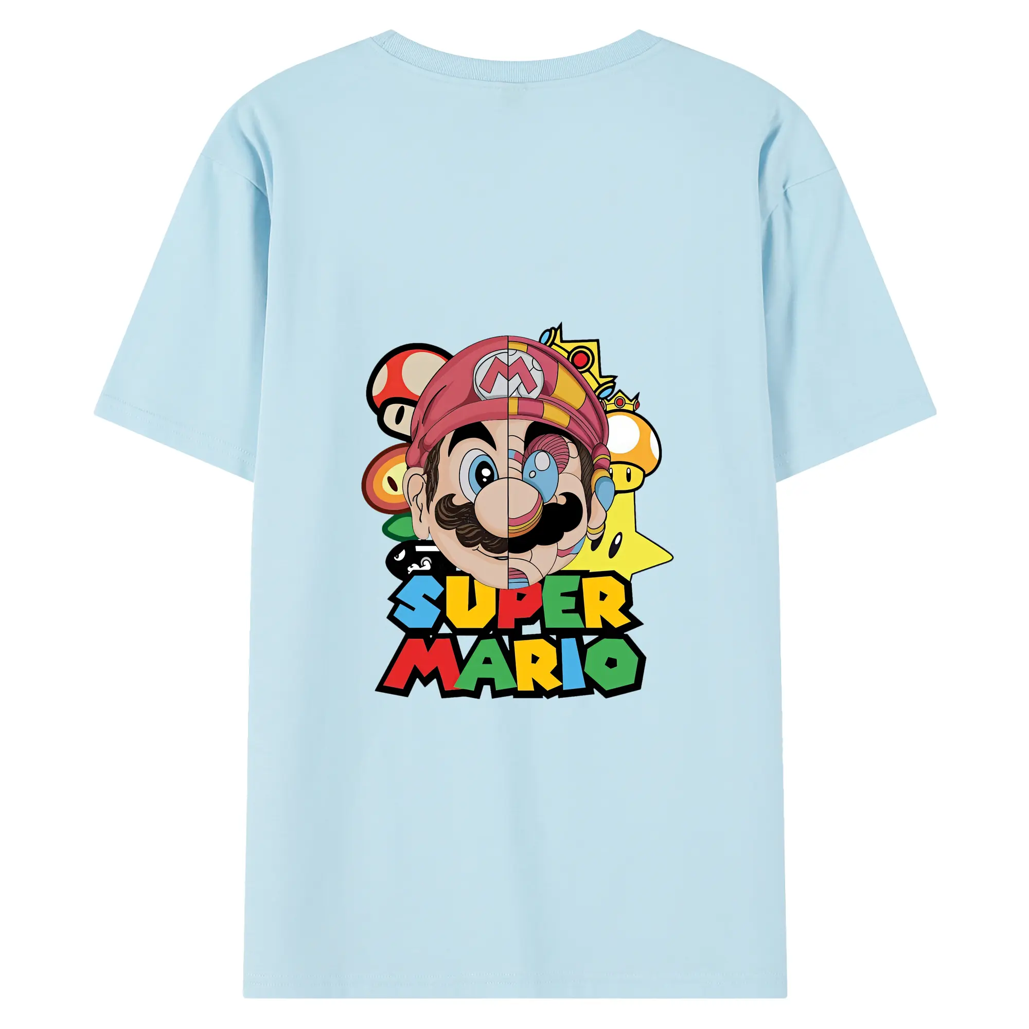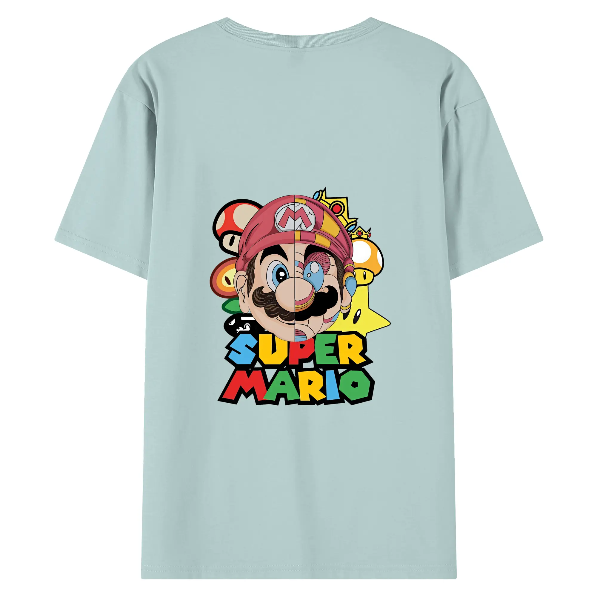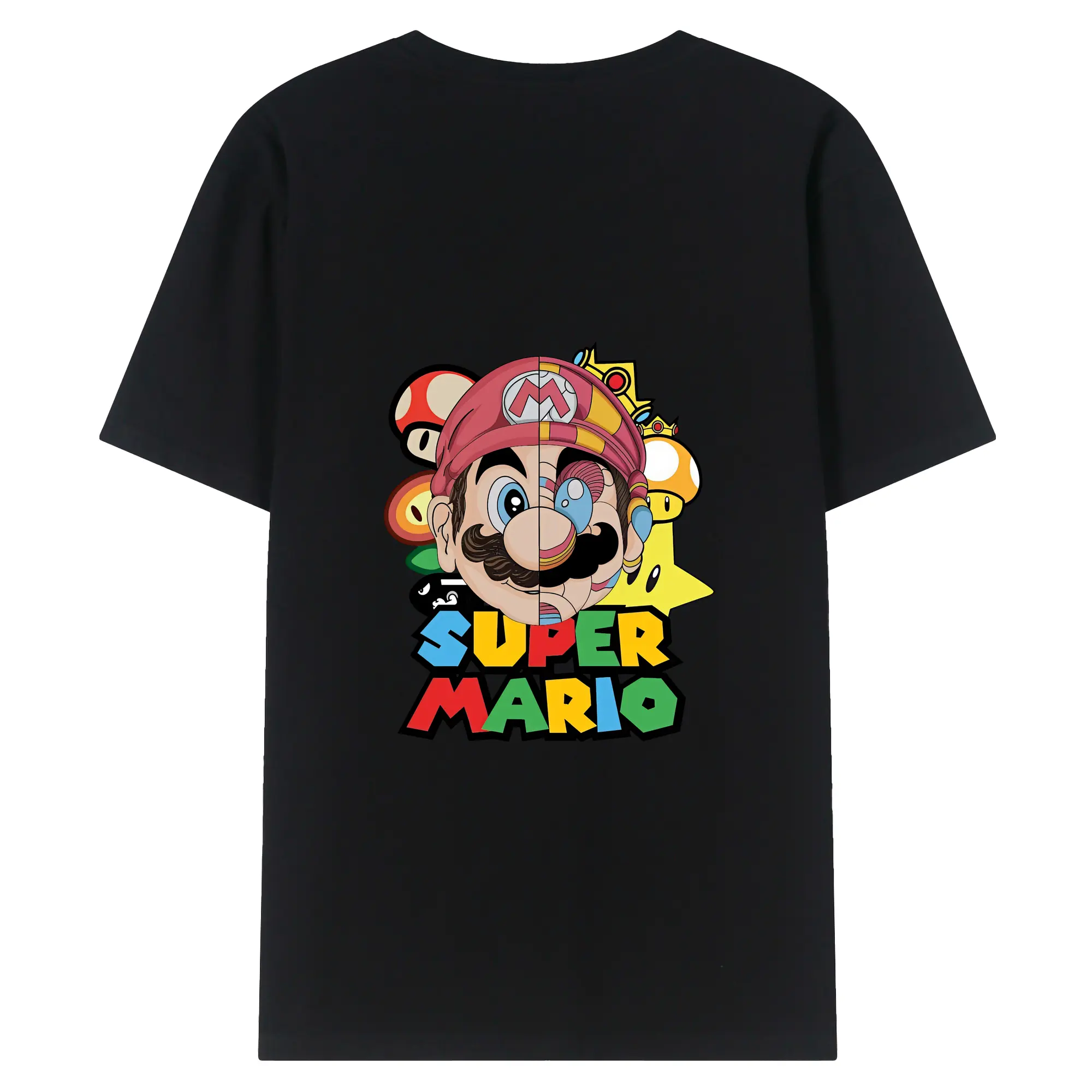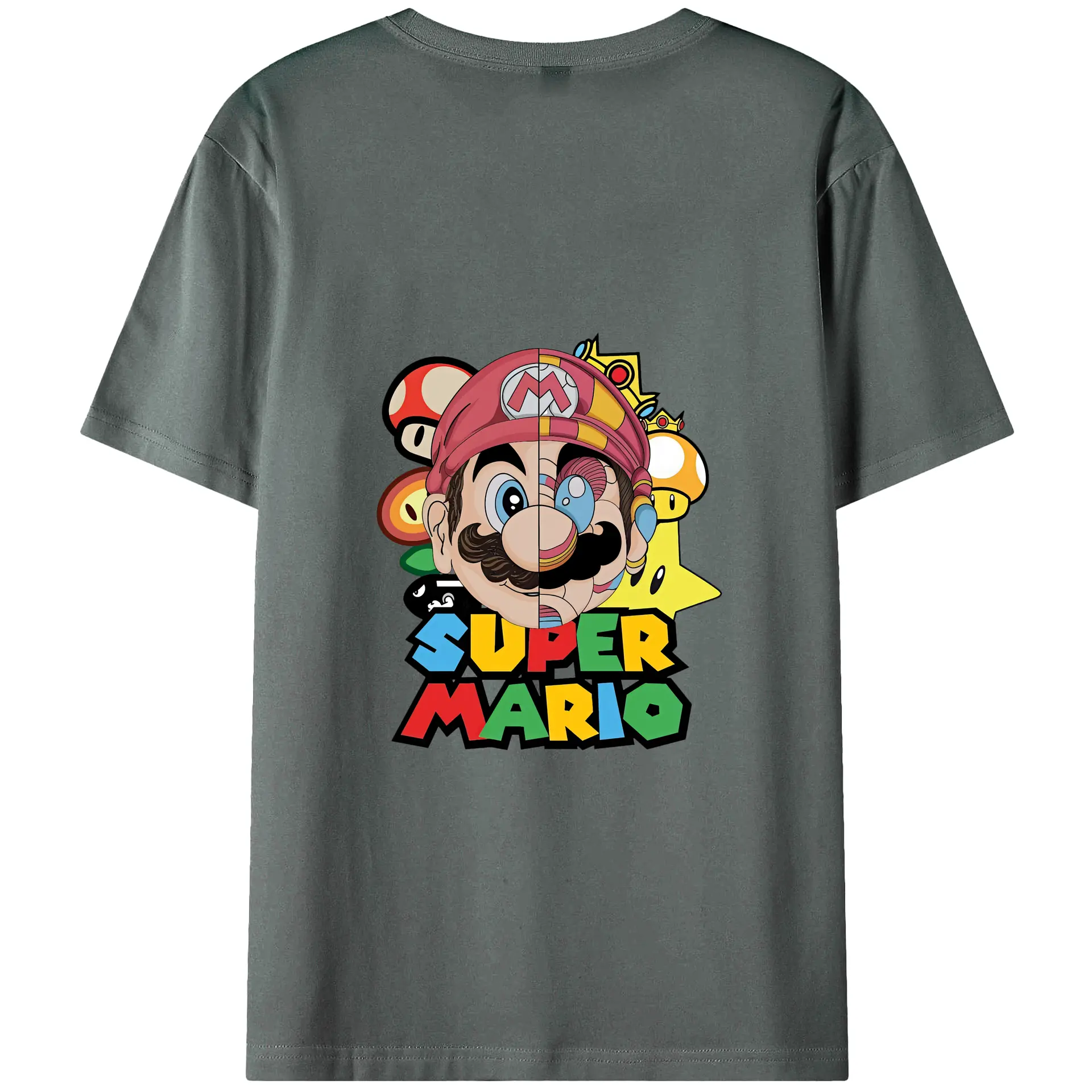 マリオ グッズ マリオ - 綿100% ヴィンテージ風 半袖Tシャツ ・ 背面プリント ・ 柔らか肌触り ・ 通気性 快適 ・ スポーツ カジュアル 外出用