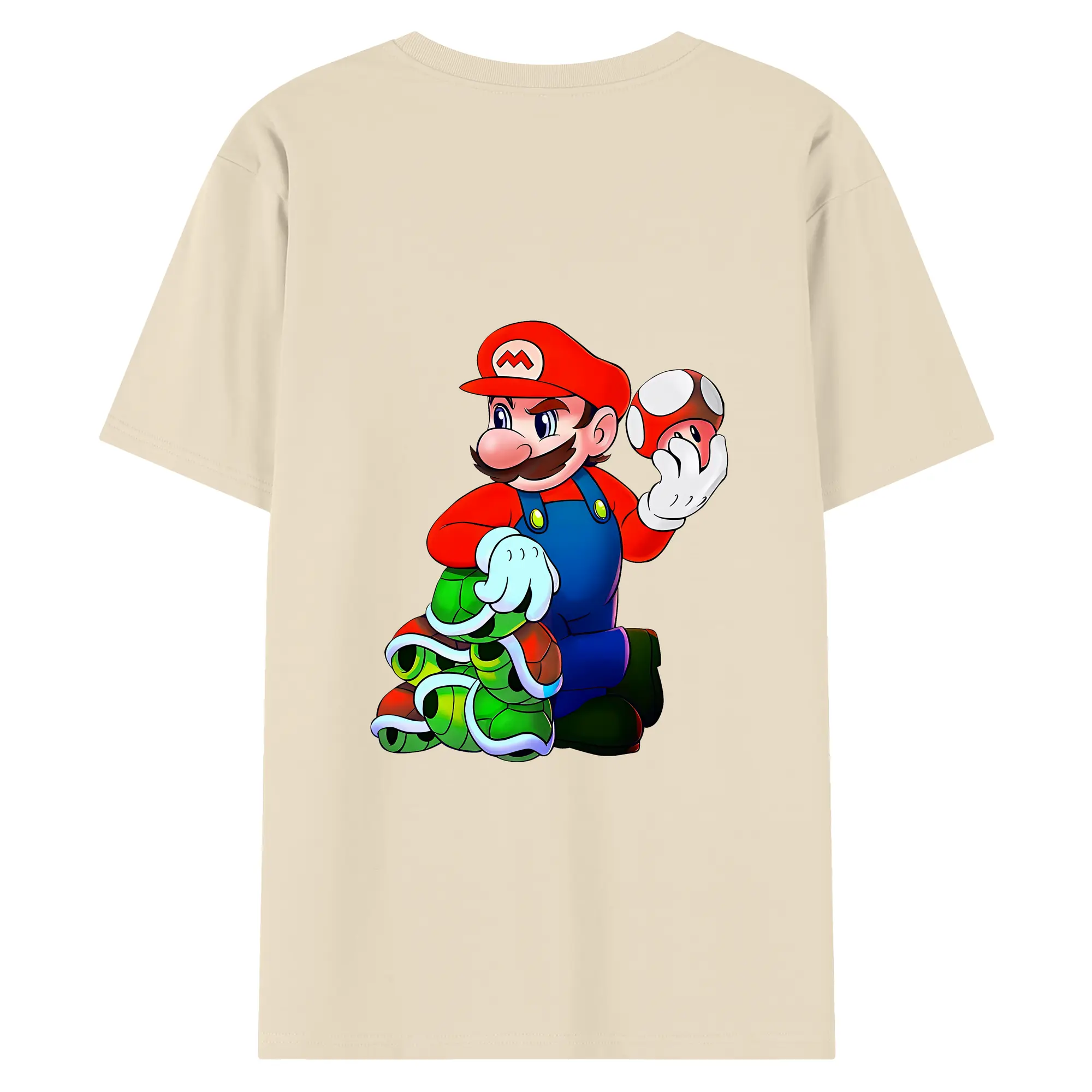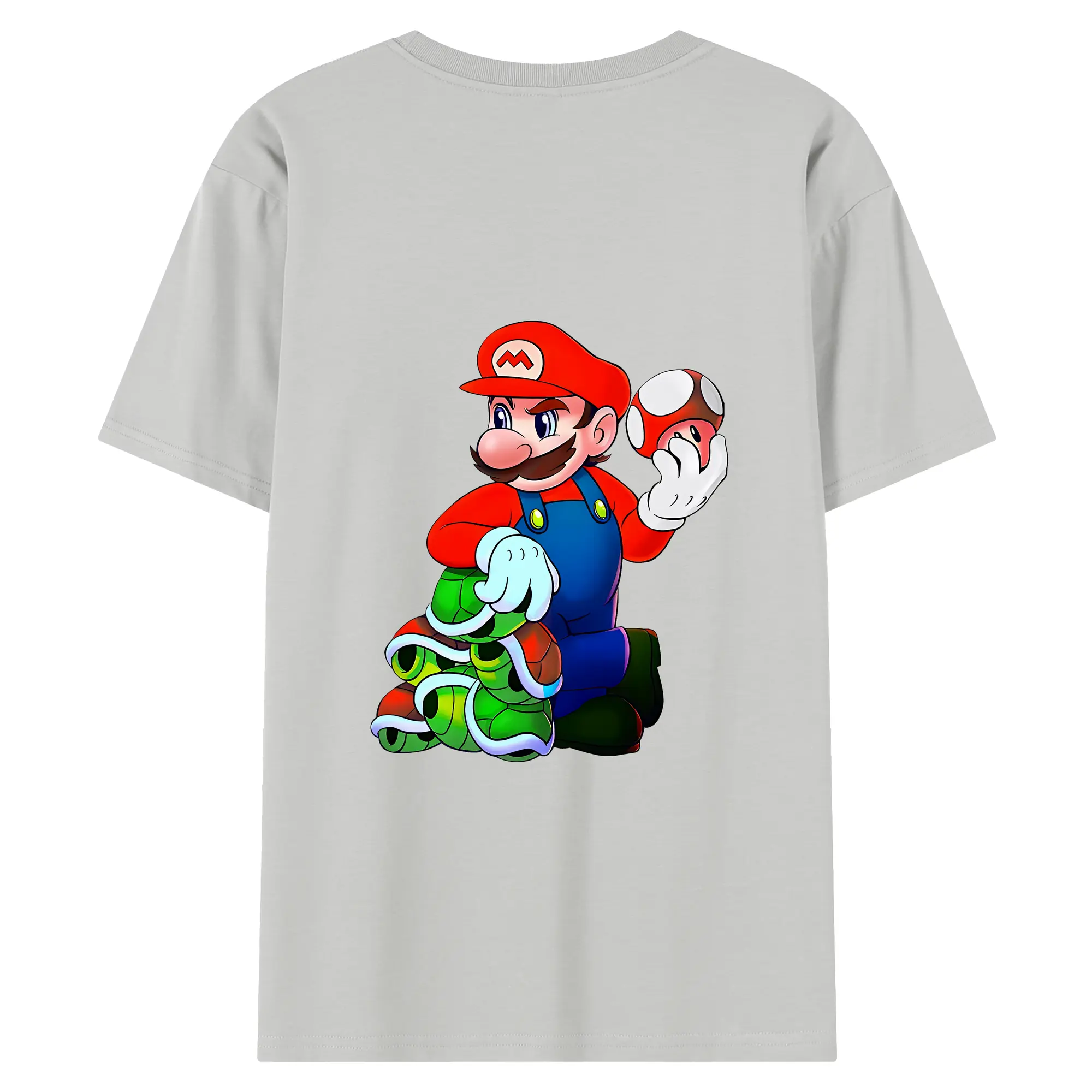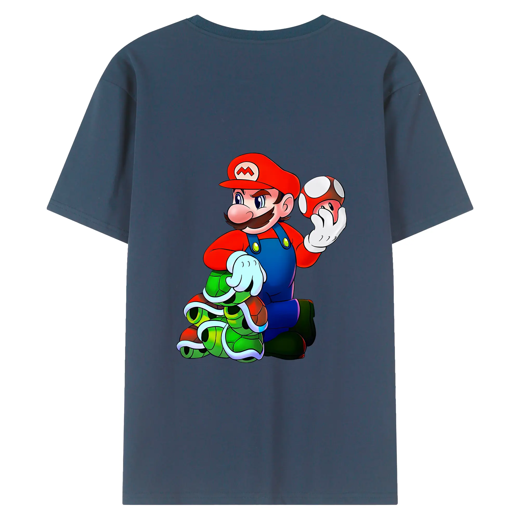 マリオ グッズ マリオ - 綿100% ヴィンテージ風 半袖Tシャツ ・ 背面プリント ・ 柔らか肌触り ・ 通気性 快適 ・ スポーツ カジュアル 外出用