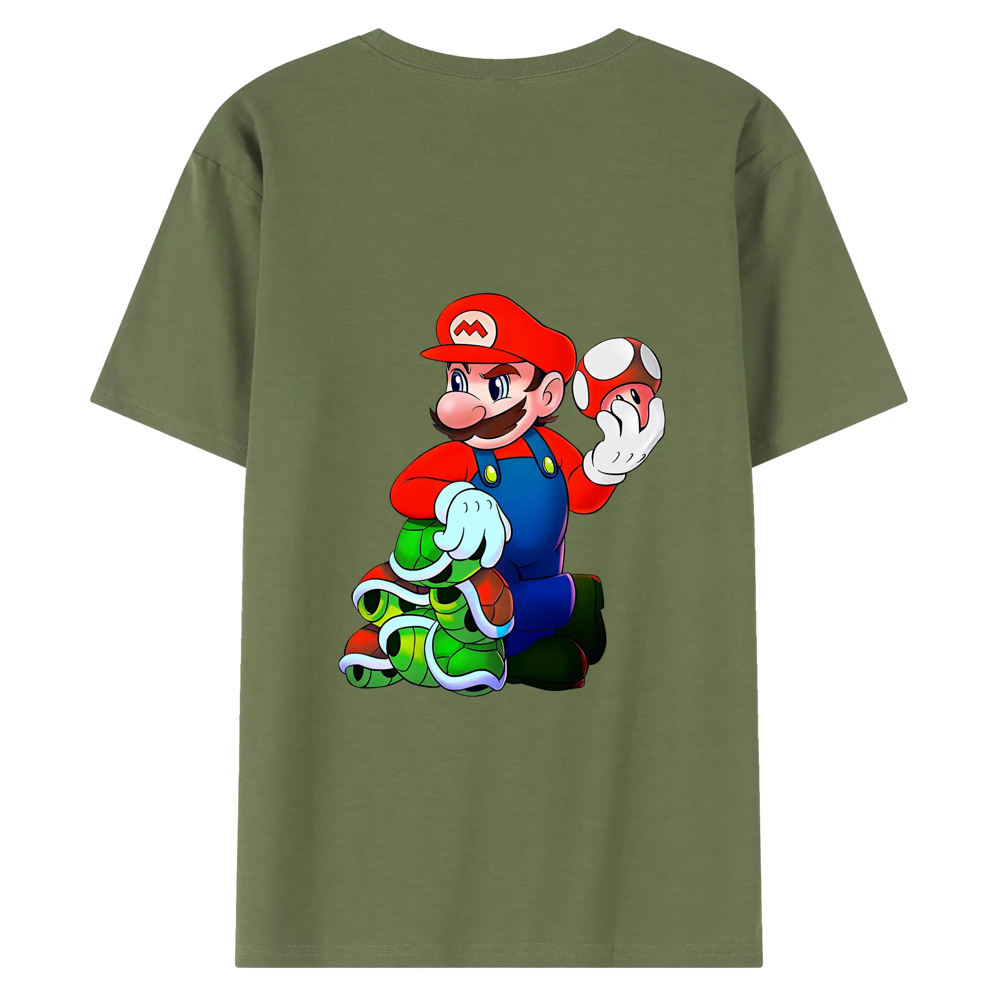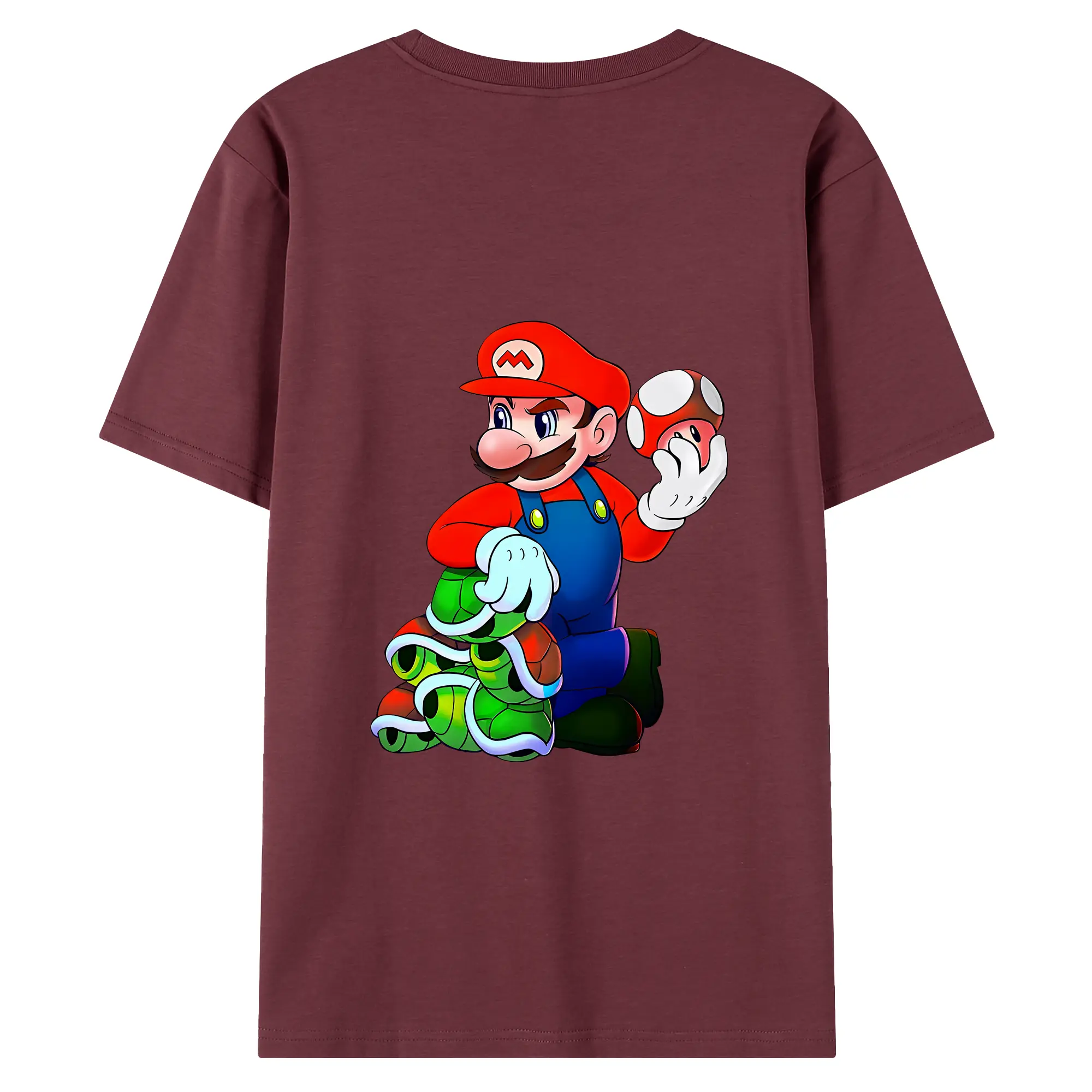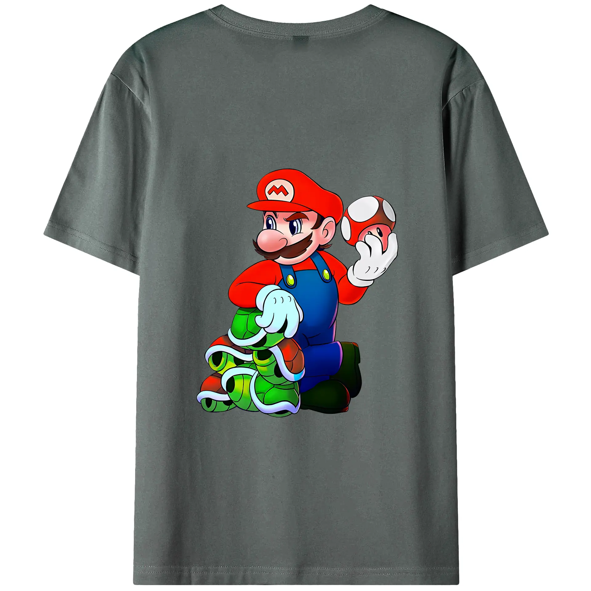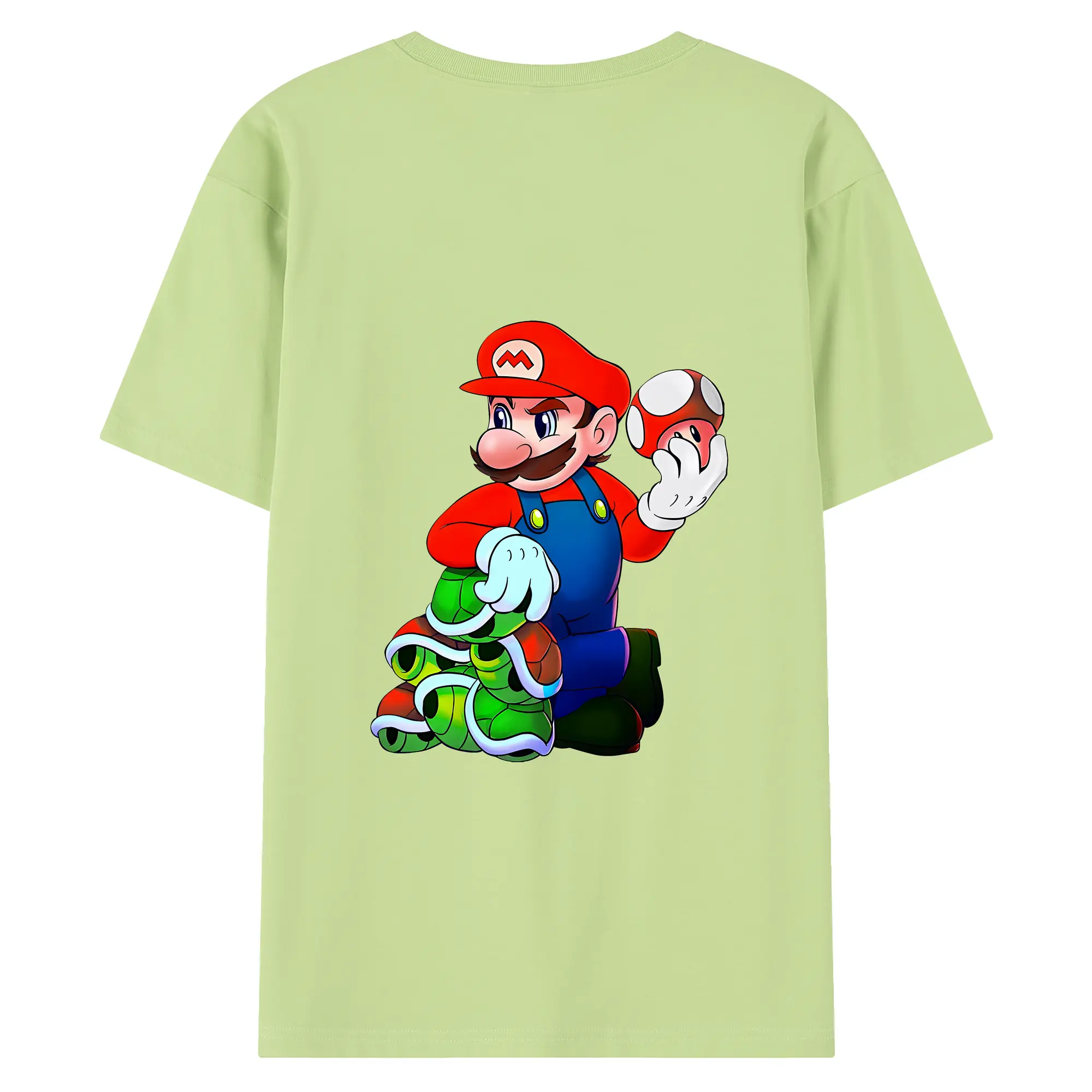マリオ グッズ マリオ - 綿100% ヴィンテージ風 半袖Tシャツ ・ 背面プリント ・ 柔らか肌触り ・ 通気性 快適 ・ スポーツ カジュアル 外出用