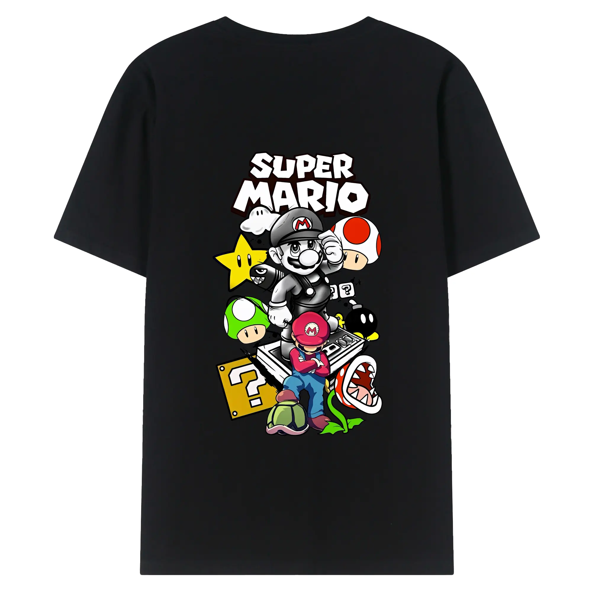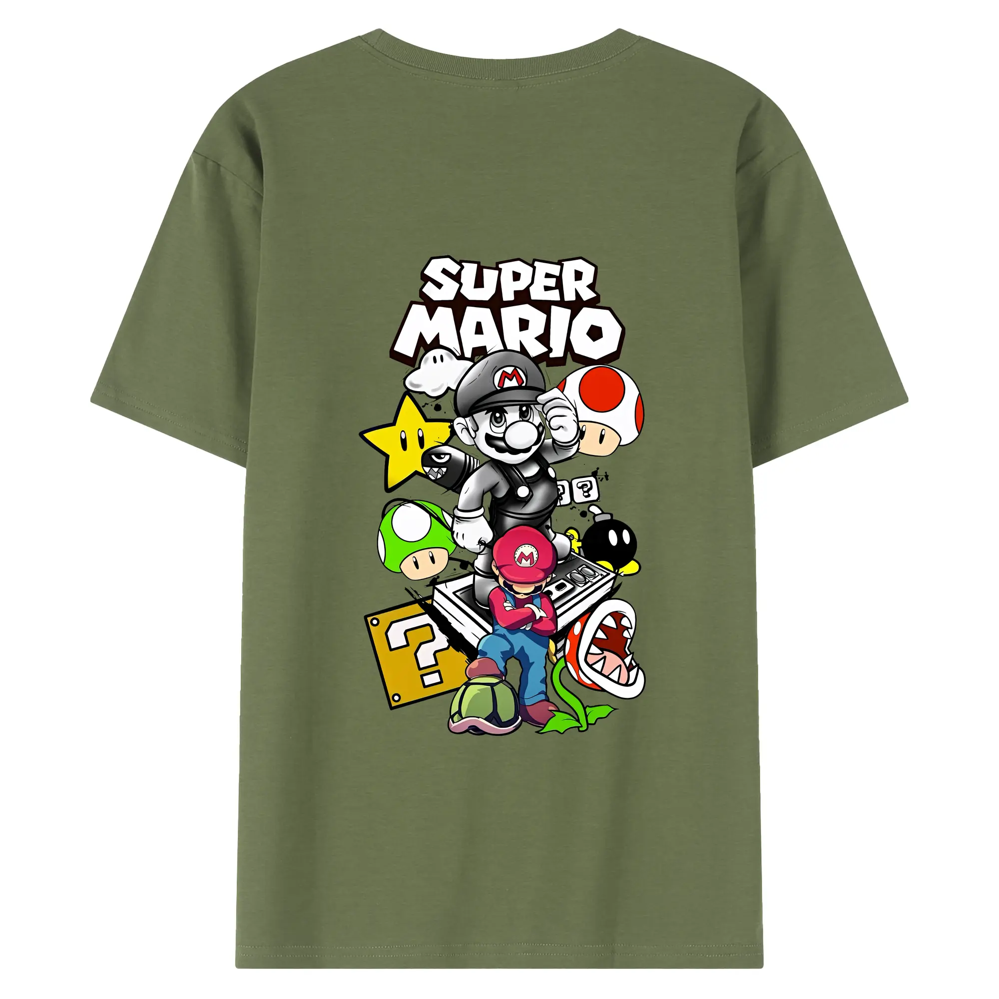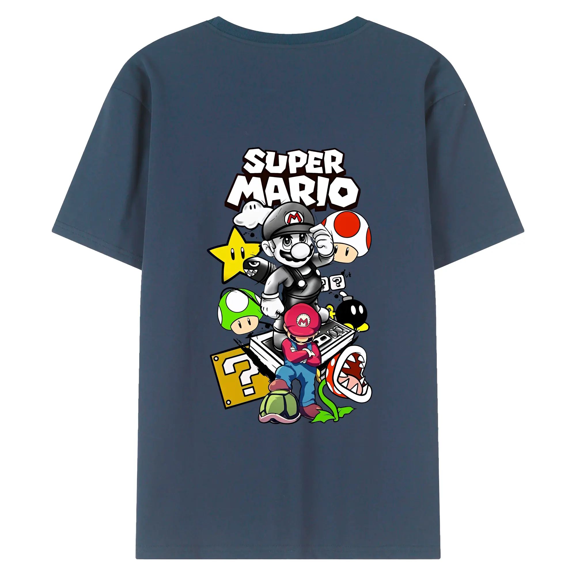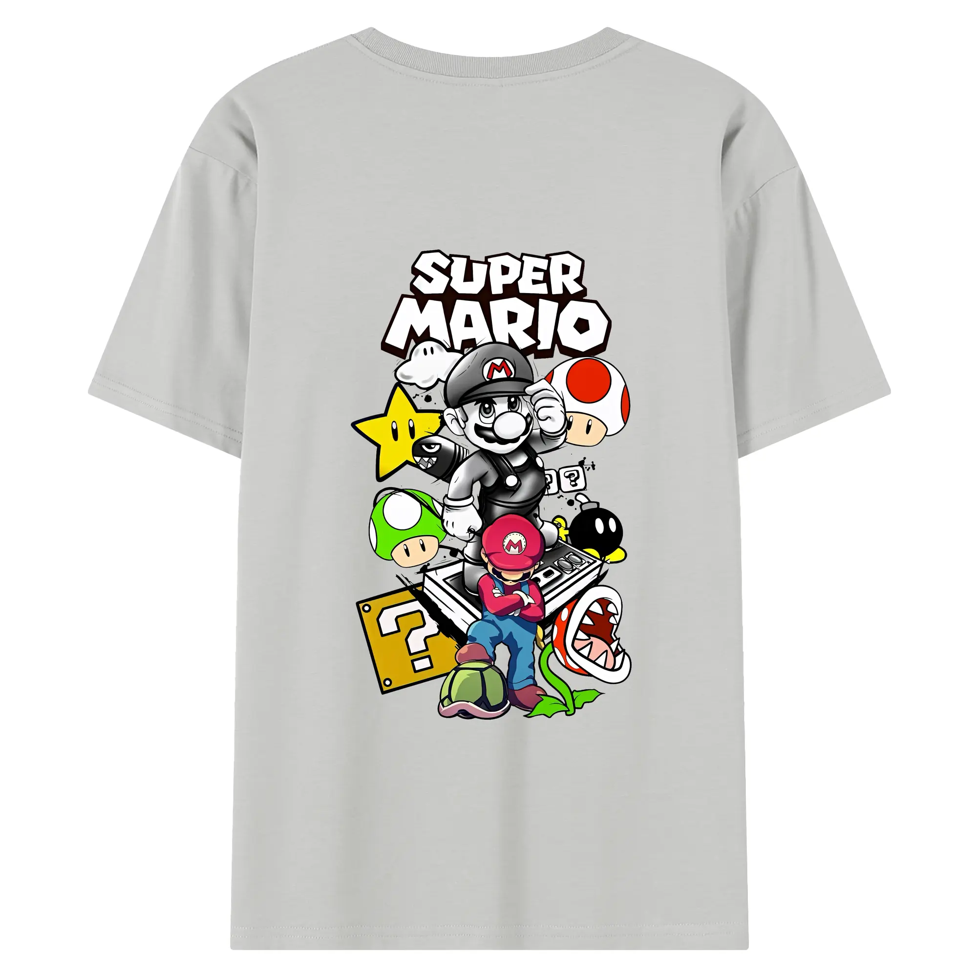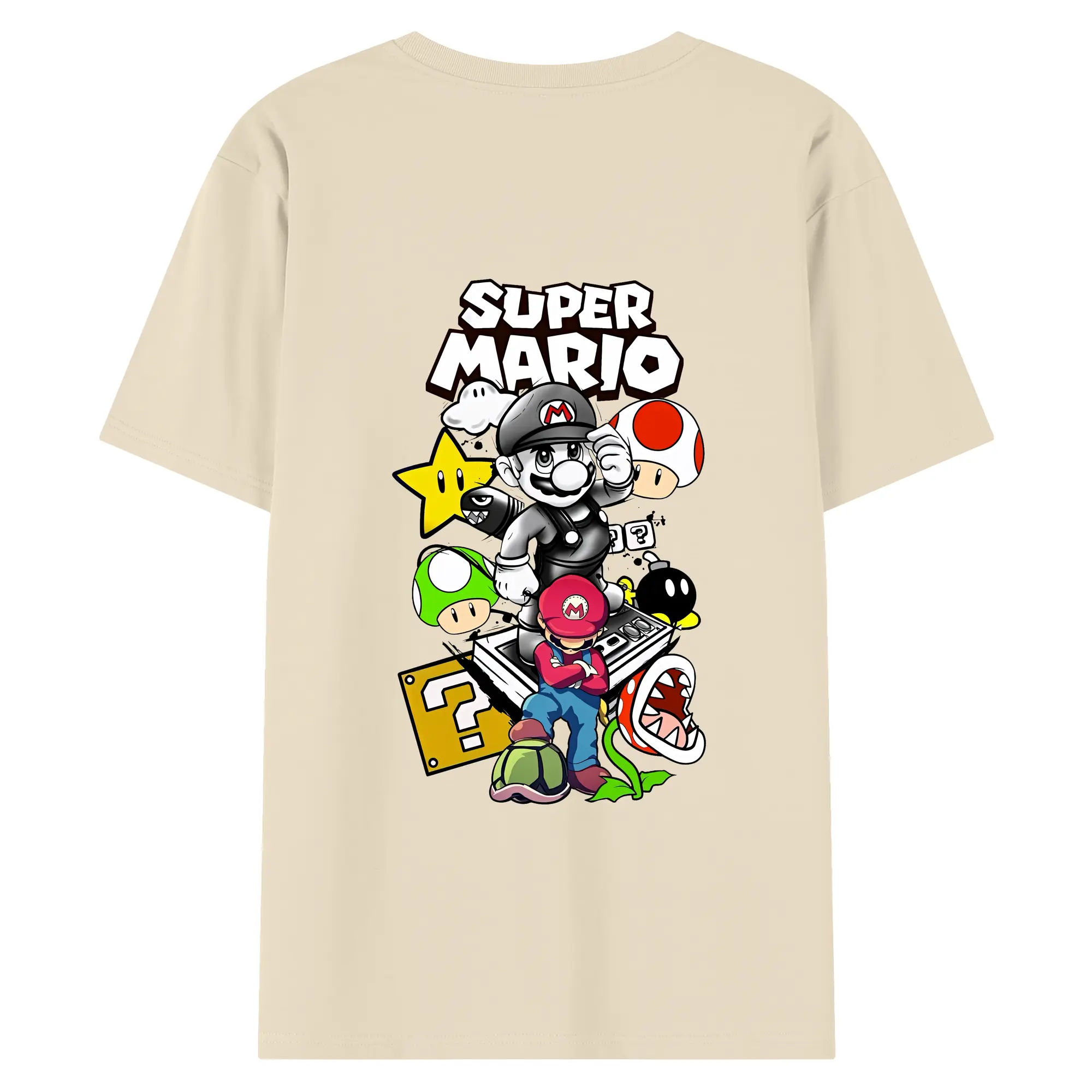 マリオ グッズ マリオ - 綿100% ヴィンテージ風 半袖Tシャツ ・ 背面プリント ・ 柔らか肌触り ・ 通気性 快適 ・ スポーツ カジュアル 外出用