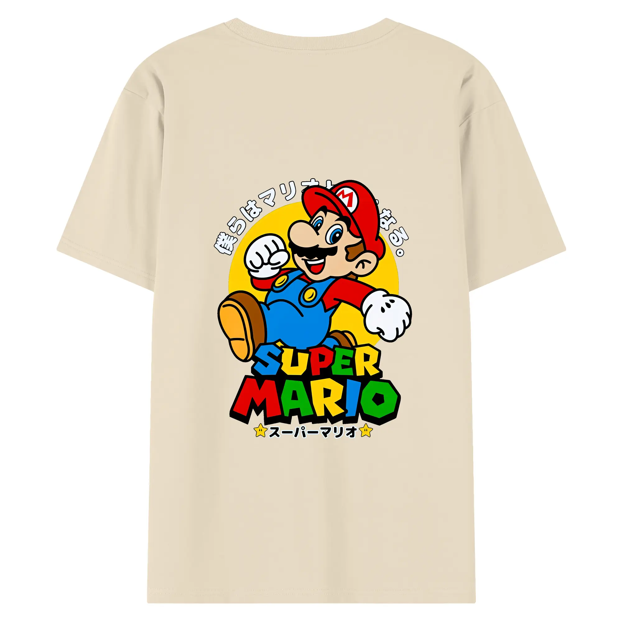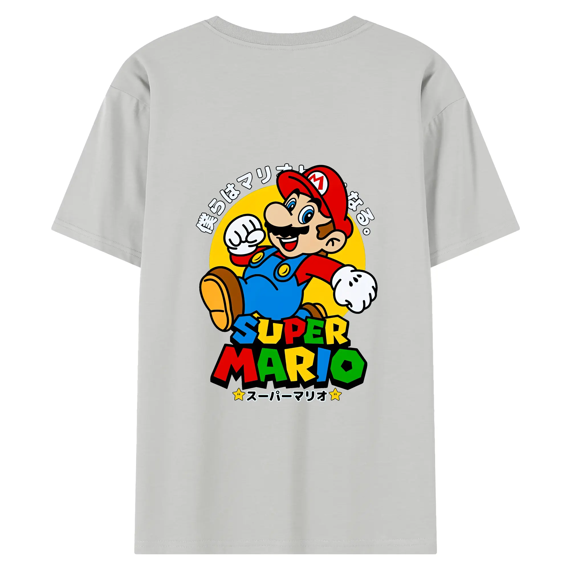 マリオ グッズ マリオ - 綿100% ヴィンテージ風 半袖Tシャツ ・ 背面プリント ・ 柔らか肌触り ・ 通気性 快適 ・ スポーツ カジュアル 外出用