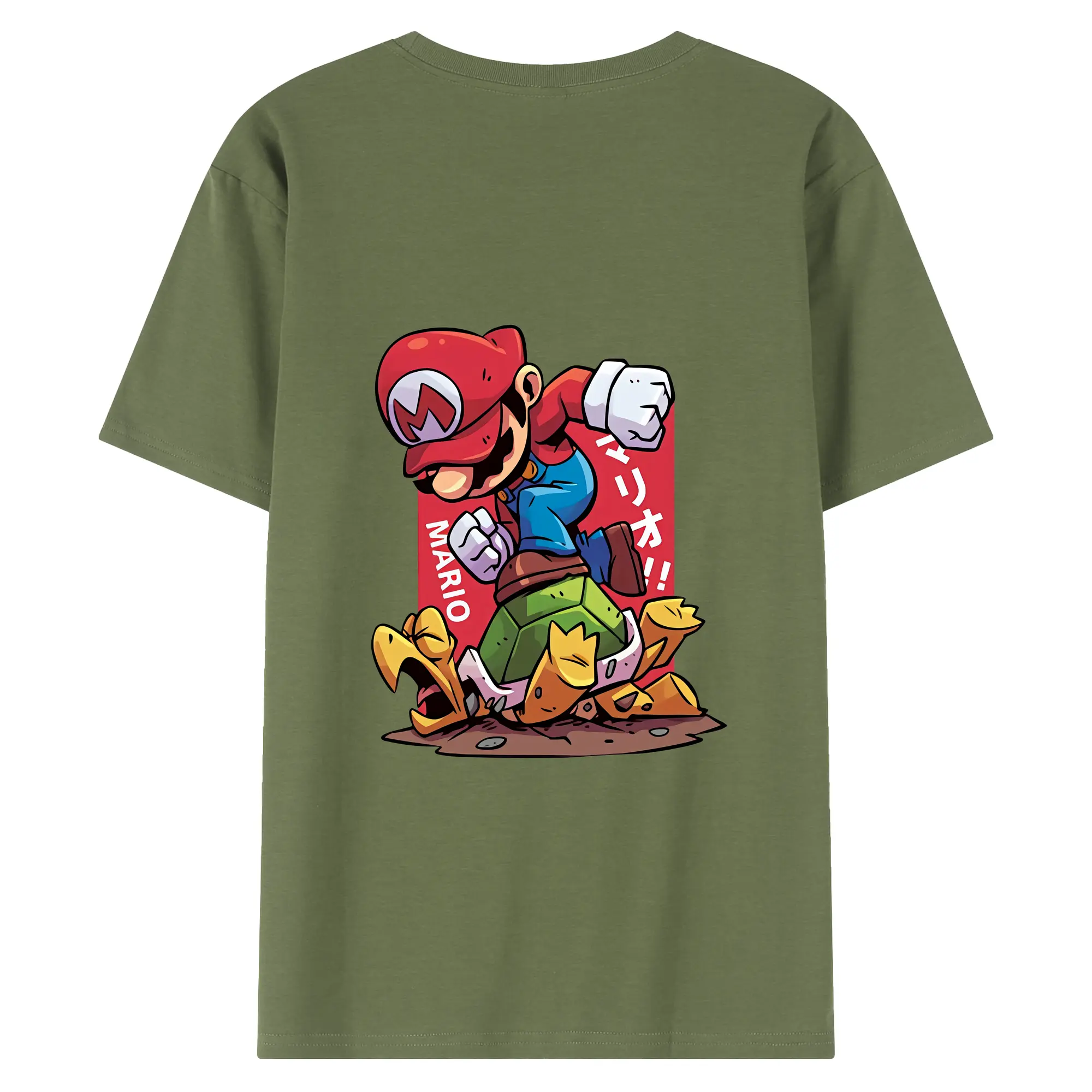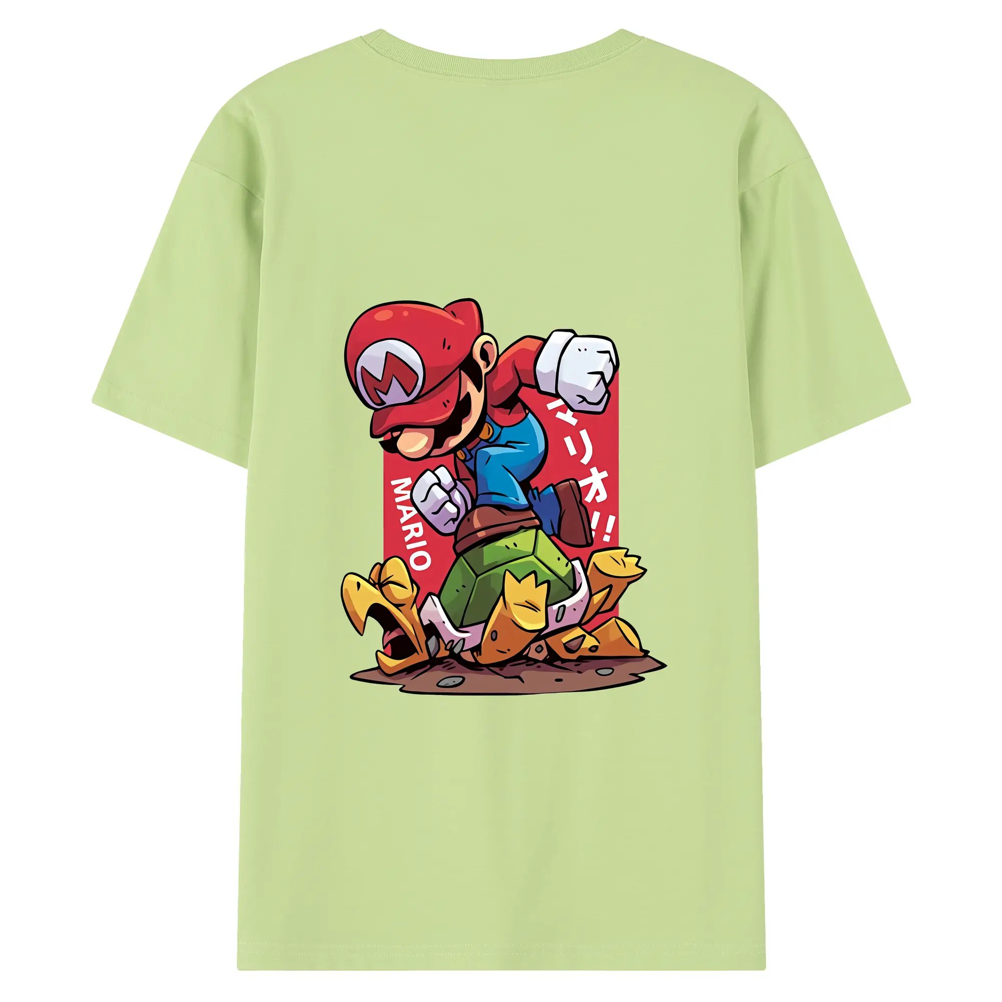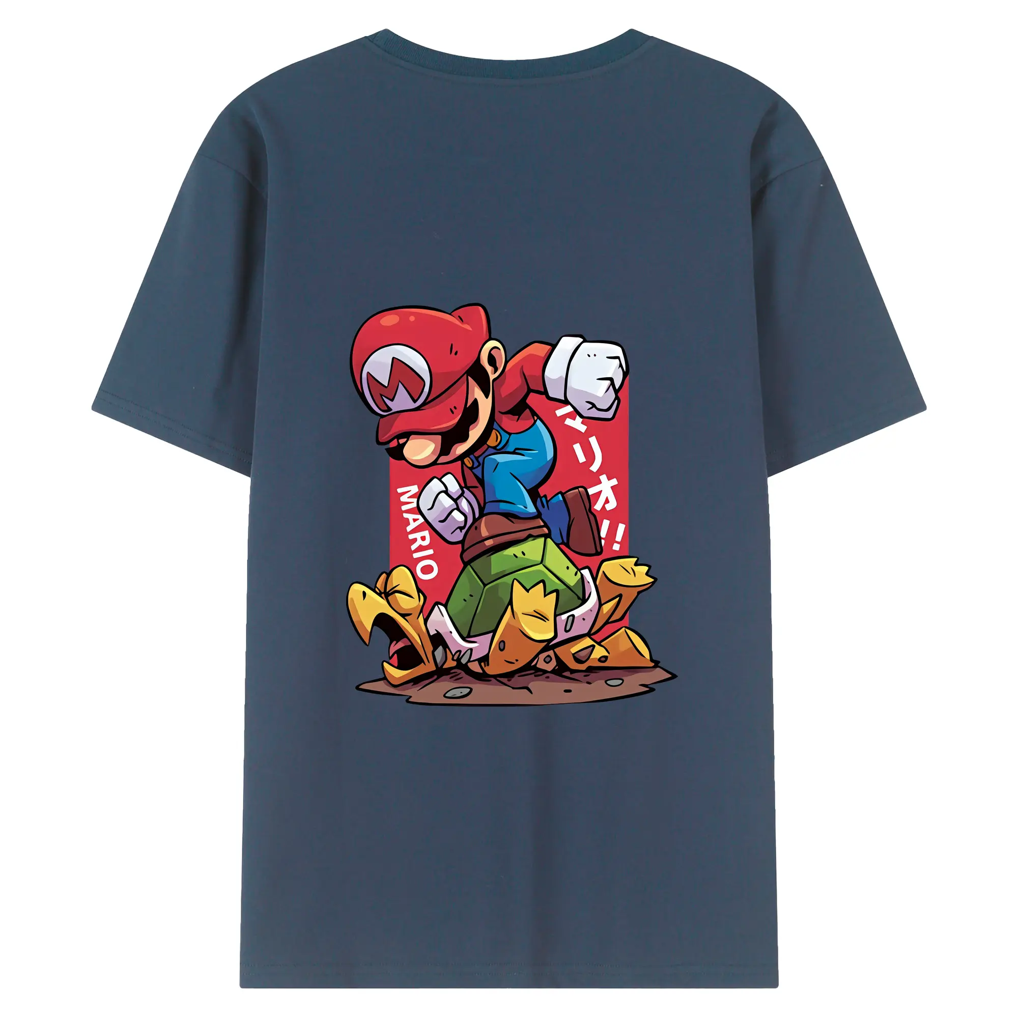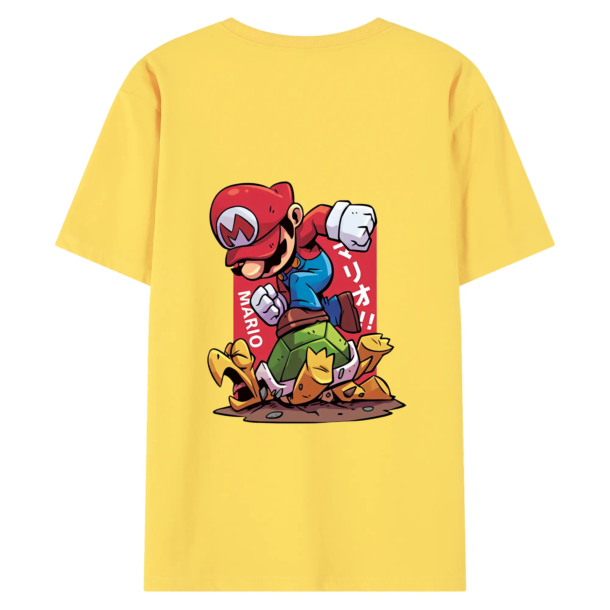 マリオ グッズ マリオ - 綿100% ヴィンテージ風 半袖Tシャツ ・ 背面プリント ・ 柔らか肌触り ・ 通気性 快適 ・ スポーツ カジュアル 外出用