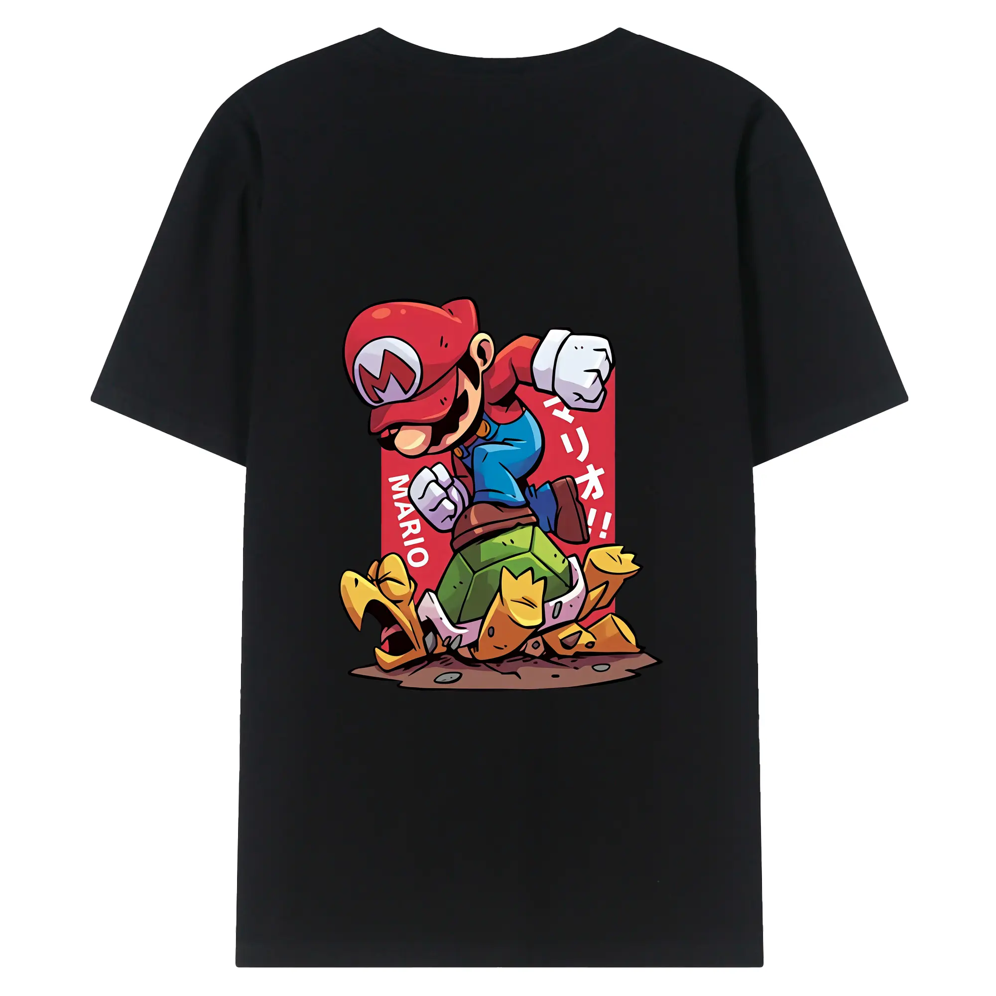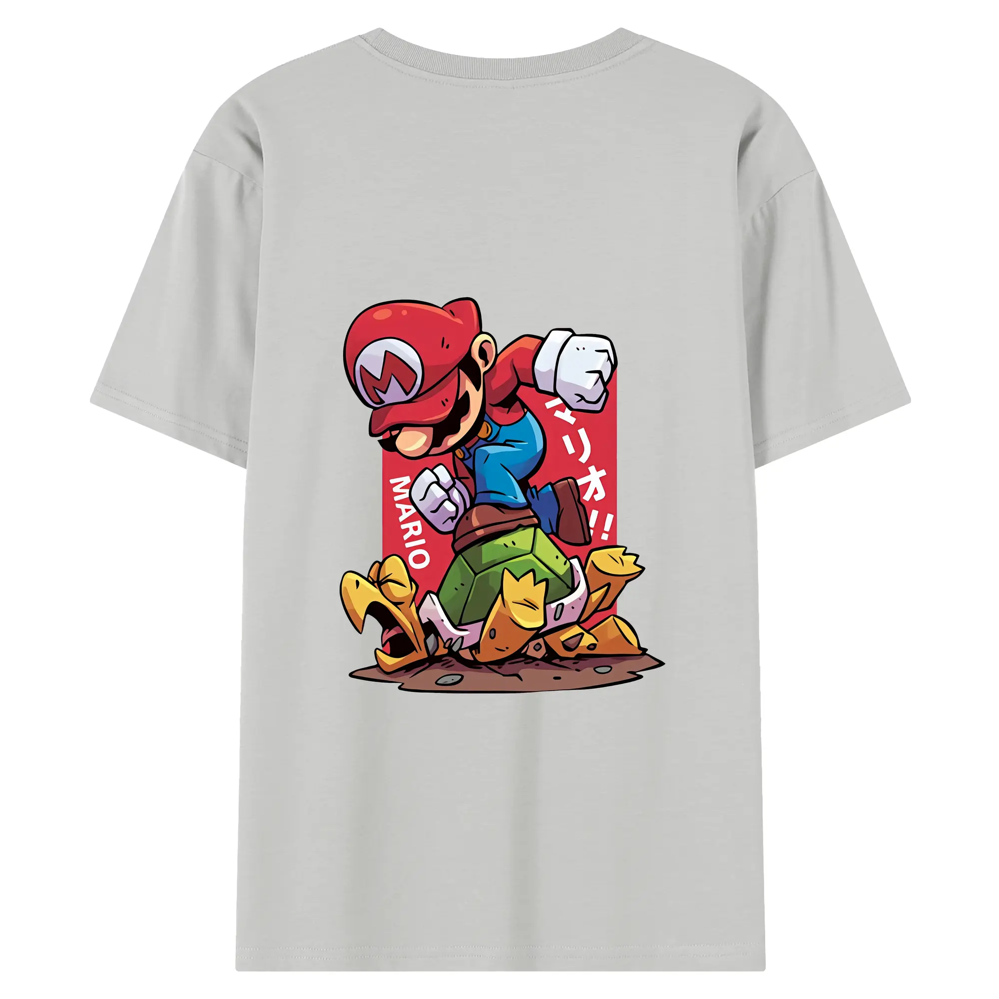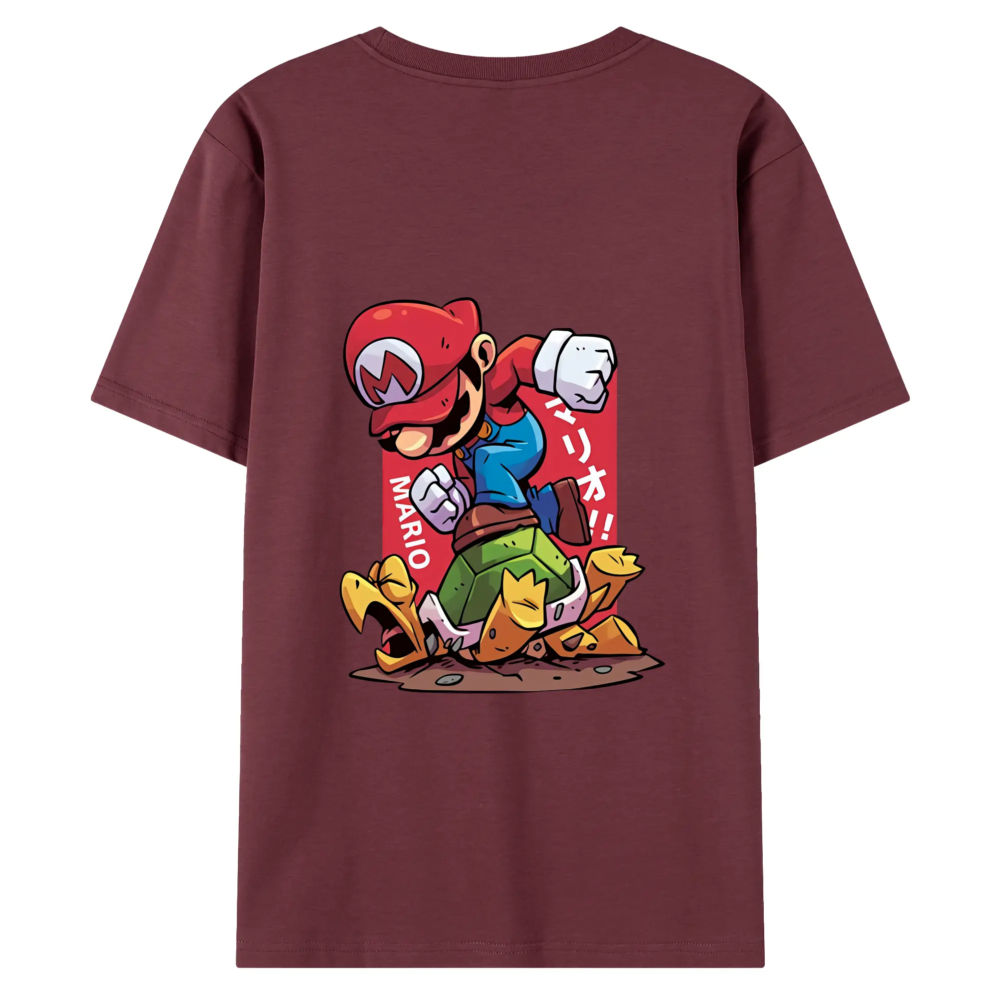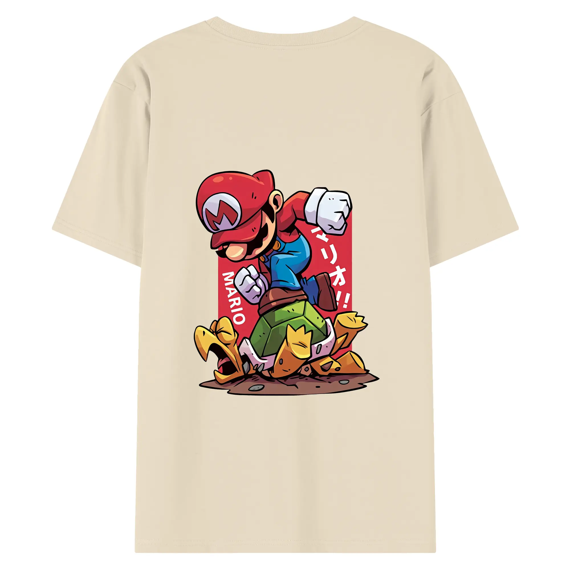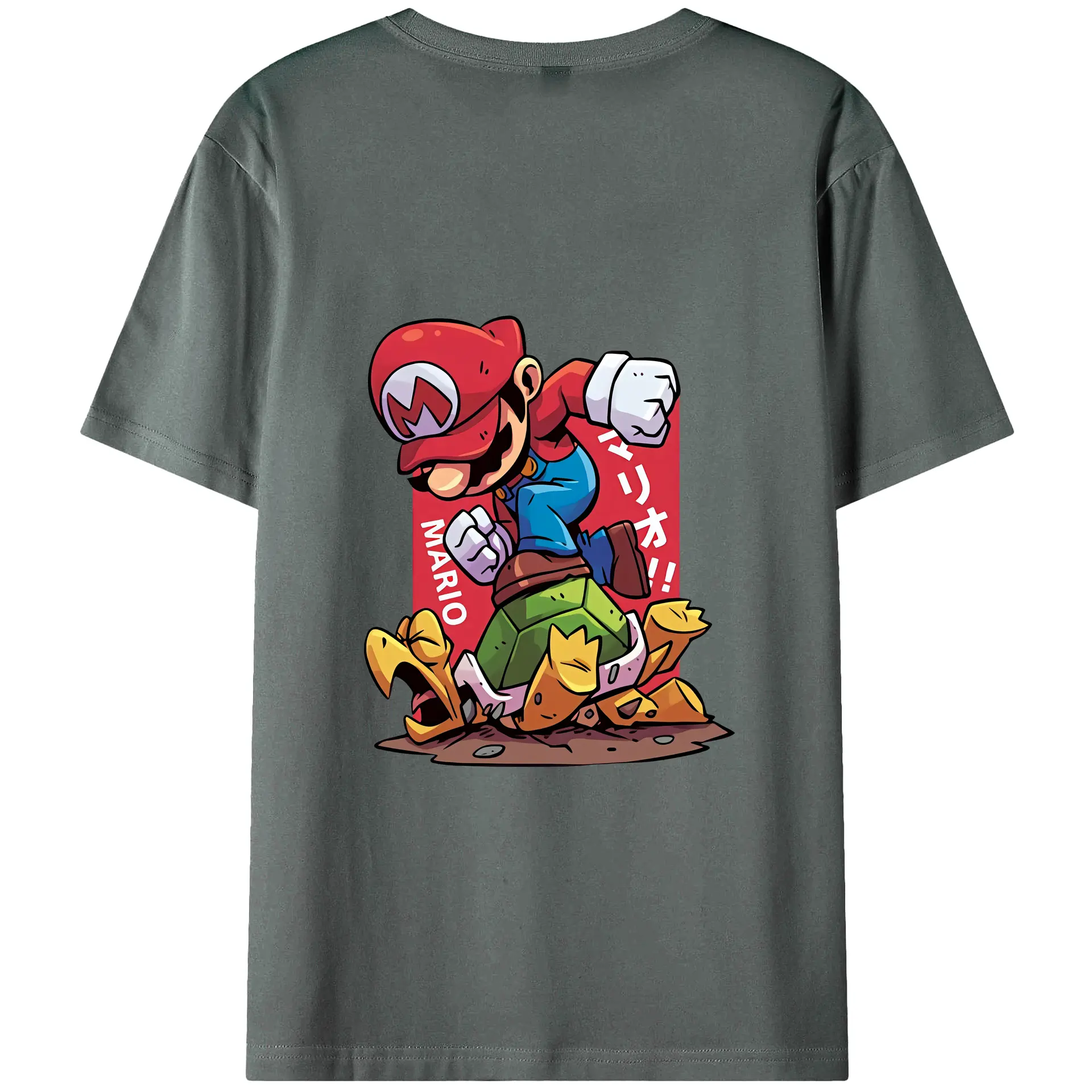 マリオ グッズ マリオ - 綿100% ヴィンテージ風 半袖Tシャツ ・ 背面プリント ・ 柔らか肌触り ・ 通気性 快適 ・ スポーツ カジュアル 外出用