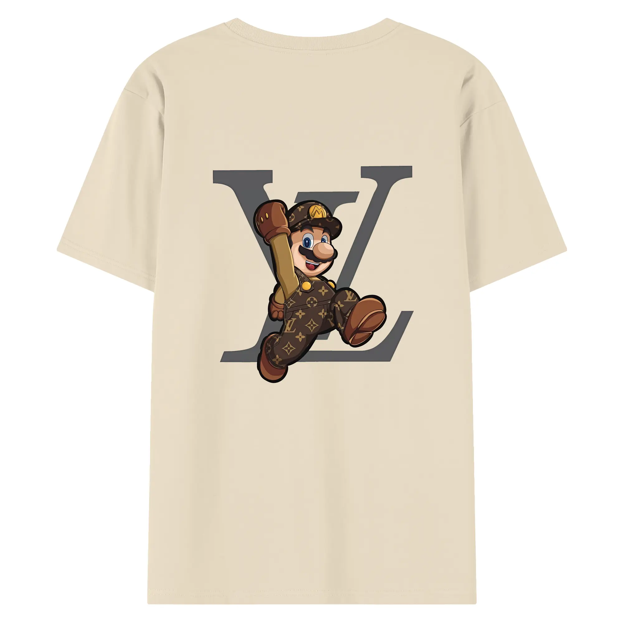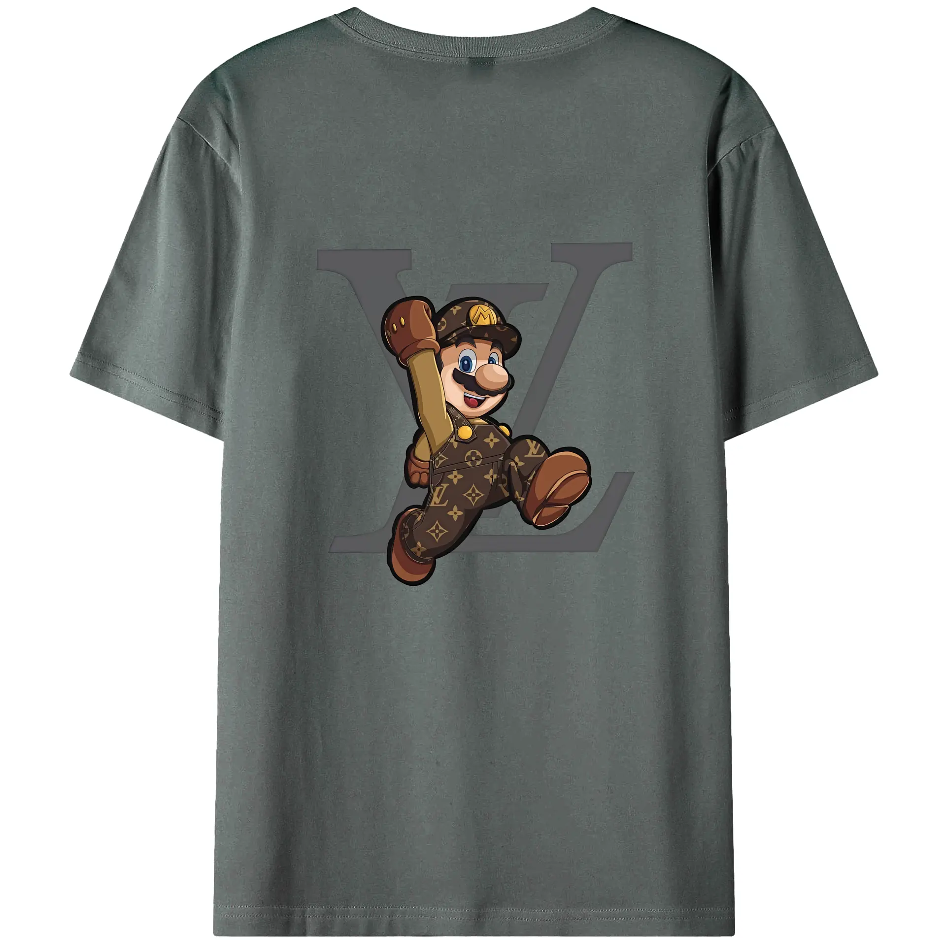 マリオ グッズ マリオ - 綿100% ヴィンテージ風 半袖Tシャツ ・ 背面プリント ・ 柔らか肌触り ・ 通気性 快適 ・ スポーツ カジュアル 外出用