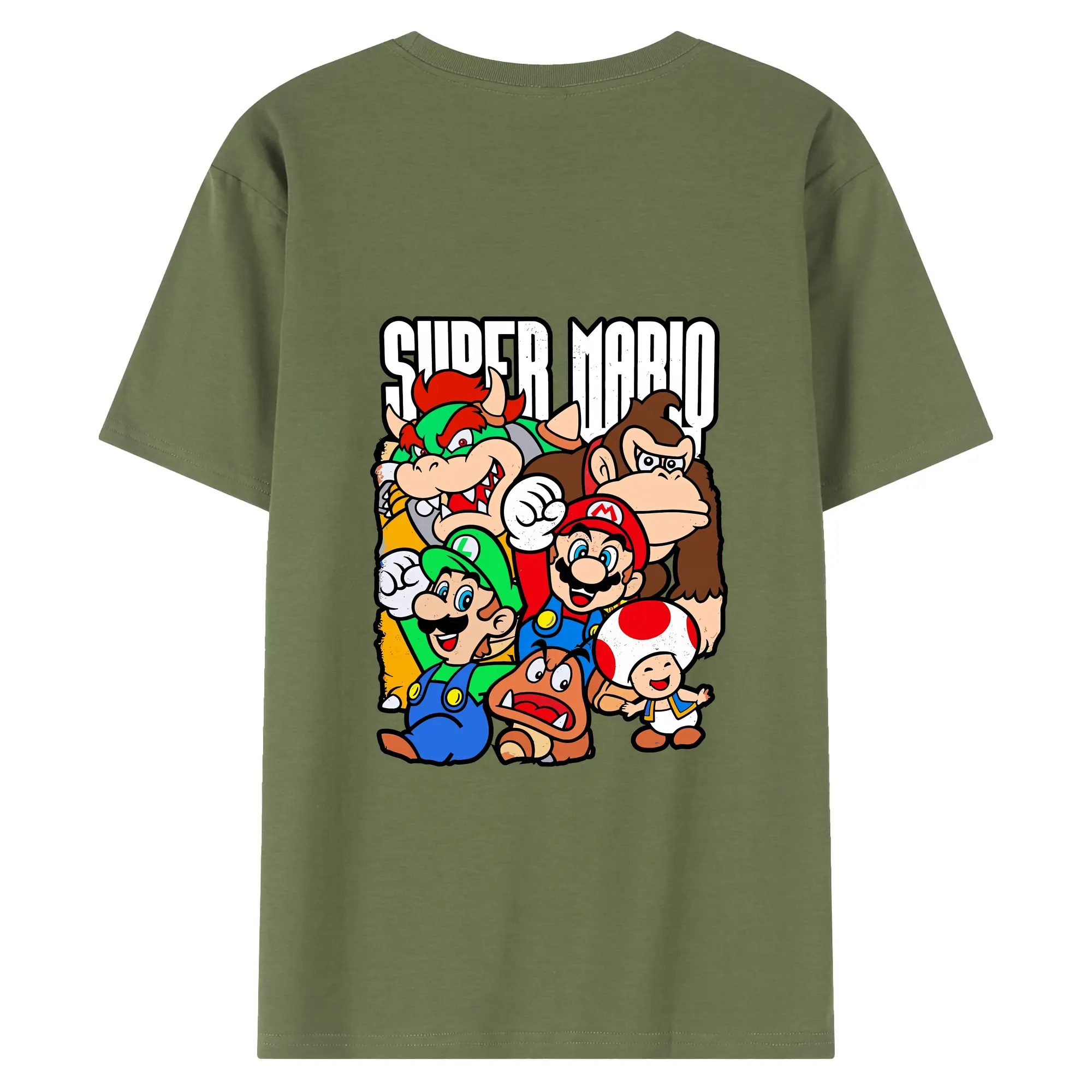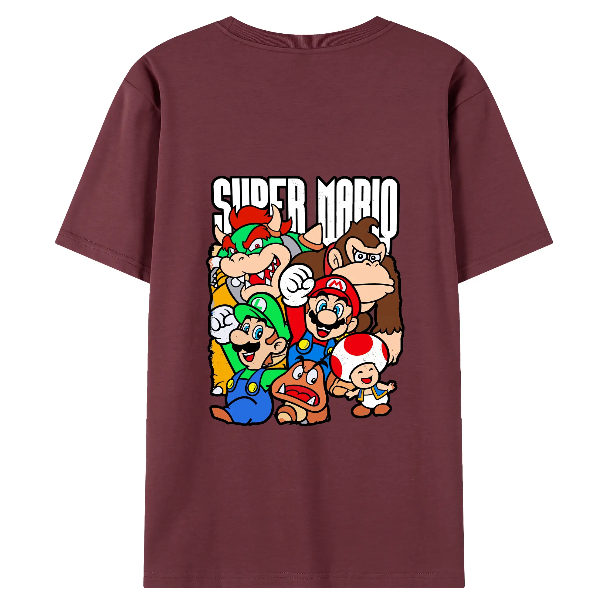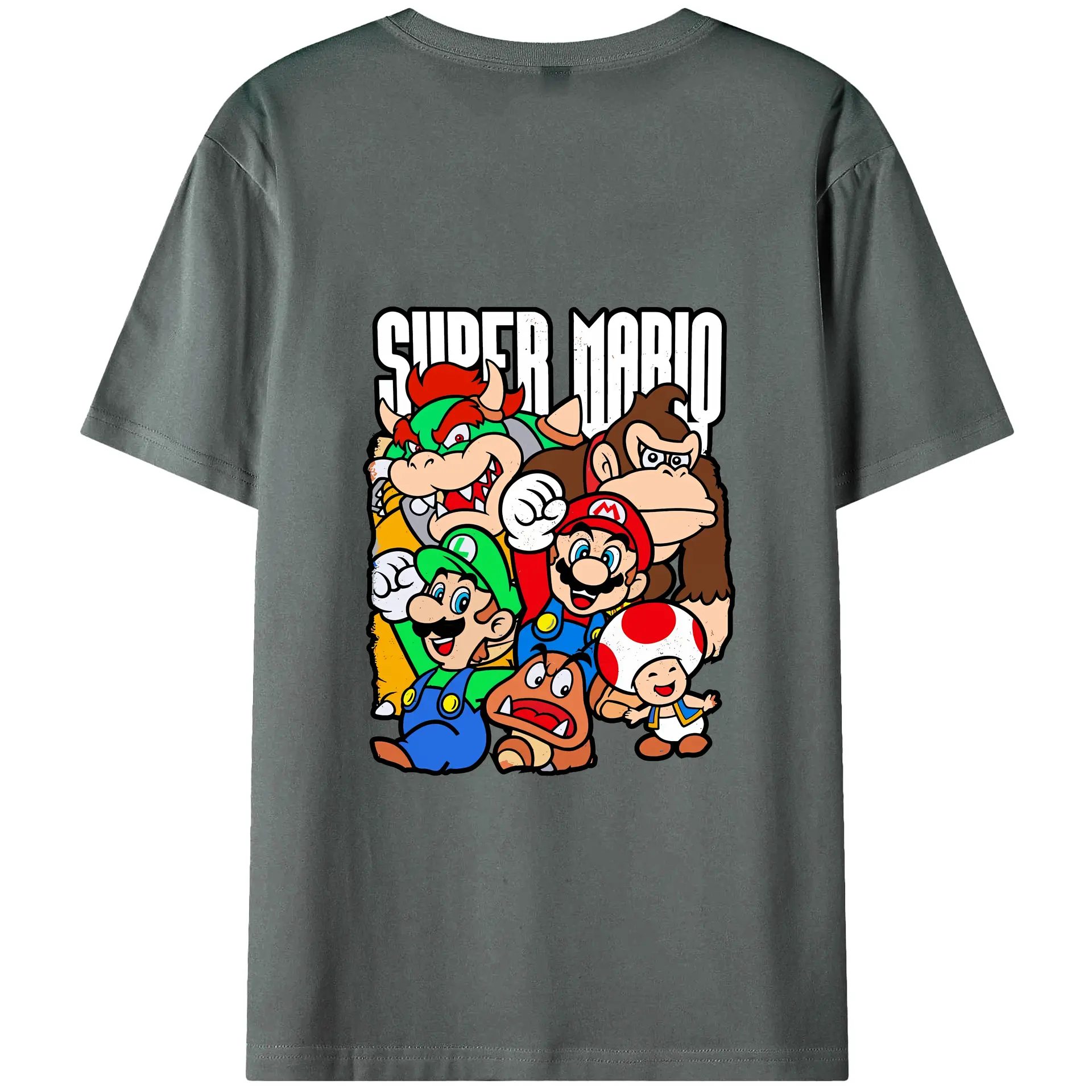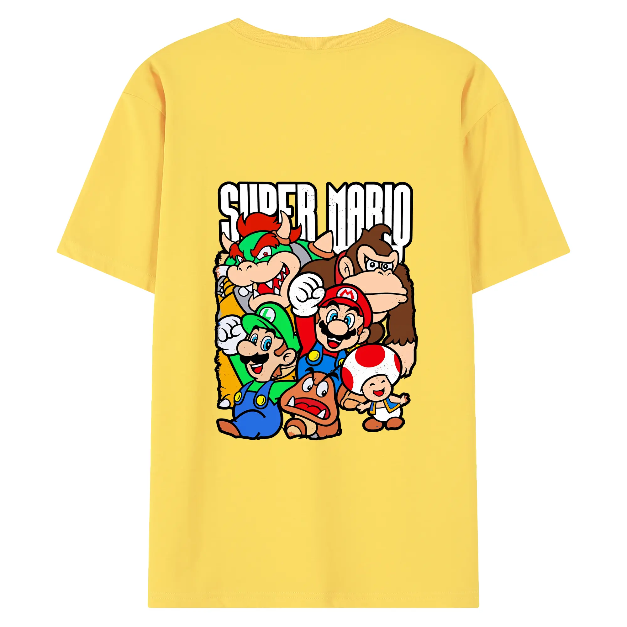 マリオ グッズ マリオ - 綿100% ヴィンテージ風 半袖Tシャツ ・ 背面プリント ・ 柔らか肌触り ・ 通気性 快適 ・ スポーツ カジュアル 外出用