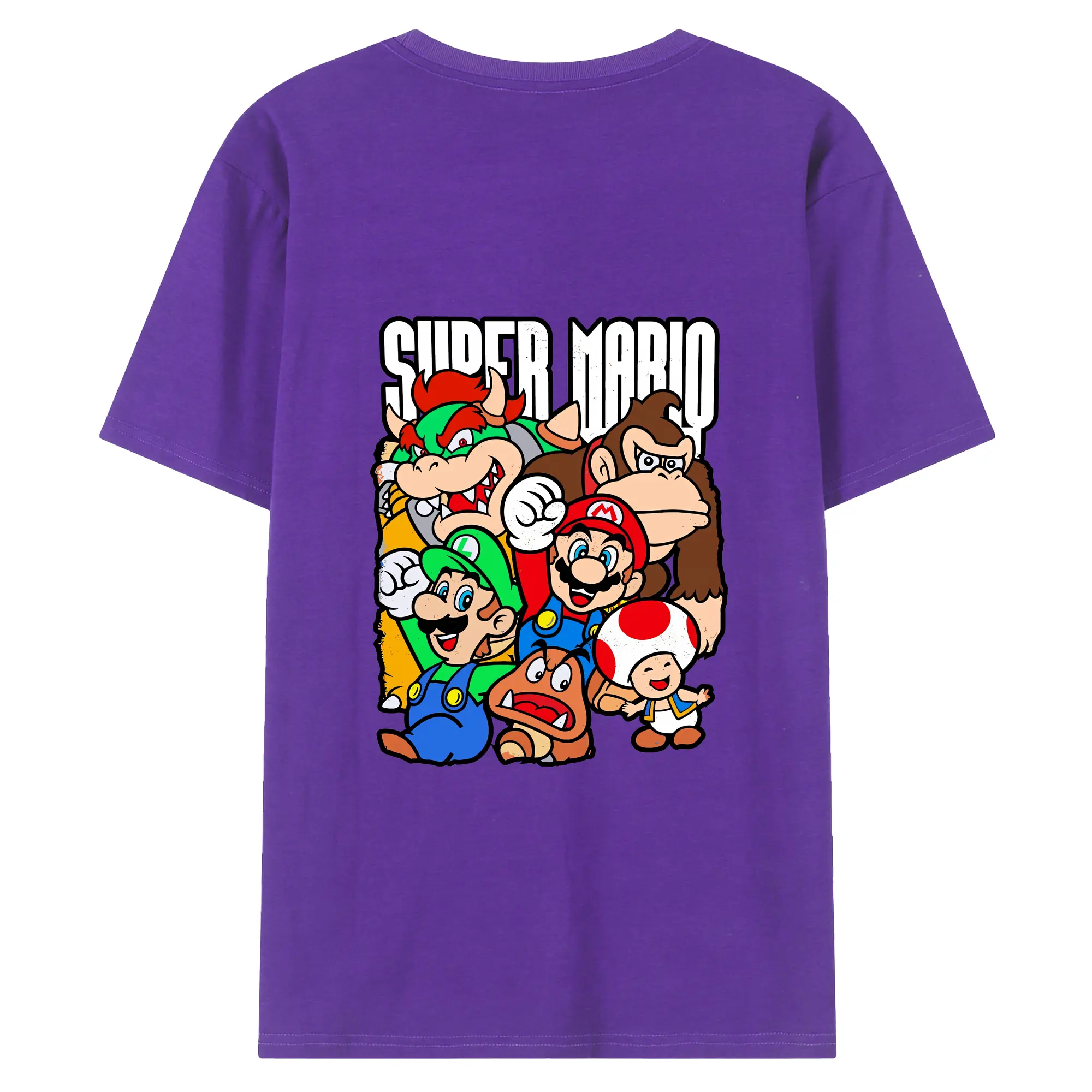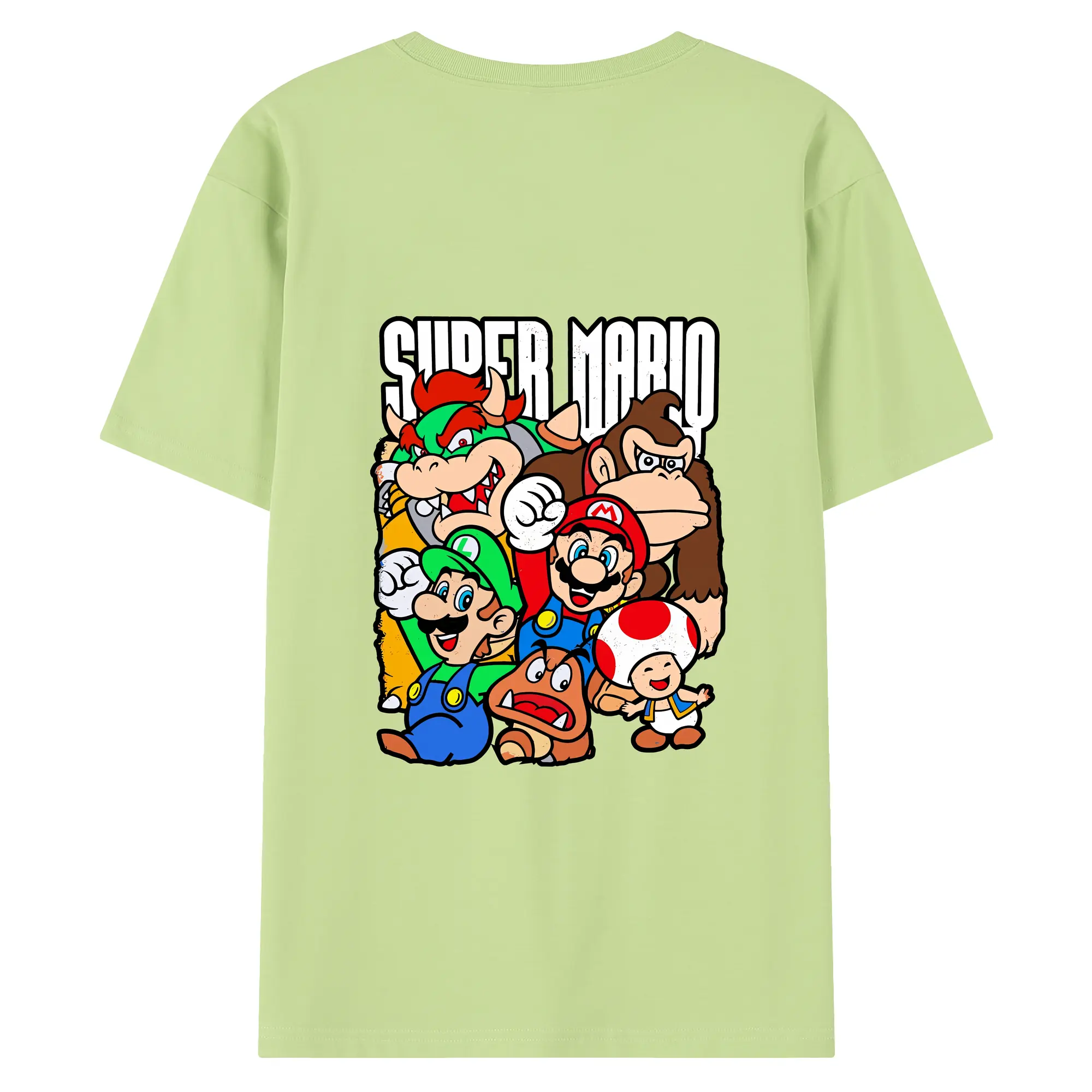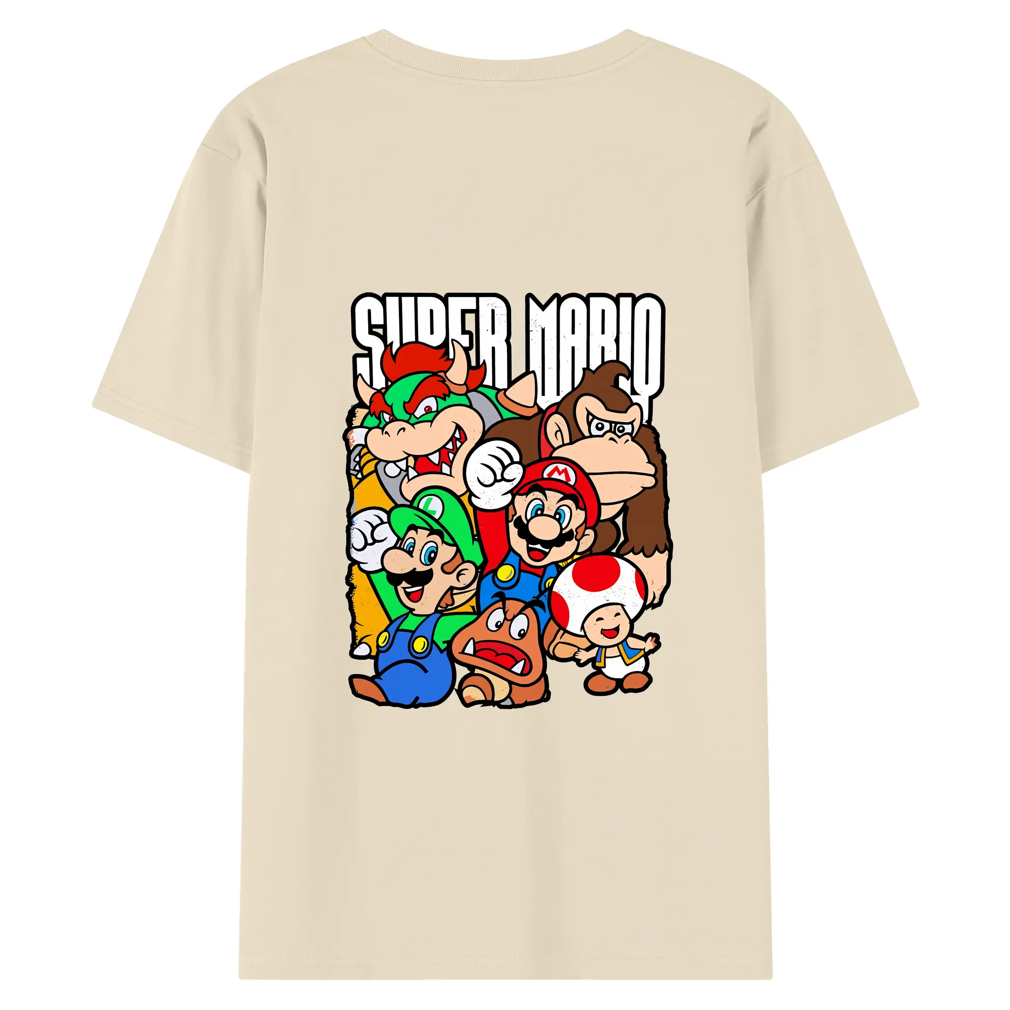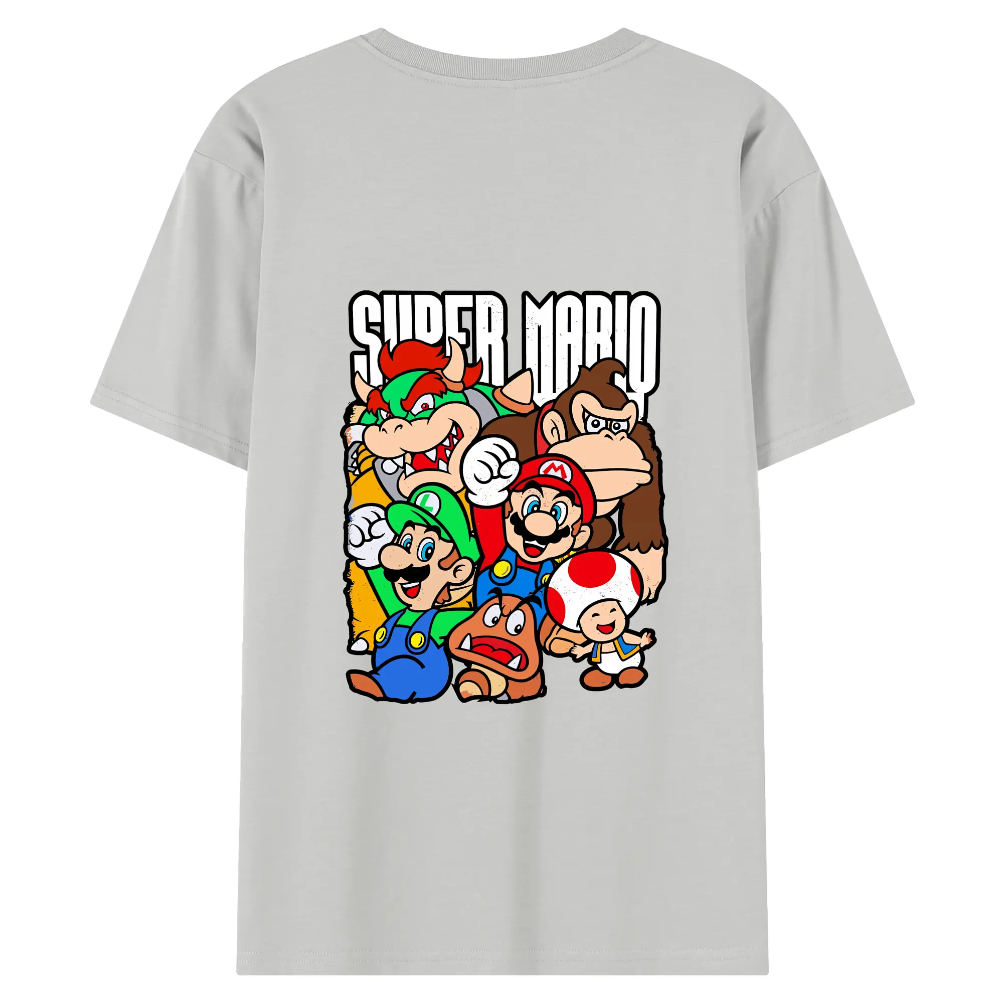 マリオ グッズ マリオ - 綿100% ヴィンテージ風 半袖Tシャツ ・ 背面プリント ・ 柔らか肌触り ・ 通気性 快適 ・ スポーツ カジュアル 外出用
