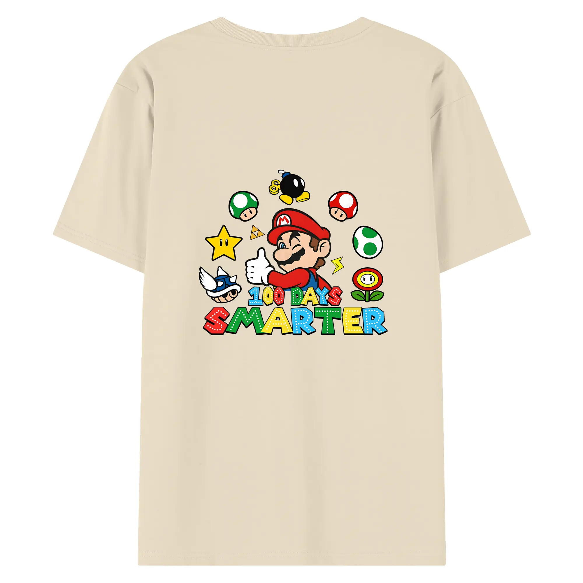 マリオ グッズ マリオ - 綿100% ヴィンテージ風 半袖Tシャツ ・ 背面プリント ・ 柔らか肌触り ・ 通気性 快適 ・ スポーツ カジュアル 外出用