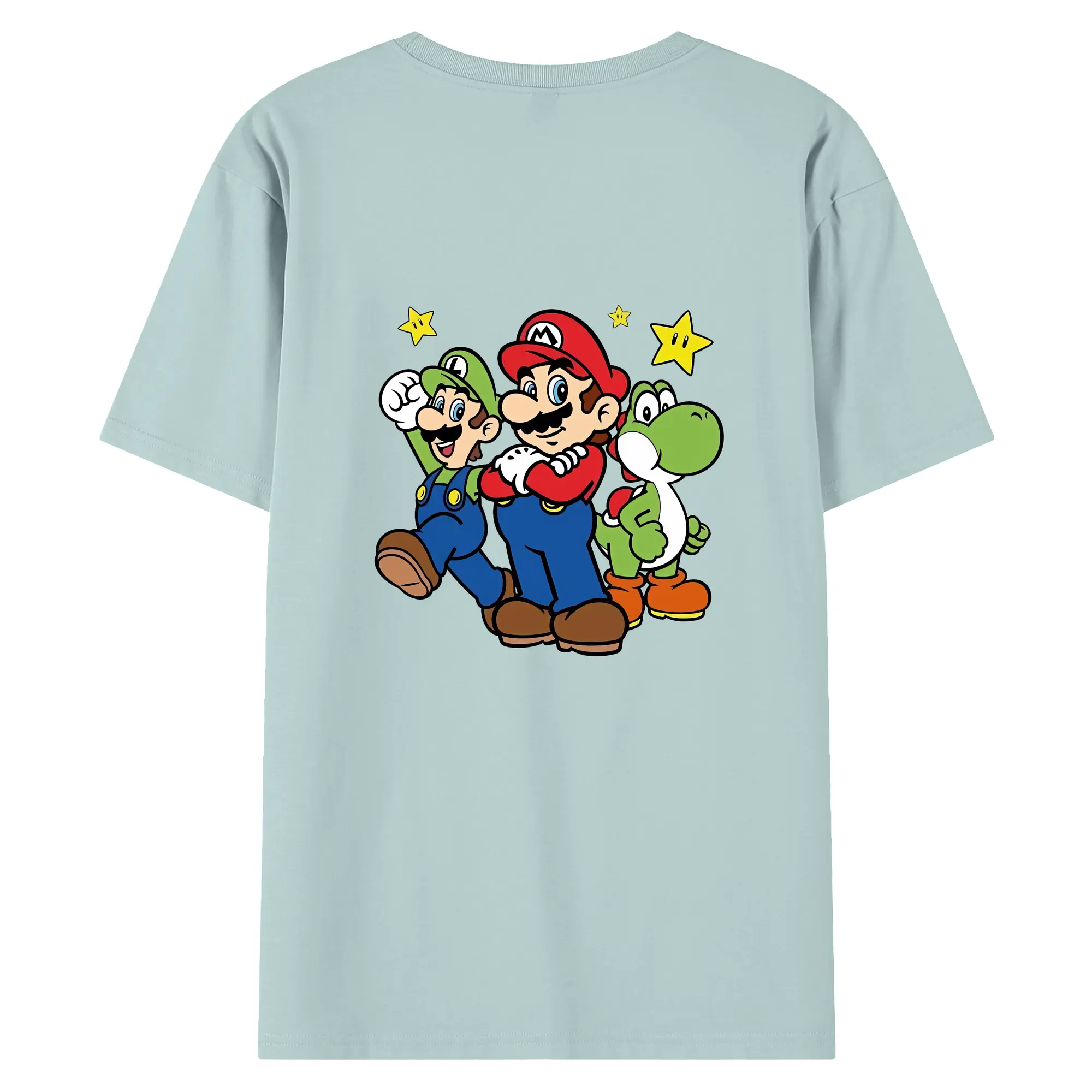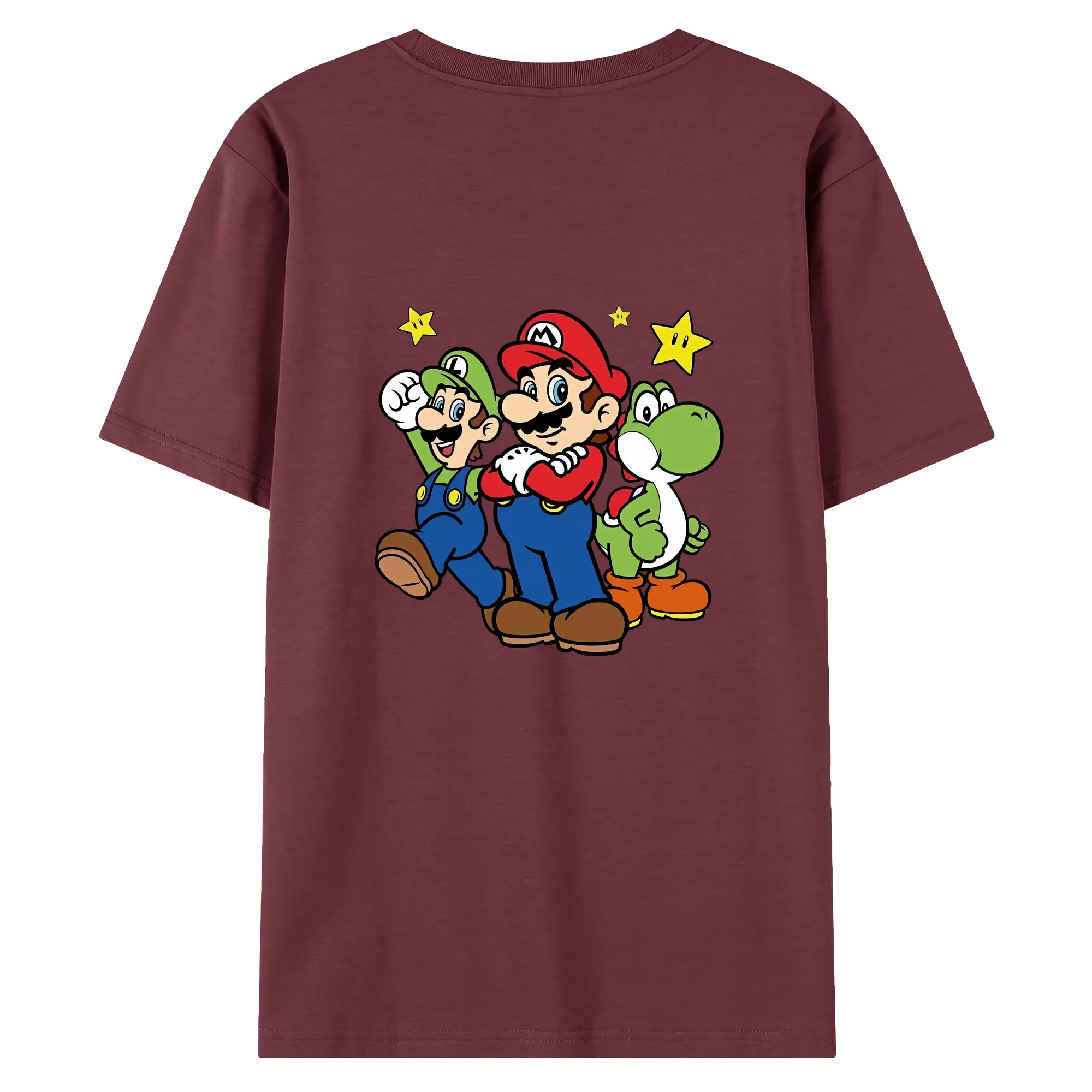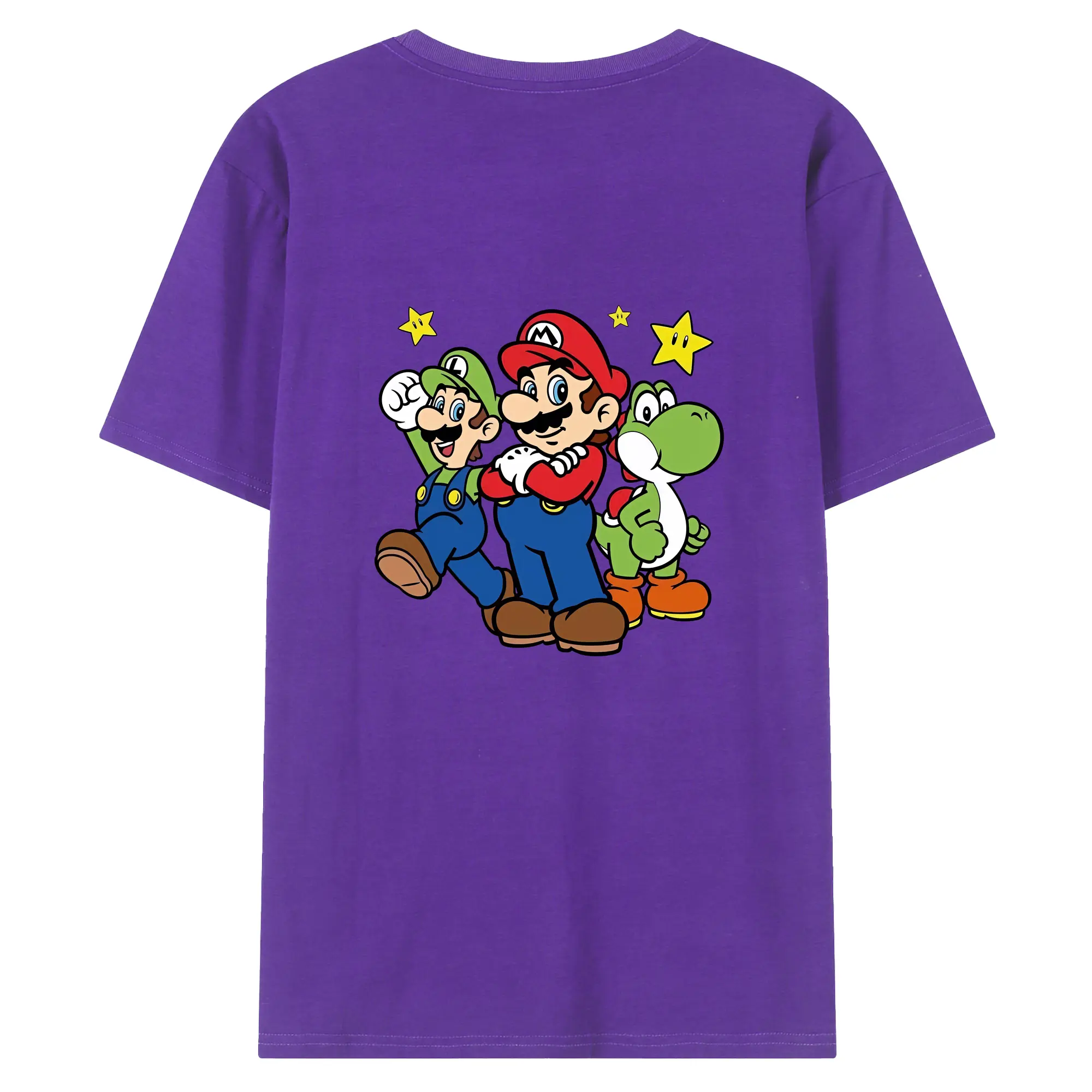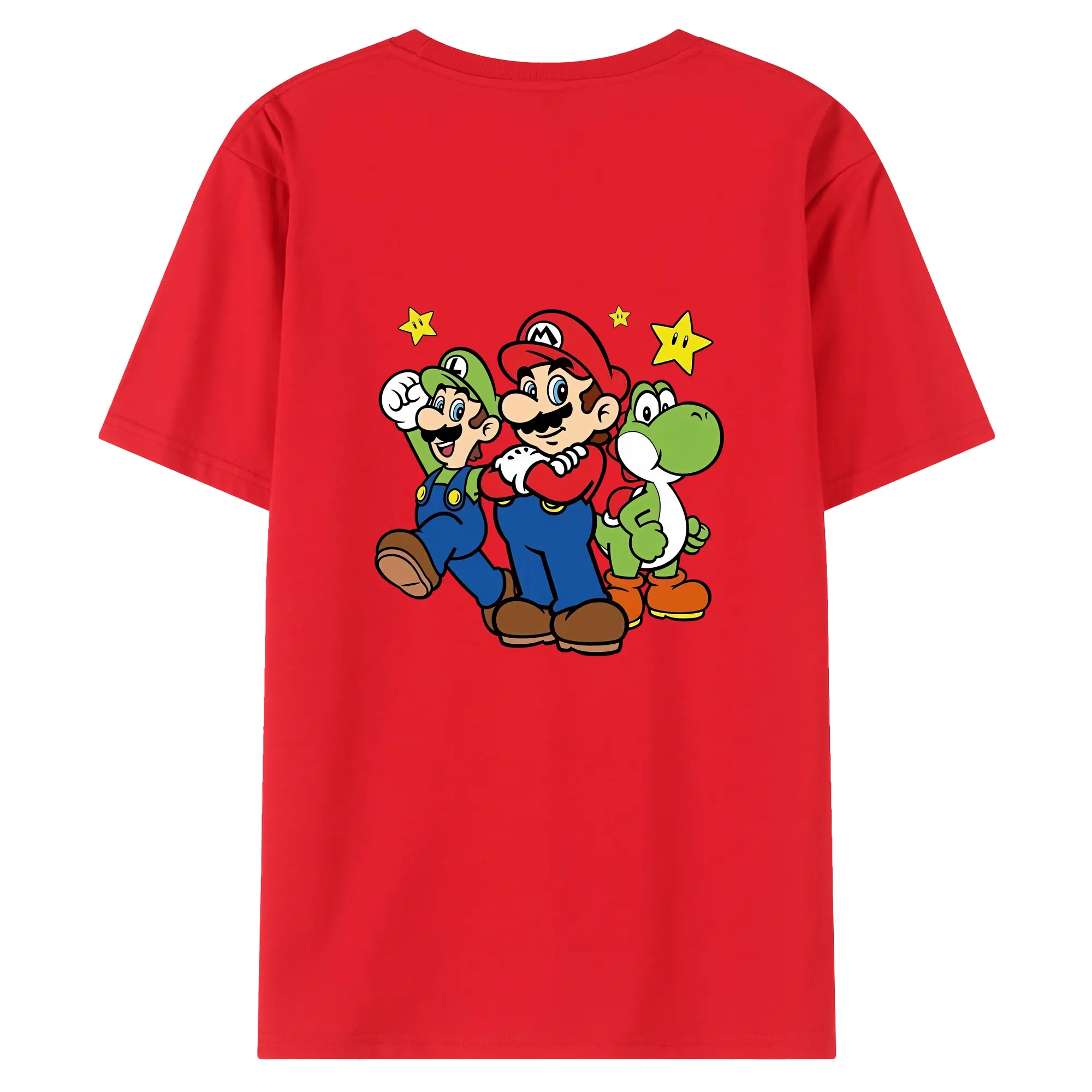 マリオ グッズ マリオ - 綿100% 半袖Tシャツ ・ バックプリント ・ 快適 通気性 ・ 日常使い 散歩 スポーツ用