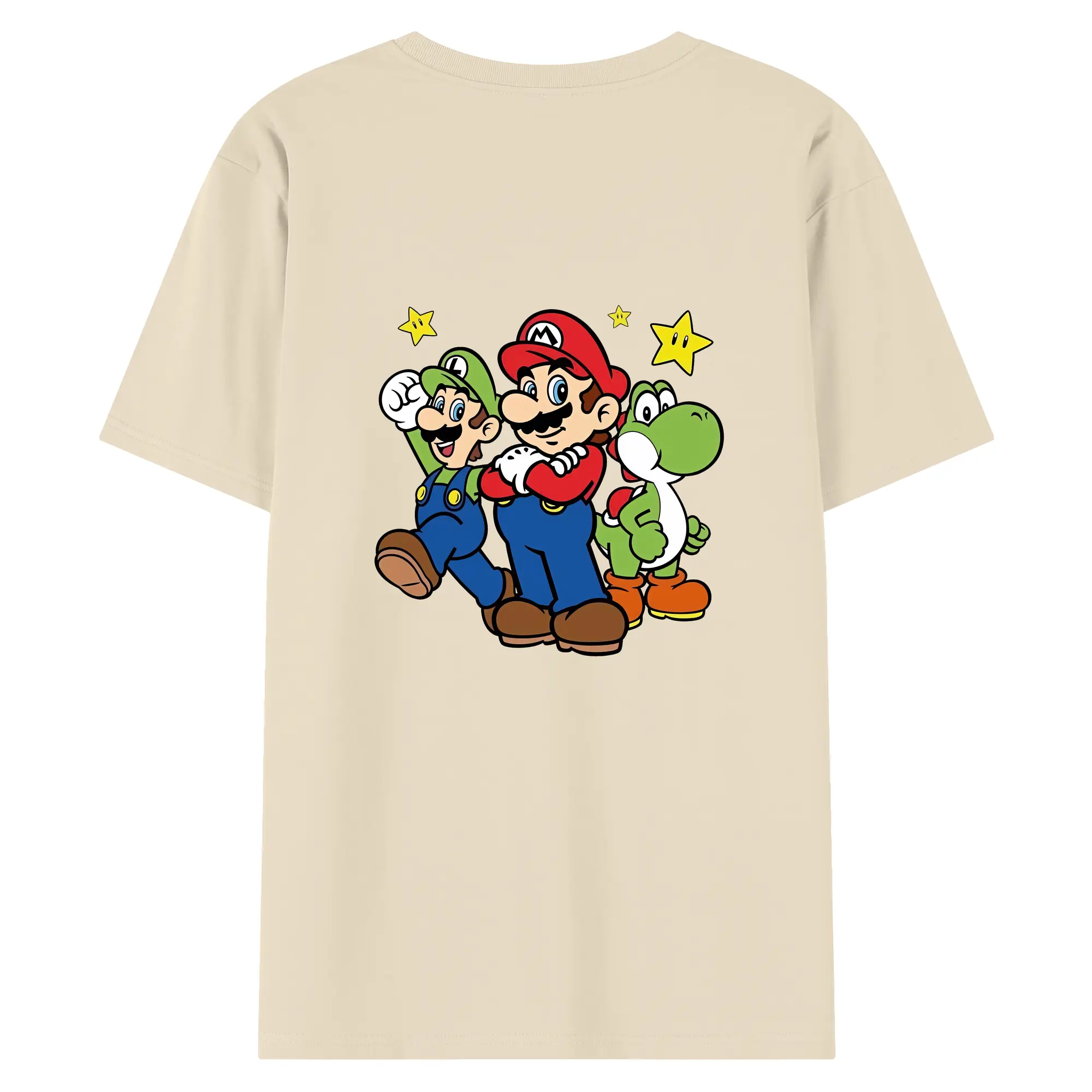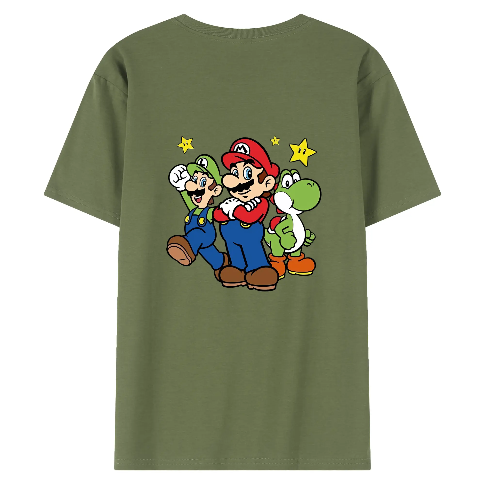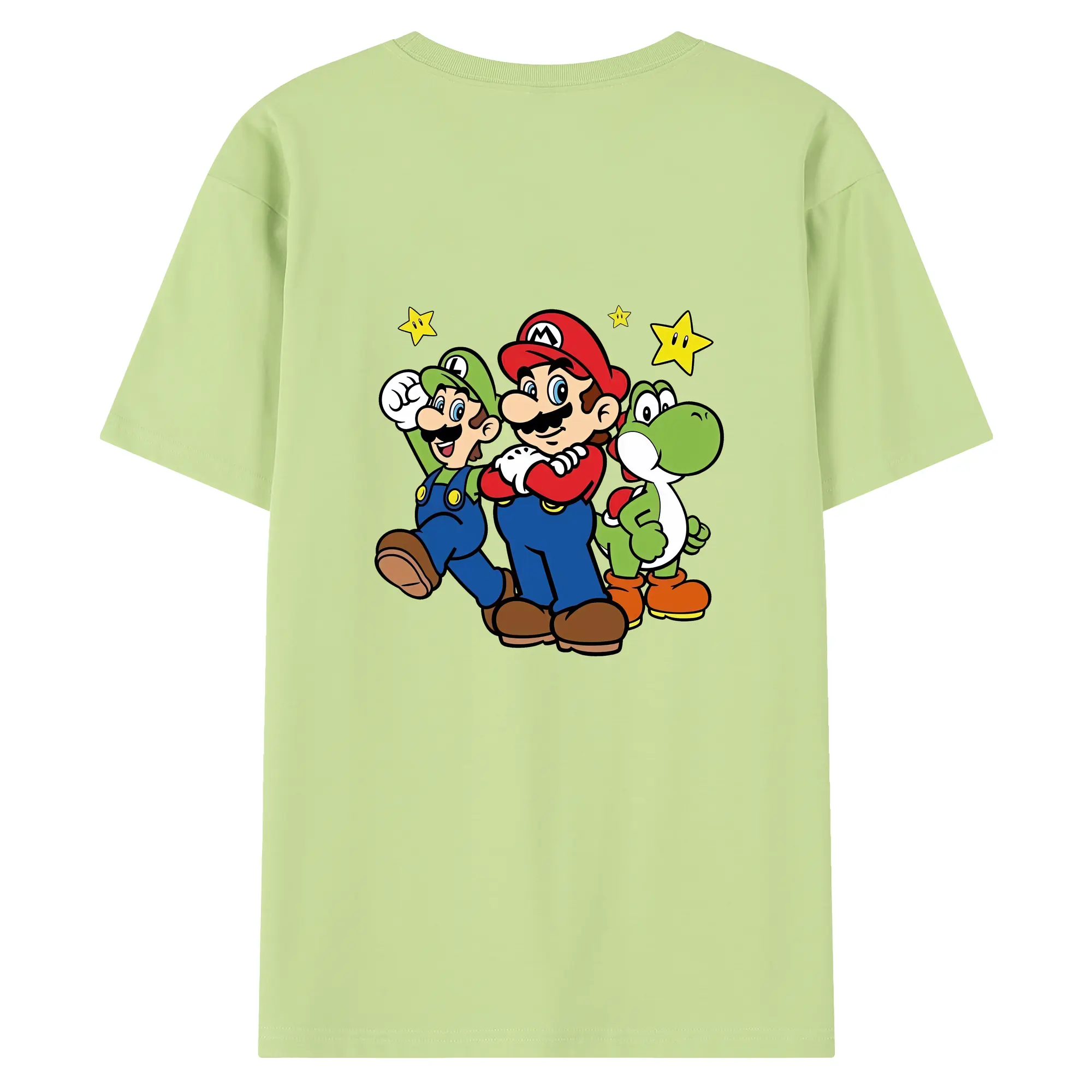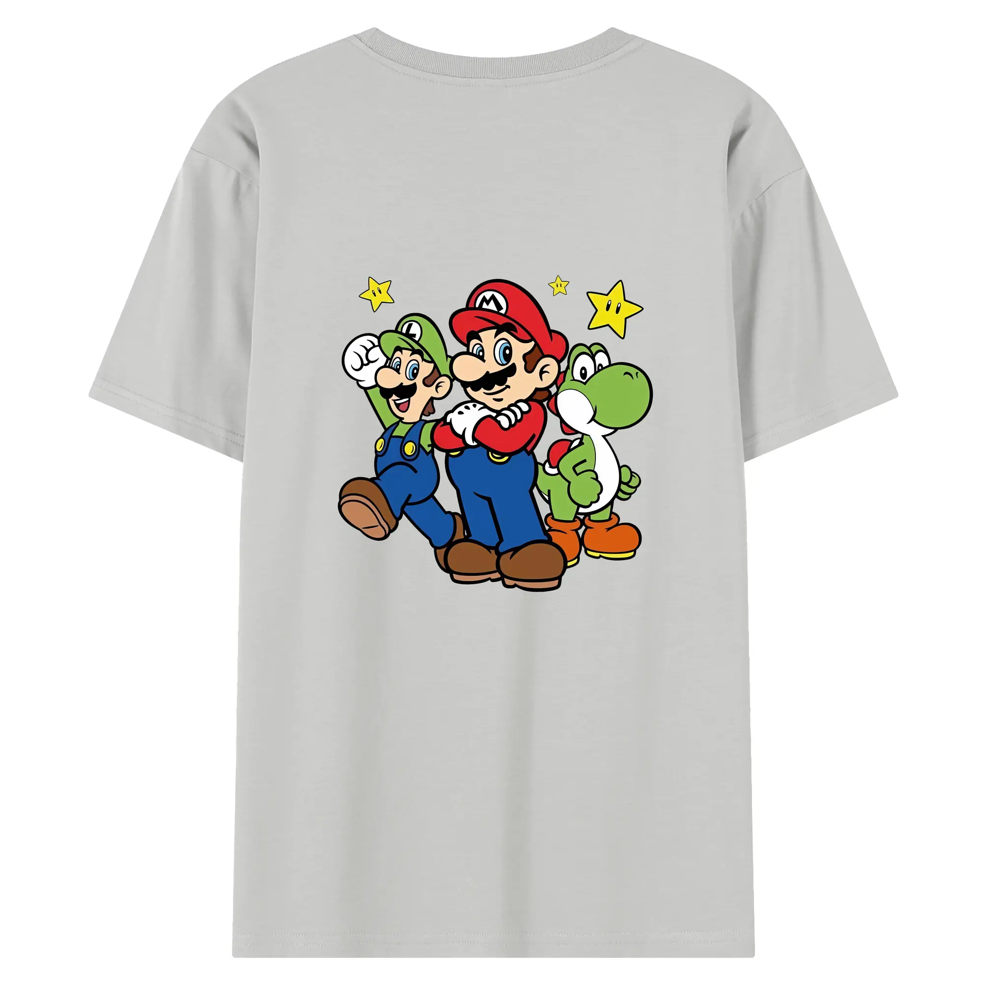 マリオ グッズ マリオ - 綿100% 半袖Tシャツ ・ バックプリント ・ 快適 通気性 ・ 日常使い 散歩 スポーツ用