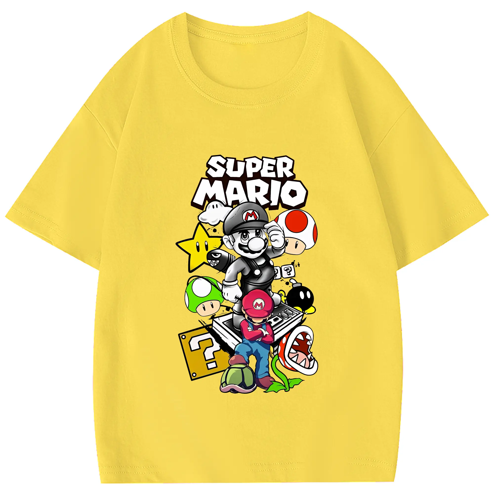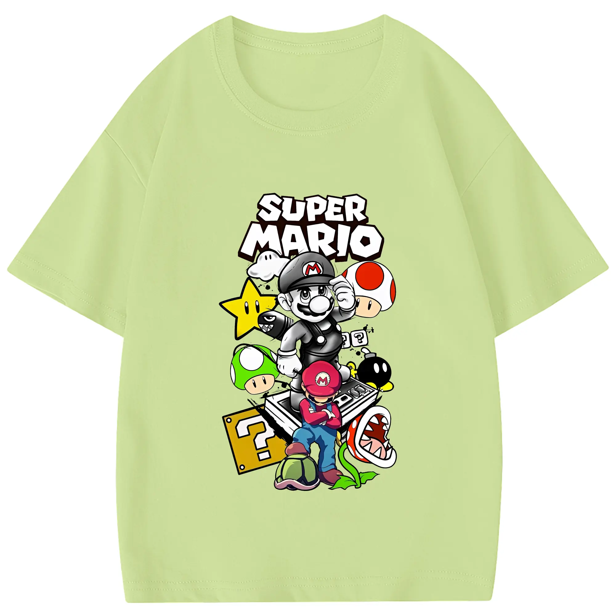マリオ グッズ マリオ - 綿100% ヴィンテージ風 半袖Tシャツ ・ フロントプリント ・ 柔らか肌触り ・ 通気性 快適 ・ スポーツ カジュアル 外出用