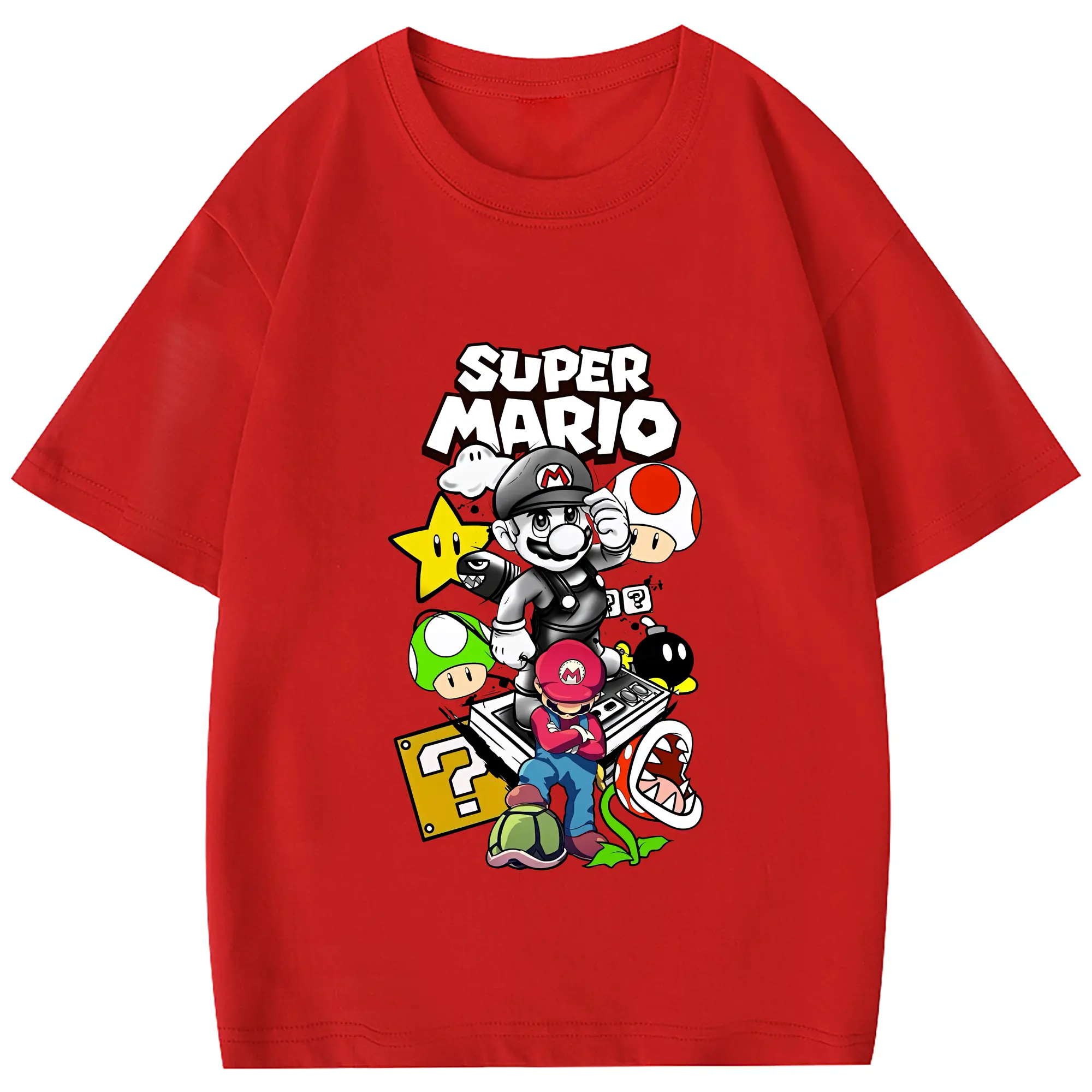 マリオ グッズ マリオ - 綿100% 半袖Tシャツ ・ フロントプリント ・ 快適 通気性 ・ 日常使い 散歩 スポーツ用