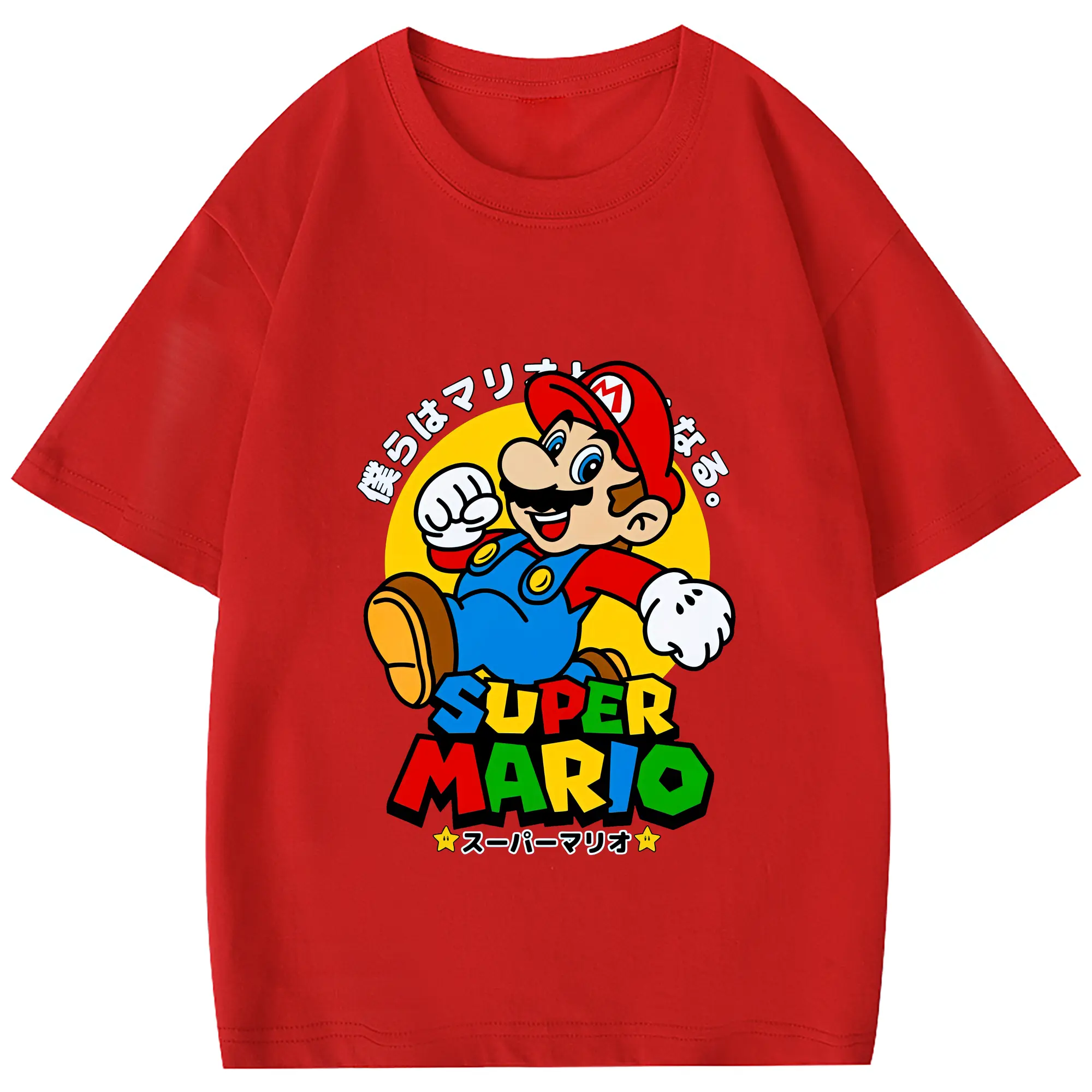 マリオ グッズ マリオ - 綿100% 半袖Tシャツ ・ バックプリント ・ 快適 通気性 ・ 日常使い 散歩 スポーツ用