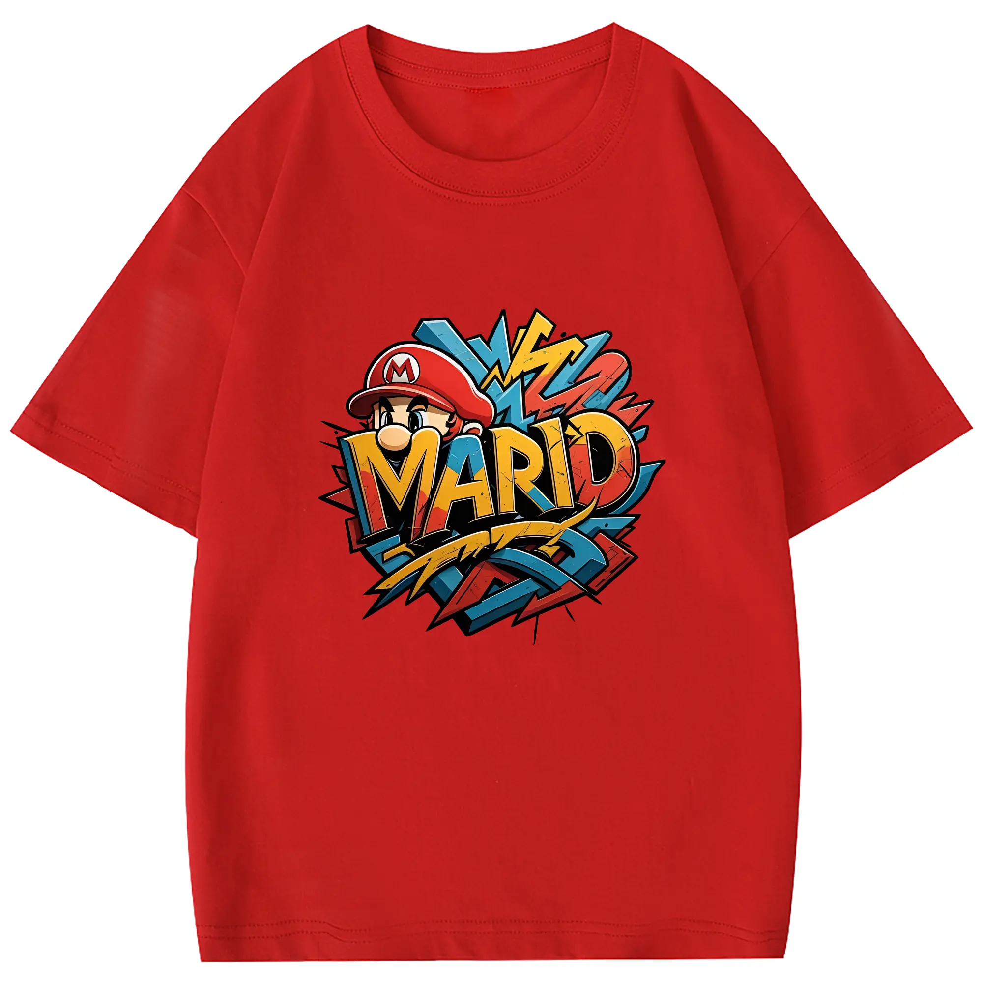 マリオ グッズ マリオ - 綿100% 半袖Tシャツ ・ フロントプリント ・ 快適 通気性 ・ 日常使い 散歩 スポーツ用