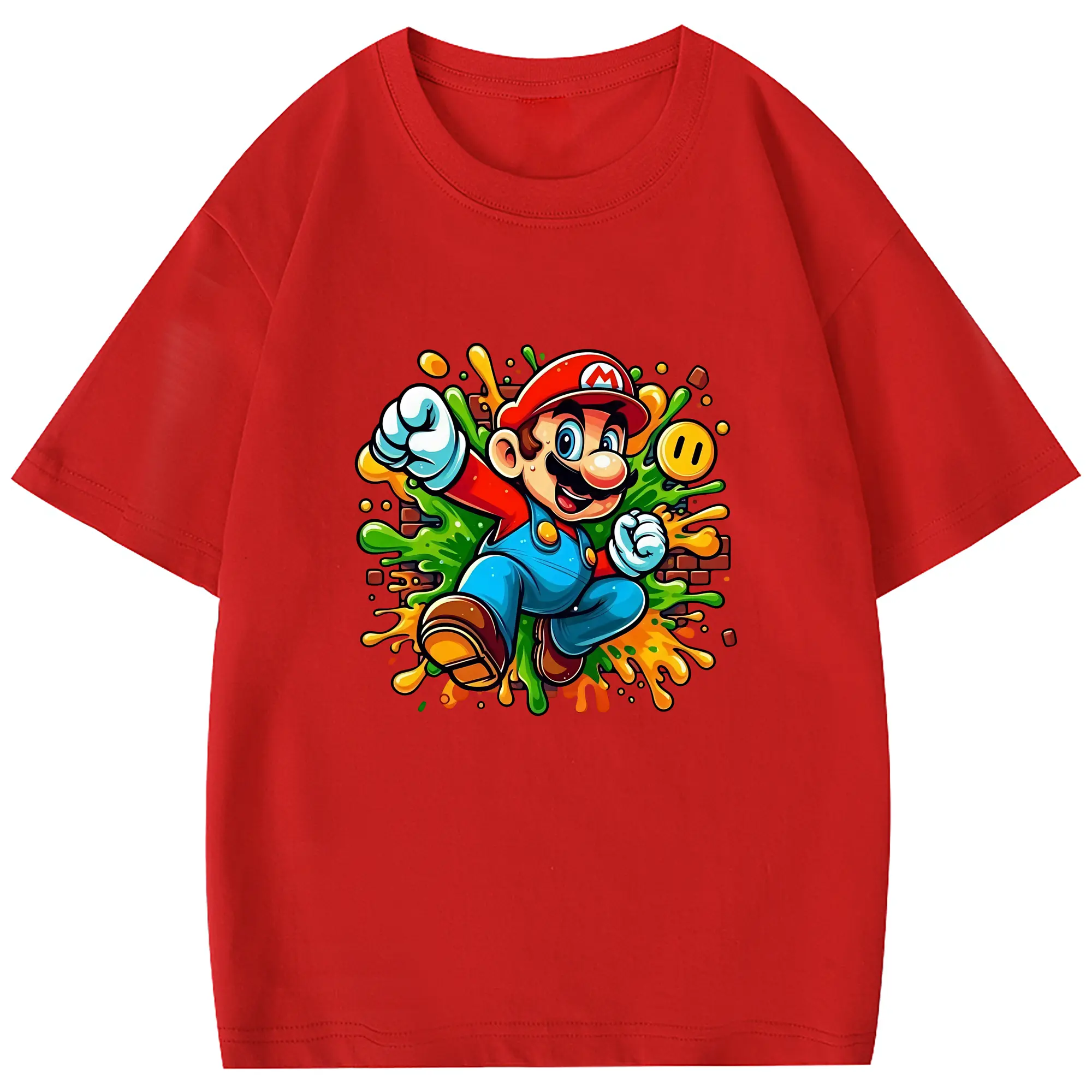 マリオ グッズ マリオ - 綿100% 半袖Tシャツ ・ フロントプリント ・ 快適 通気性 ・ 日常使い 散歩 スポーツ用