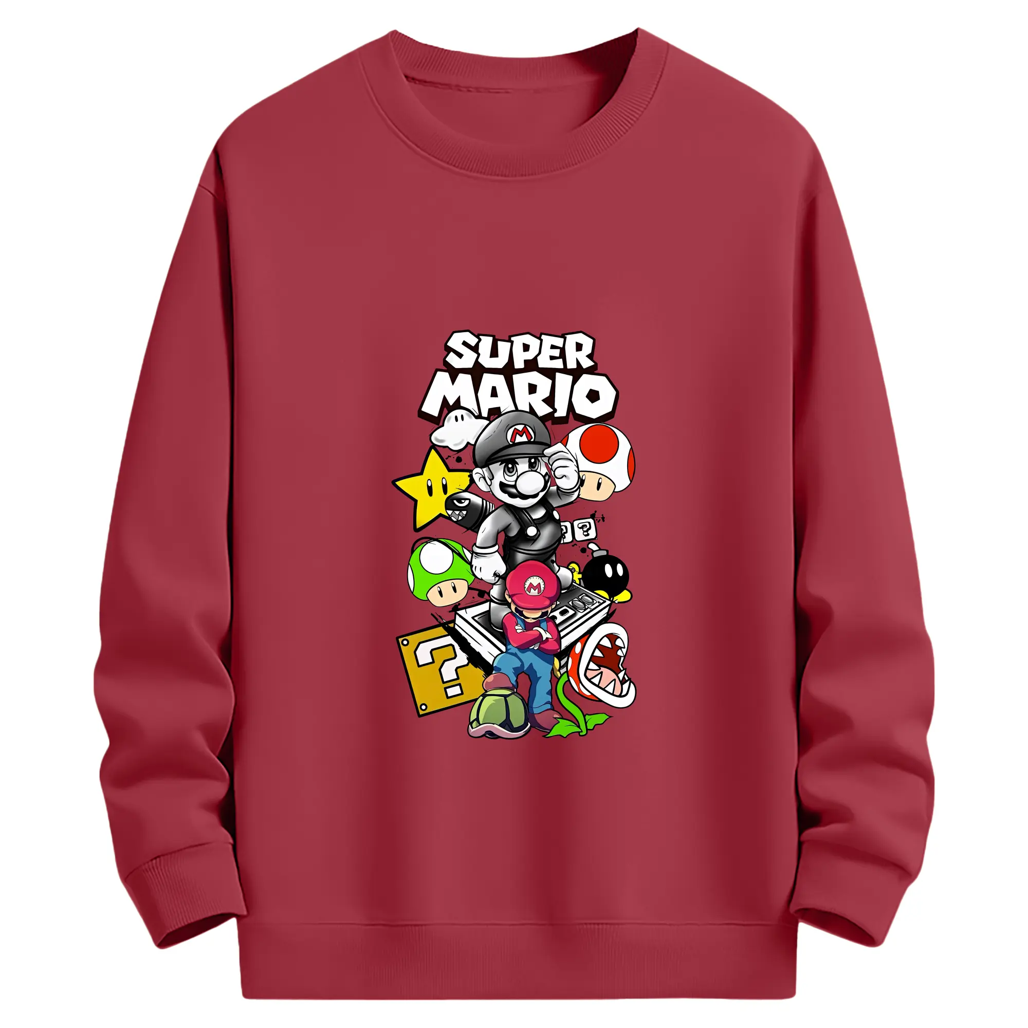 マリオ グッズ マリオ - 薄手 クルーネック スウェット 裏毛260g · ポリエステル 春秋向け カジュアル 男女兼用 · トレーナー デイリー スポーツ 散歩に最適