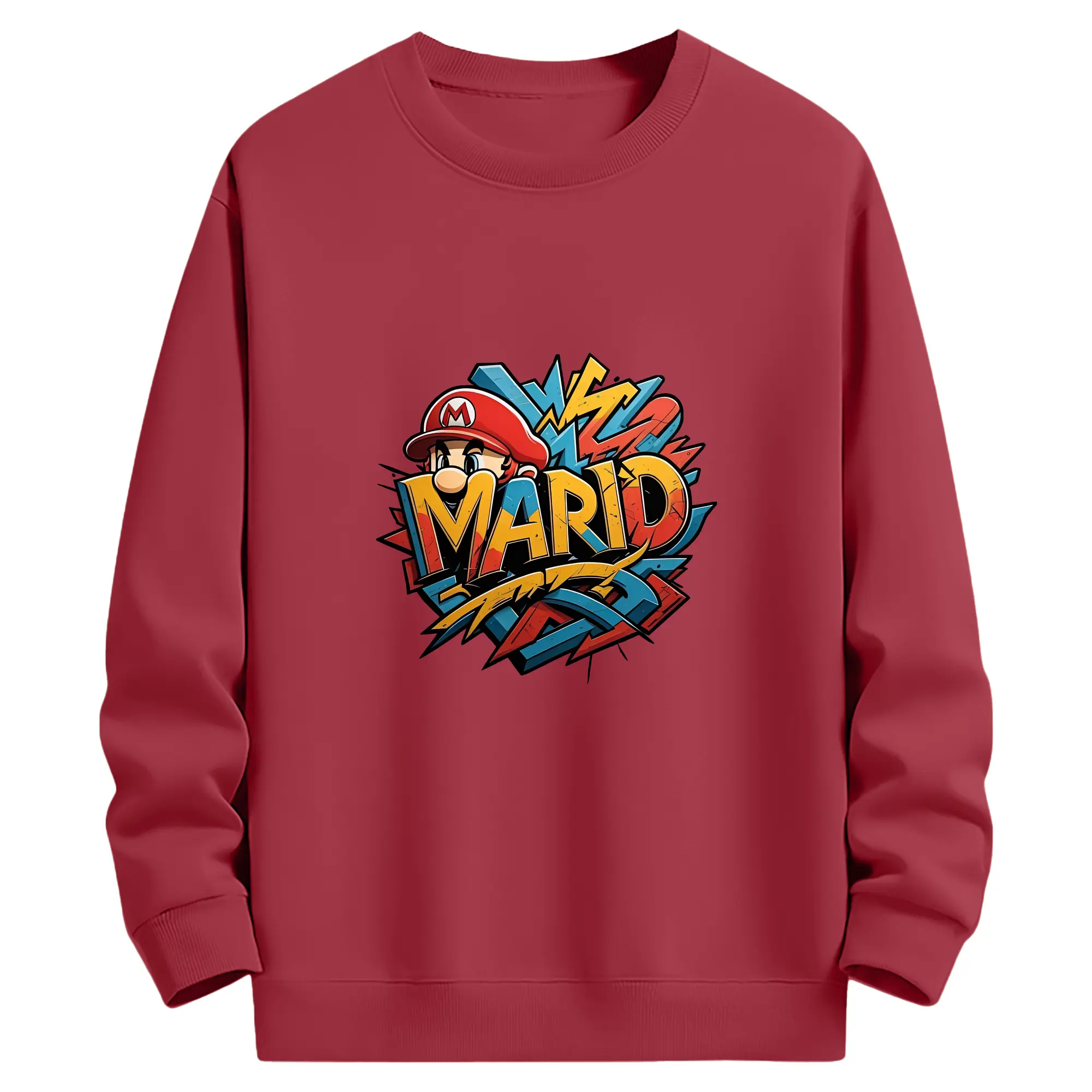マリオ グッズ マリオ - 薄手 クルーネック スウェット 裏毛260g · ポリエステル 春秋向け カジュアル 男女兼用 · トレーナー デイリー スポーツ 散歩に最適