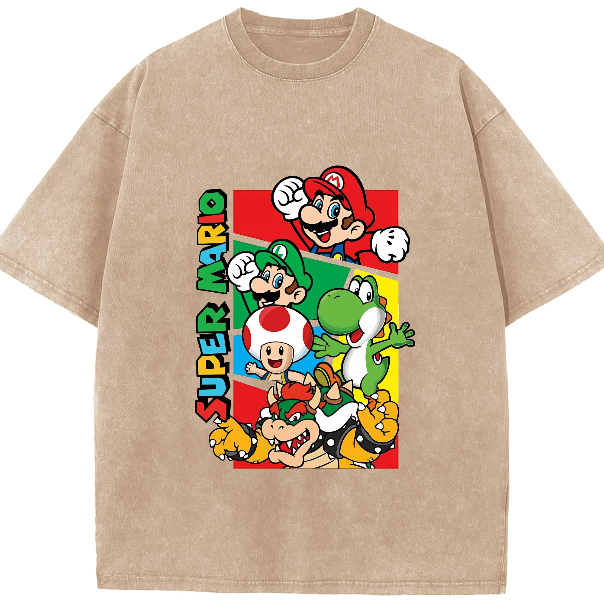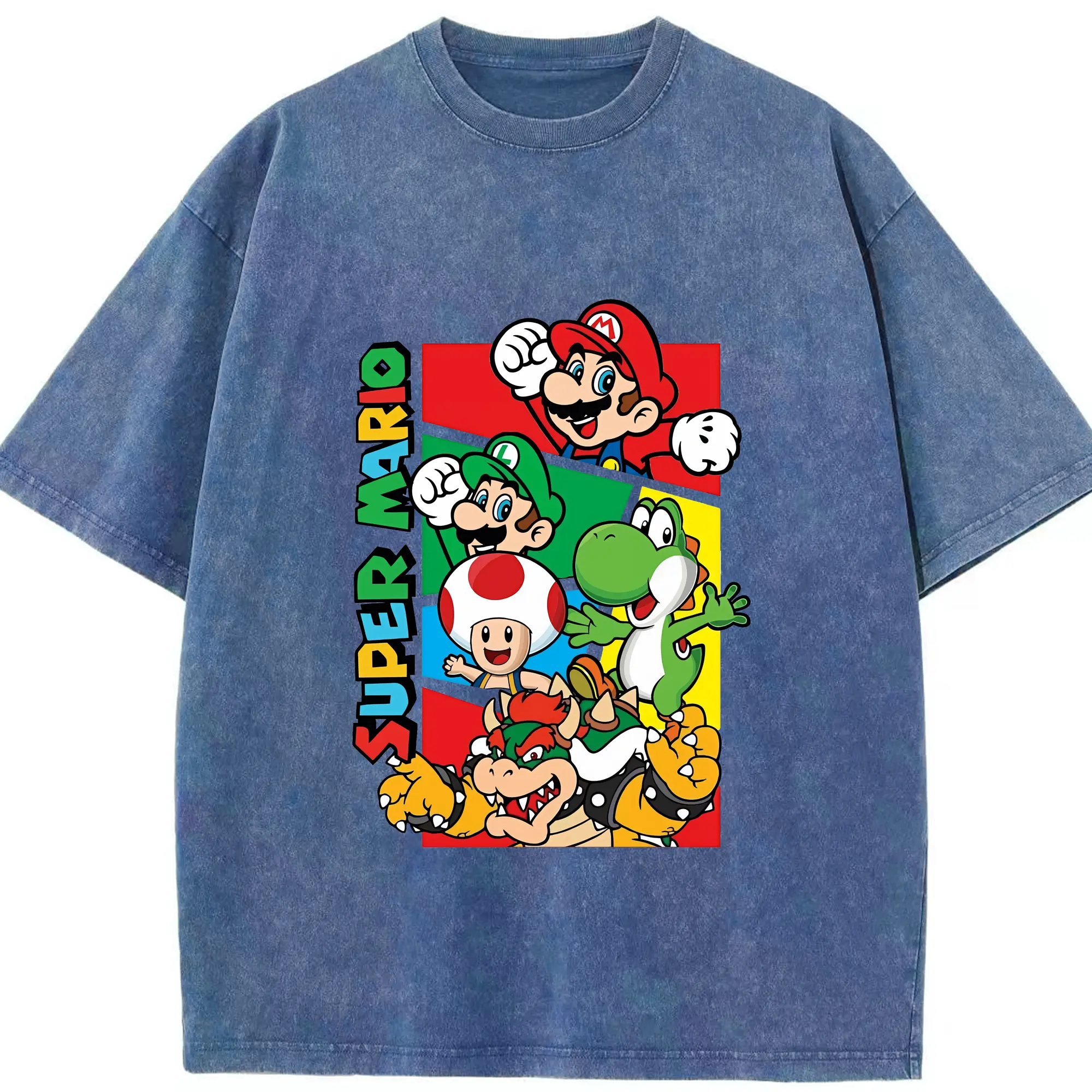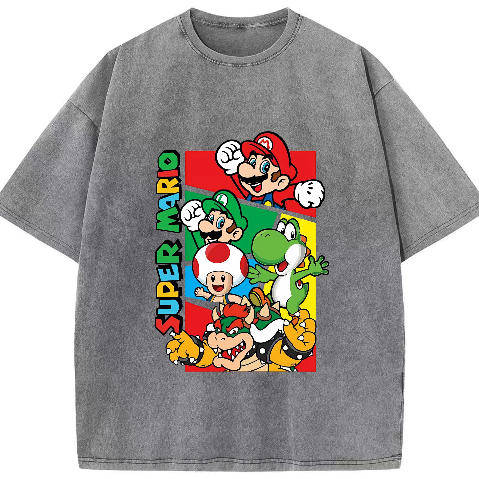 マリオ グッズ マリオ - 綿100% ヴィンテージ風 半袖Tシャツ ・ 背面プリント ・ 柔らか肌触り ・ 通気性 快適 ・ スポーツ カジュアル 外出用