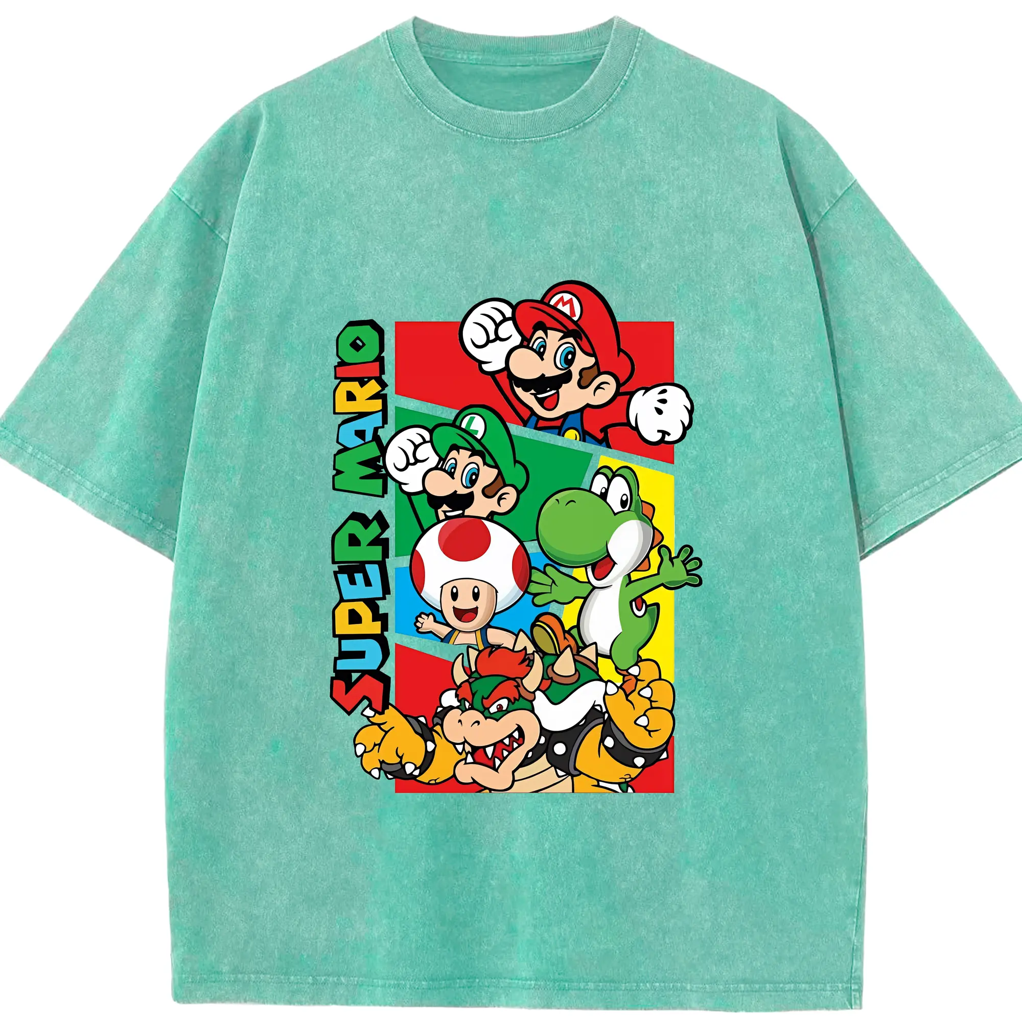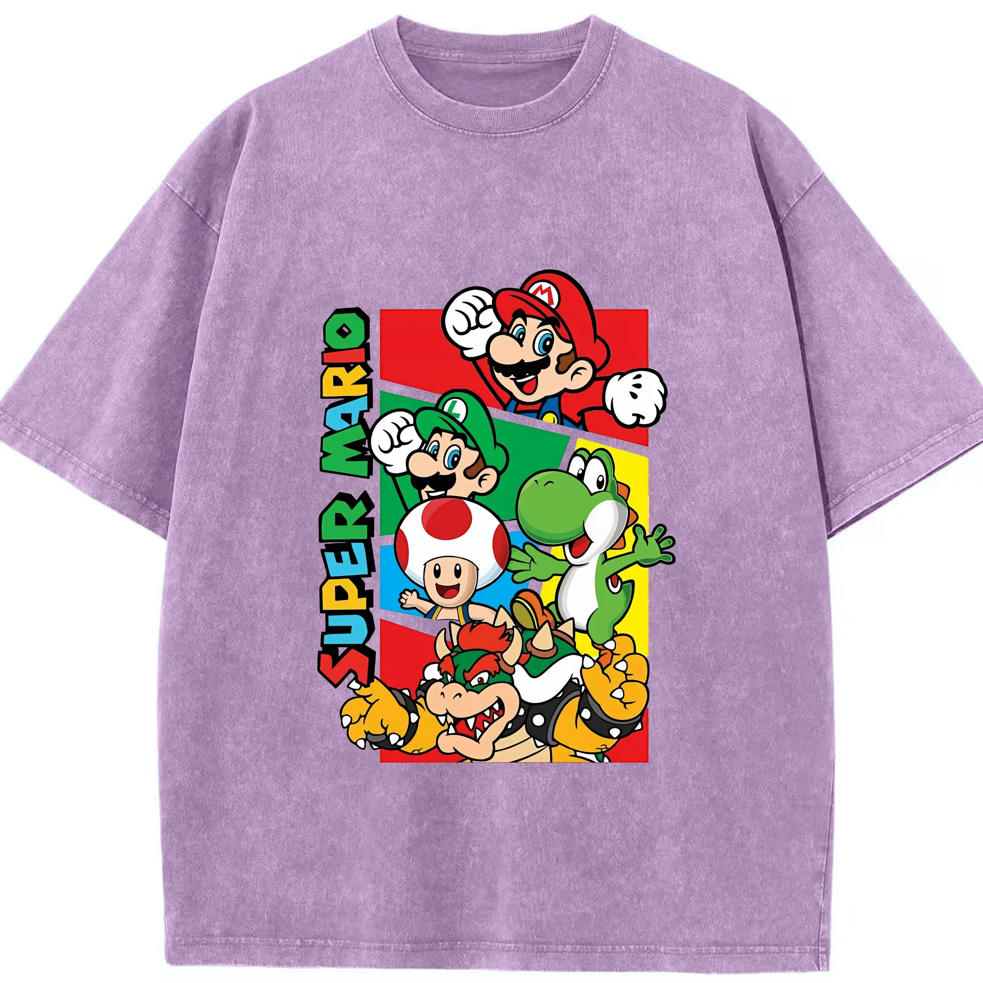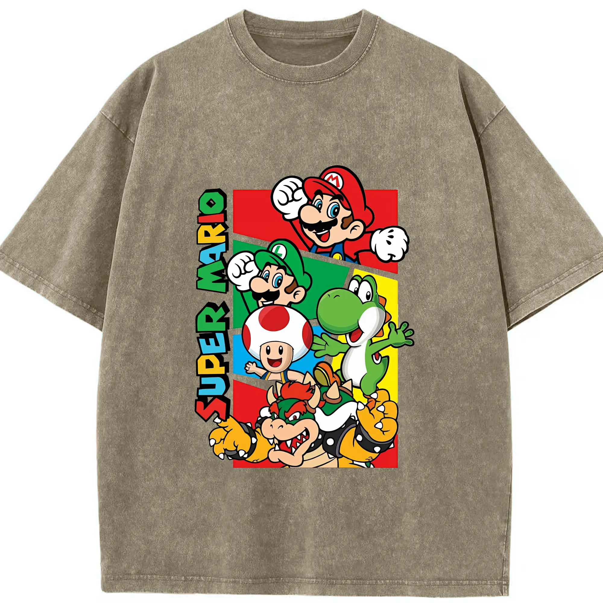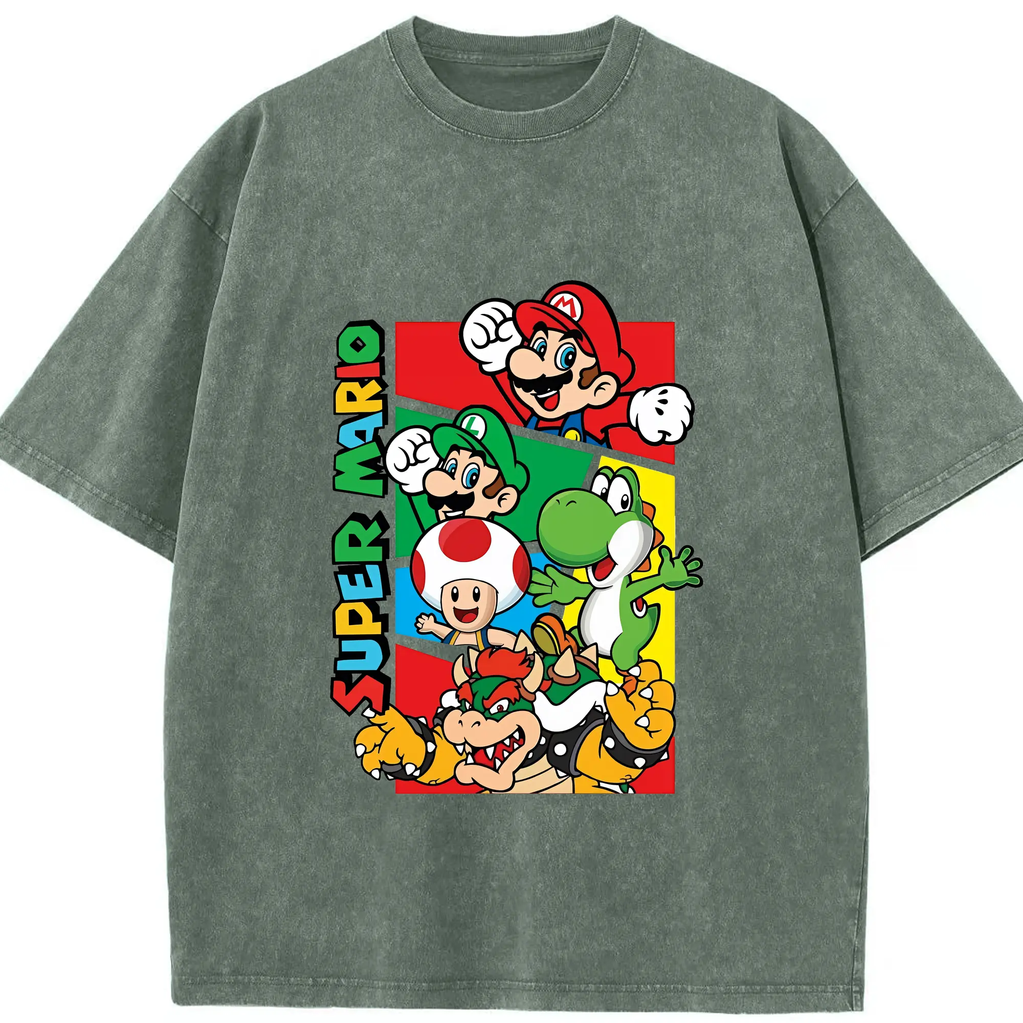 マリオ グッズ マリオ - 綿100% ヴィンテージ風 半袖Tシャツ ・ 背面プリント ・ 柔らか肌触り ・ 通気性 快適 ・ スポーツ カジュアル 外出用