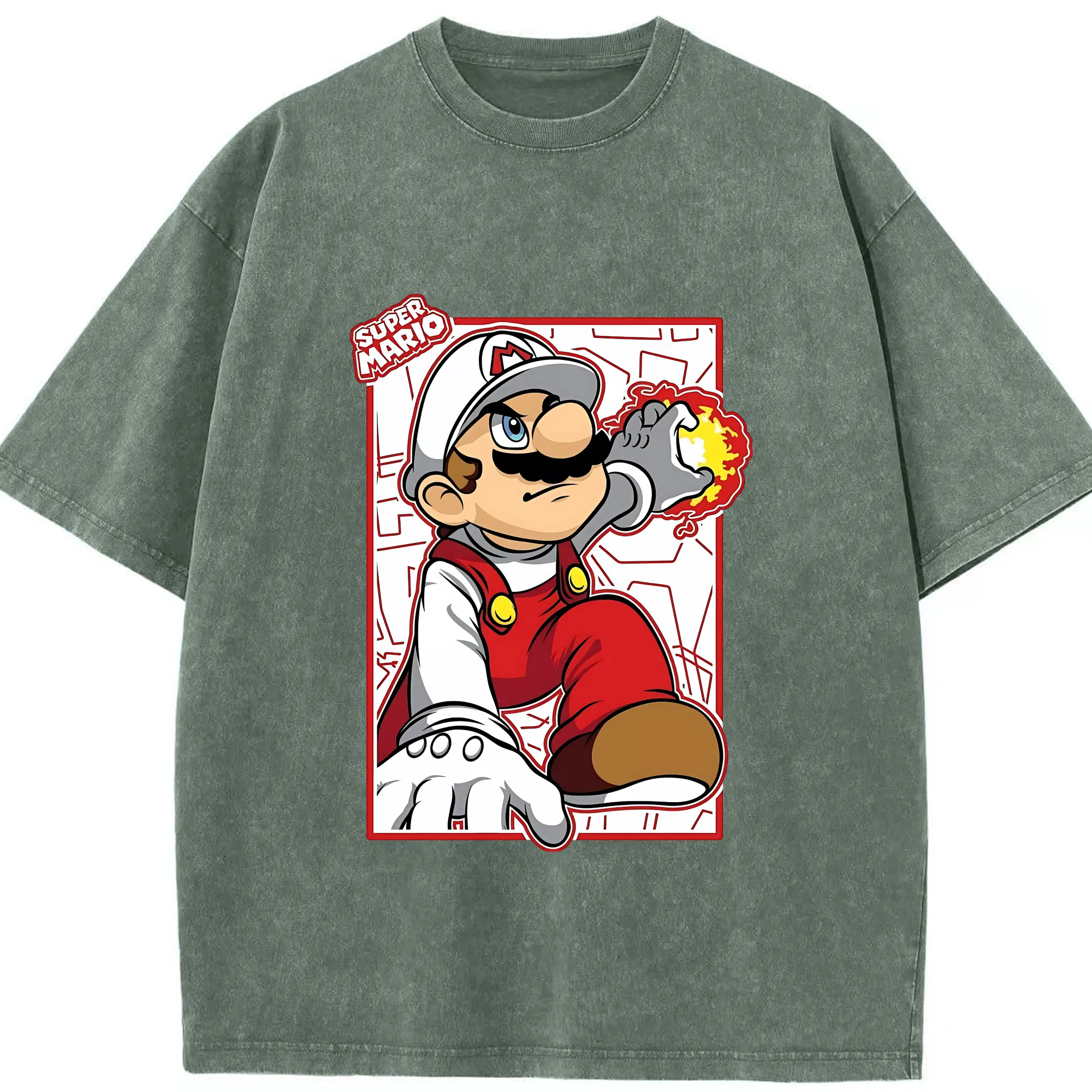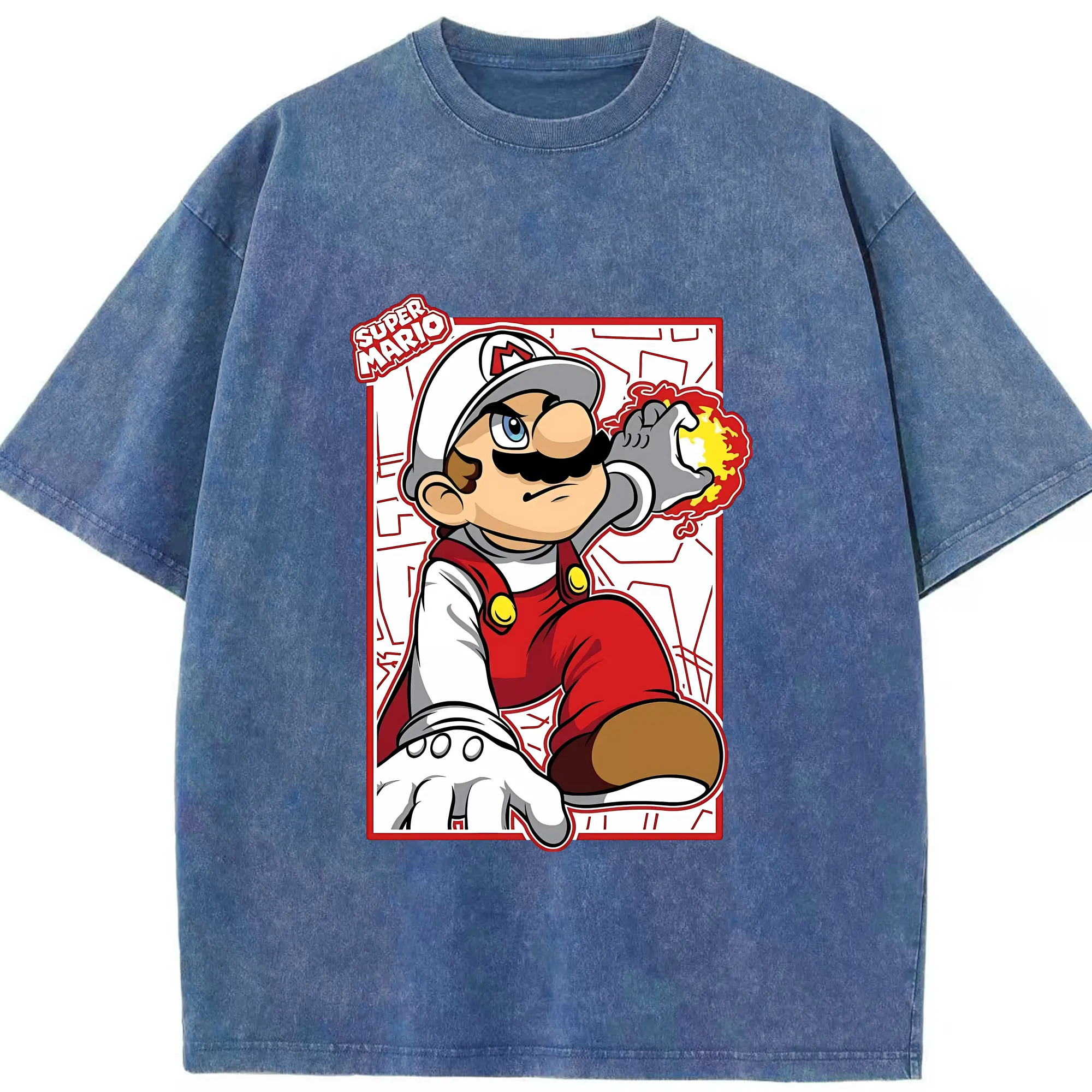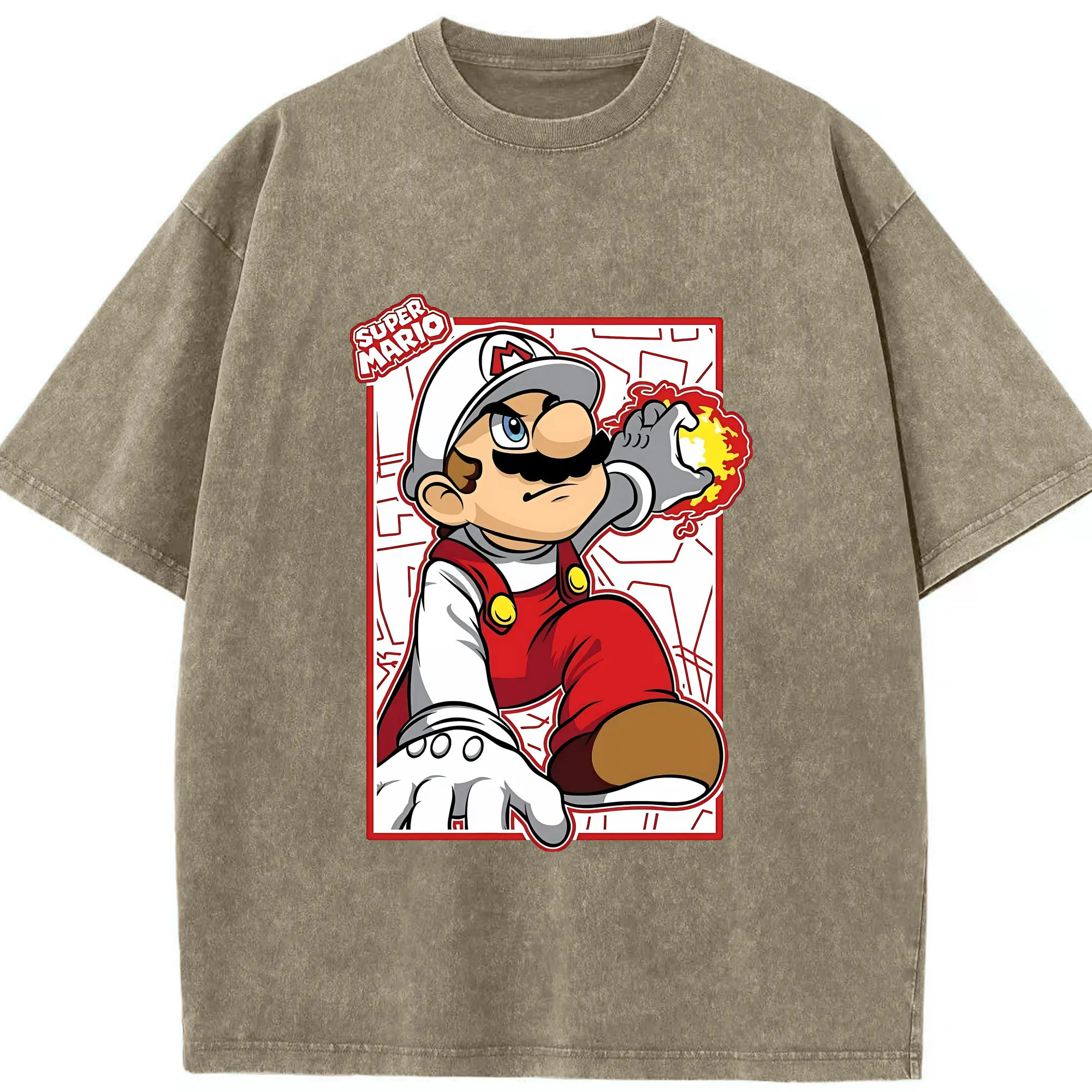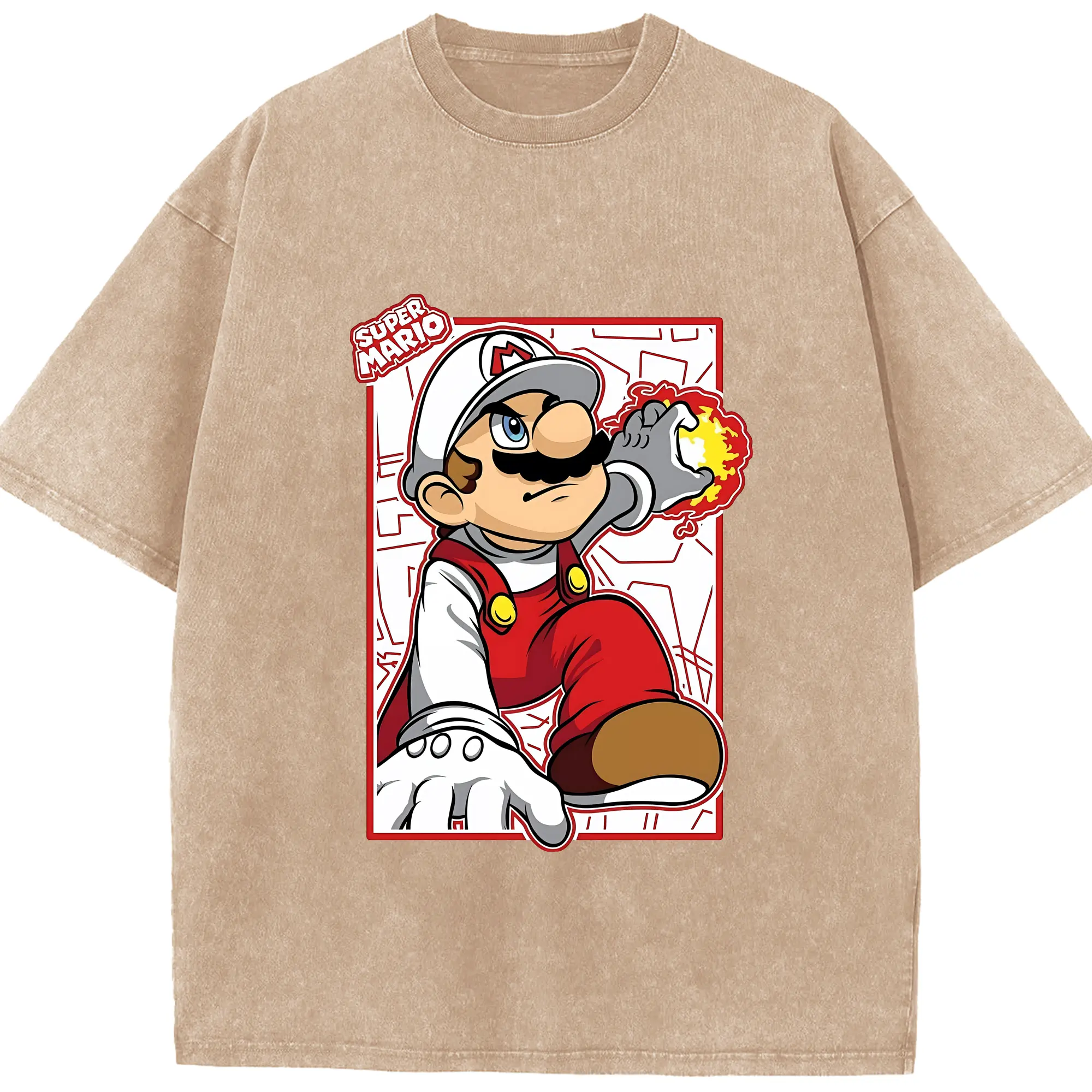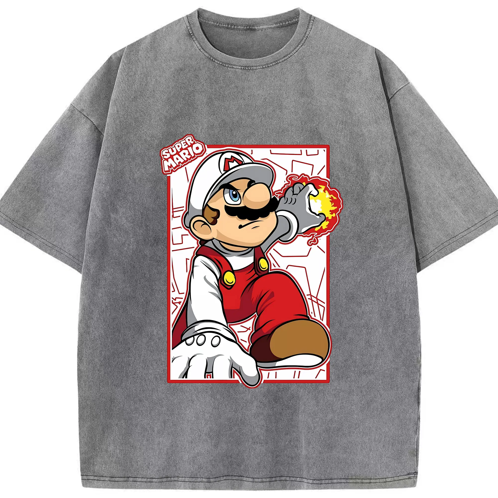 マリオ グッズ マリオ - 綿100% ヴィンテージ風 半袖Tシャツ ・ 背面プリント ・ 柔らか肌触り ・ 通気性 快適 ・ スポーツ カジュアル 外出用