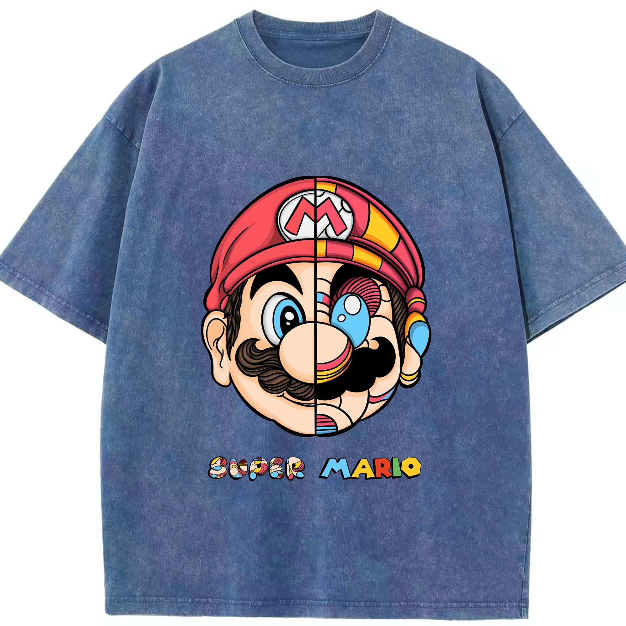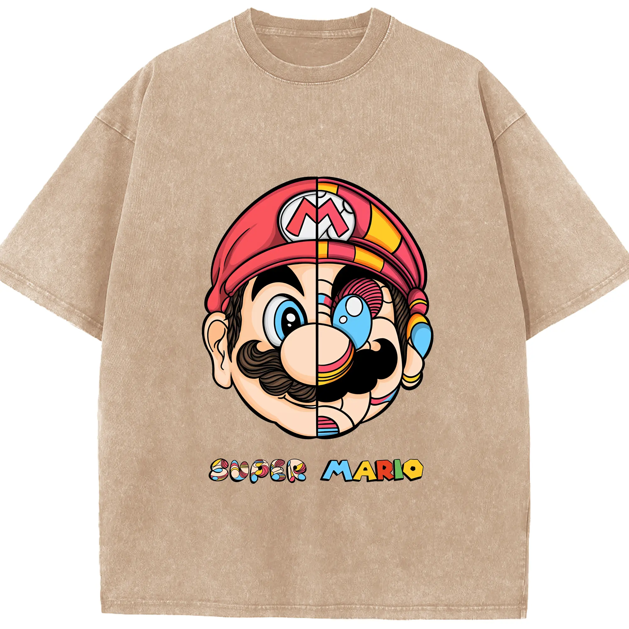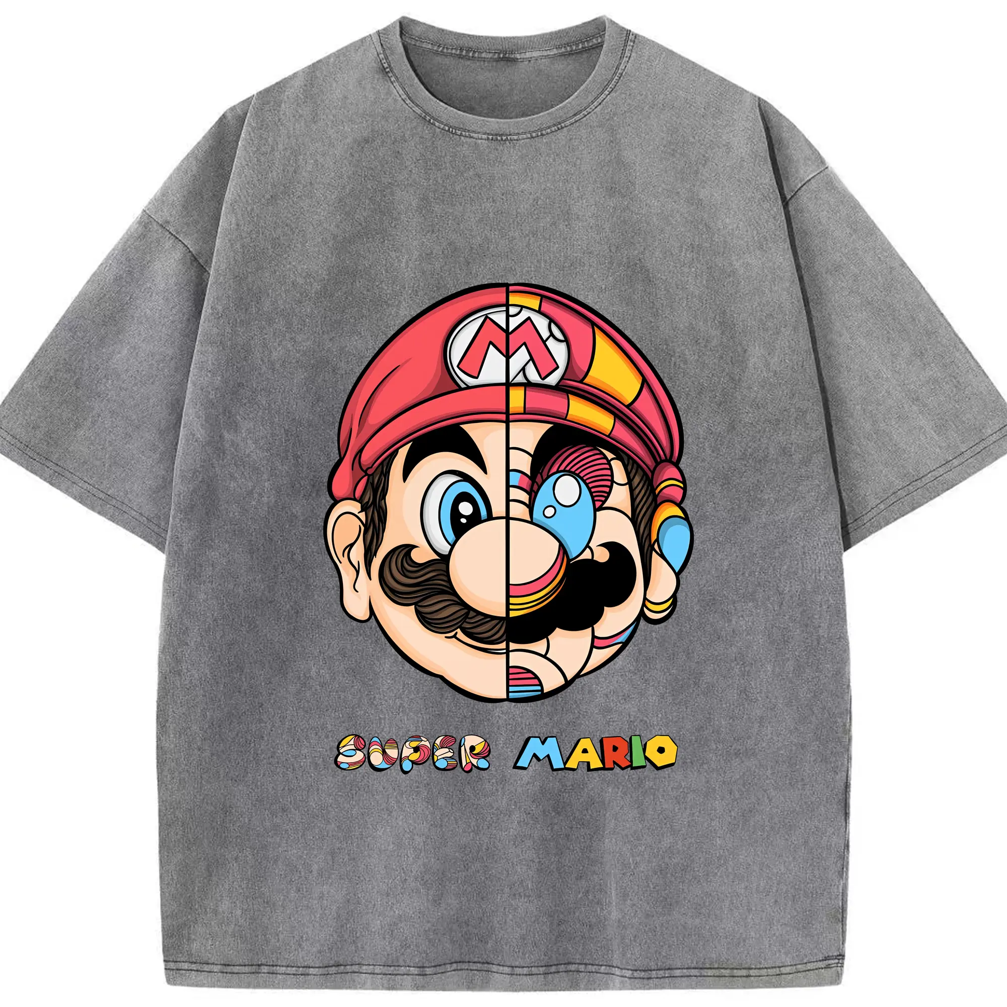 マリオ グッズ マリオ - 綿100% ヴィンテージ風 半袖Tシャツ ・ 背面プリント ・ 柔らか肌触り ・ 通気性 快適 ・ スポーツ カジュアル 外出用