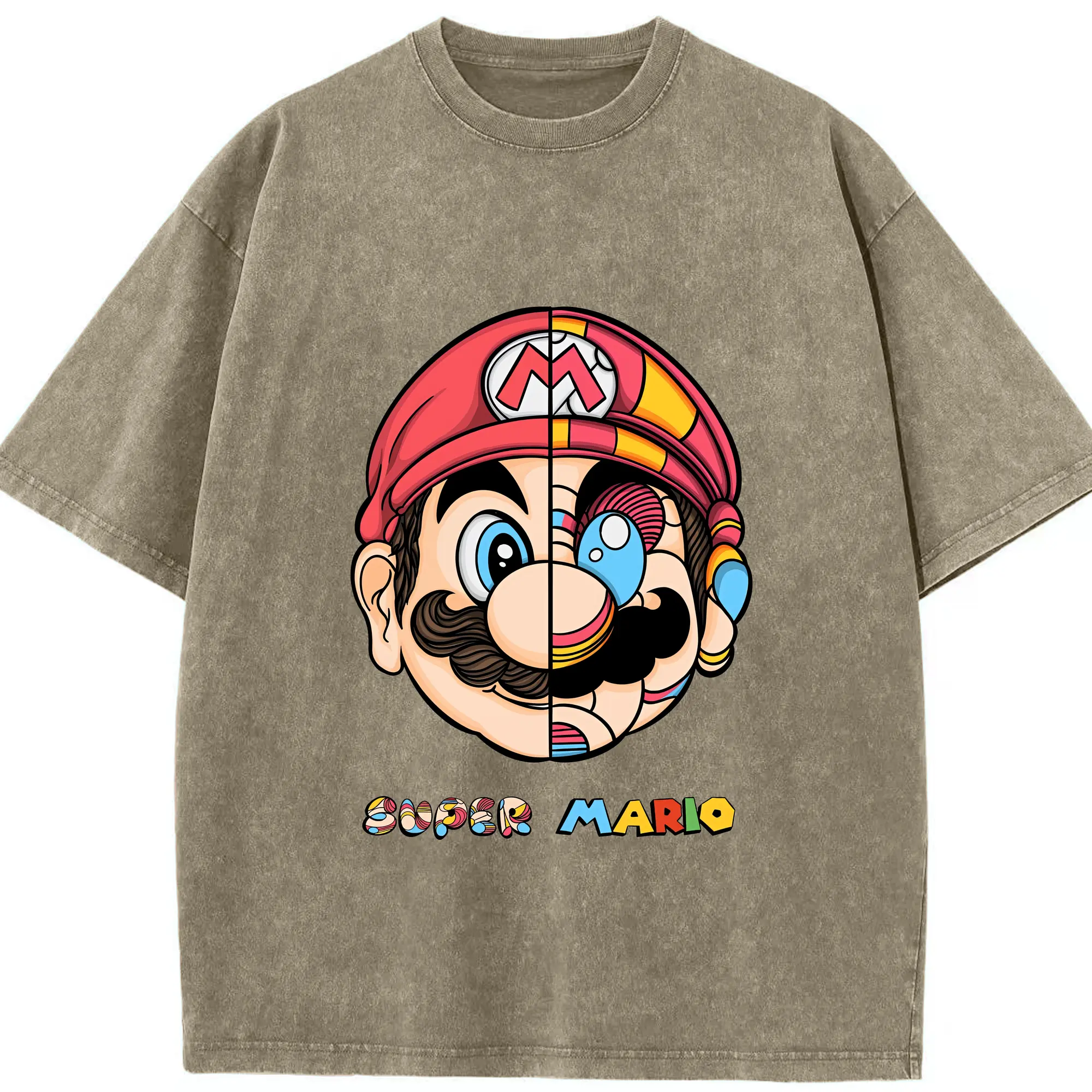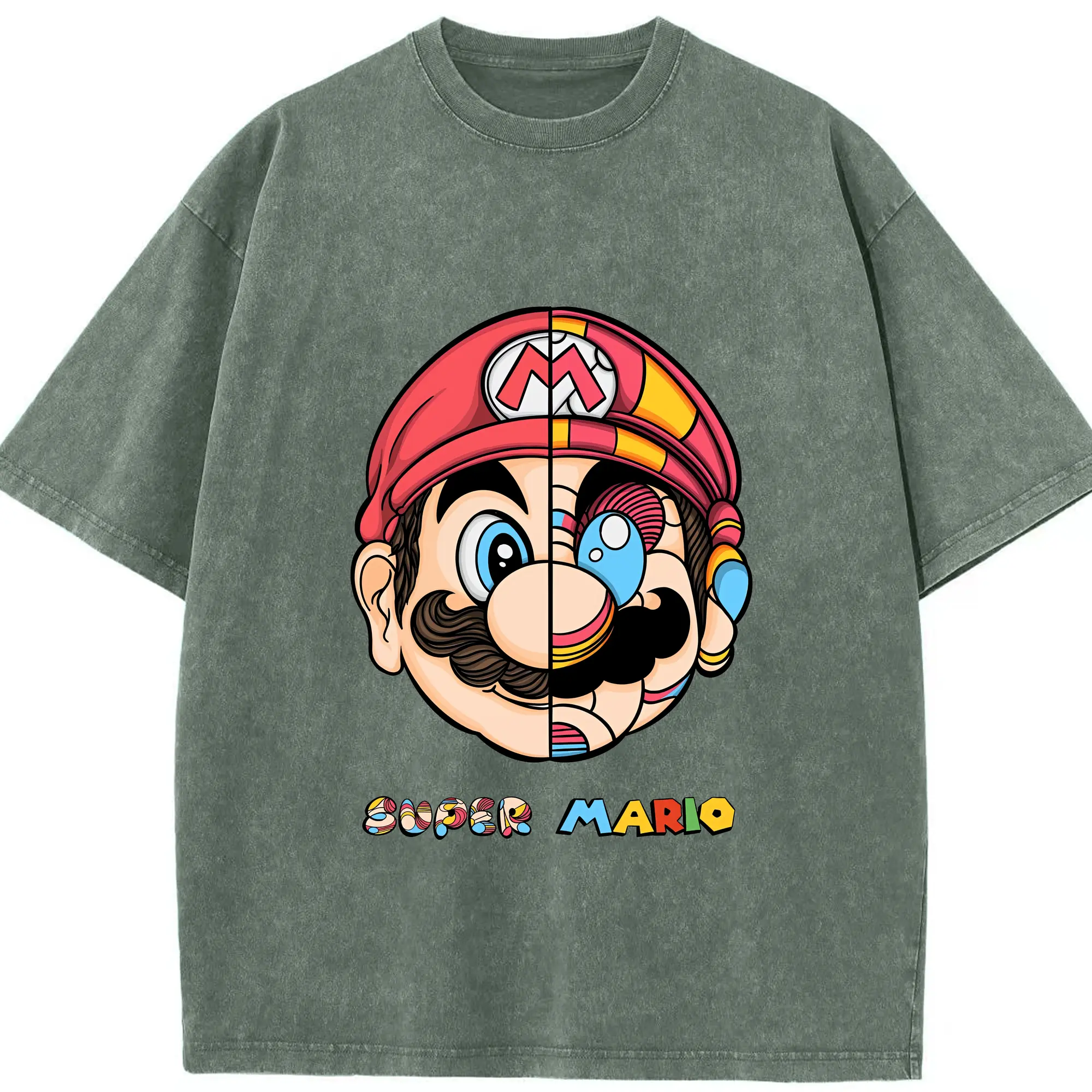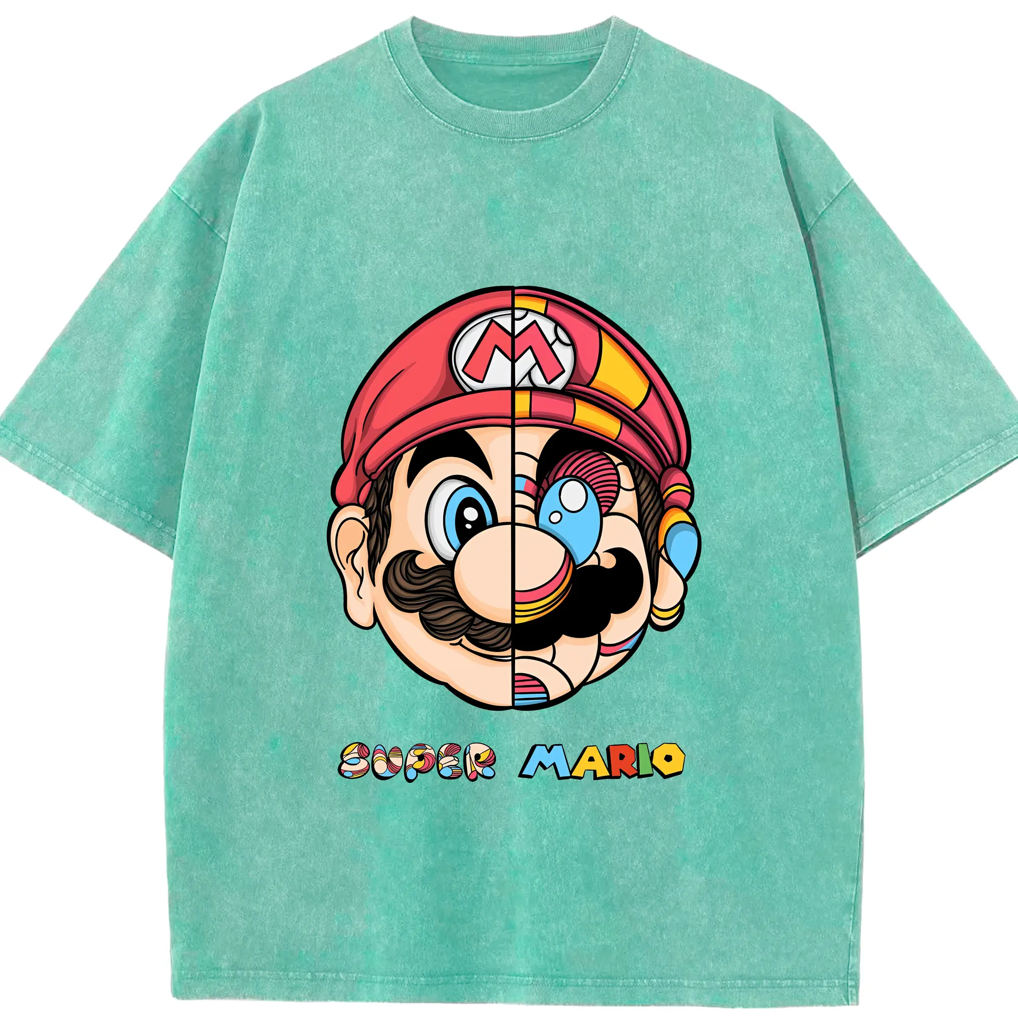 マリオ グッズ マリオ - 綿100% ヴィンテージ風 半袖Tシャツ ・ 背面プリント ・ 柔らか肌触り ・ 通気性 快適 ・ スポーツ カジュアル 外出用