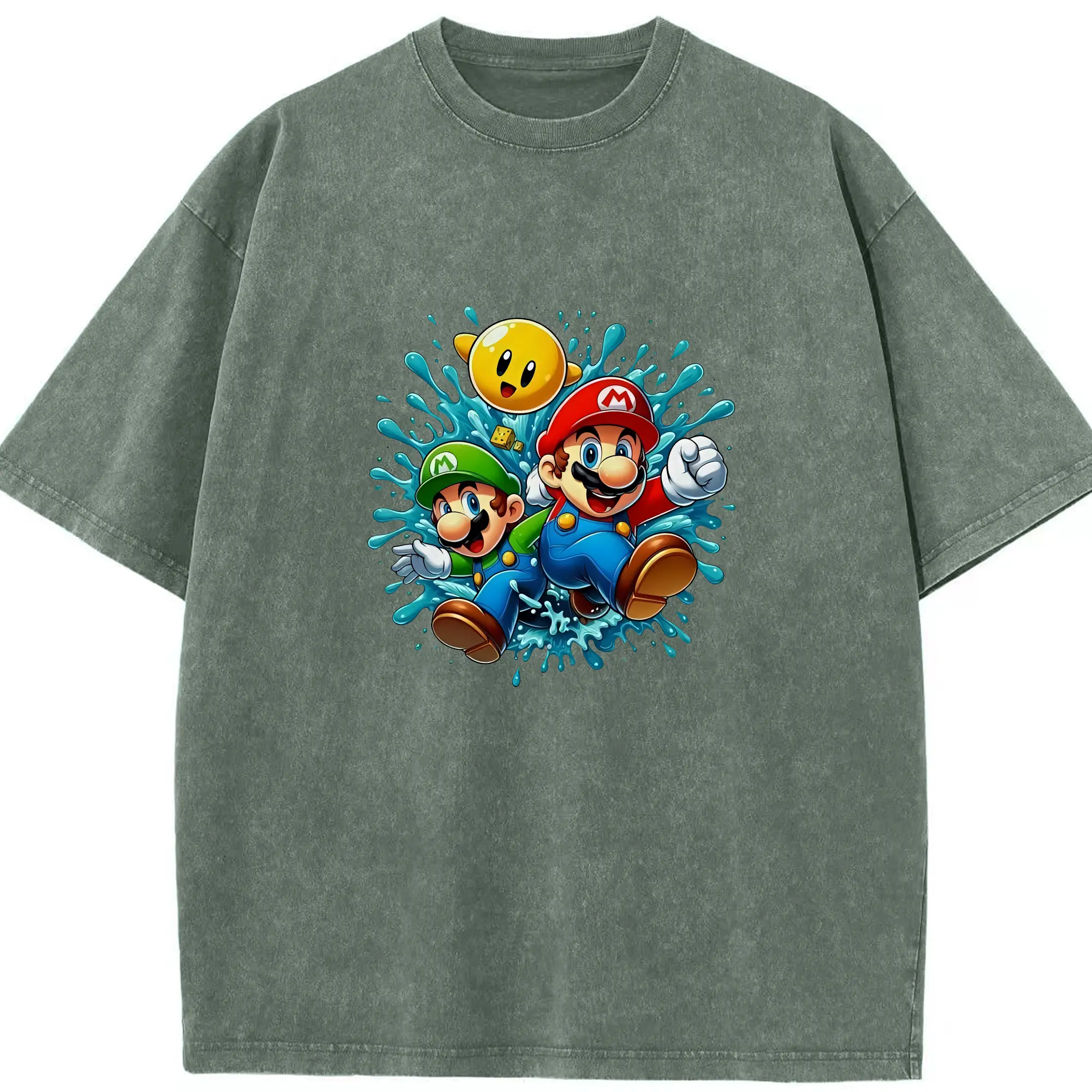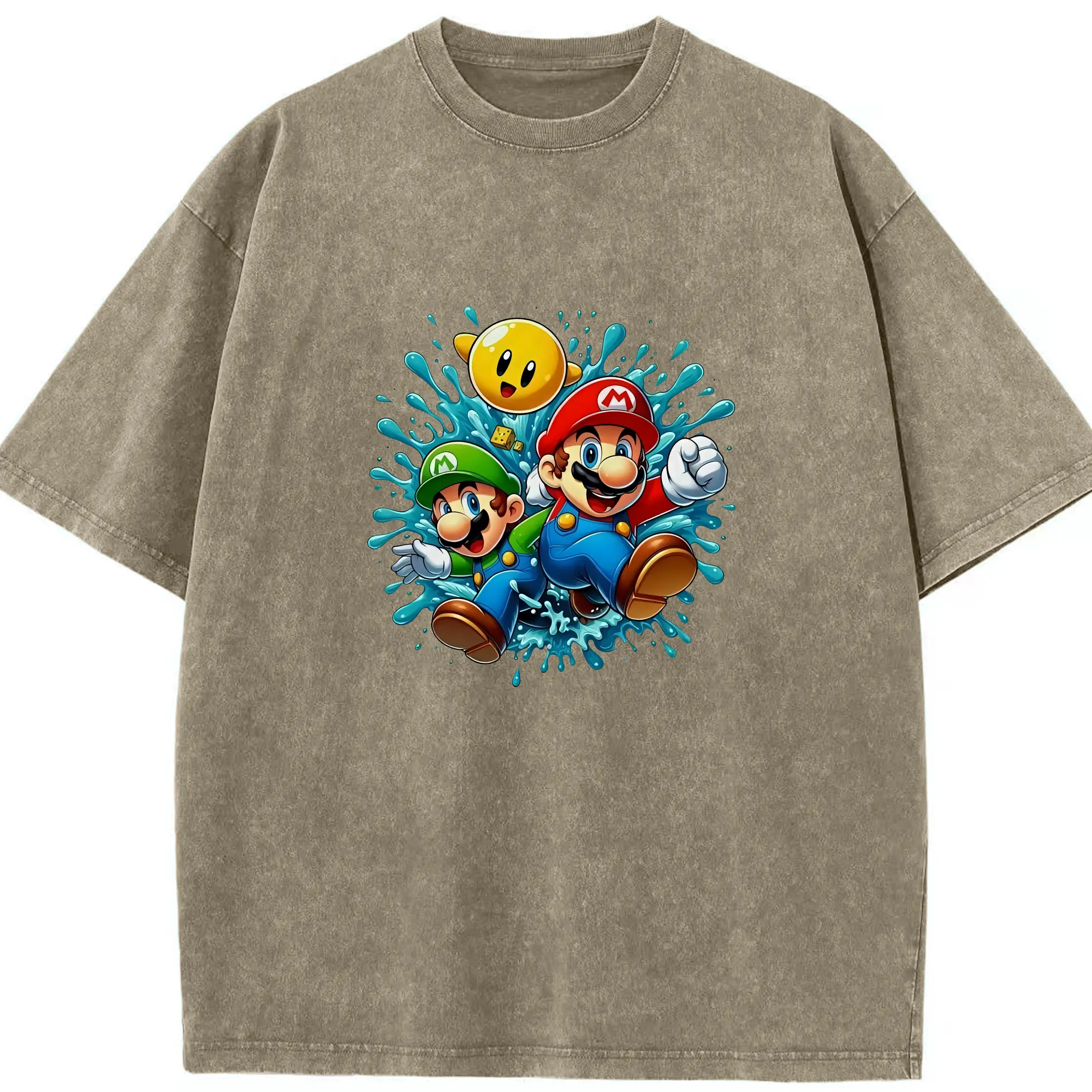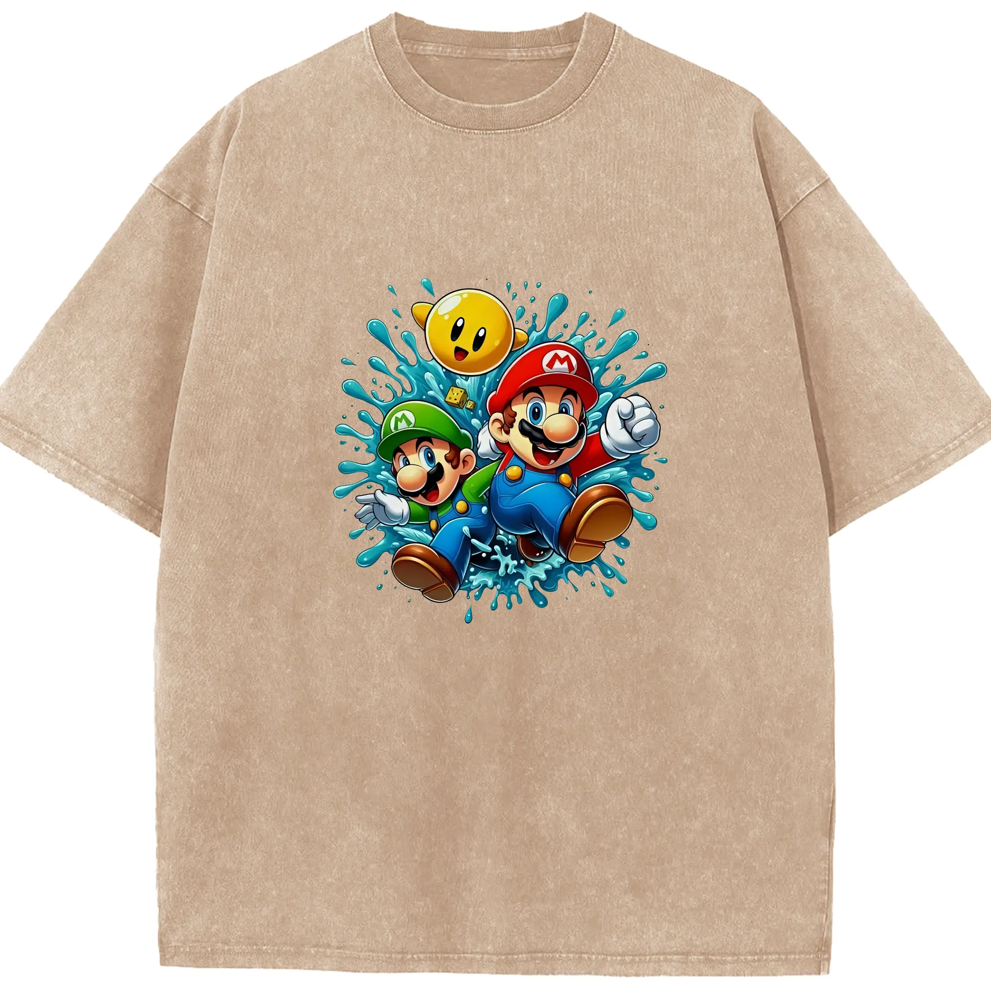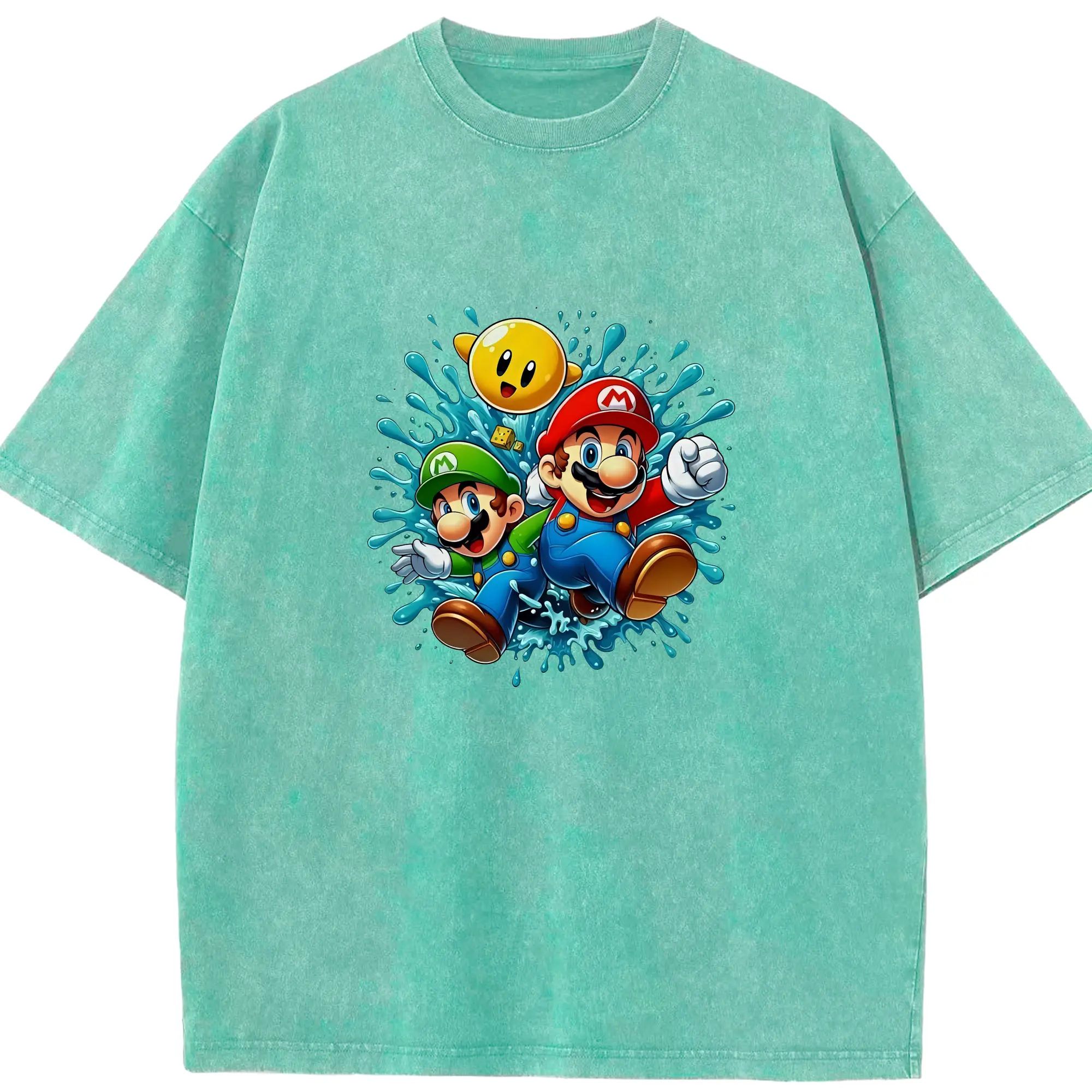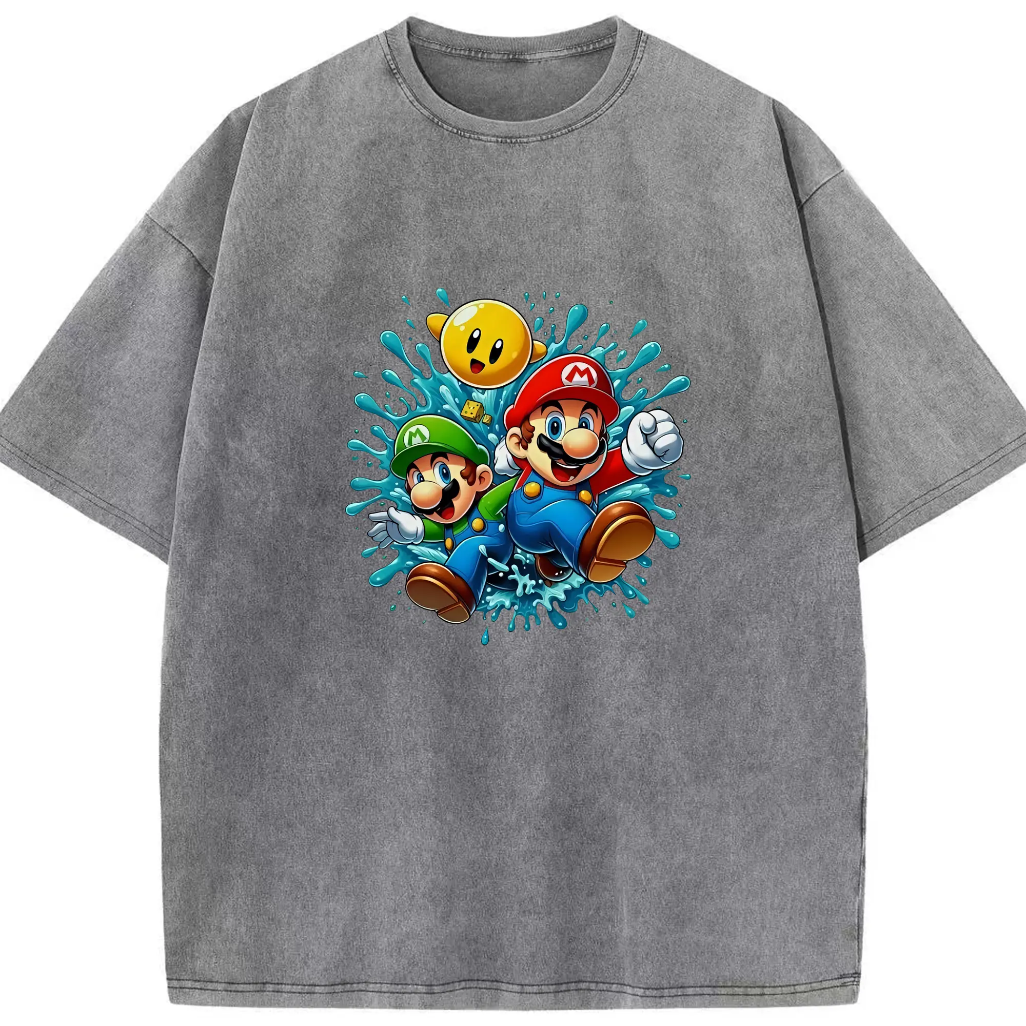 マリオ グッズ マリオ - 綿100% ヴィンテージ風 半袖Tシャツ ・ 背面プリント ・ 柔らか肌触り ・ 通気性 快適 ・ スポーツ カジュアル 外出用