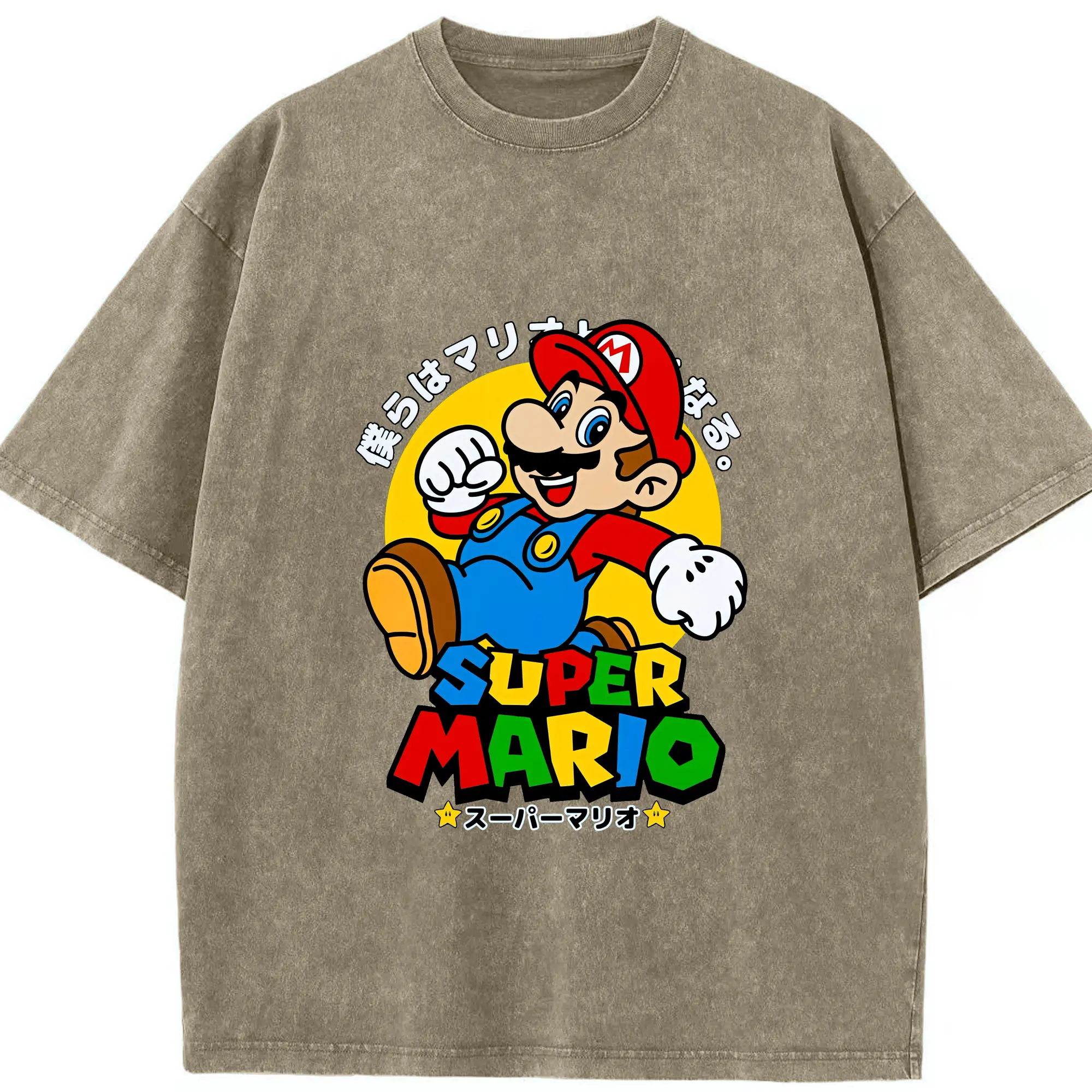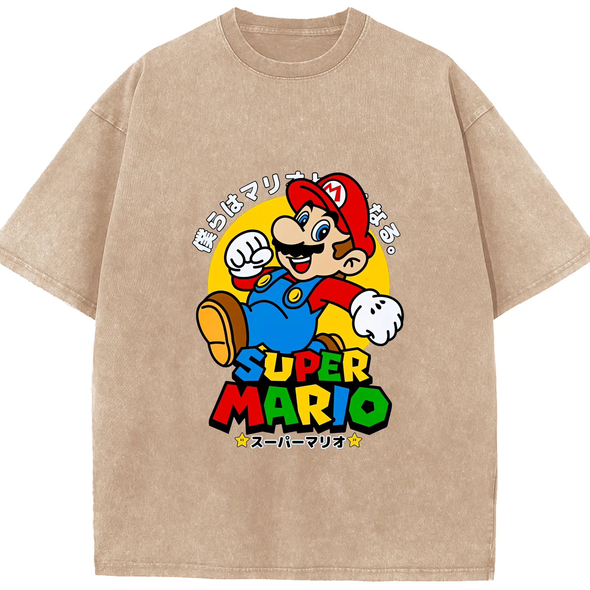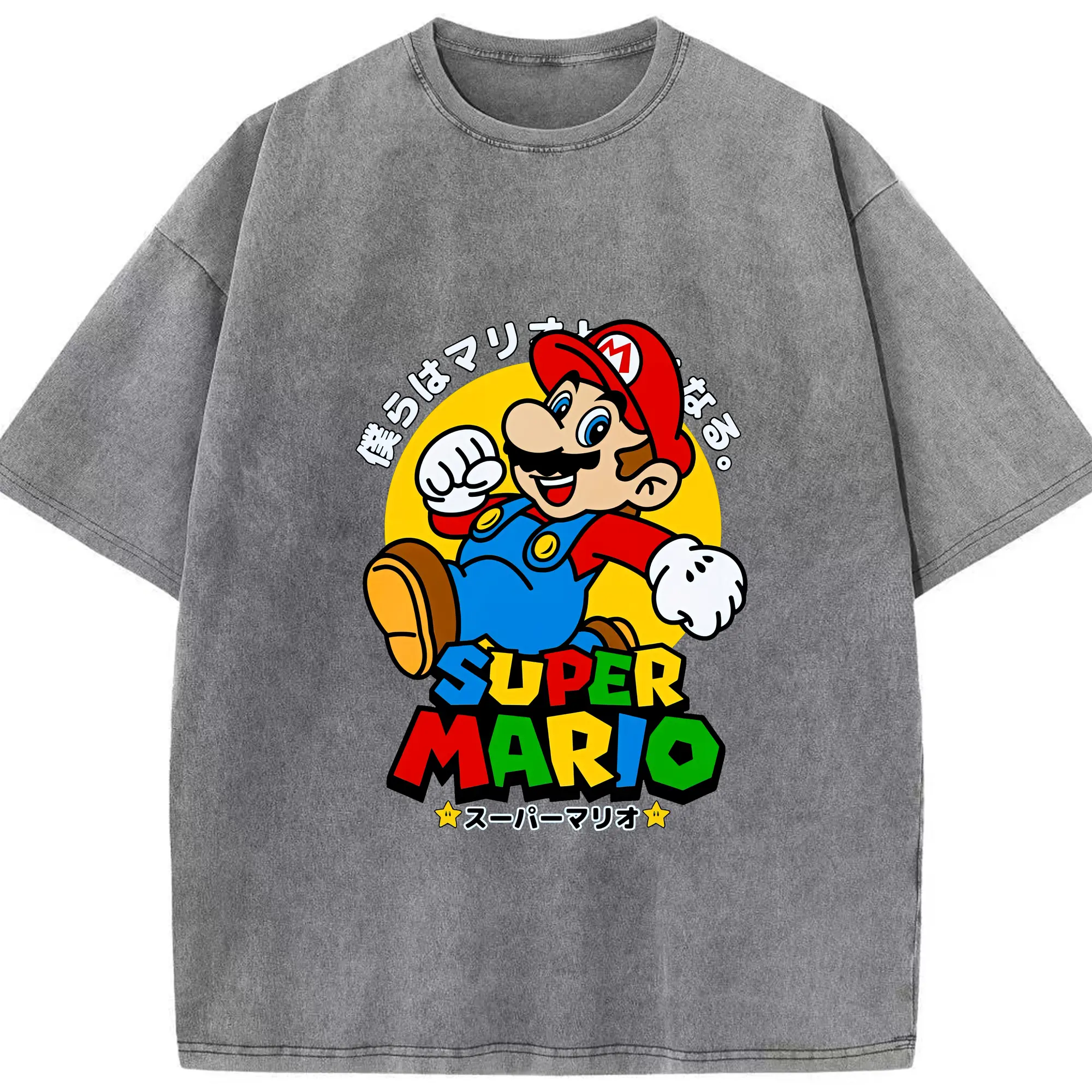 マリオ グッズ マリオ - 綿100% ヴィンテージ風 半袖Tシャツ ・ 背面プリント ・ 柔らか肌触り ・ 通気性 快適 ・ スポーツ カジュアル 外出用