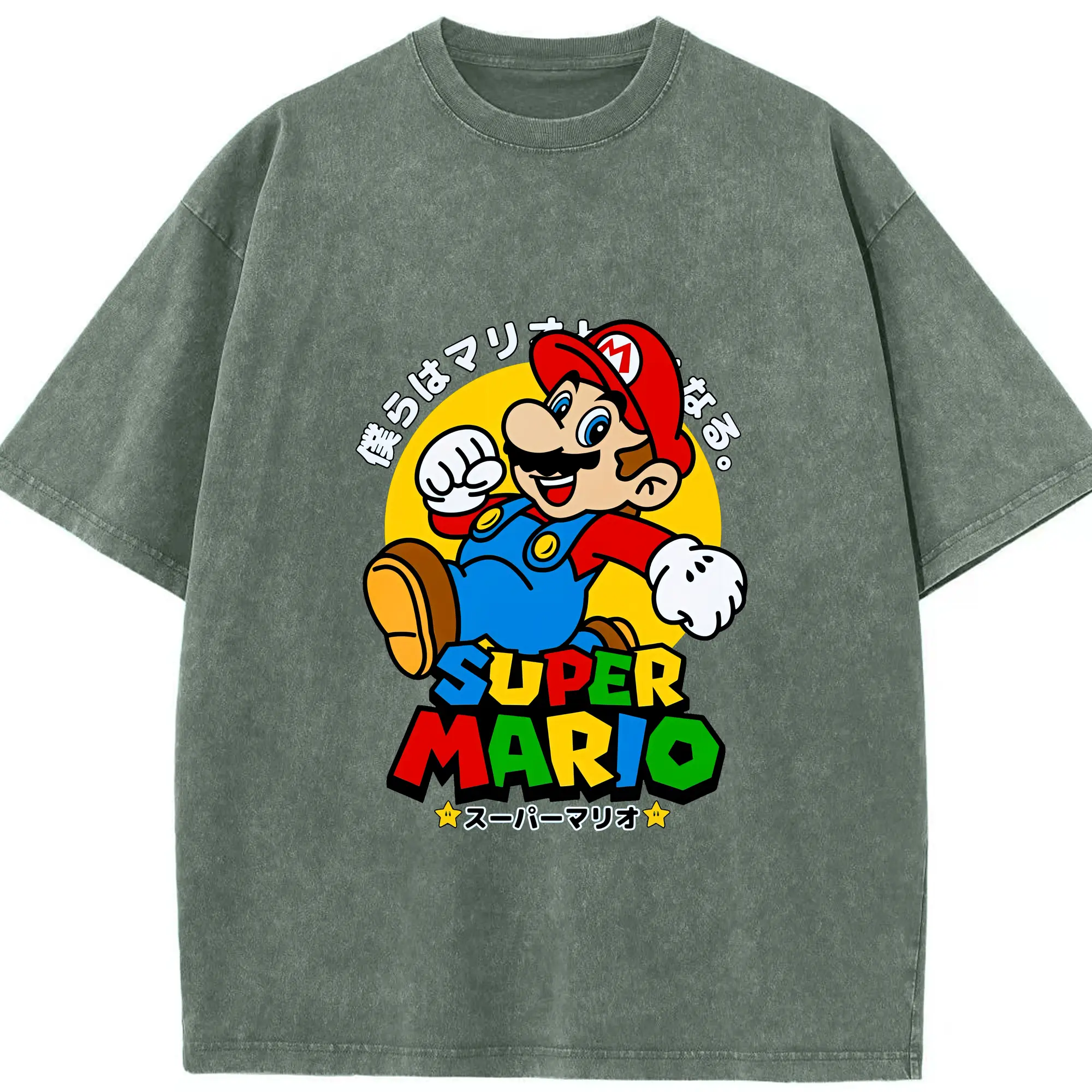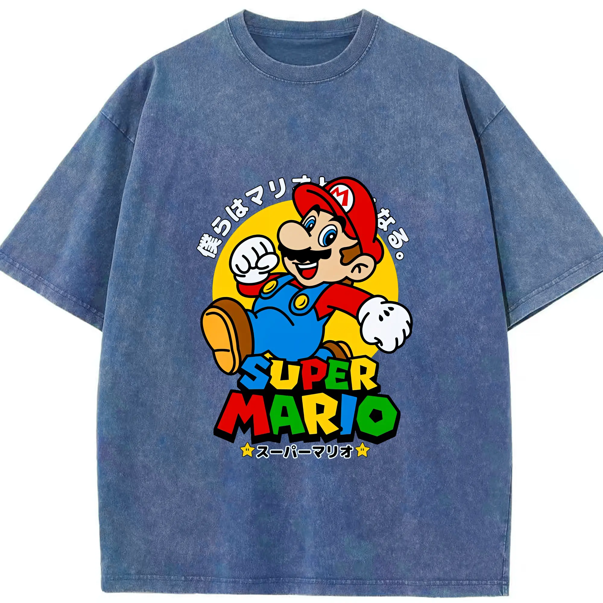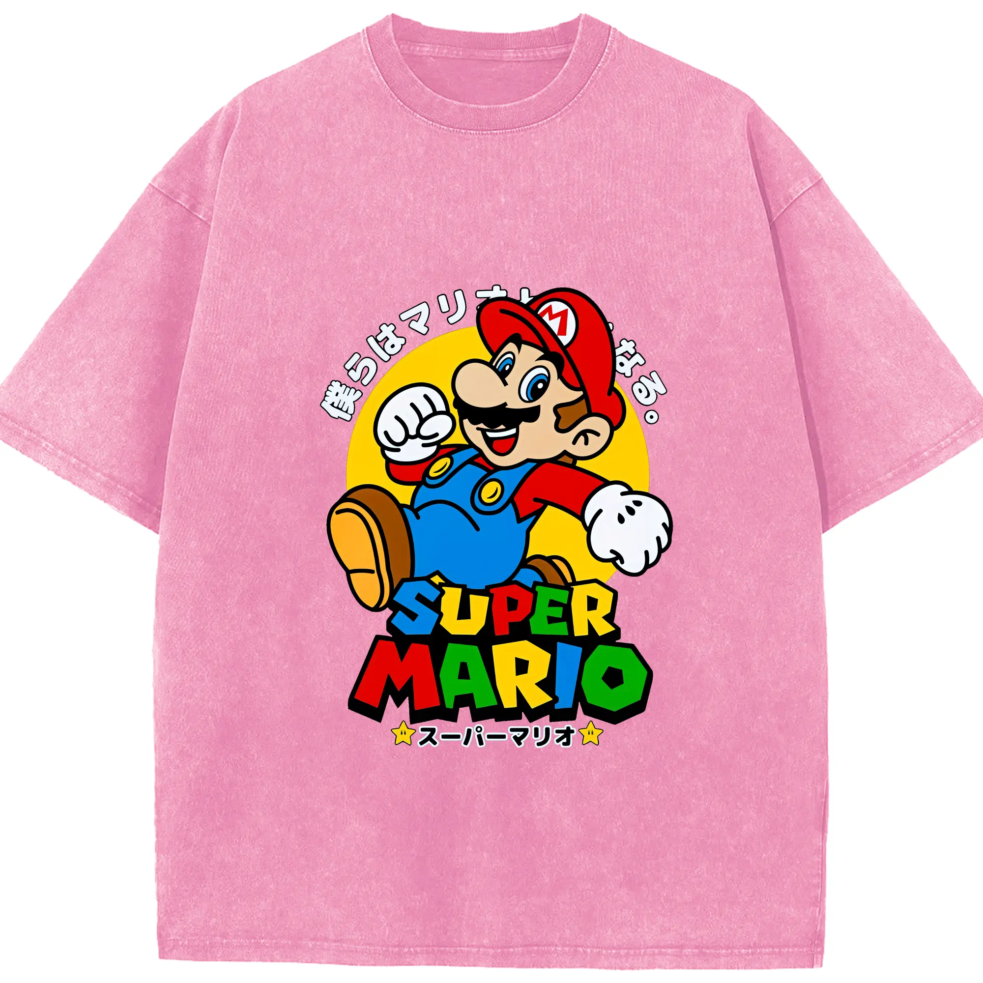 マリオ グッズ マリオ - 綿100% ヴィンテージ風 半袖Tシャツ ・ 背面プリント ・ 柔らか肌触り ・ 通気性 快適 ・ スポーツ カジュアル 外出用
