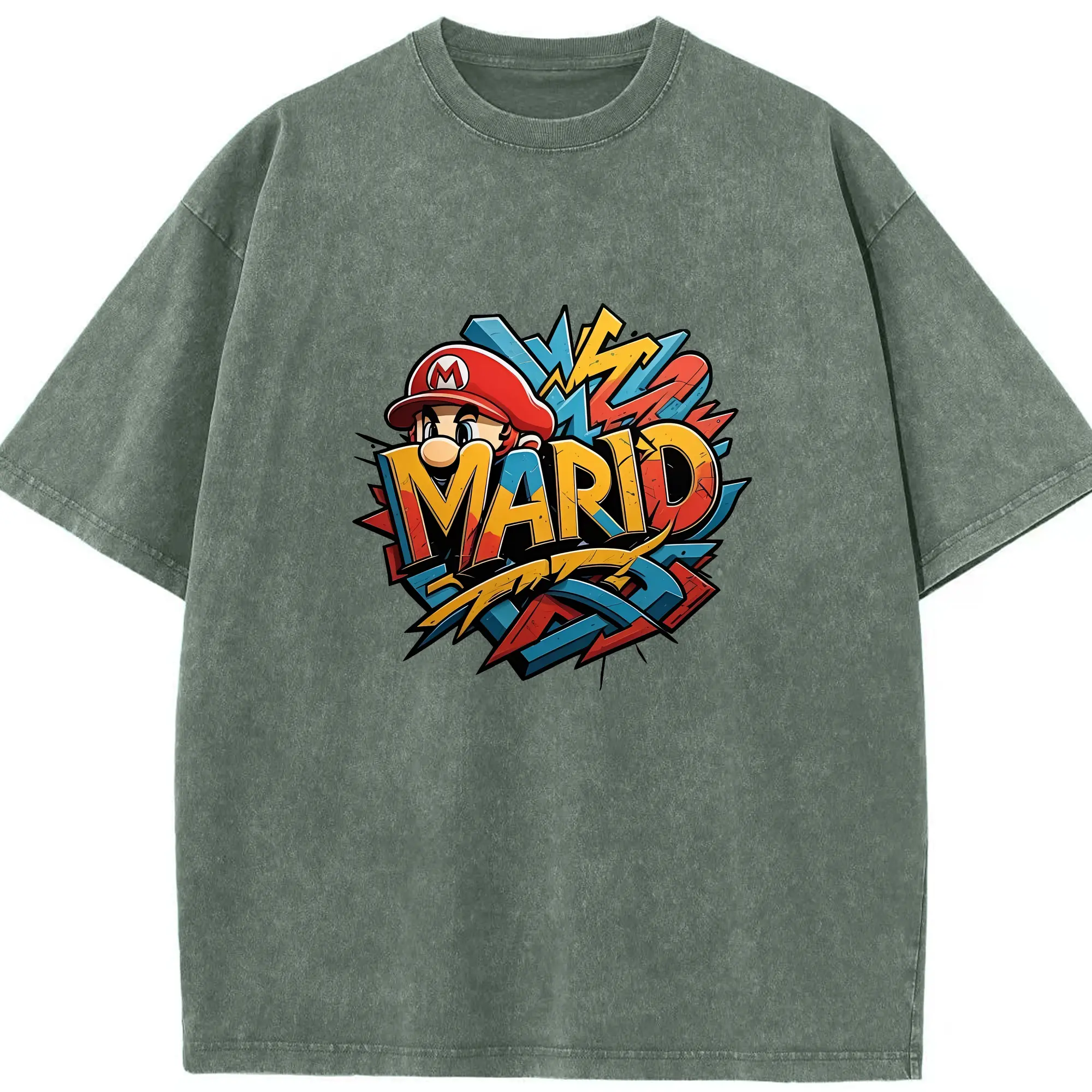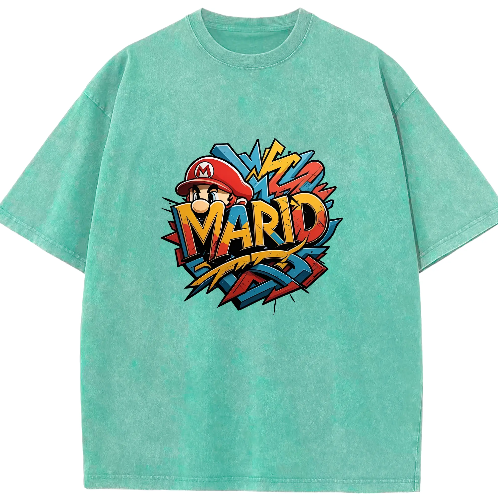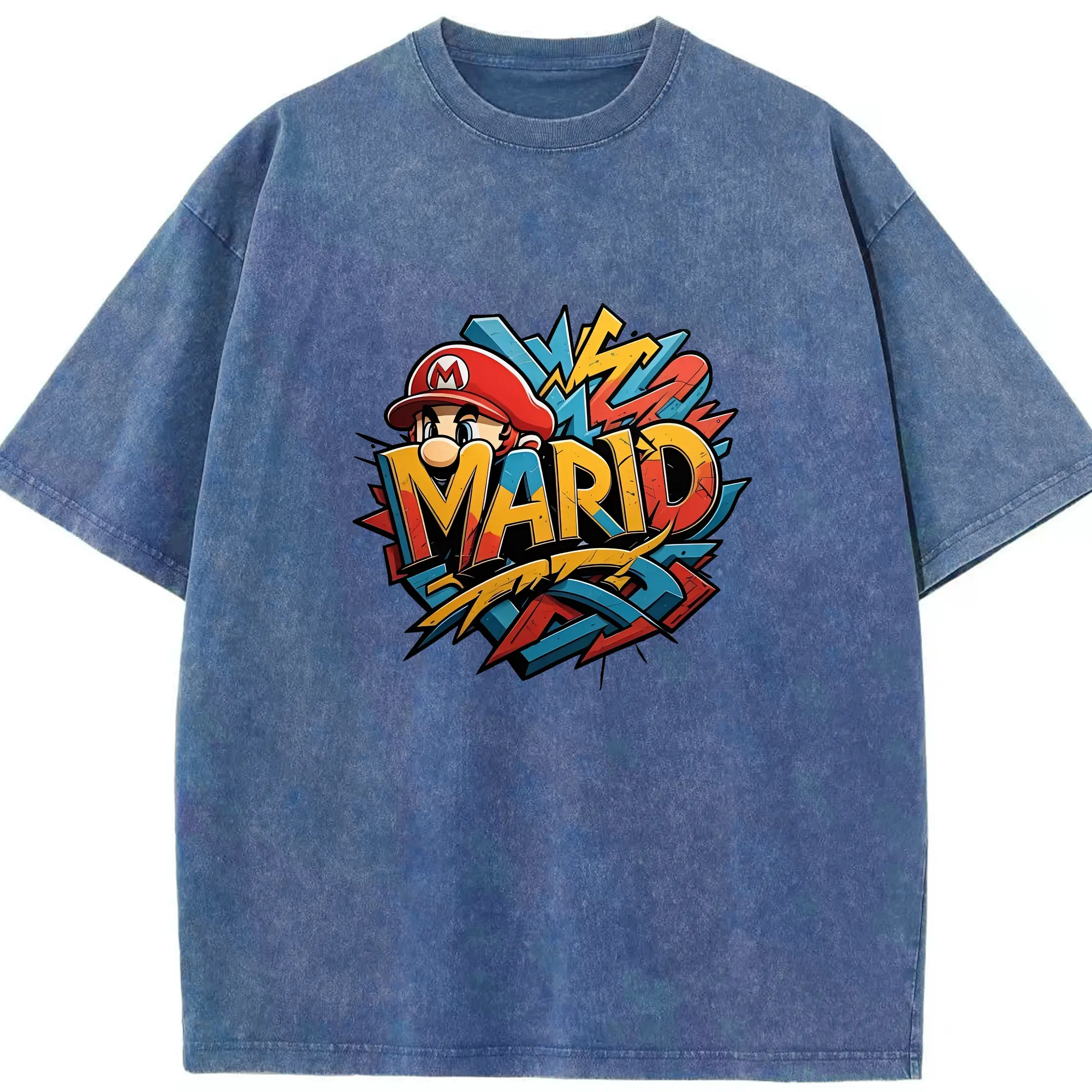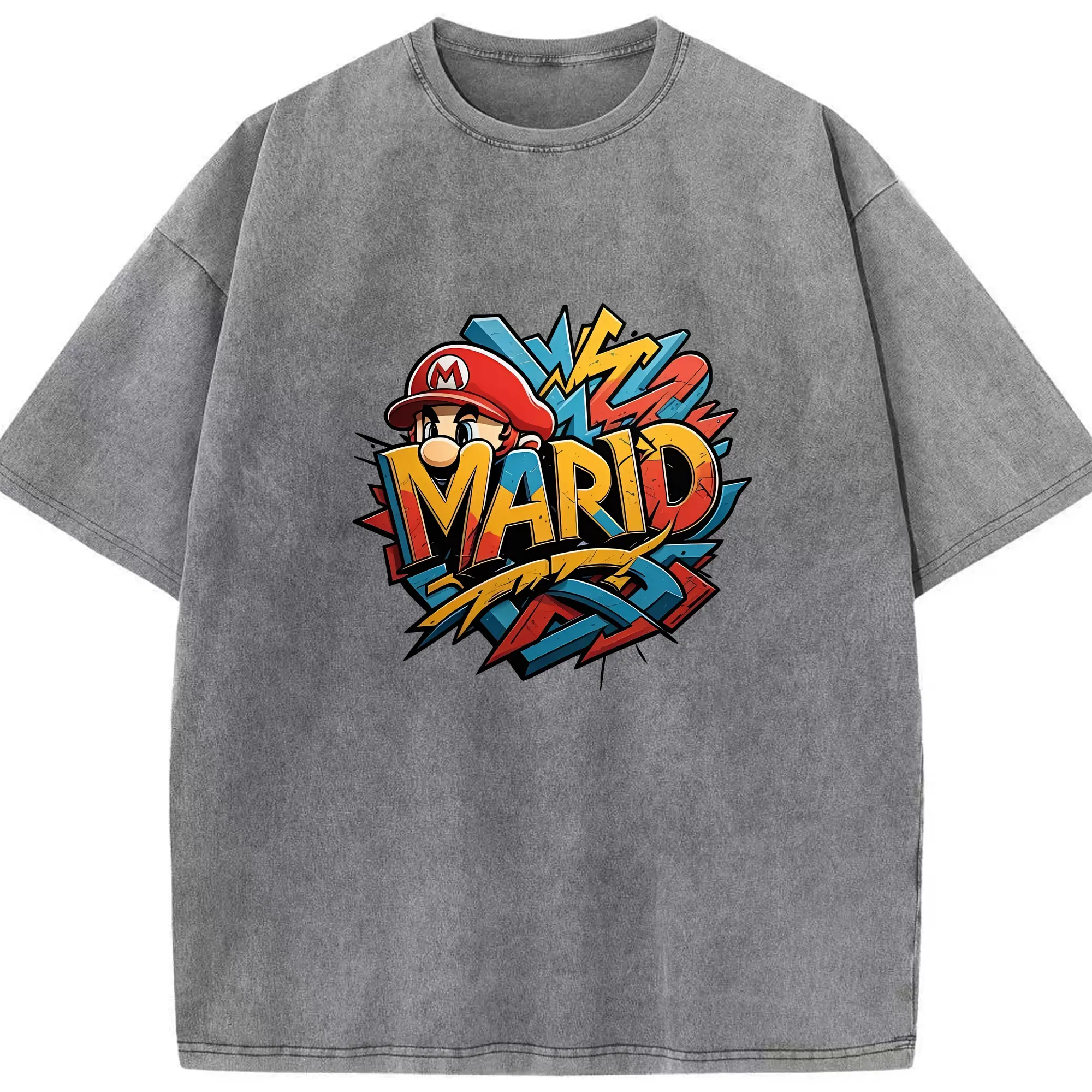 マリオ グッズ マリオ - 綿100% ヴィンテージ風 半袖Tシャツ ・ 背面プリント ・ 柔らか肌触り ・ 通気性 快適 ・ スポーツ カジュアル 外出用
