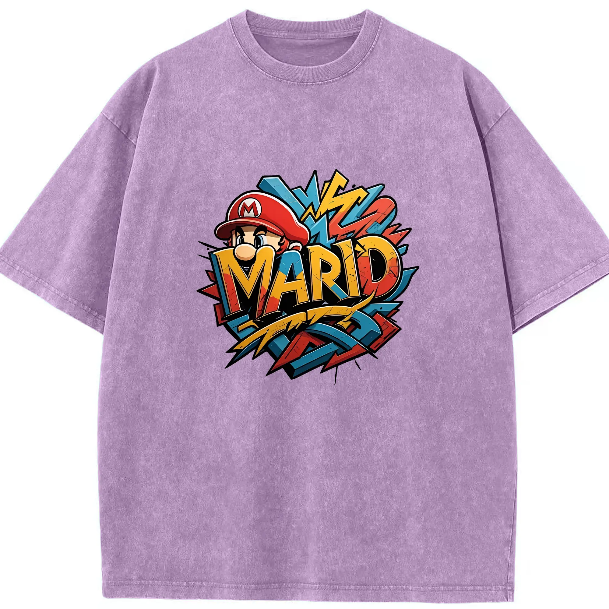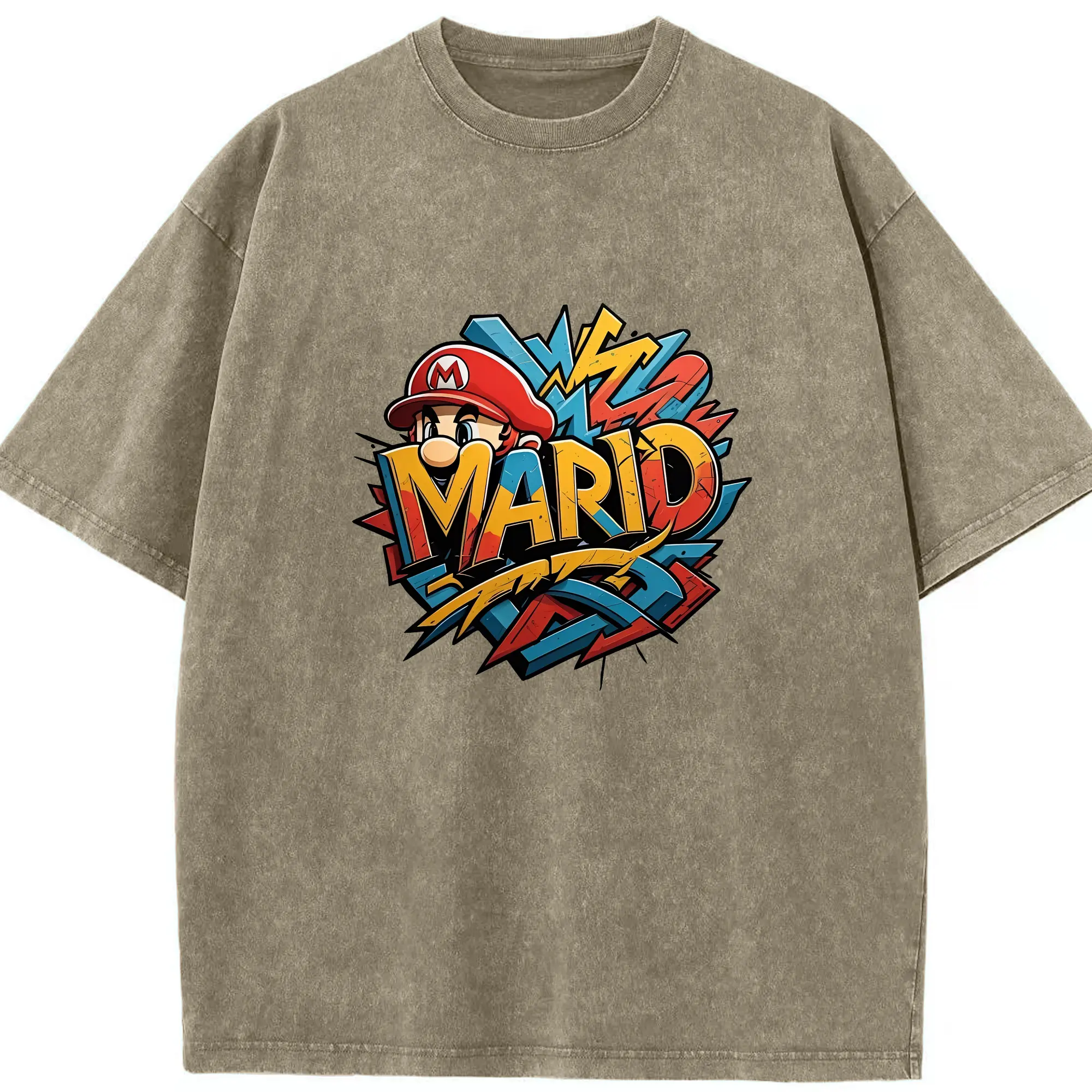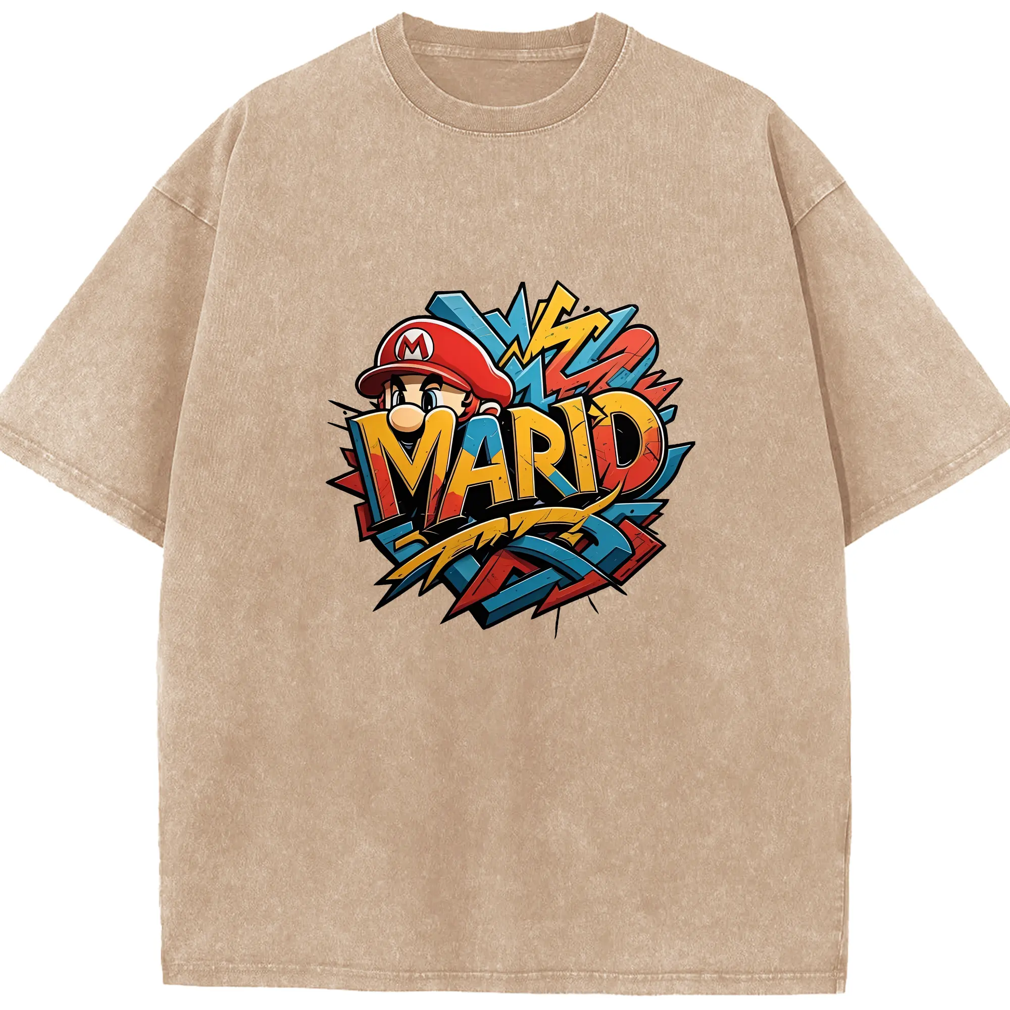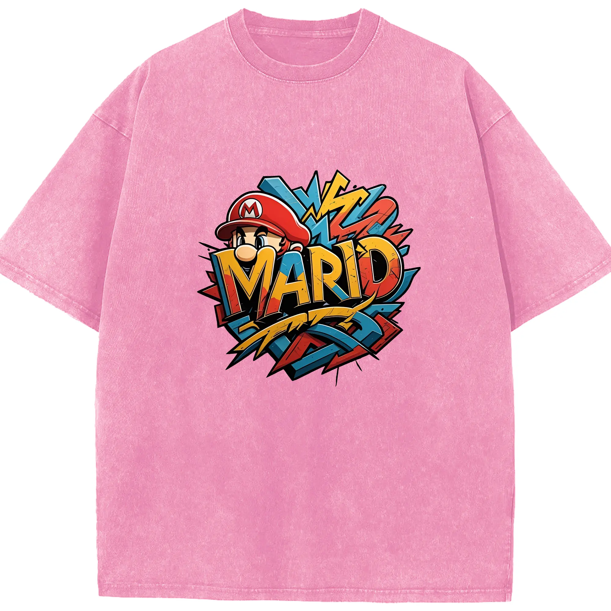 マリオ グッズ マリオ - 綿100% ヴィンテージ風 半袖Tシャツ ・ 背面プリント ・ 柔らか肌触り ・ 通気性 快適 ・ スポーツ カジュアル 外出用