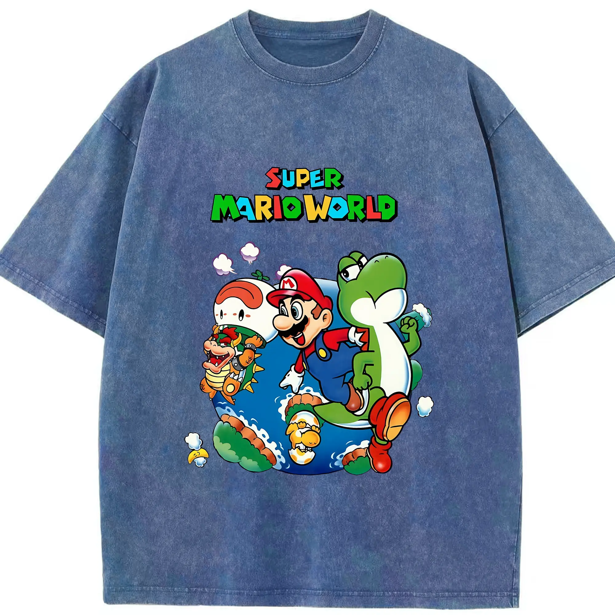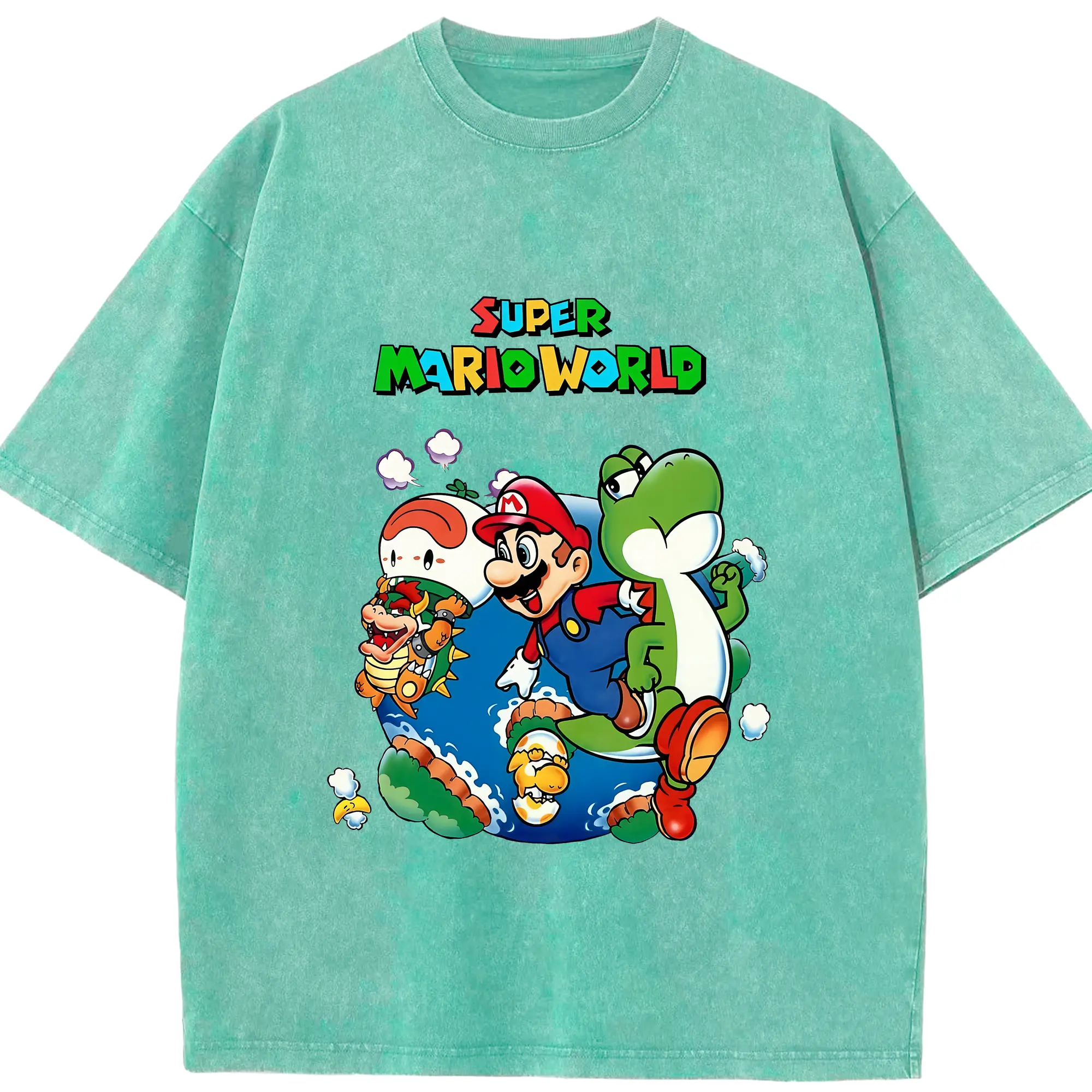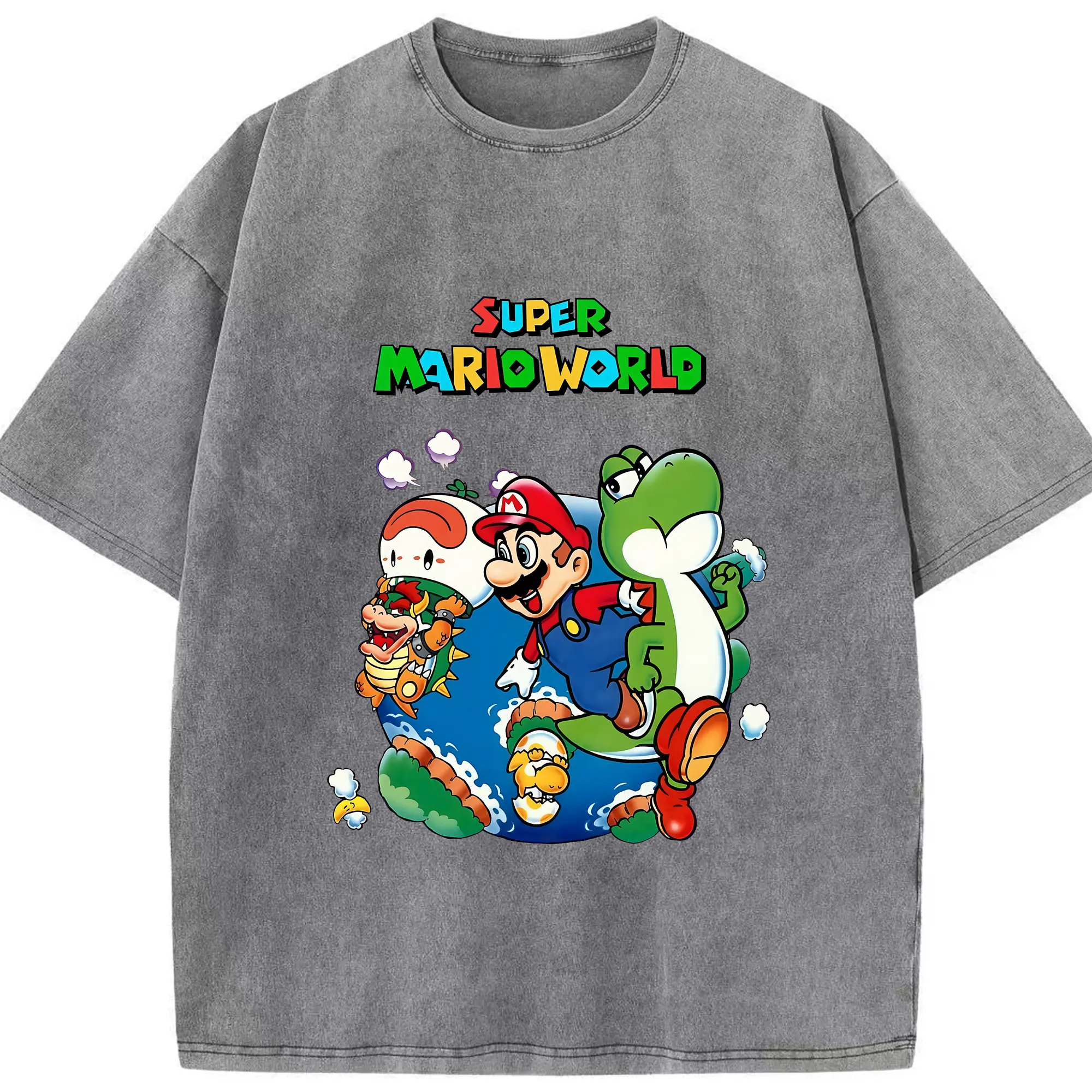 マリオ グッズ マリオ - 綿100% ヴィンテージ風 半袖Tシャツ ・ 背面プリント ・ 柔らか肌触り ・ 通気性 快適 ・ スポーツ カジュアル 外出用