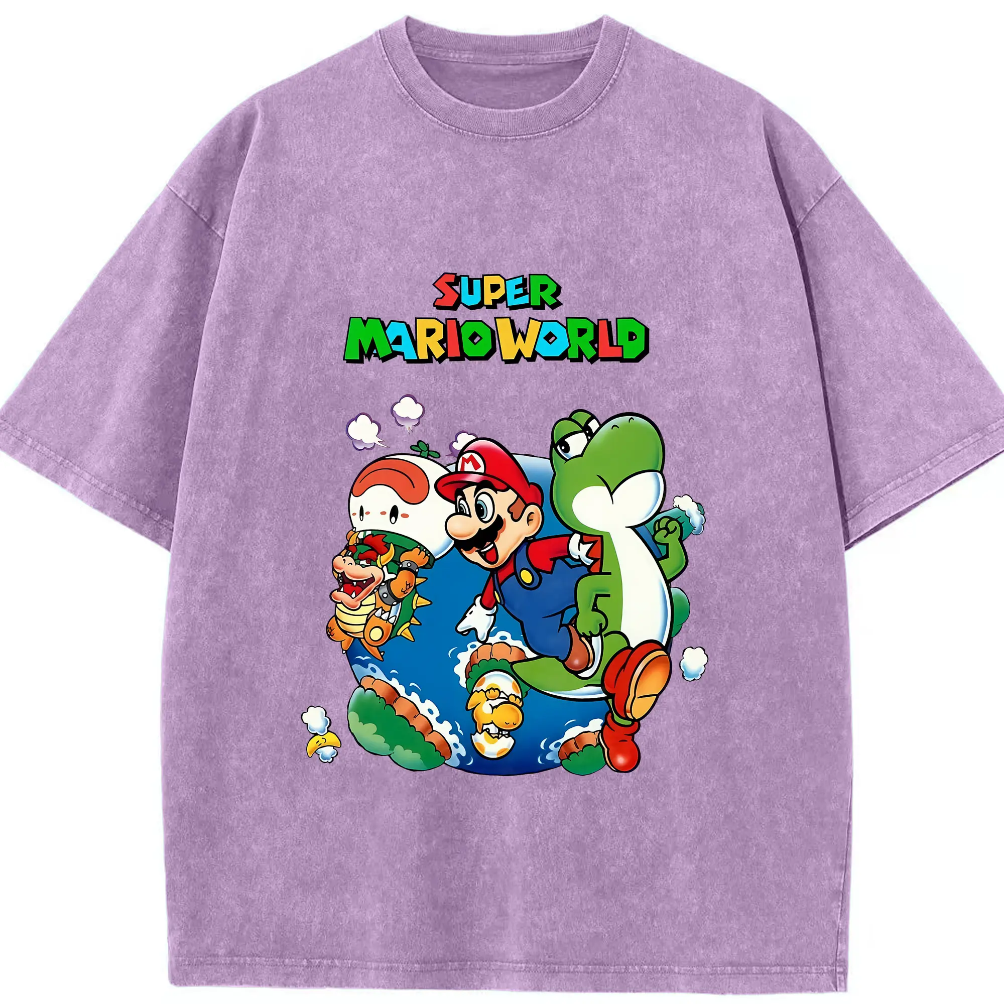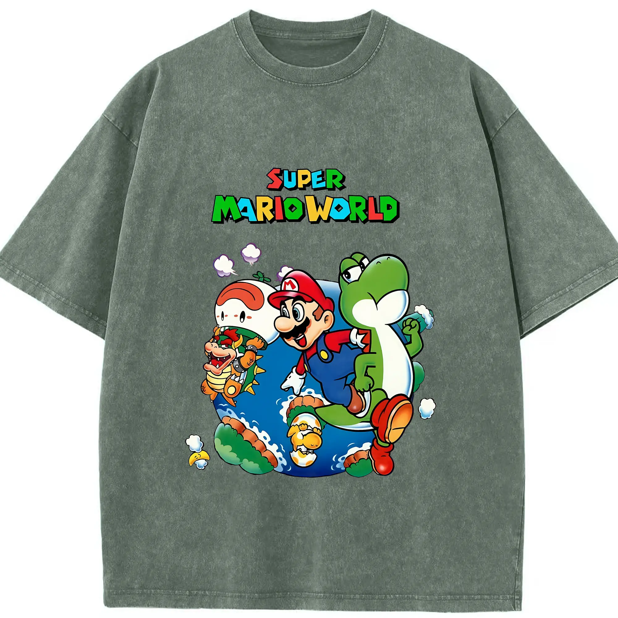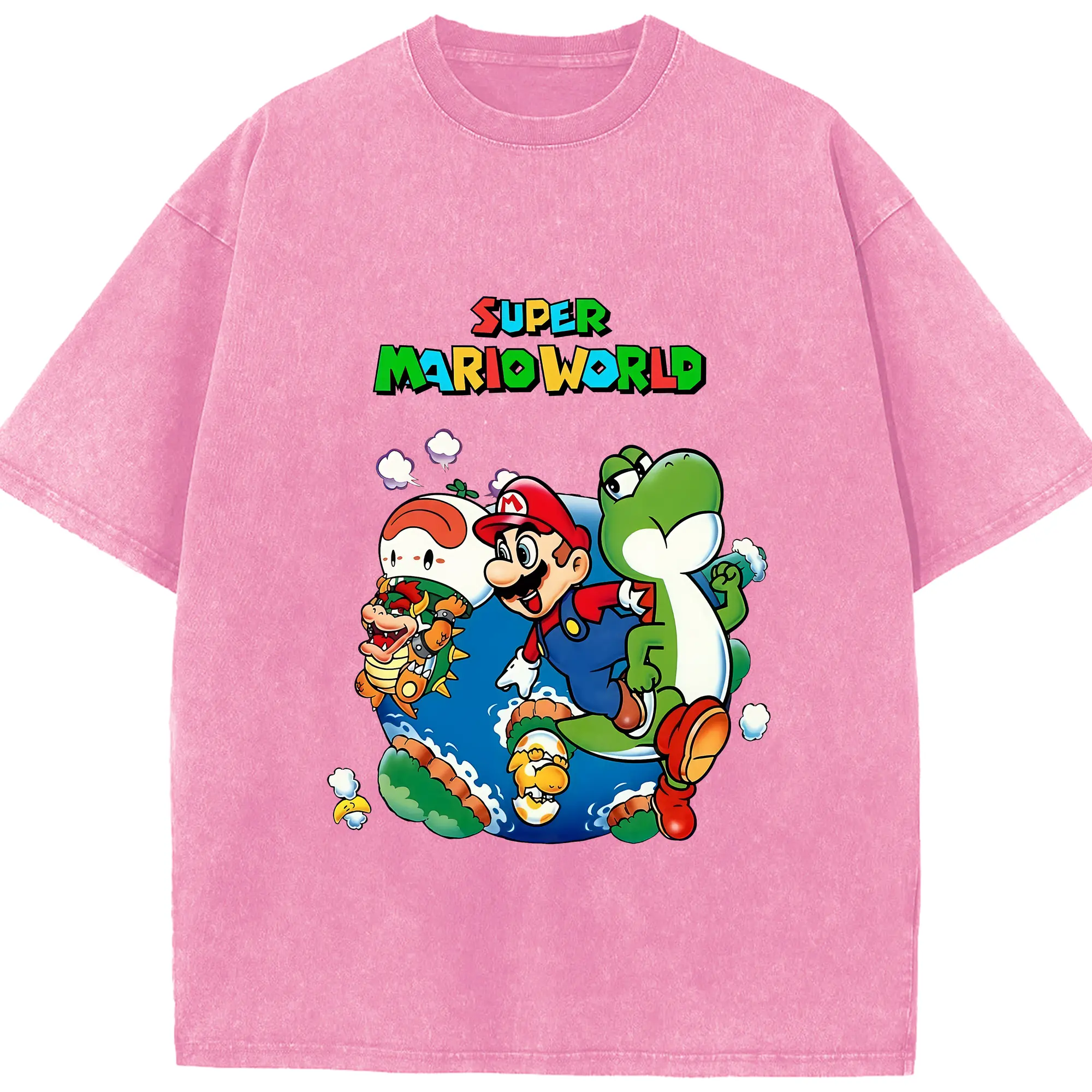 マリオ グッズ マリオ - 綿100% ヴィンテージ風 半袖Tシャツ ・ 背面プリント ・ 柔らか肌触り ・ 通気性 快適 ・ スポーツ カジュアル 外出用