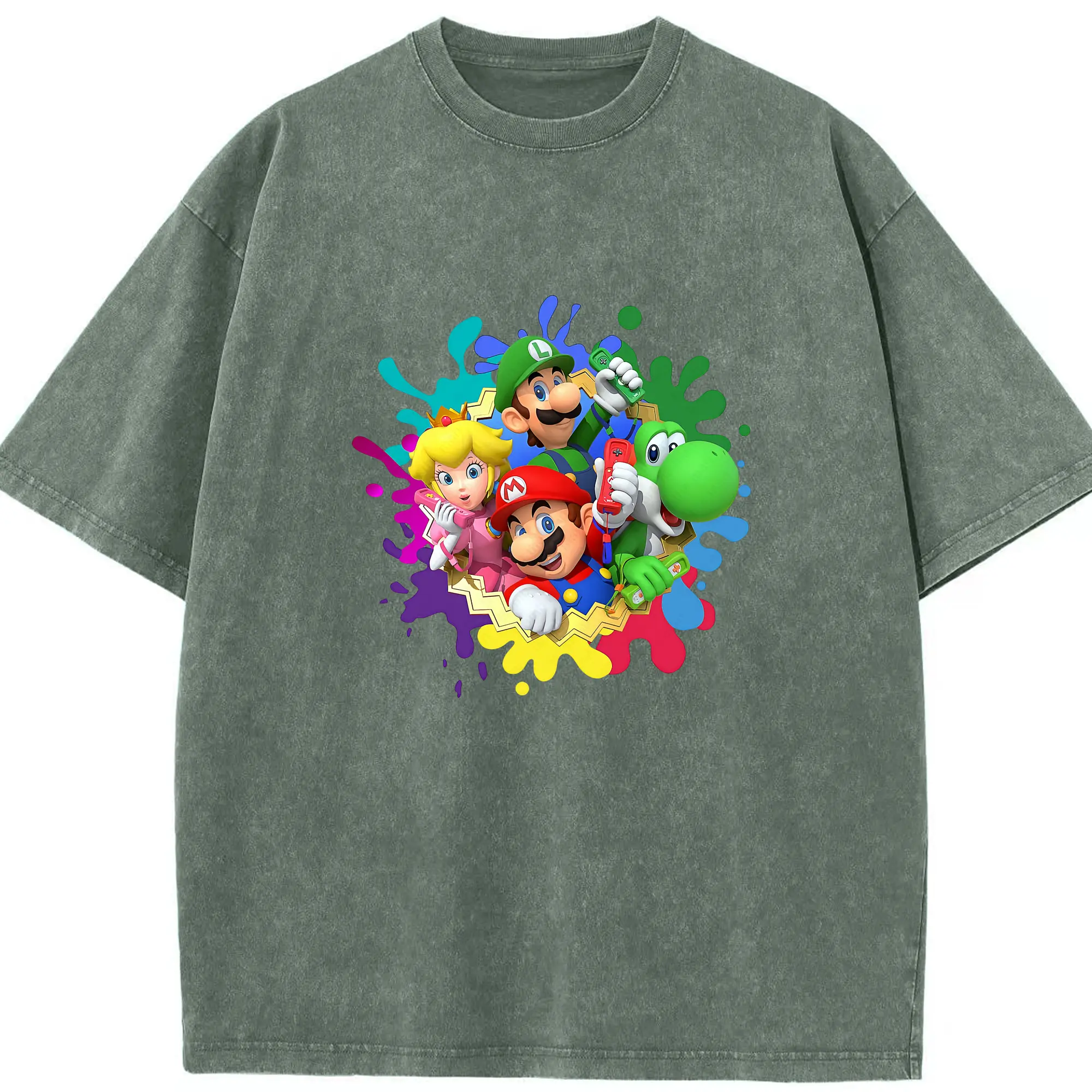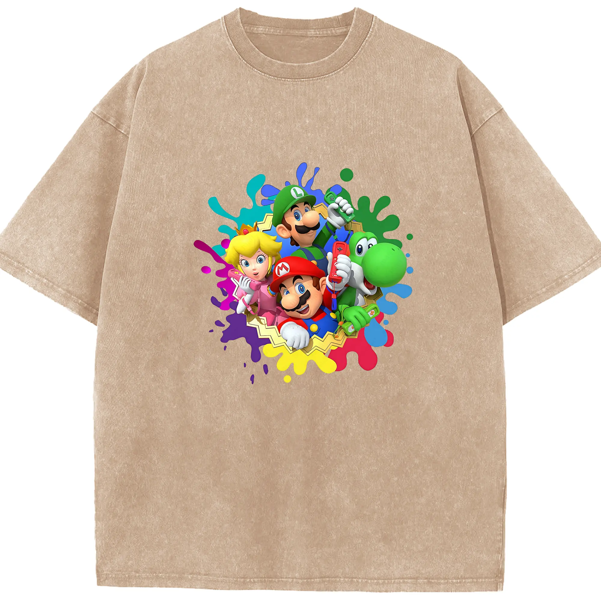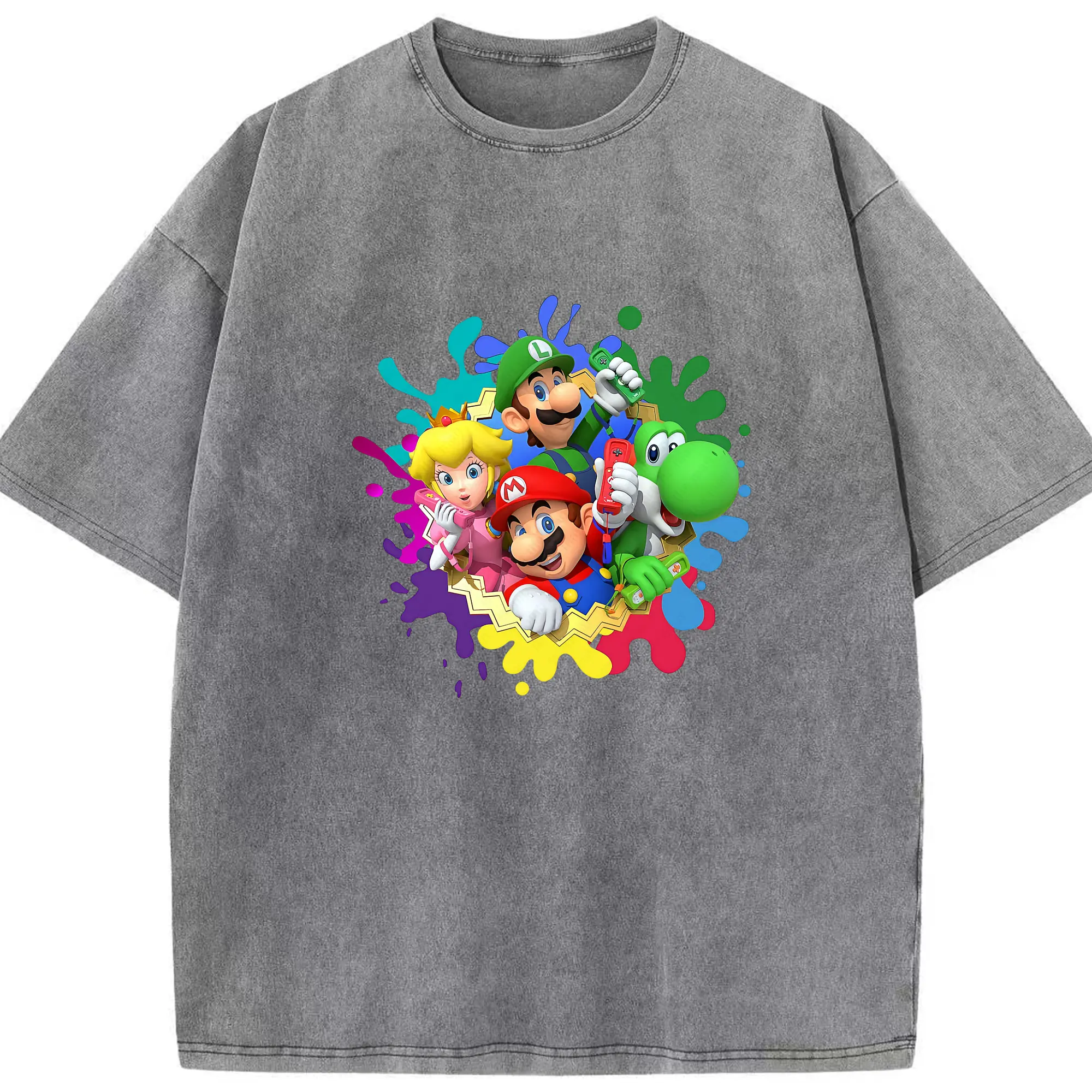 マリオ グッズ マリオ - 綿100% ヴィンテージ風 半袖Tシャツ ・ 背面プリント ・ 柔らか肌触り ・ 通気性 快適 ・ スポーツ カジュアル 外出用