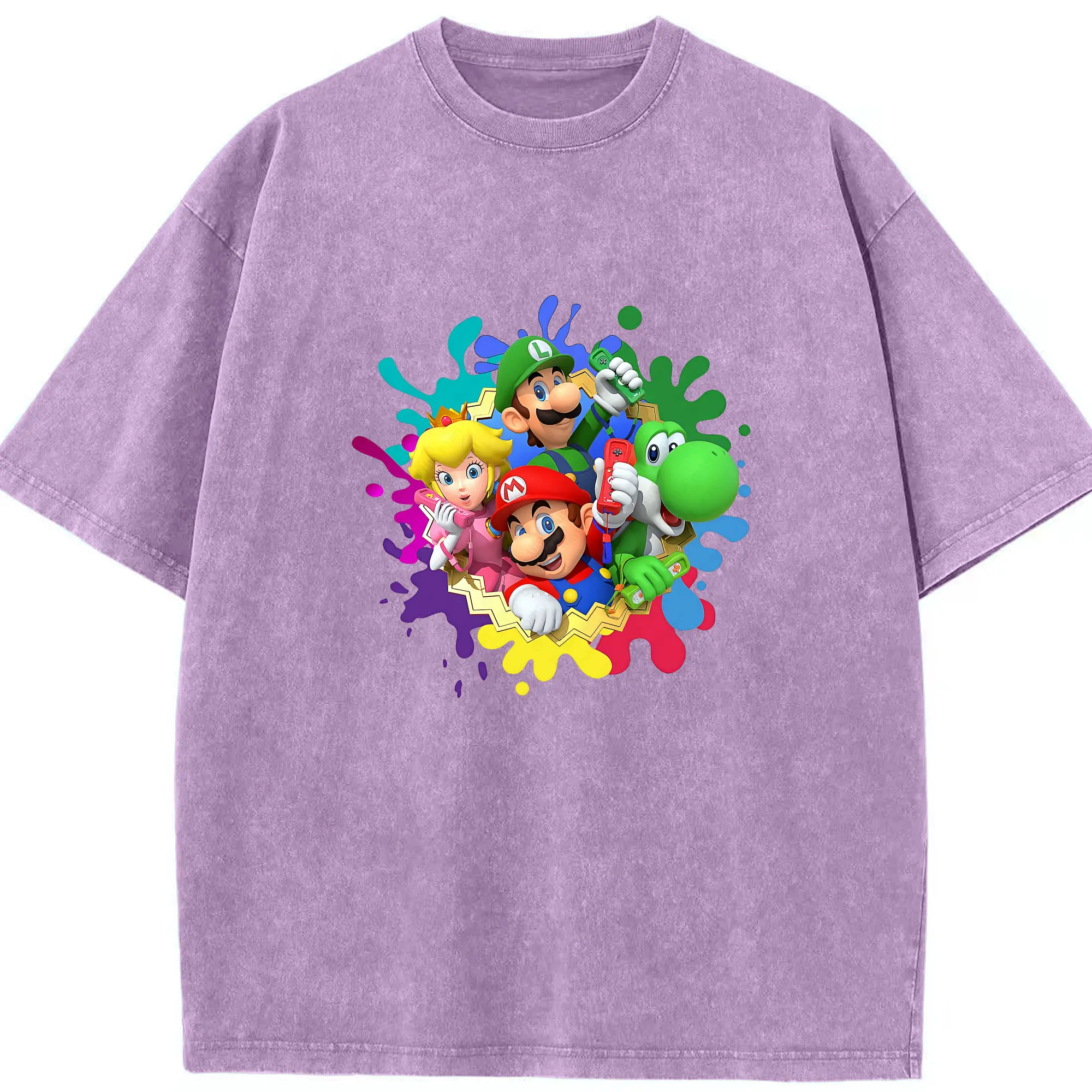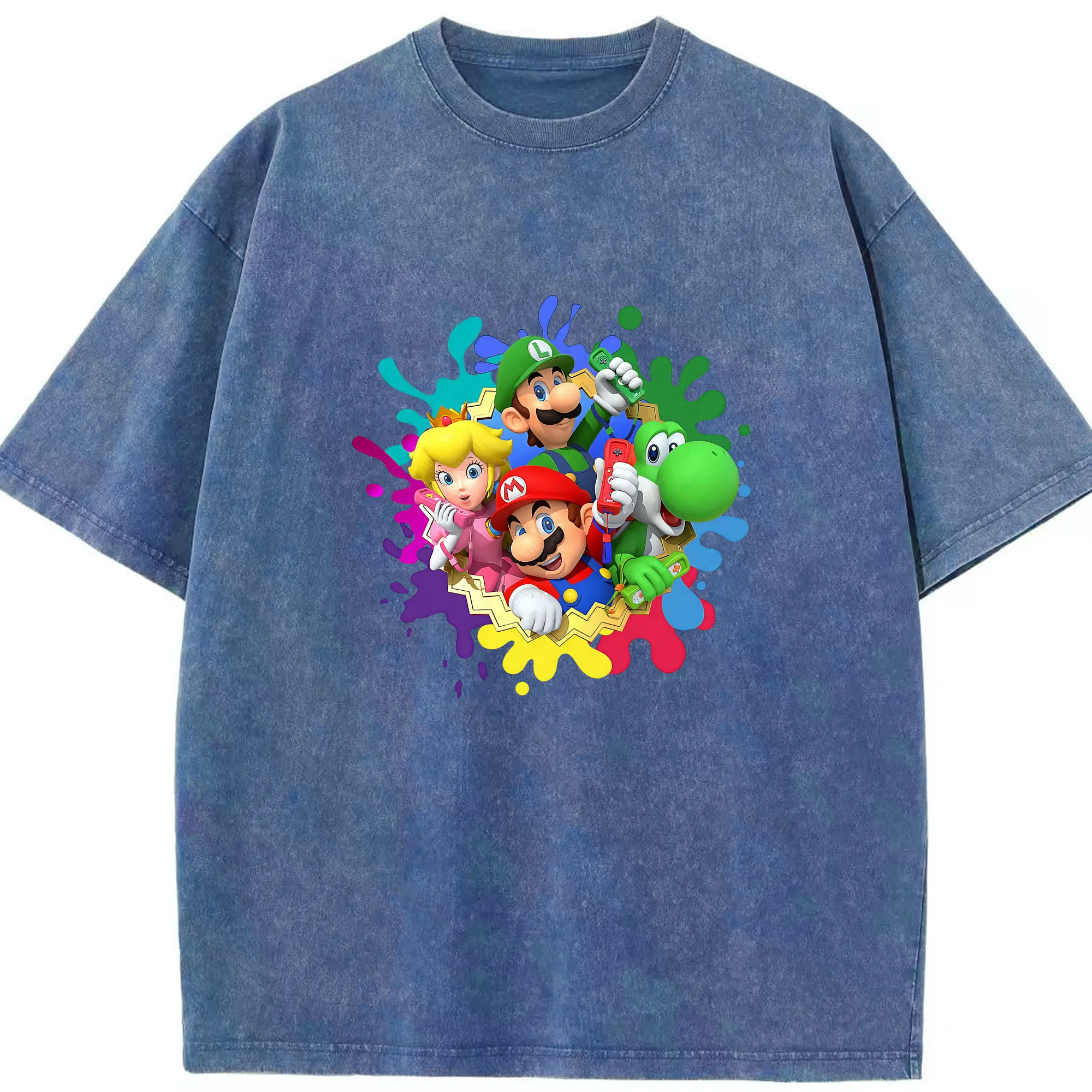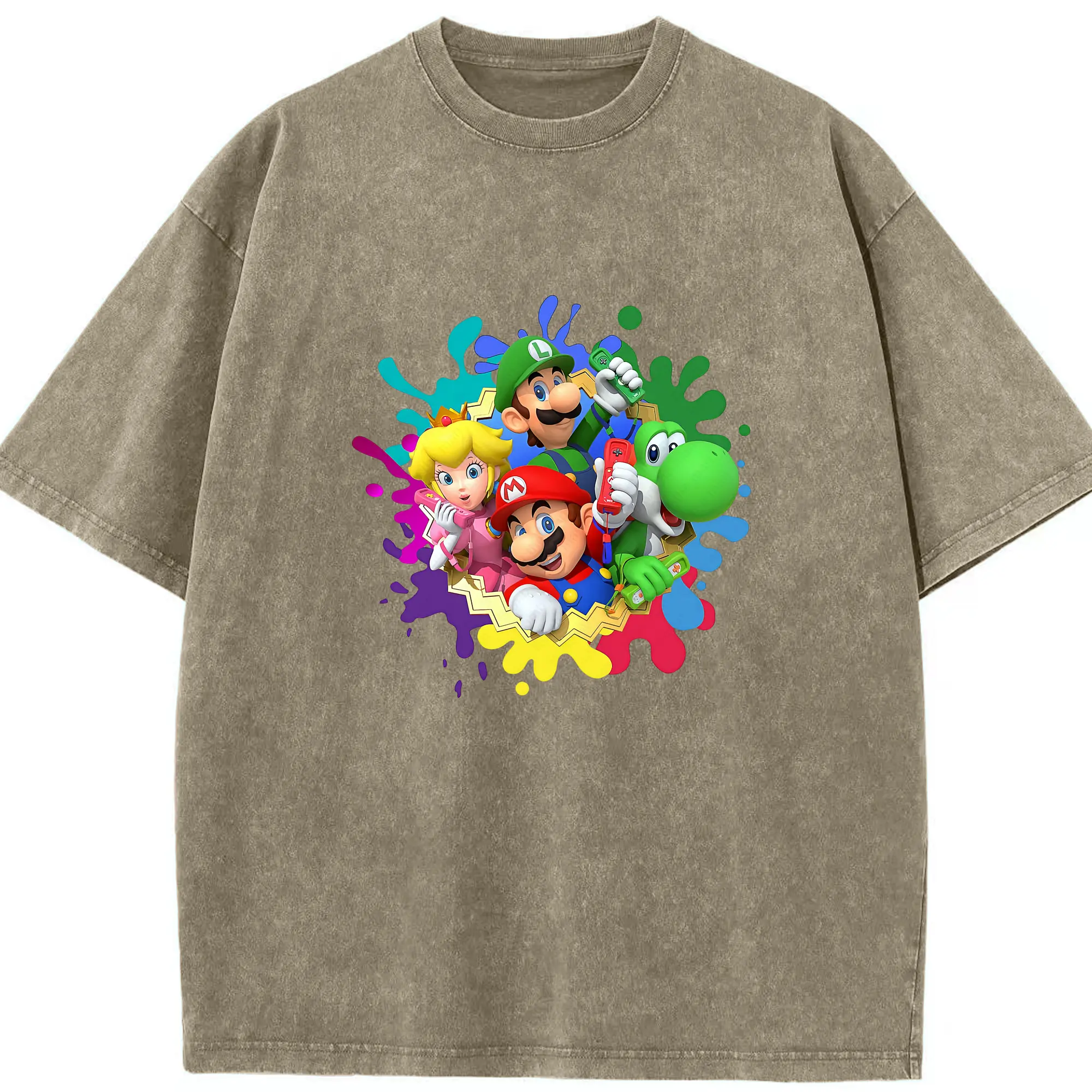 マリオ グッズ マリオ - 綿100% ヴィンテージ風 半袖Tシャツ ・ 背面プリント ・ 柔らか肌触り ・ 通気性 快適 ・ スポーツ カジュアル 外出用