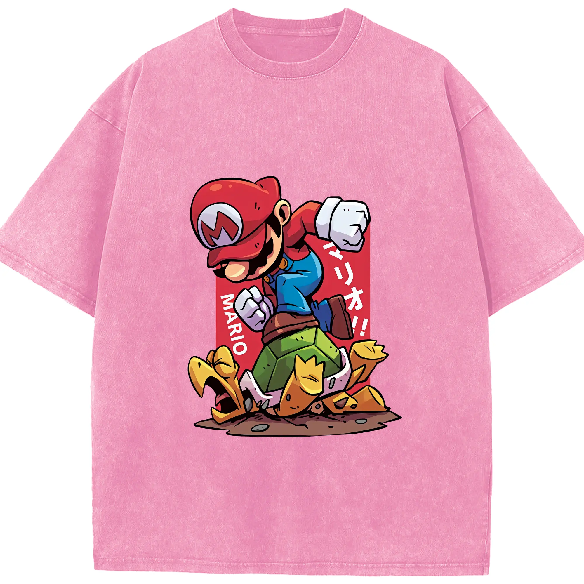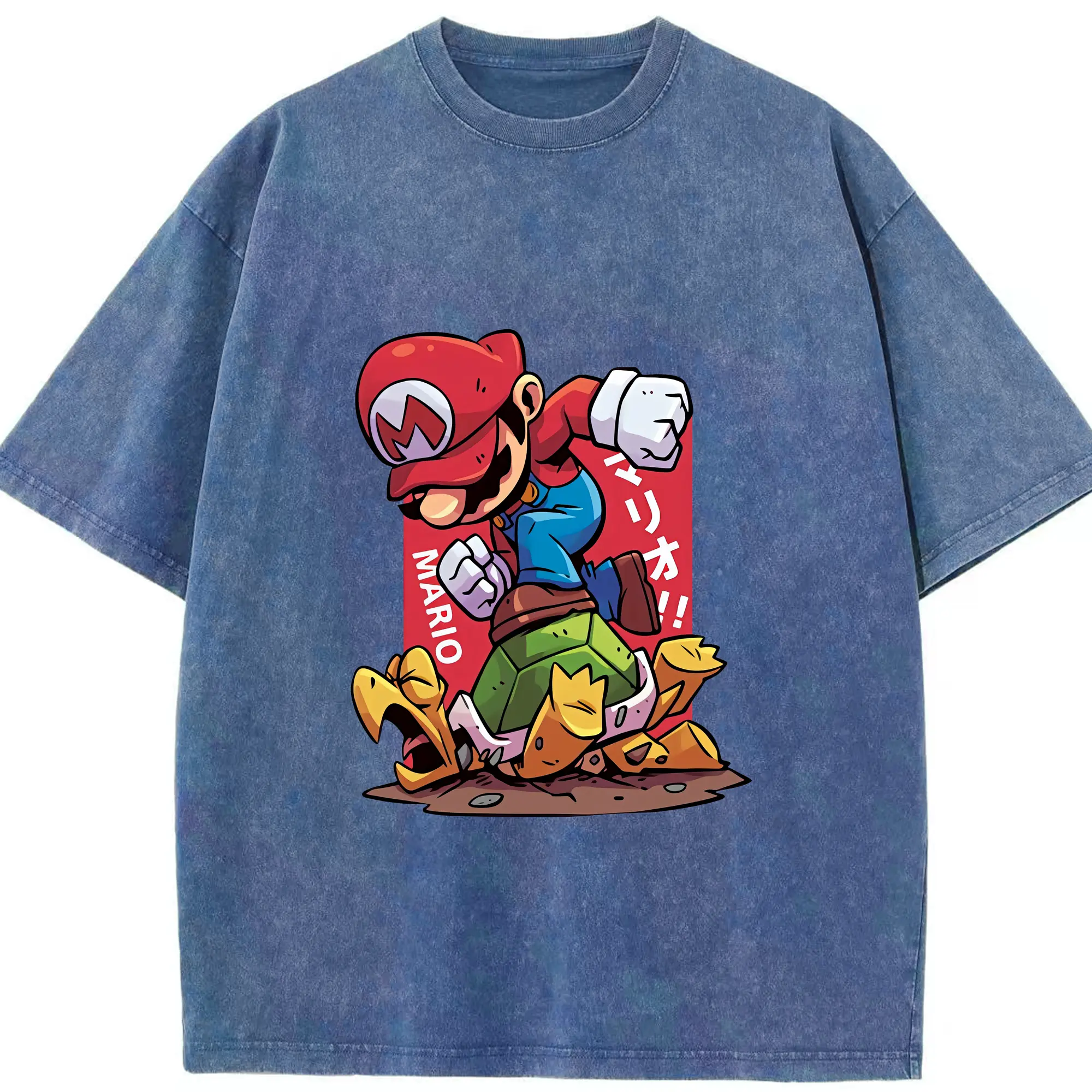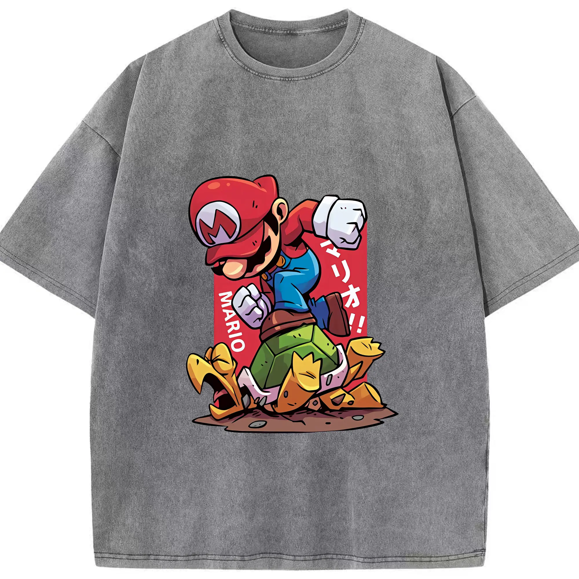 マリオ グッズ マリオ - 綿100% ヴィンテージ風 半袖Tシャツ ・ 背面プリント ・ 柔らか肌触り ・ 通気性 快適 ・ スポーツ カジュアル 外出用