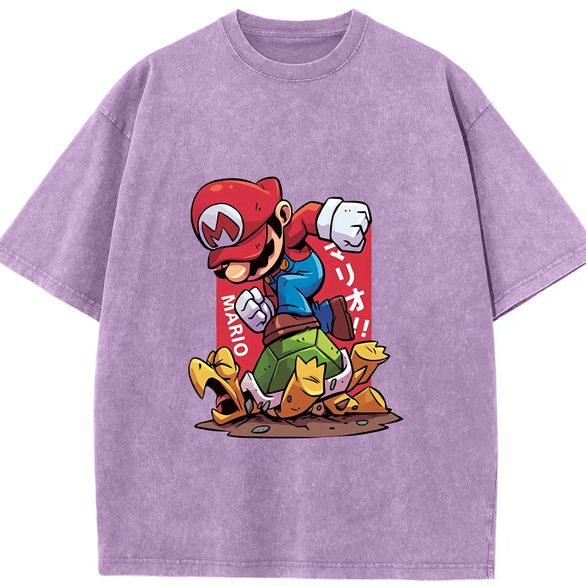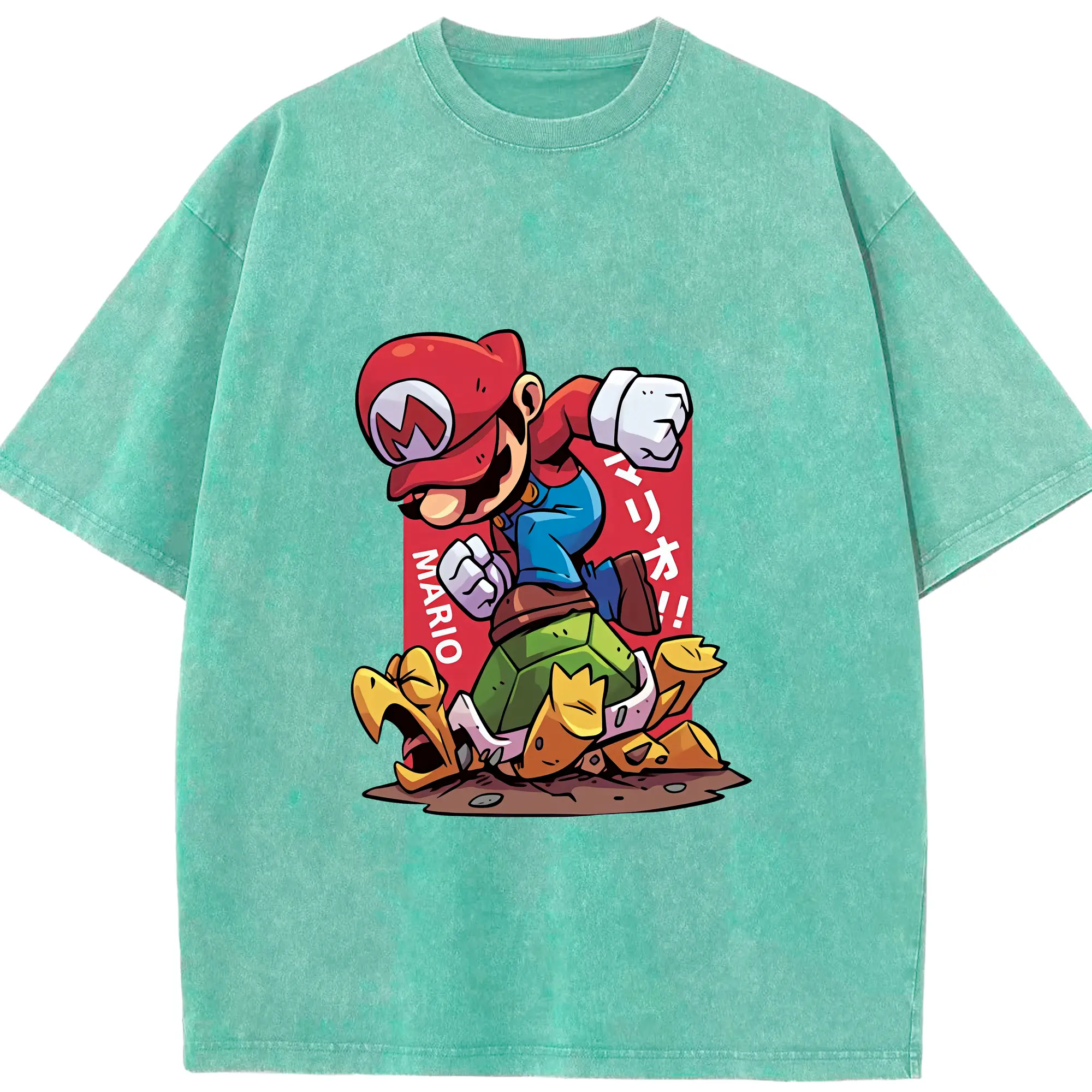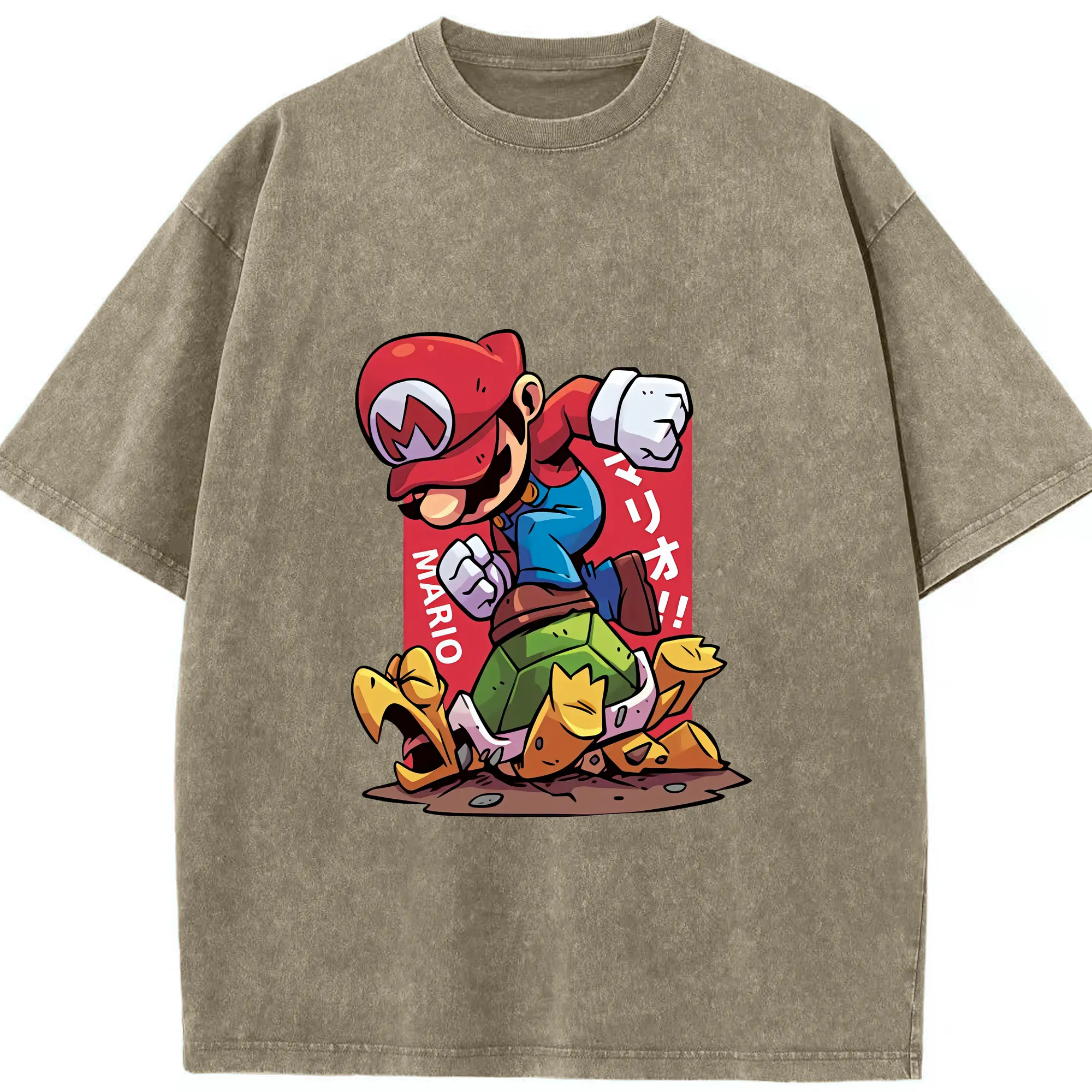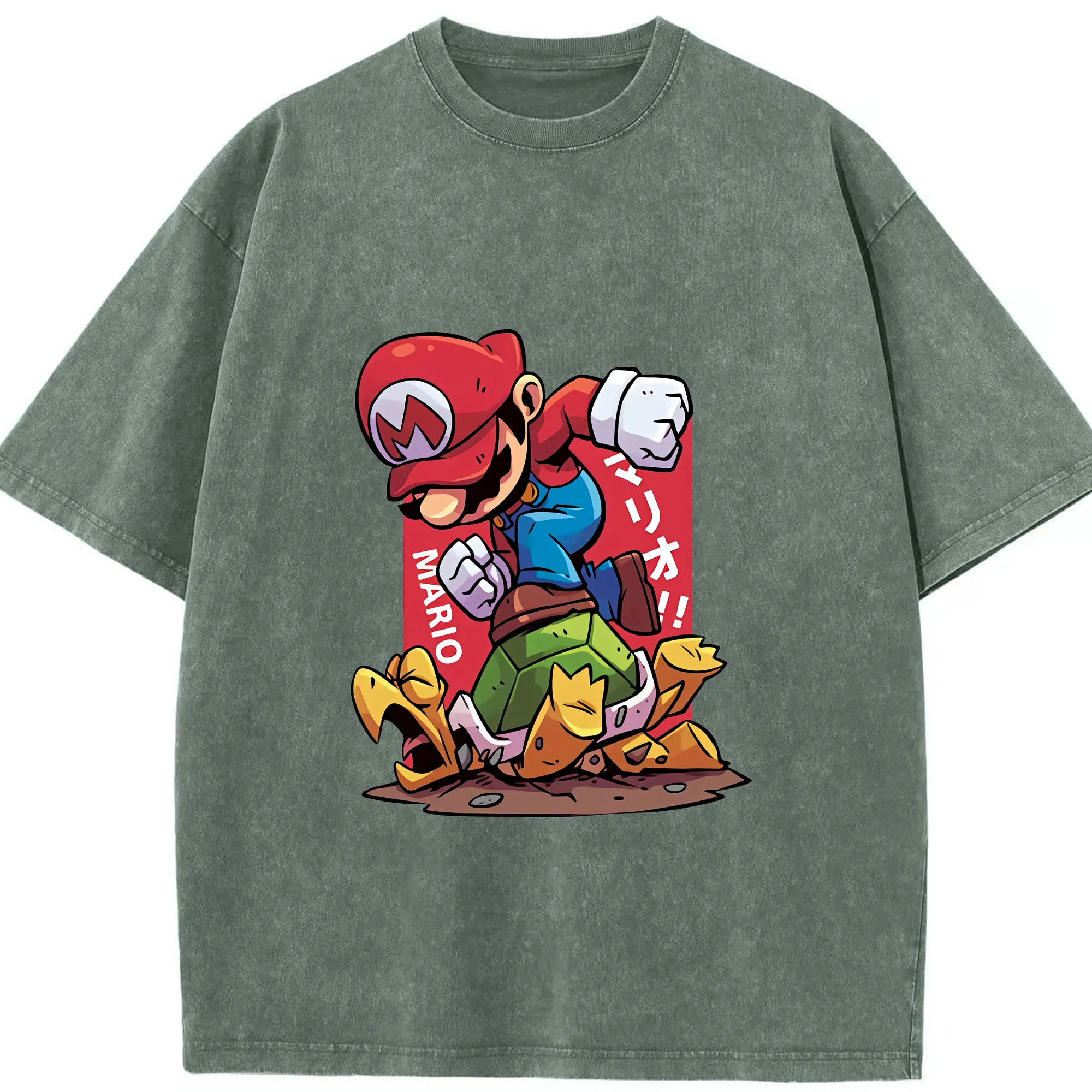 マリオ グッズ マリオ - 綿100% ヴィンテージ風 半袖Tシャツ ・ 背面プリント ・ 柔らか肌触り ・ 通気性 快適 ・ スポーツ カジュアル 外出用