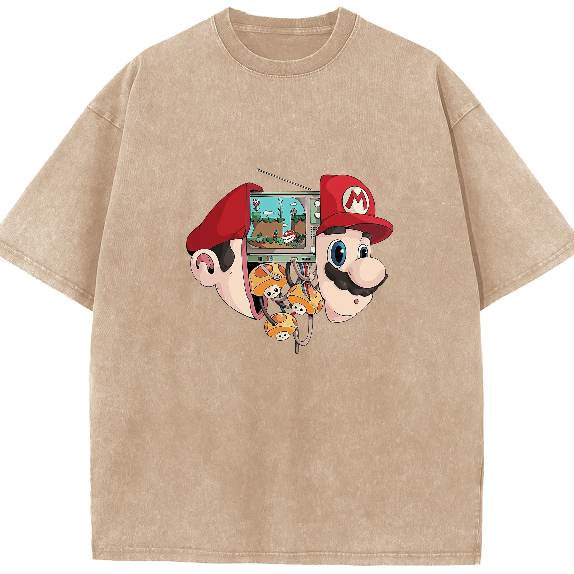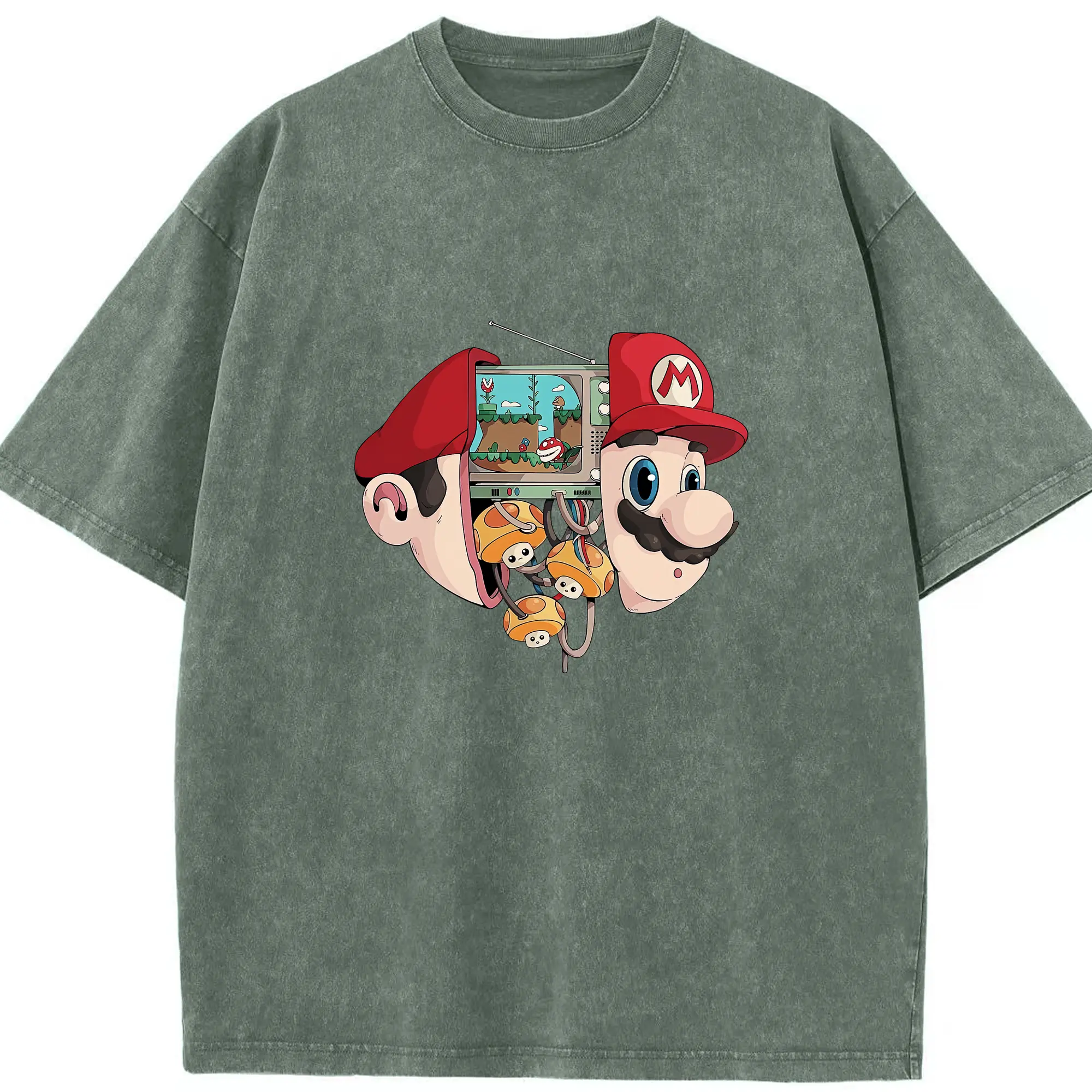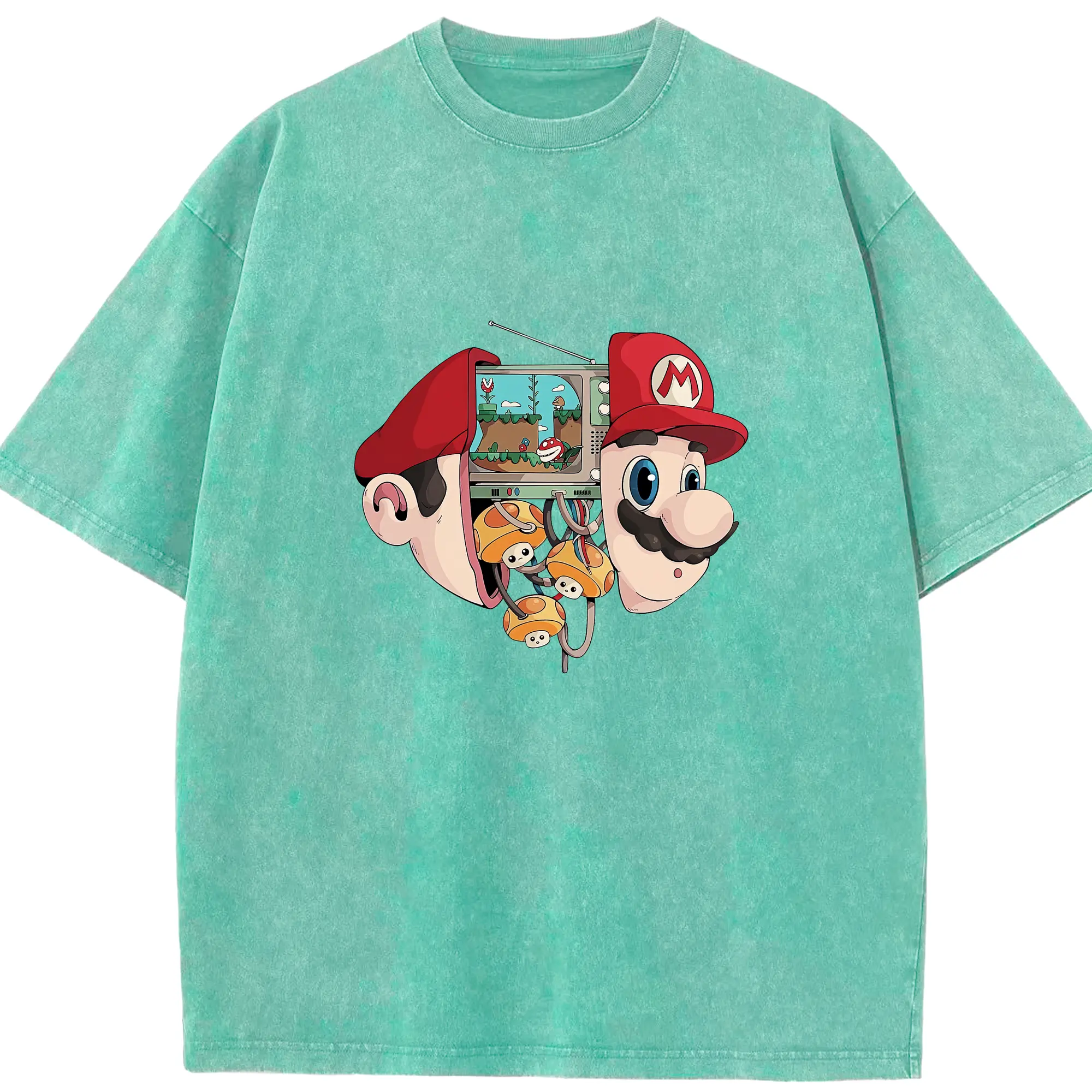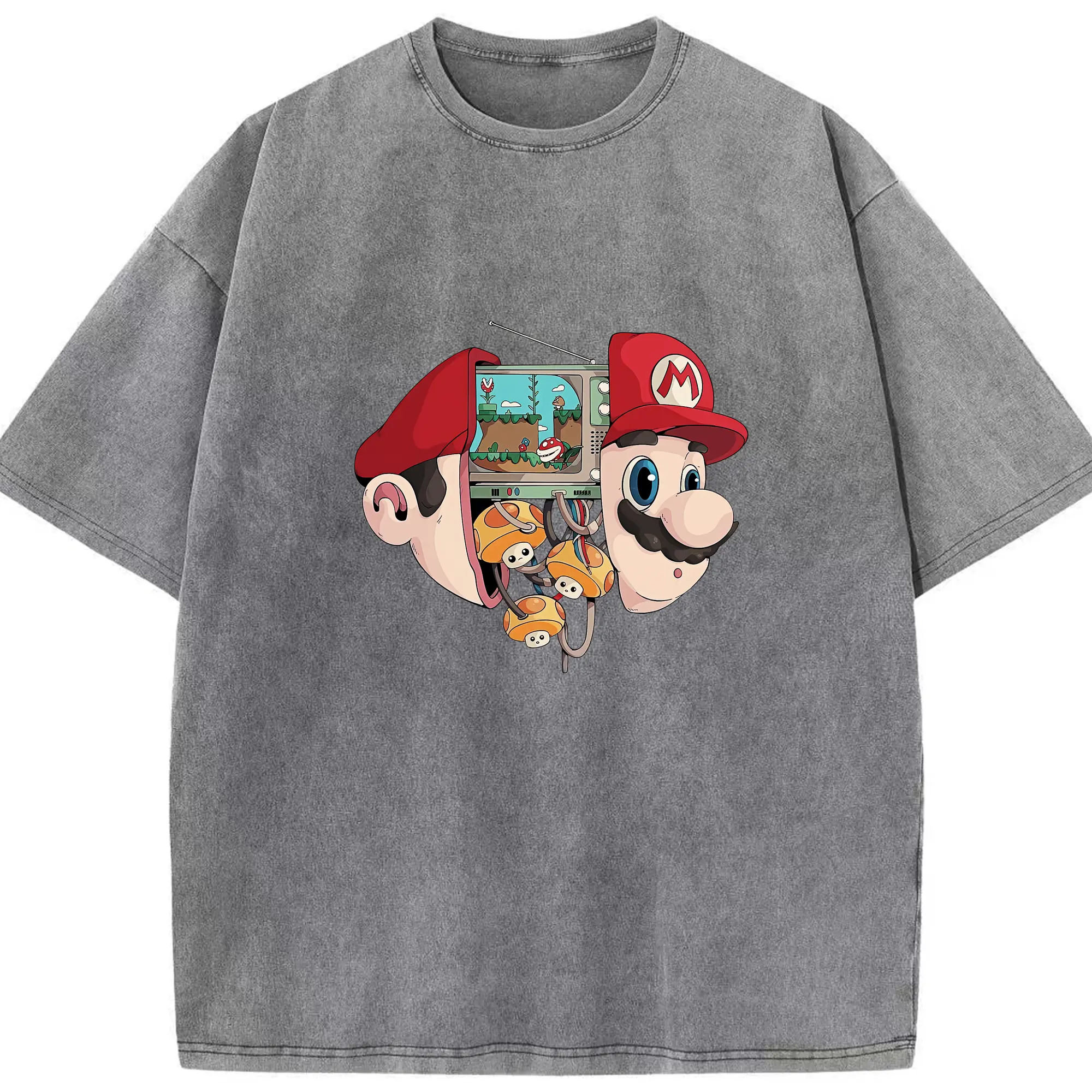 マリオ グッズ マリオ - 綿100% ヴィンテージ風 半袖Tシャツ ・ 背面プリント ・ 柔らか肌触り ・ 通気性 快適 ・ スポーツ カジュアル 外出用