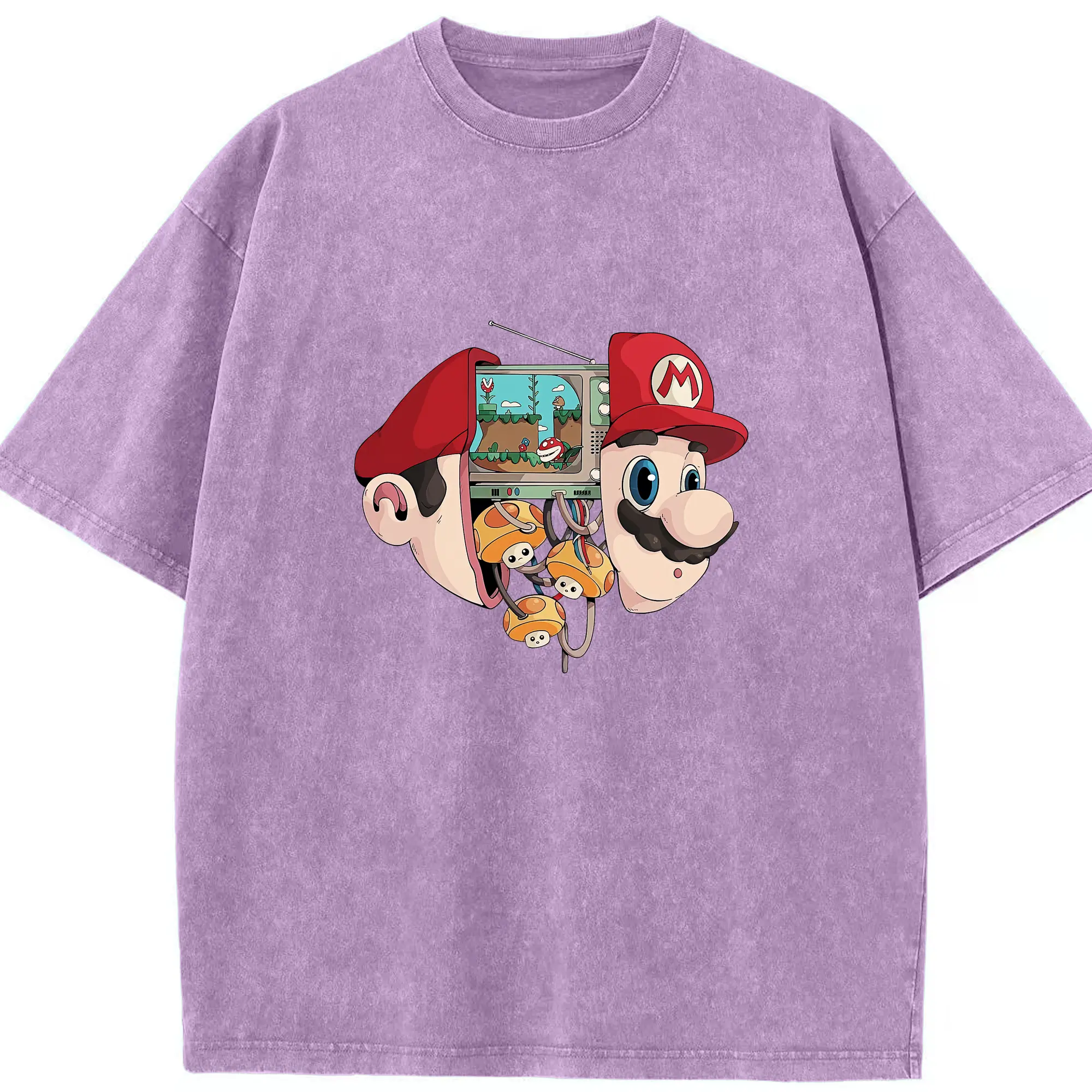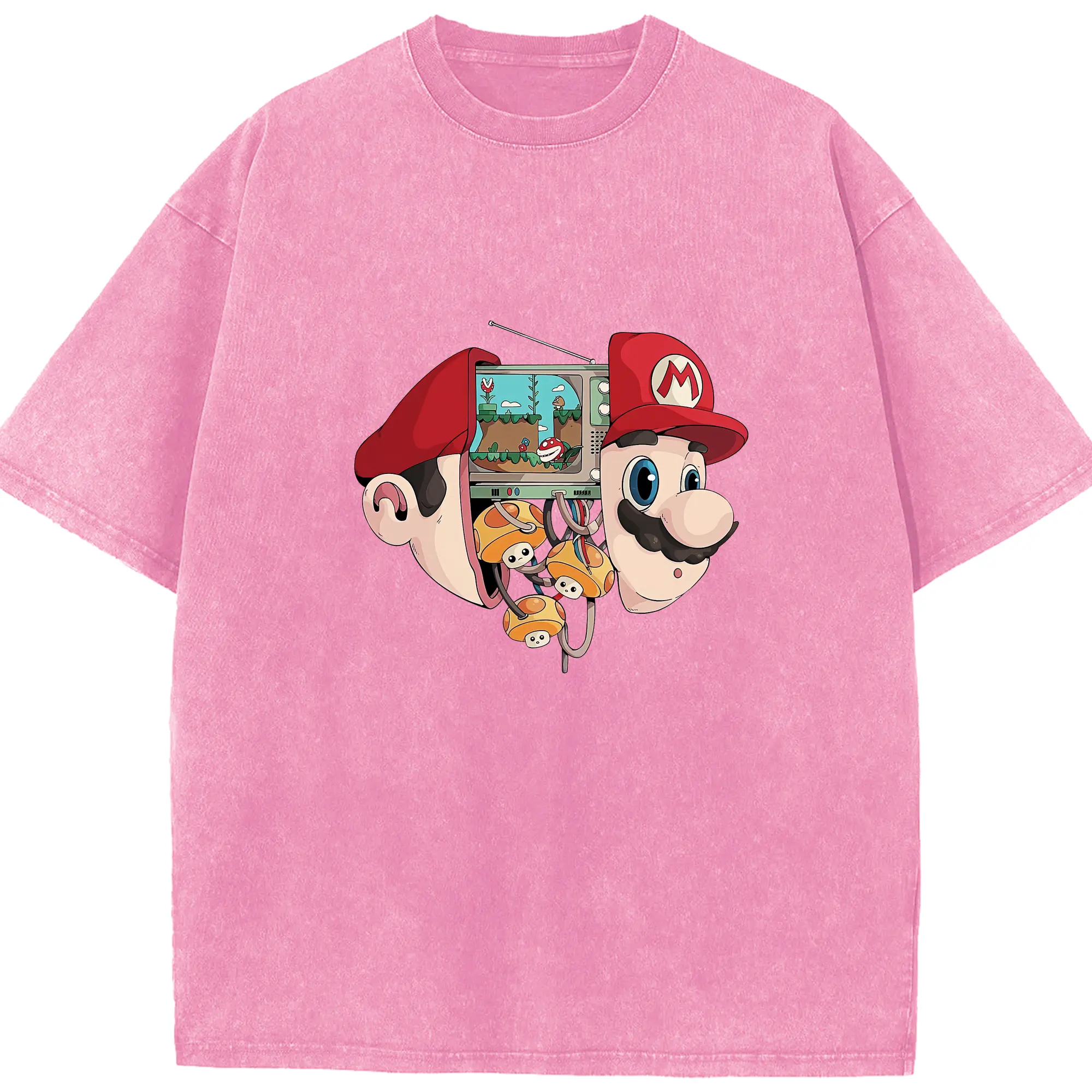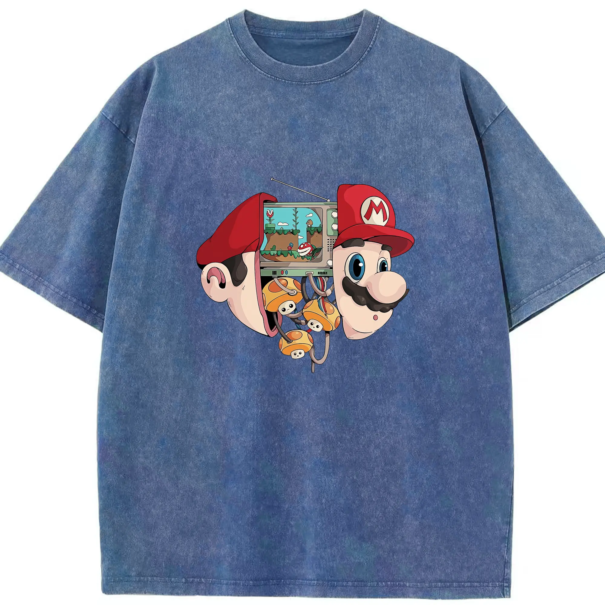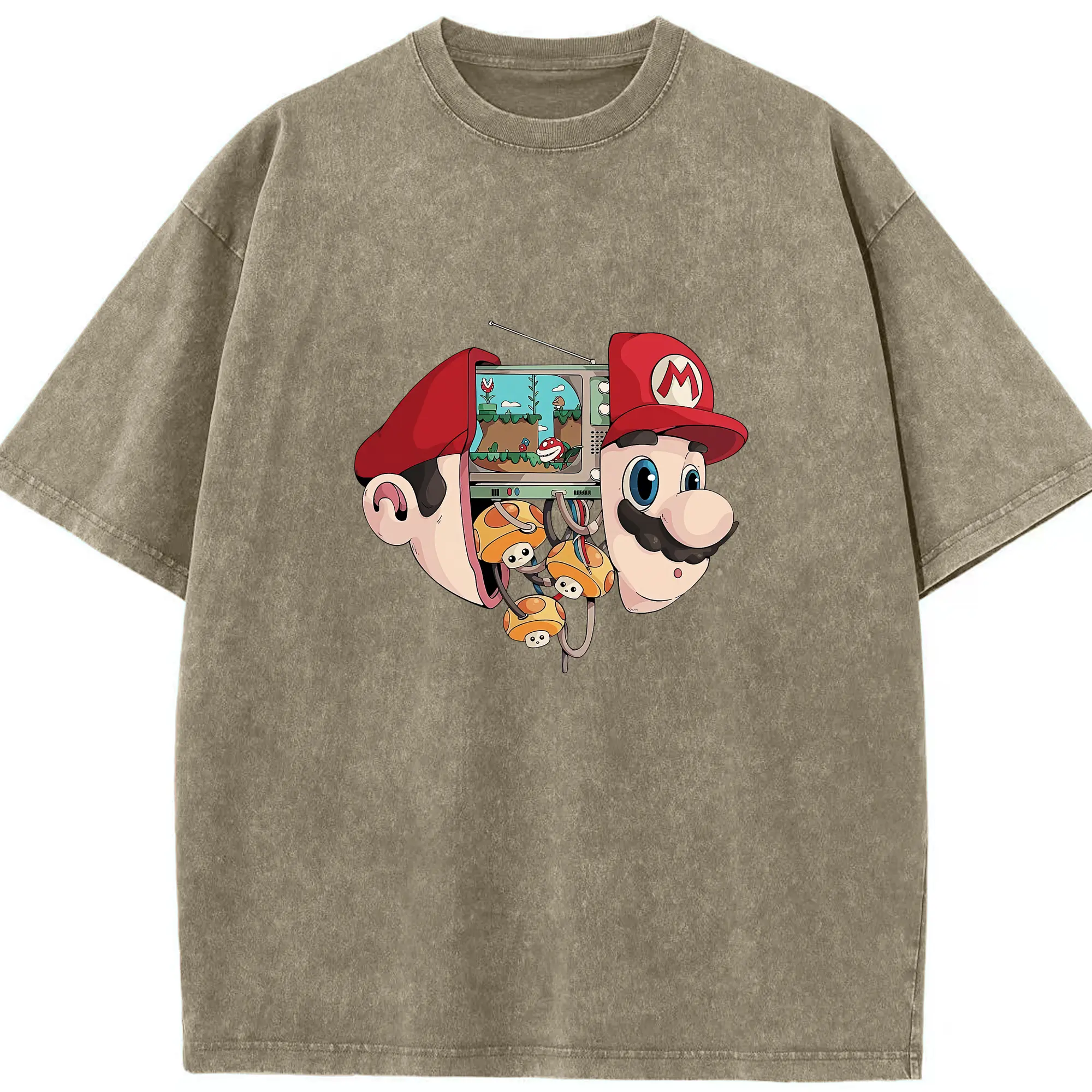 マリオ グッズ マリオ - 綿100% ヴィンテージ風 半袖Tシャツ ・ 背面プリント ・ 柔らか肌触り ・ 通気性 快適 ・ スポーツ カジュアル 外出用