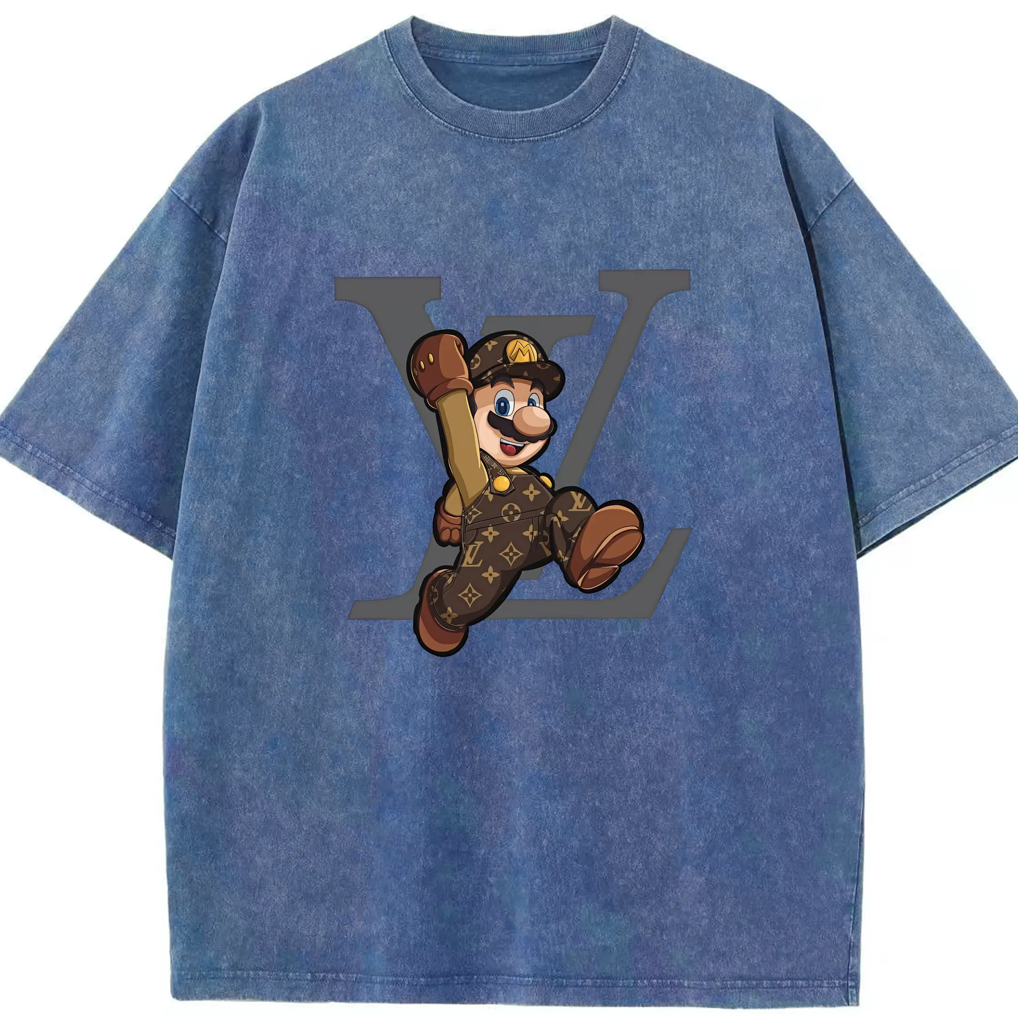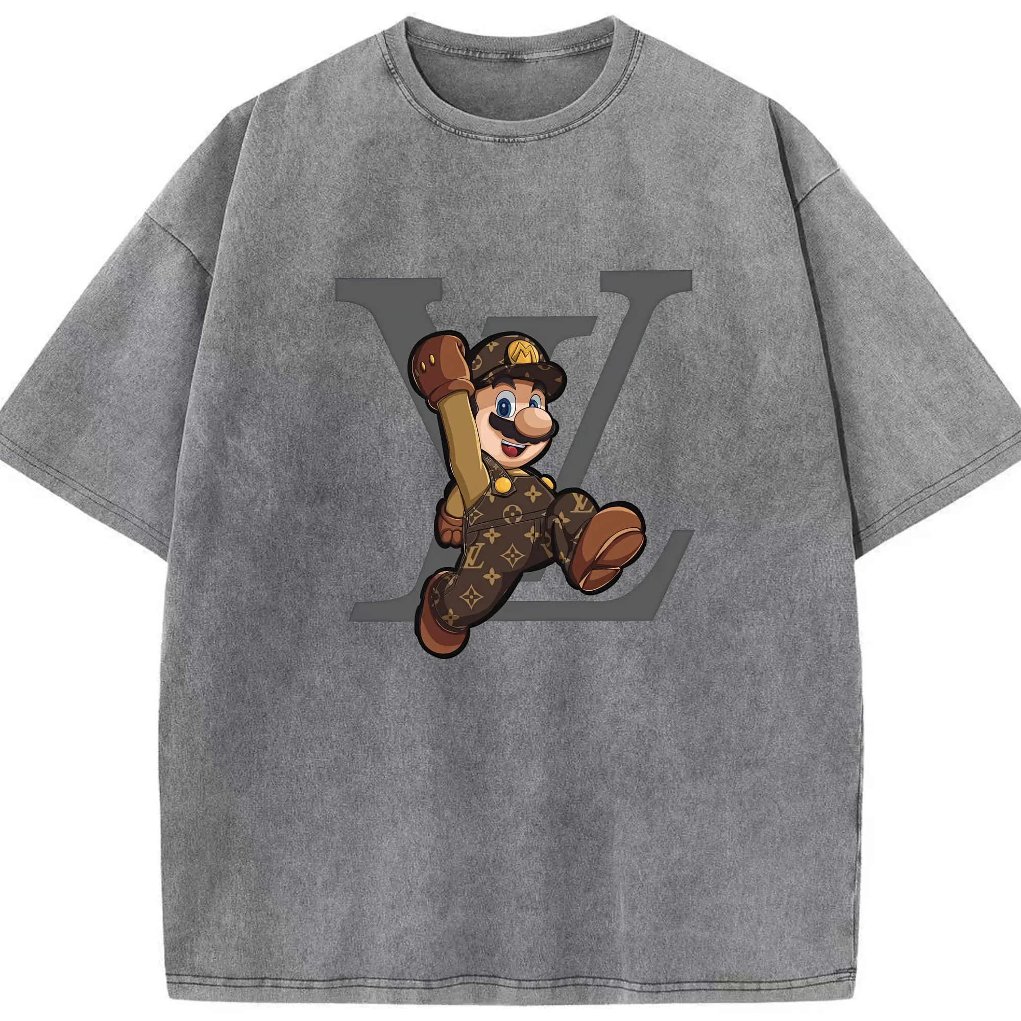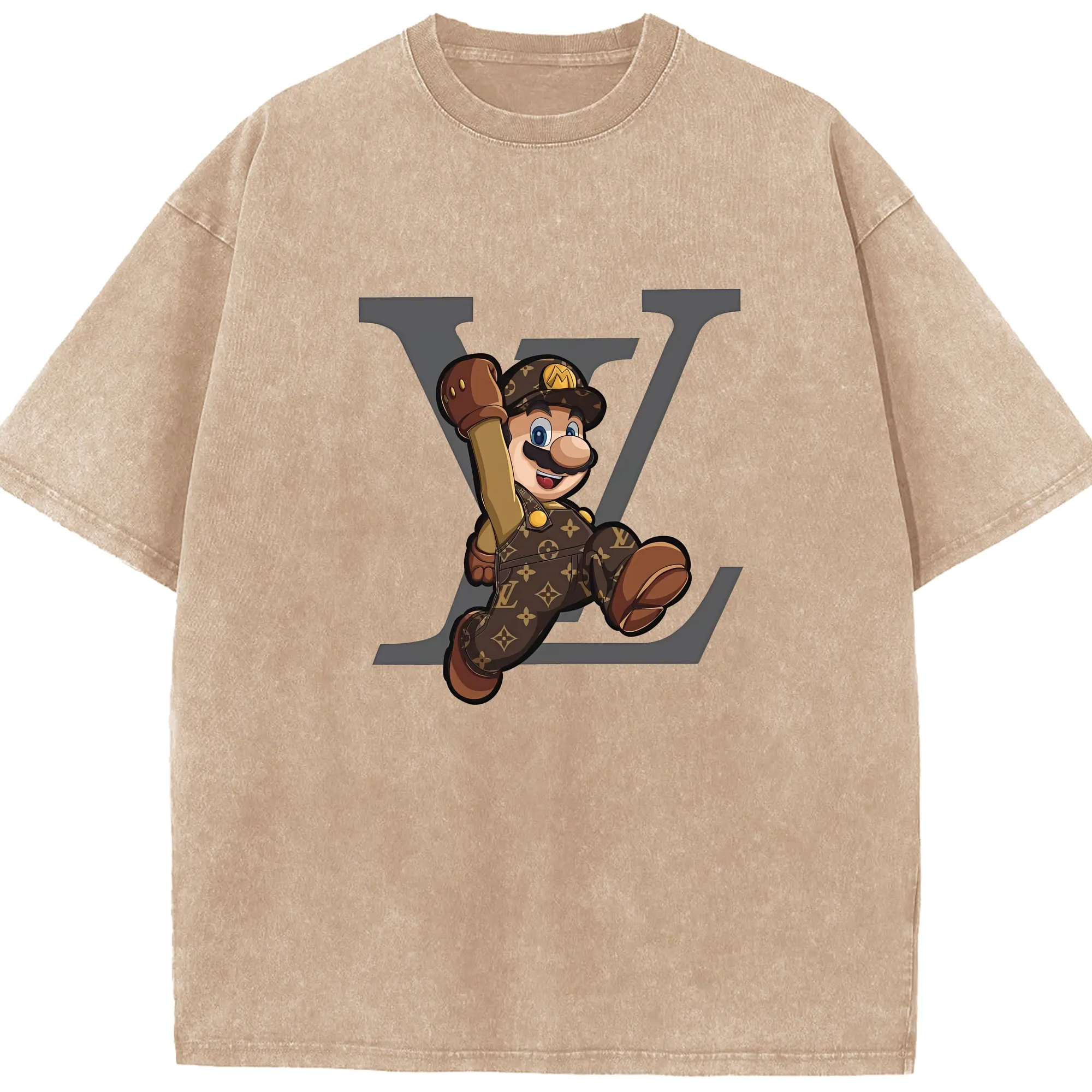 マリオ グッズ マリオ - 綿100% ヴィンテージ風 半袖Tシャツ ・ 背面プリント ・ 柔らか肌触り ・ 通気性 快適 ・ スポーツ カジュアル 外出用