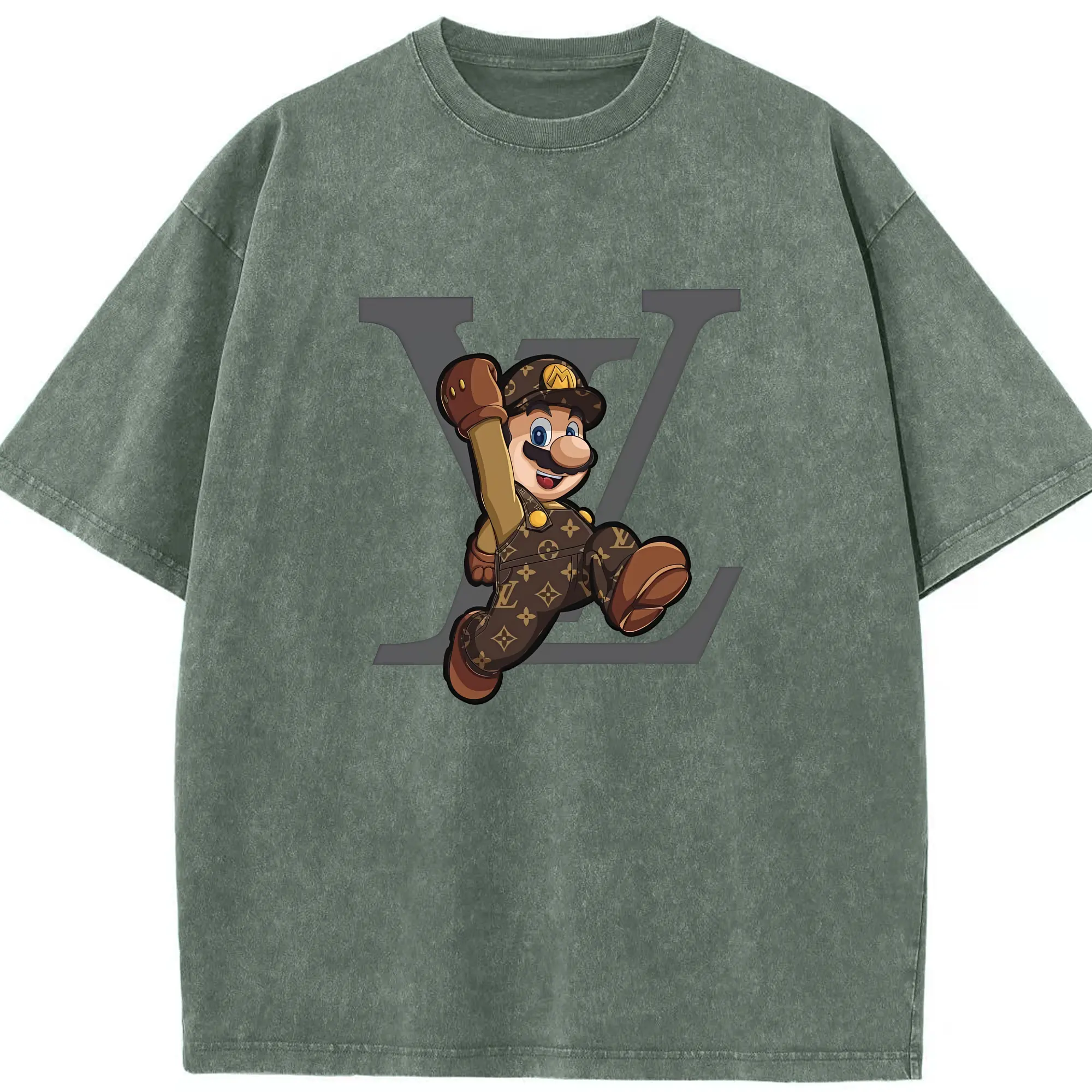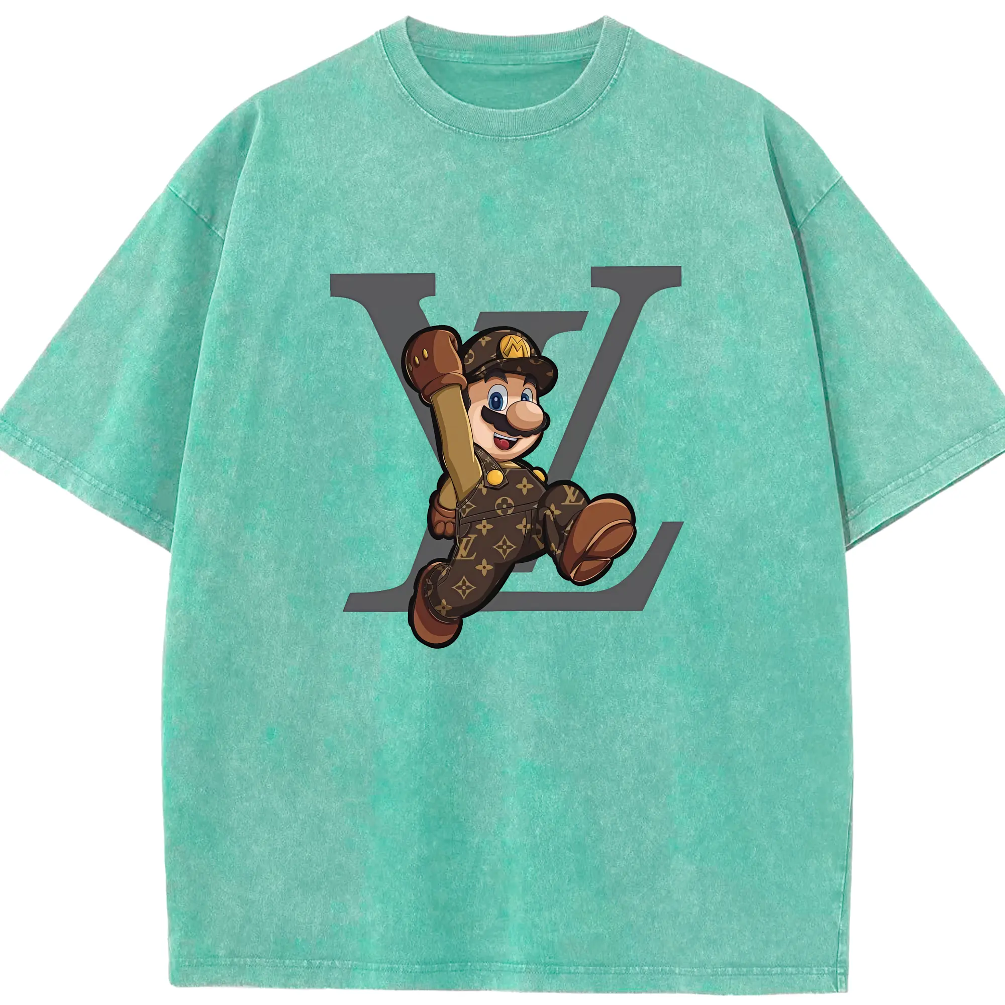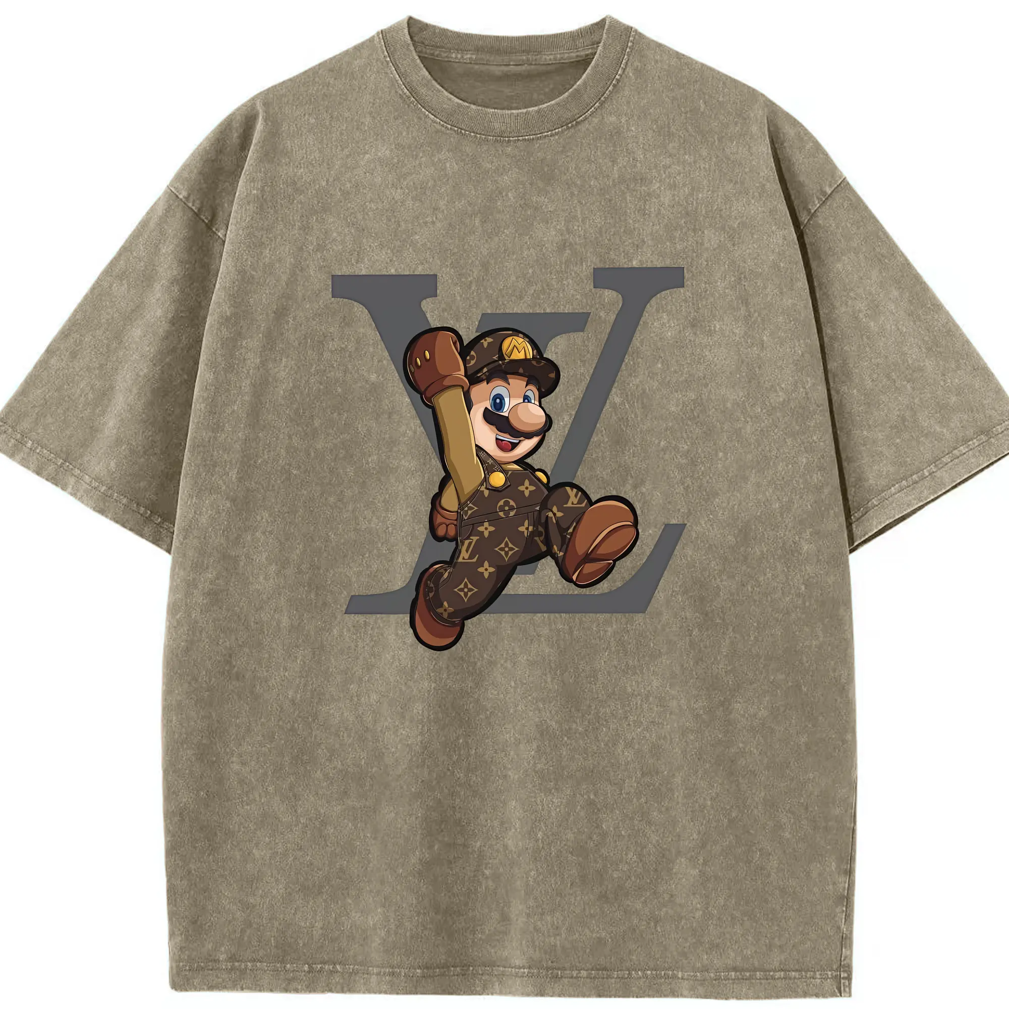 マリオ グッズ マリオ - 綿100% ヴィンテージ風 半袖Tシャツ ・ 背面プリント ・ 柔らか肌触り ・ 通気性 快適 ・ スポーツ カジュアル 外出用
