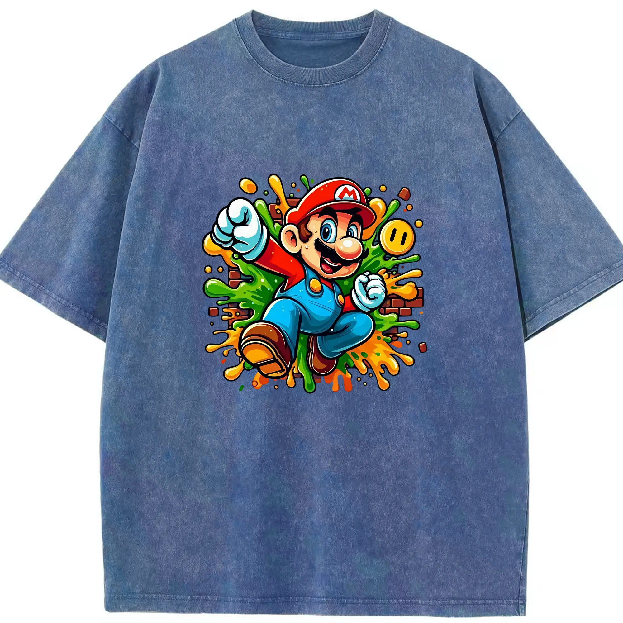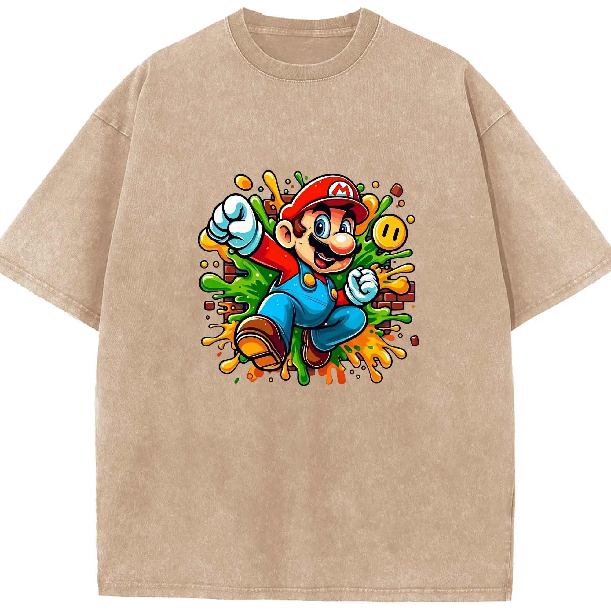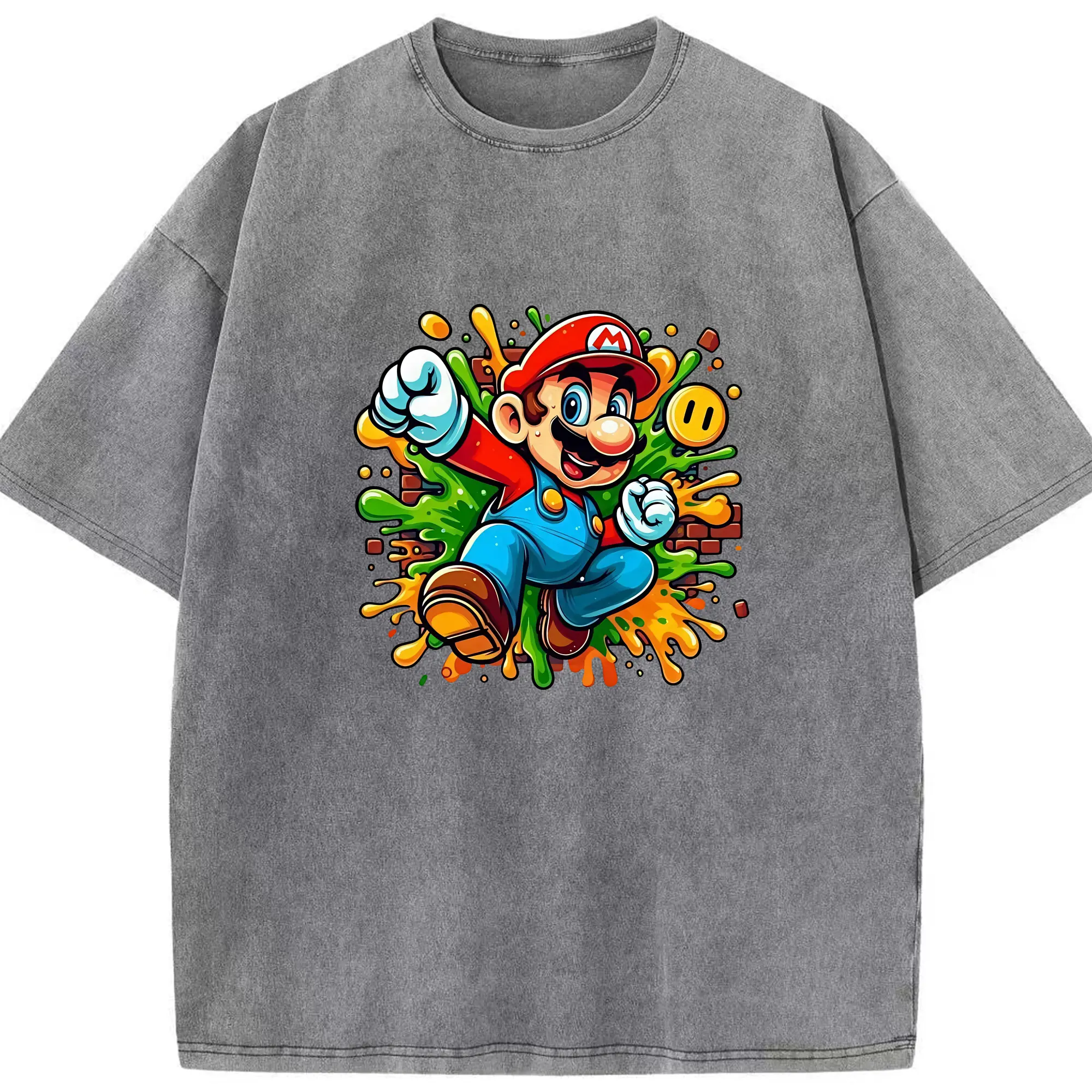 マリオ グッズ マリオ - 綿100% ヴィンテージ風 半袖Tシャツ ・ 背面プリント ・ 柔らか肌触り ・ 通気性 快適 ・ スポーツ カジュアル 外出用