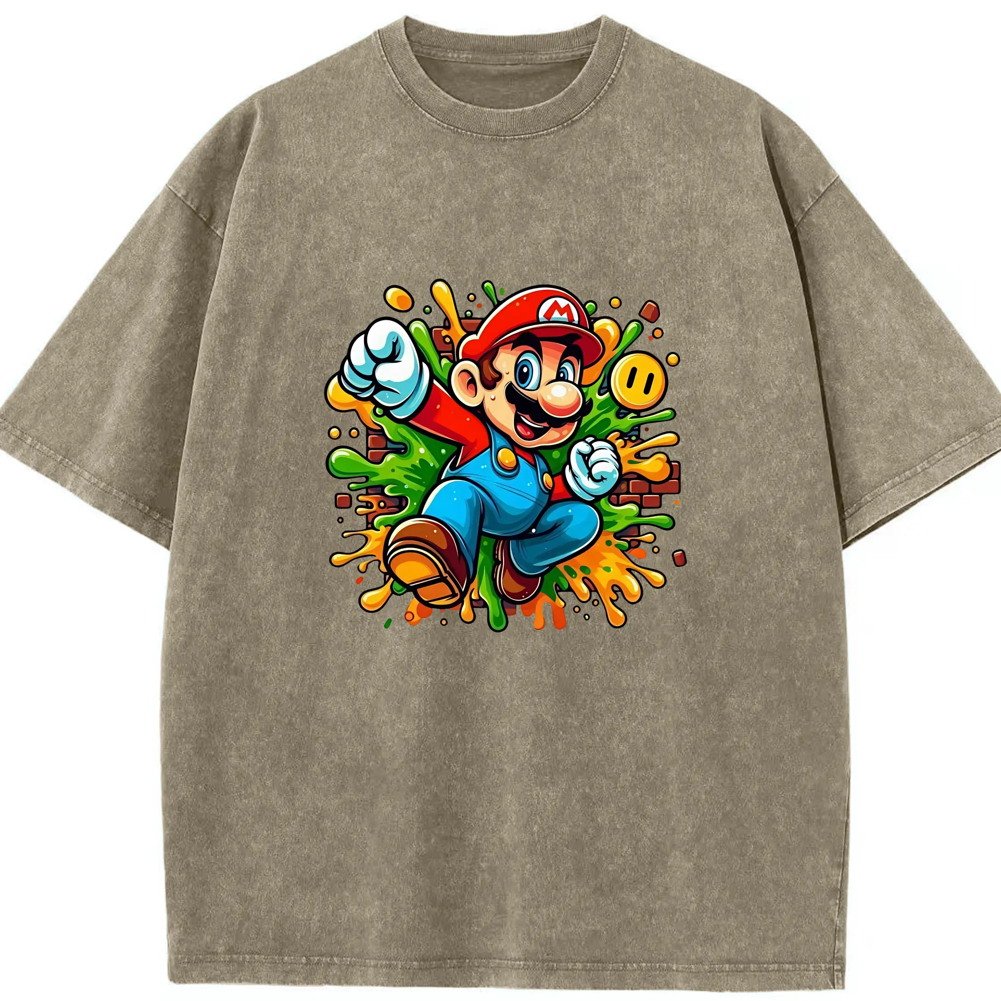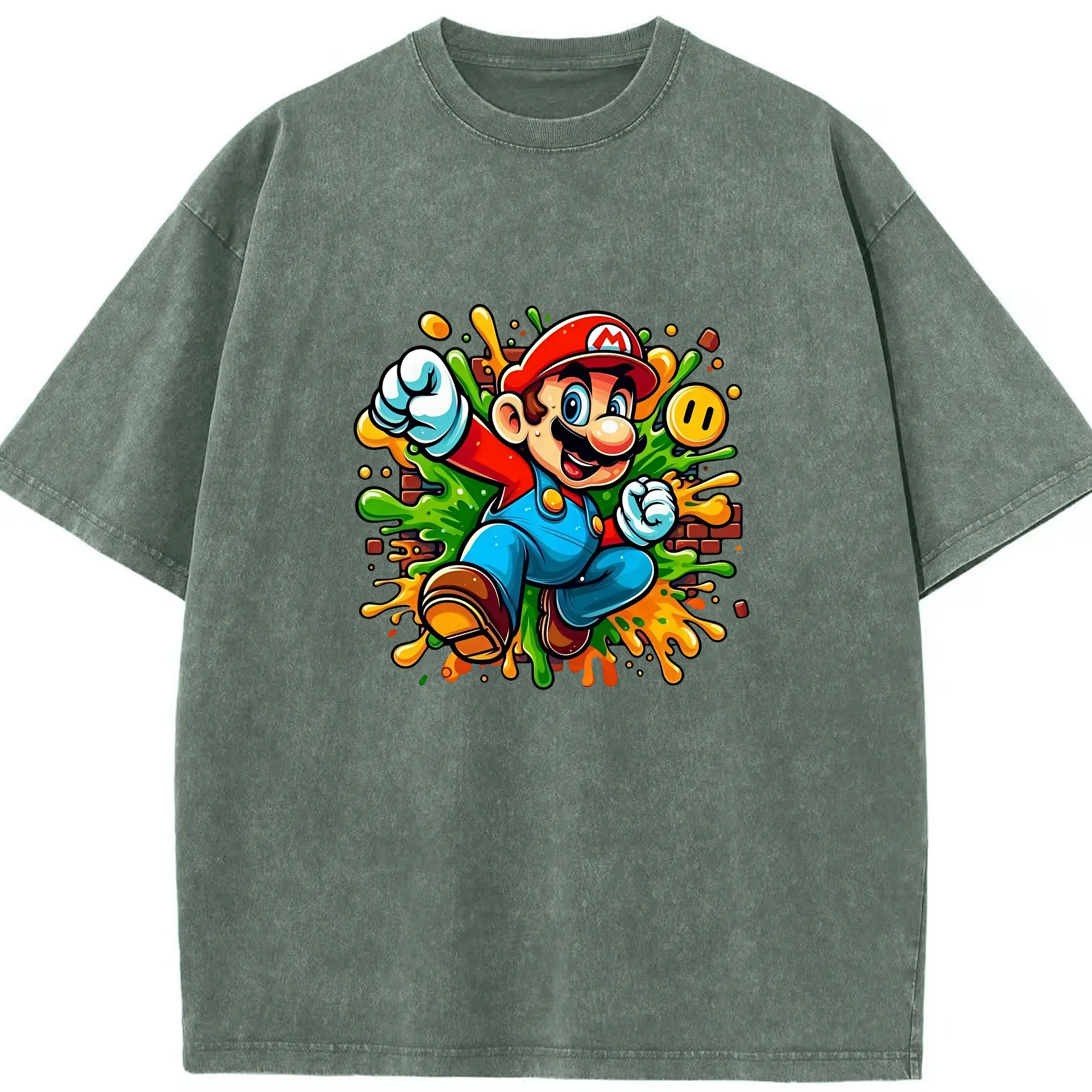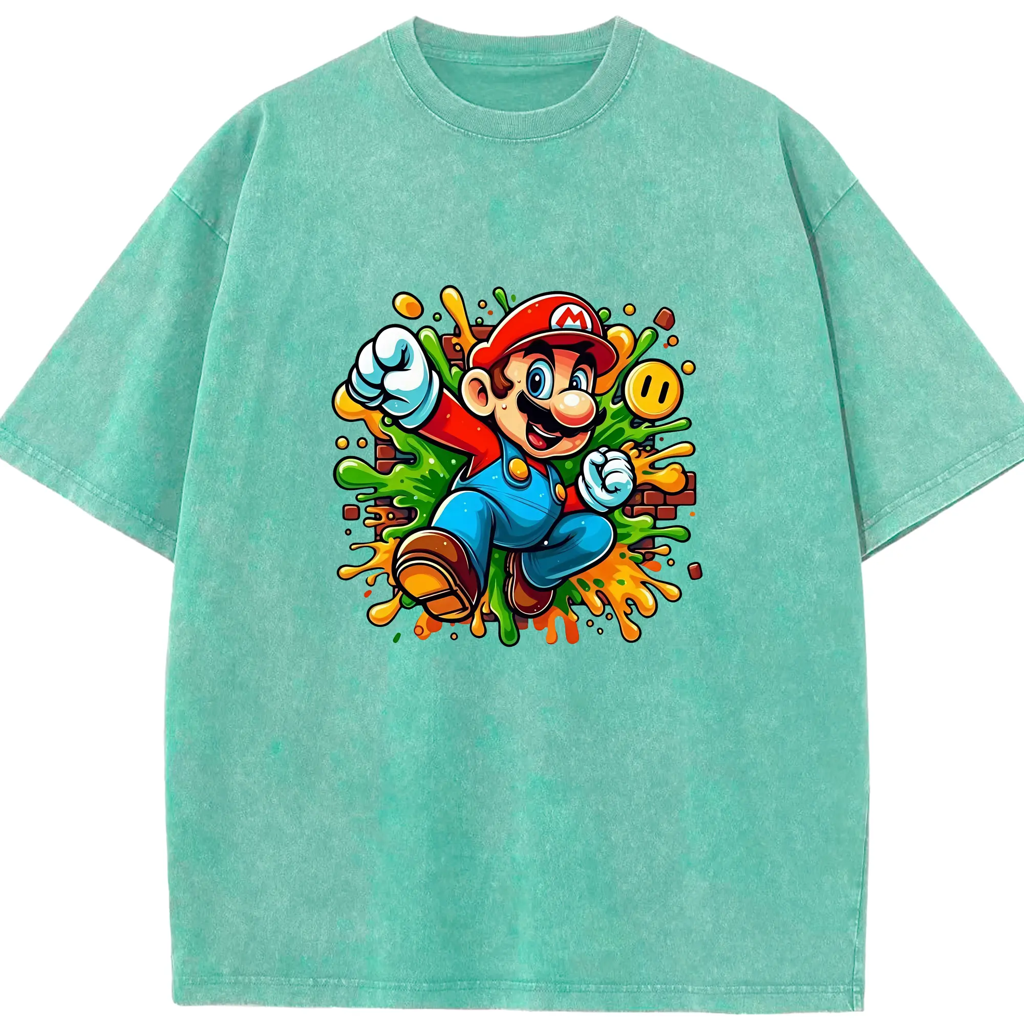 マリオ グッズ マリオ - 綿100% ヴィンテージ風 半袖Tシャツ ・ 背面プリント ・ 柔らか肌触り ・ 通気性 快適 ・ スポーツ カジュアル 外出用