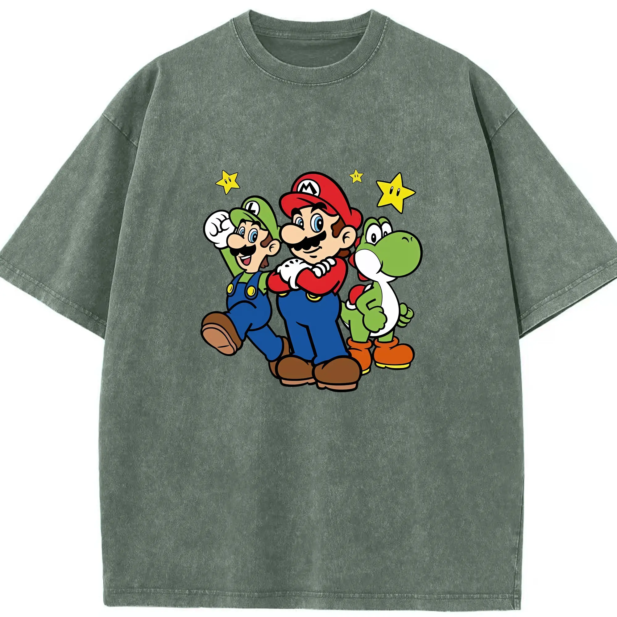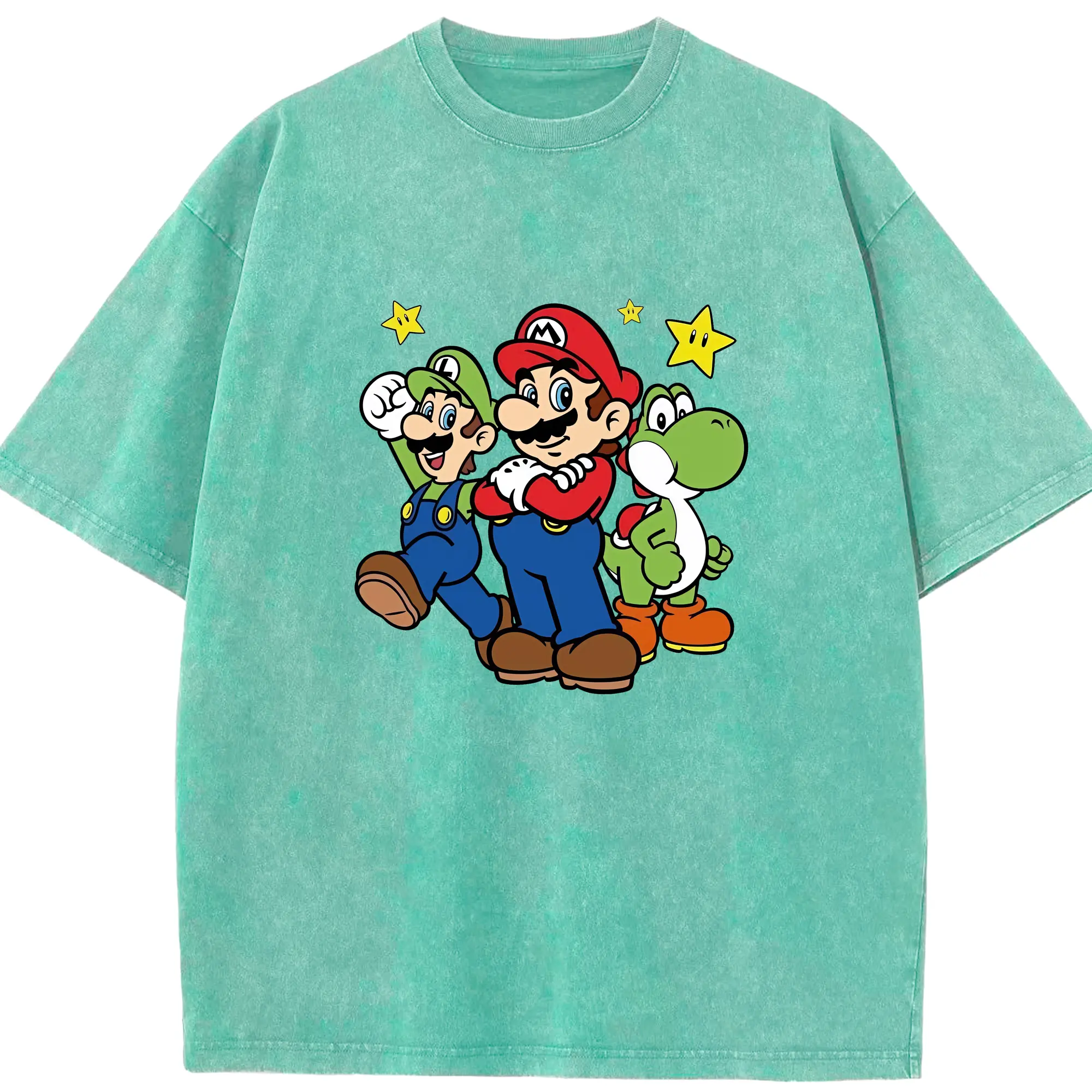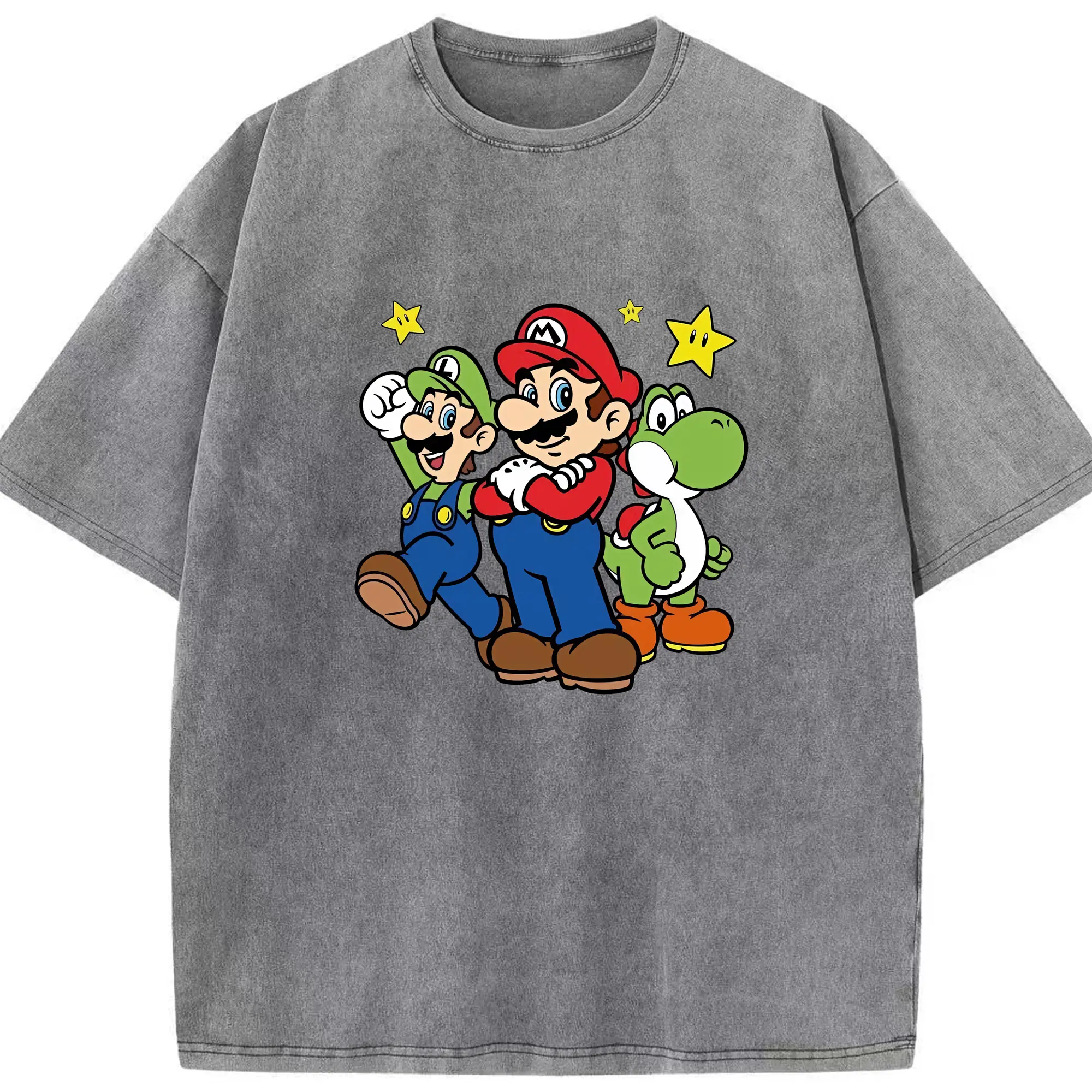 マリオ グッズ ルイージ - 綿100% ヴィンテージ風 半袖Tシャツ ・ フロントプリント ・ 柔らか肌触り ・ 通気性 快適 ・ スポーツ カジュアル 外出用