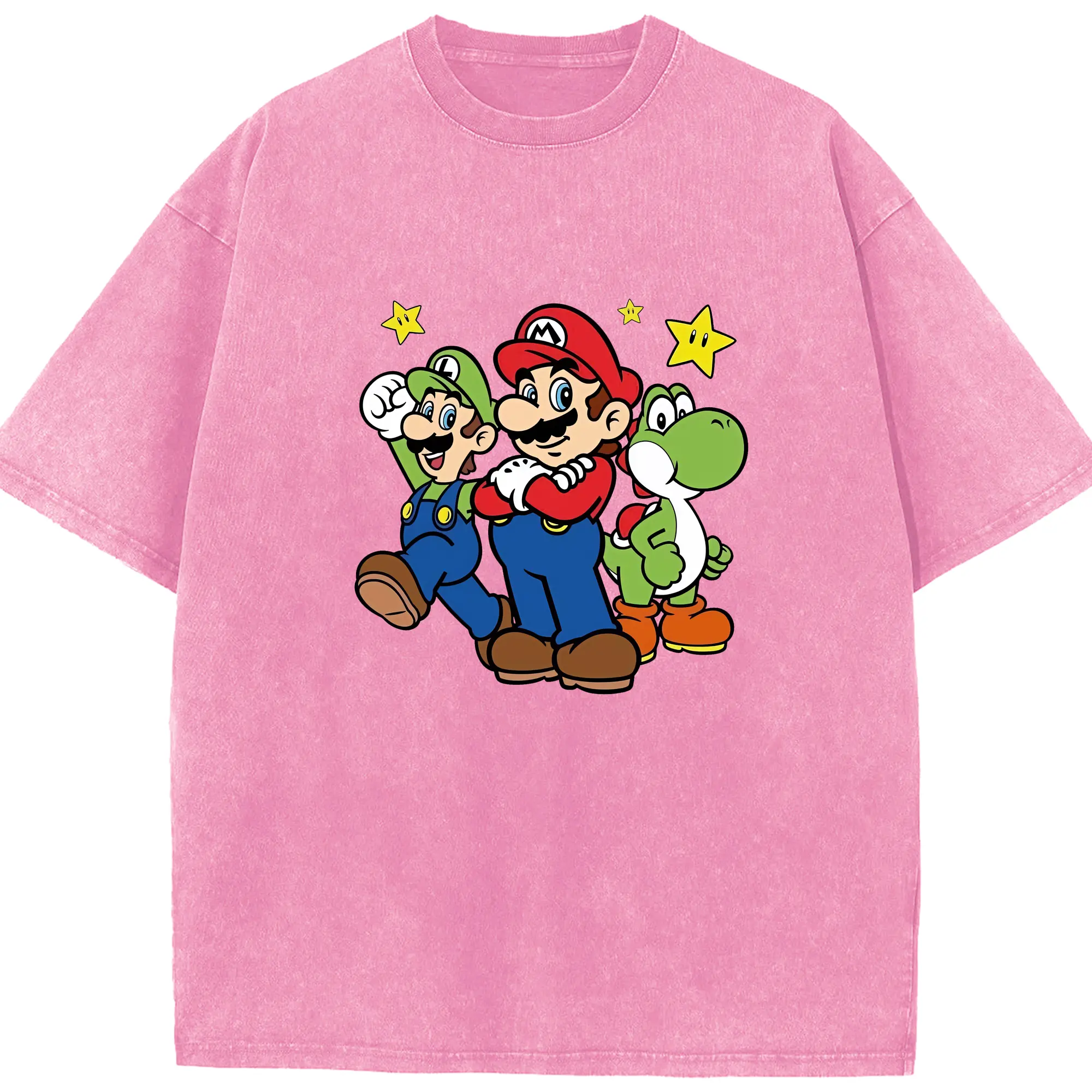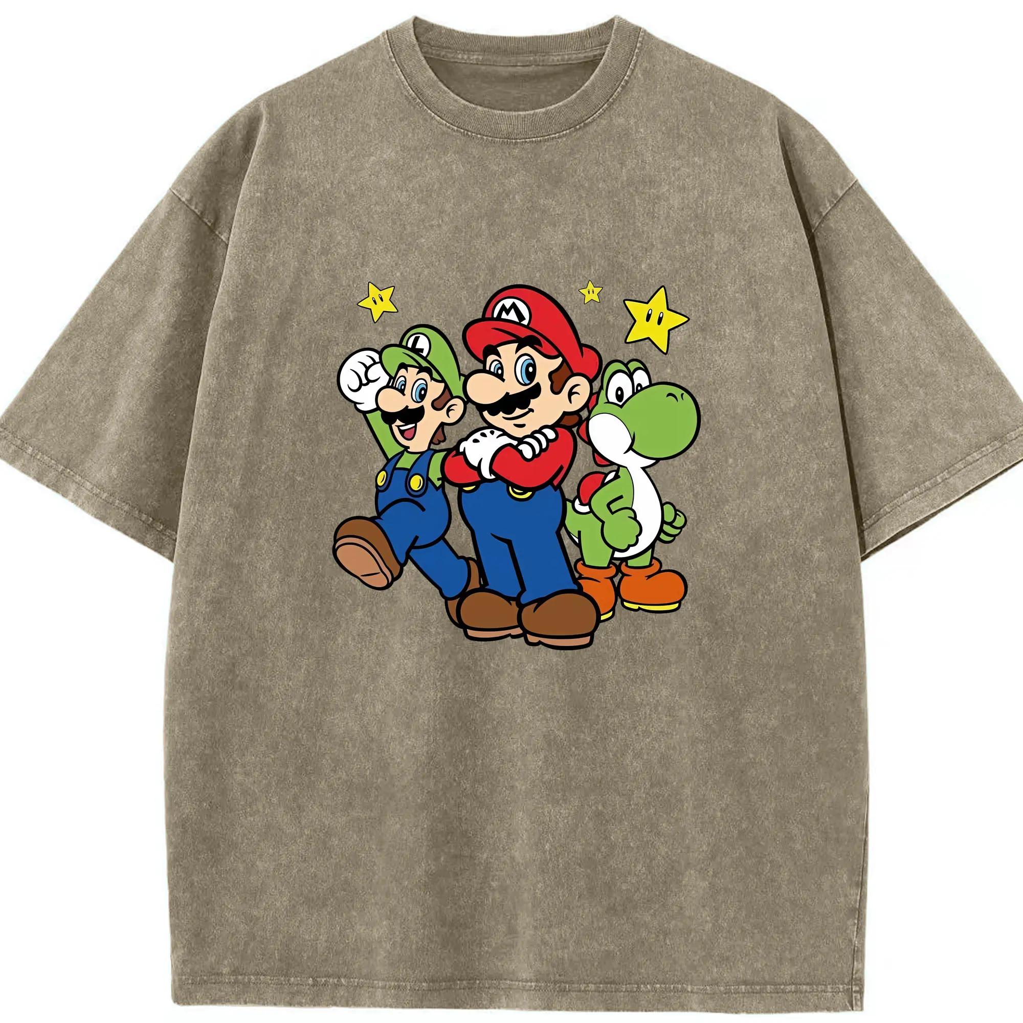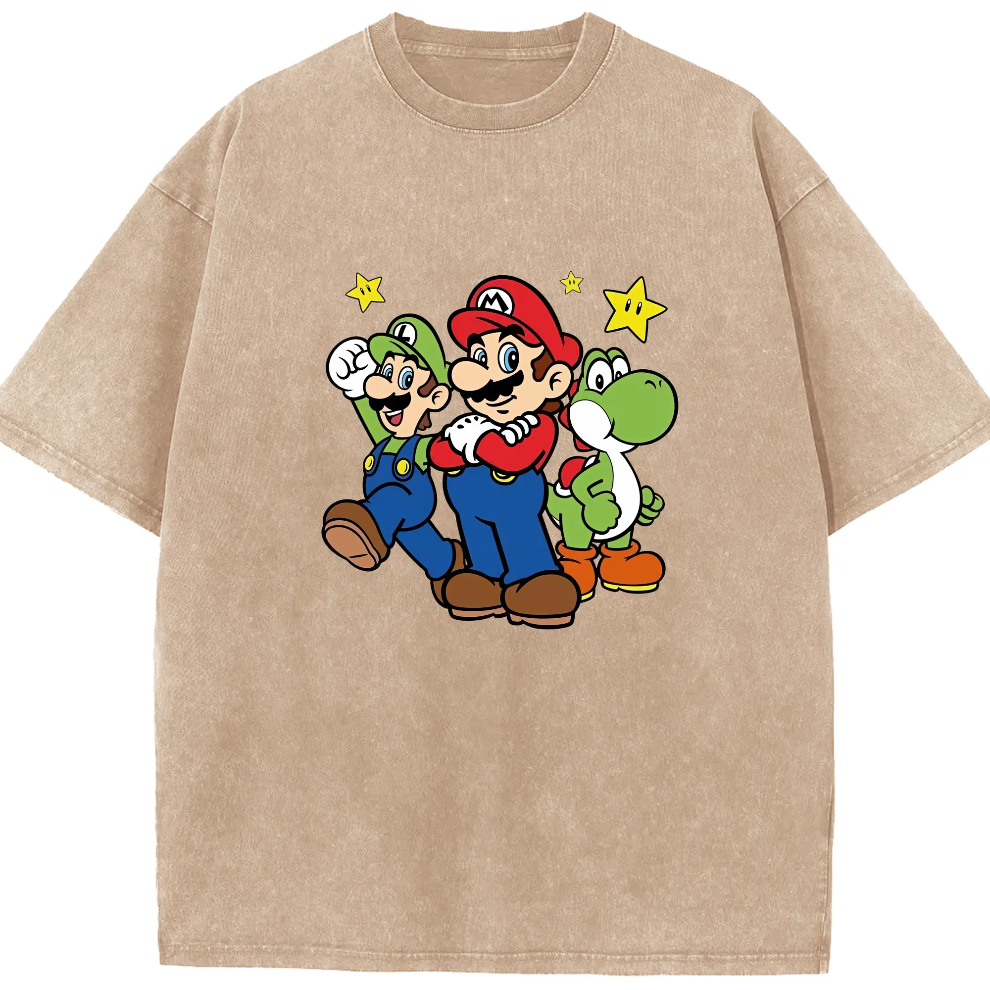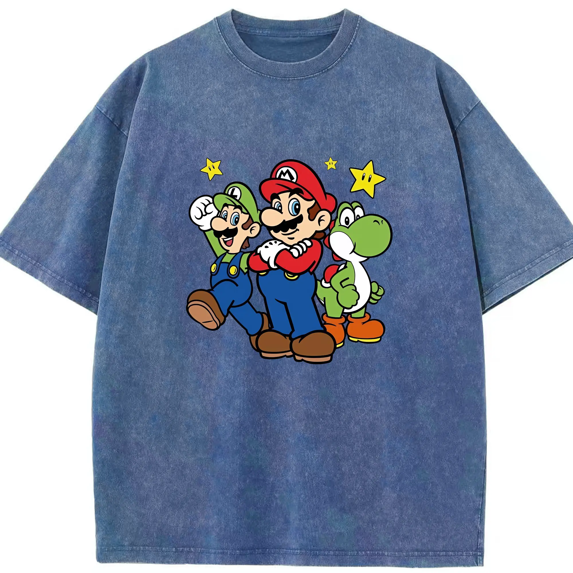マリオ グッズ ルイージ - 綿100% ヴィンテージ風 半袖Tシャツ ・ フロントプリント ・ 柔らか肌触り ・ 通気性 快適 ・ スポーツ カジュアル 外出用