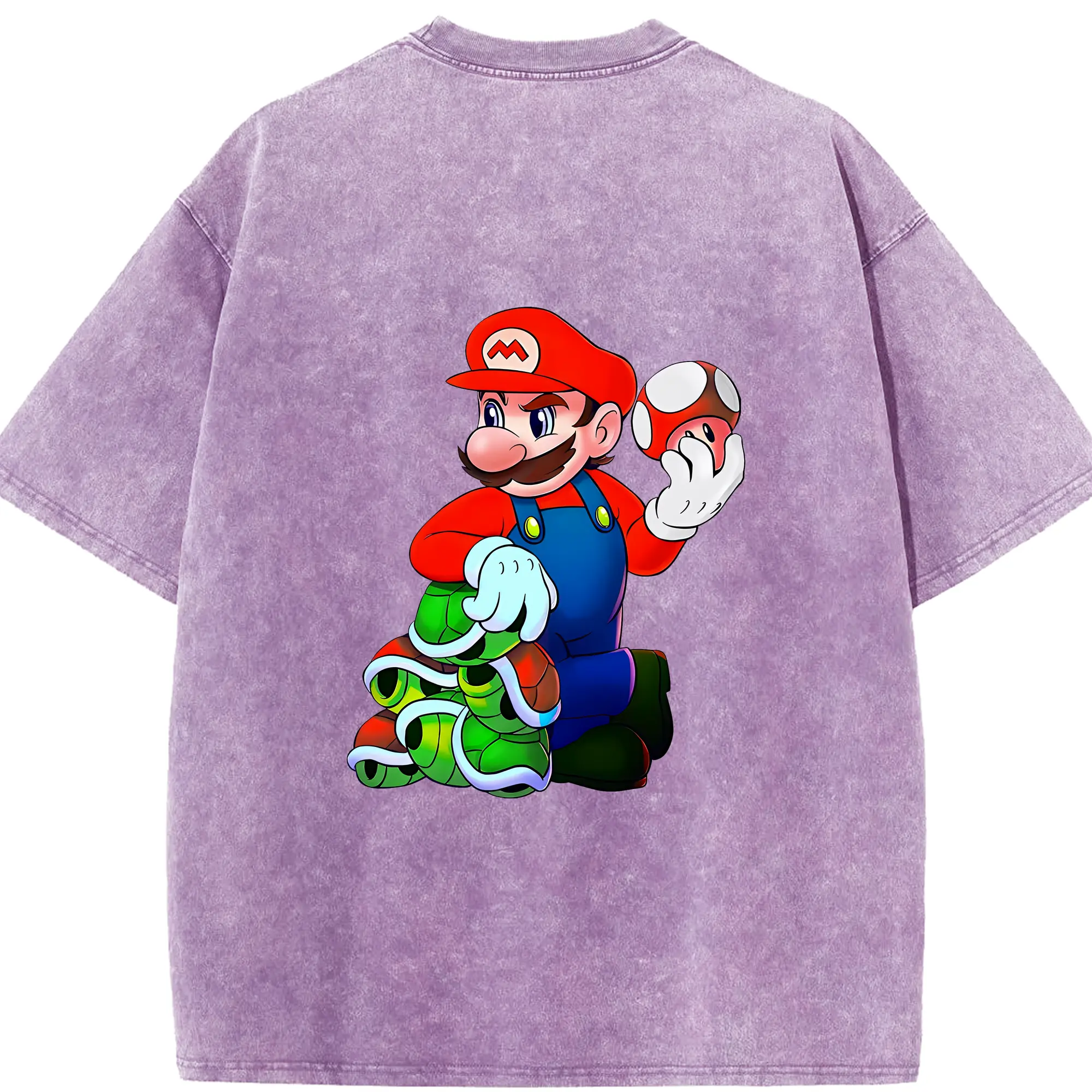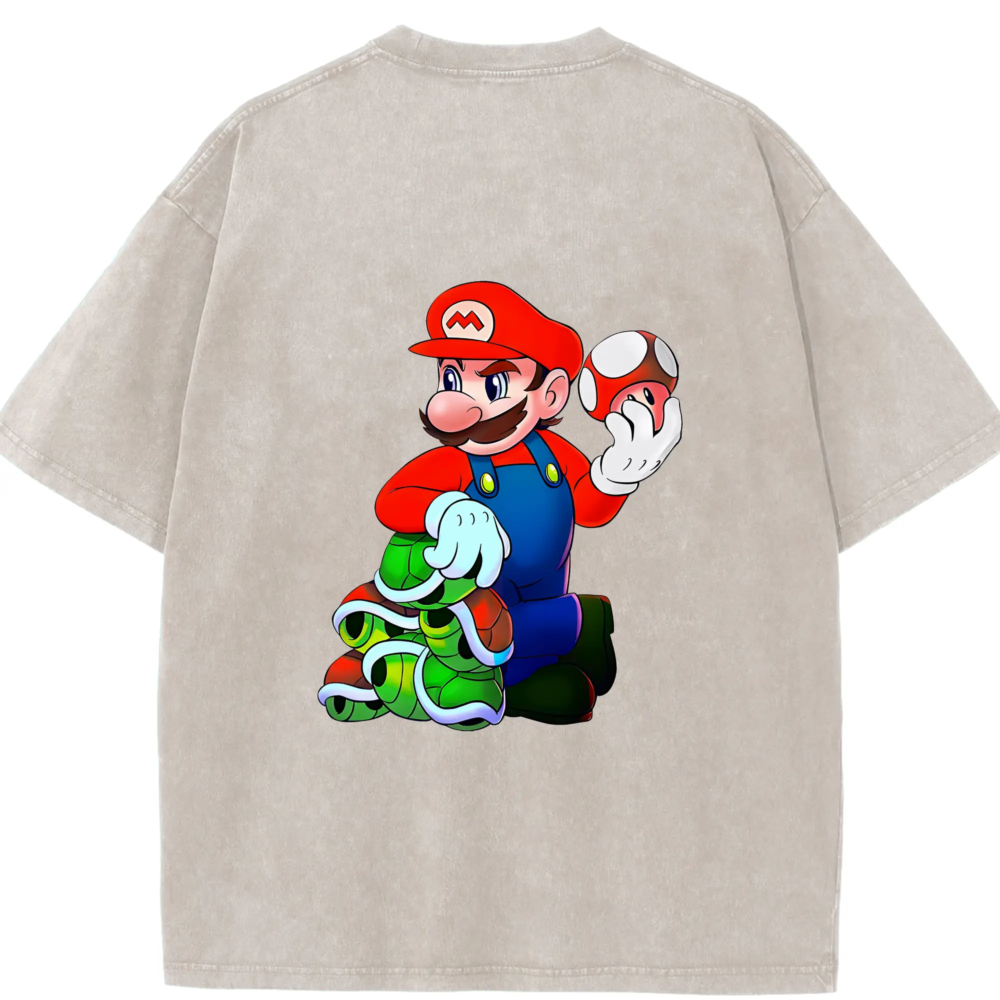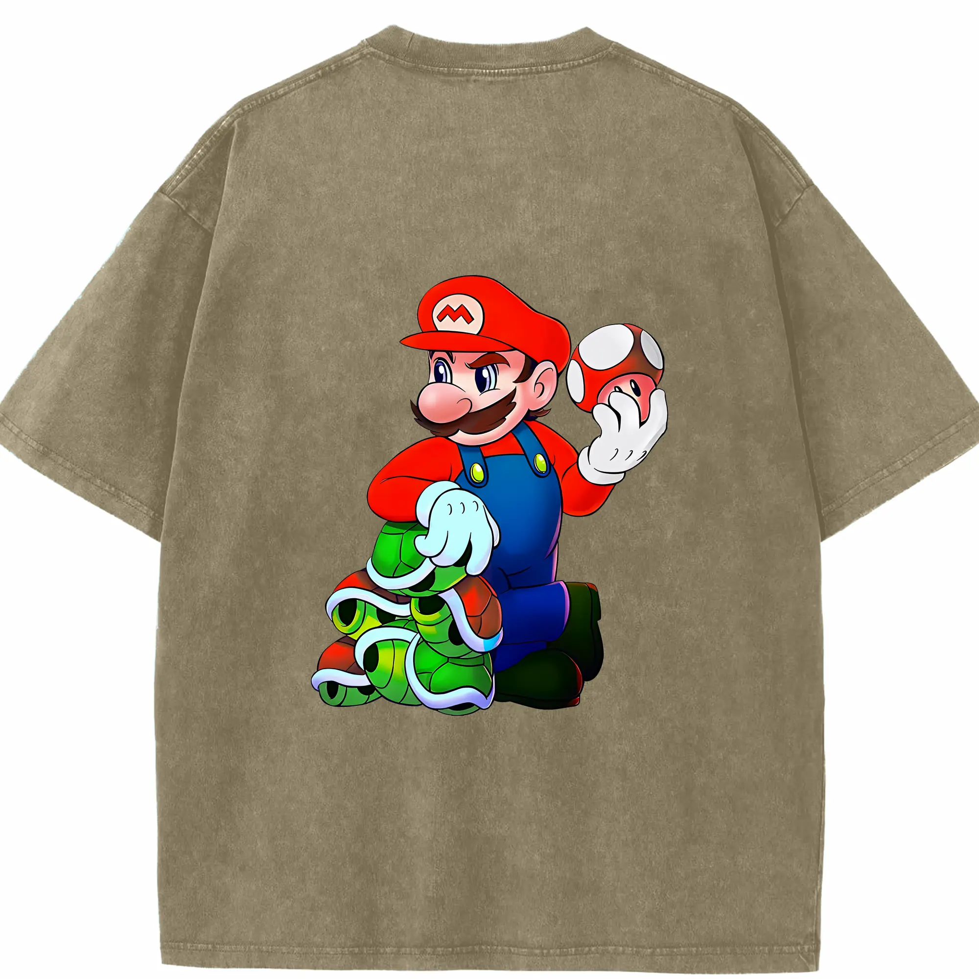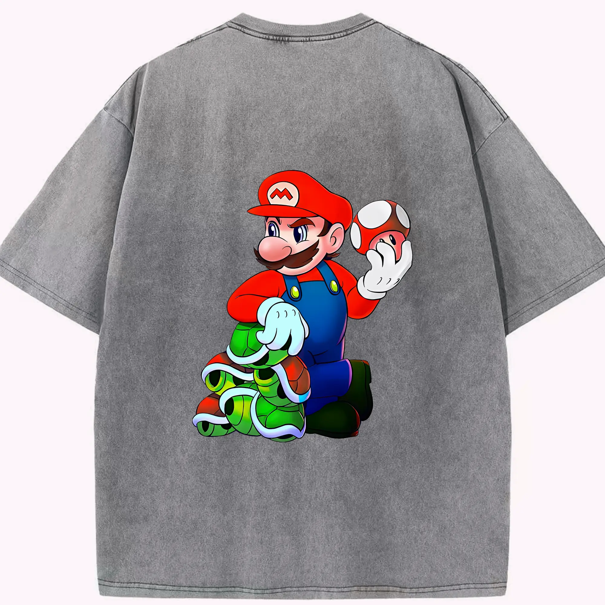 マリオ グッズ マリオ - 綿100% ヴィンテージ風 半袖Tシャツ ・ 背面プリント ・ 柔らか肌触り ・ 通気性 快適 ・ スポーツ カジュアル 外出用